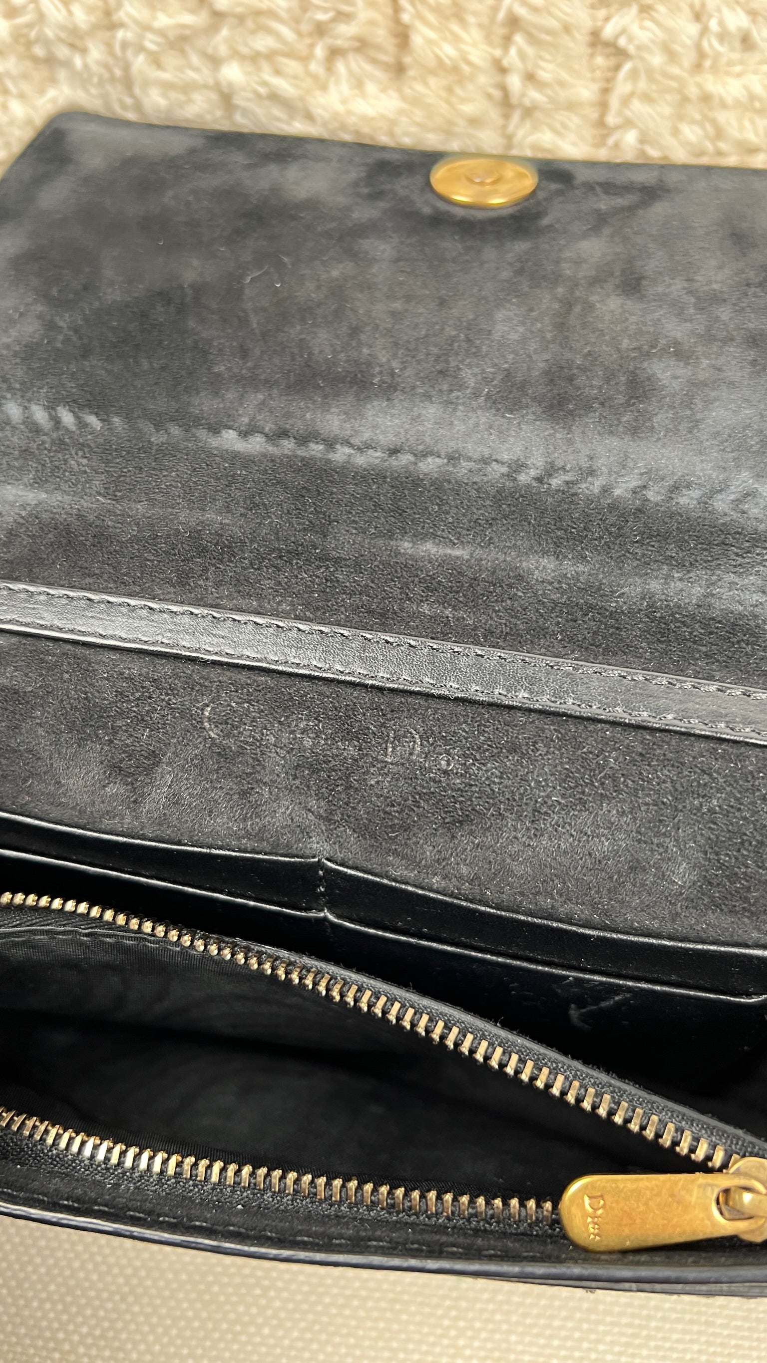 Ce sac J'adior Dior est en très bon état. Le cuir est en bon état avec de petites rayures. Les coins sont éraflés légèrement. L'intérieur est en très bon état avec quelques traces de la chaine mais très peu. Le matériel est usé suite à une utilisation normale.