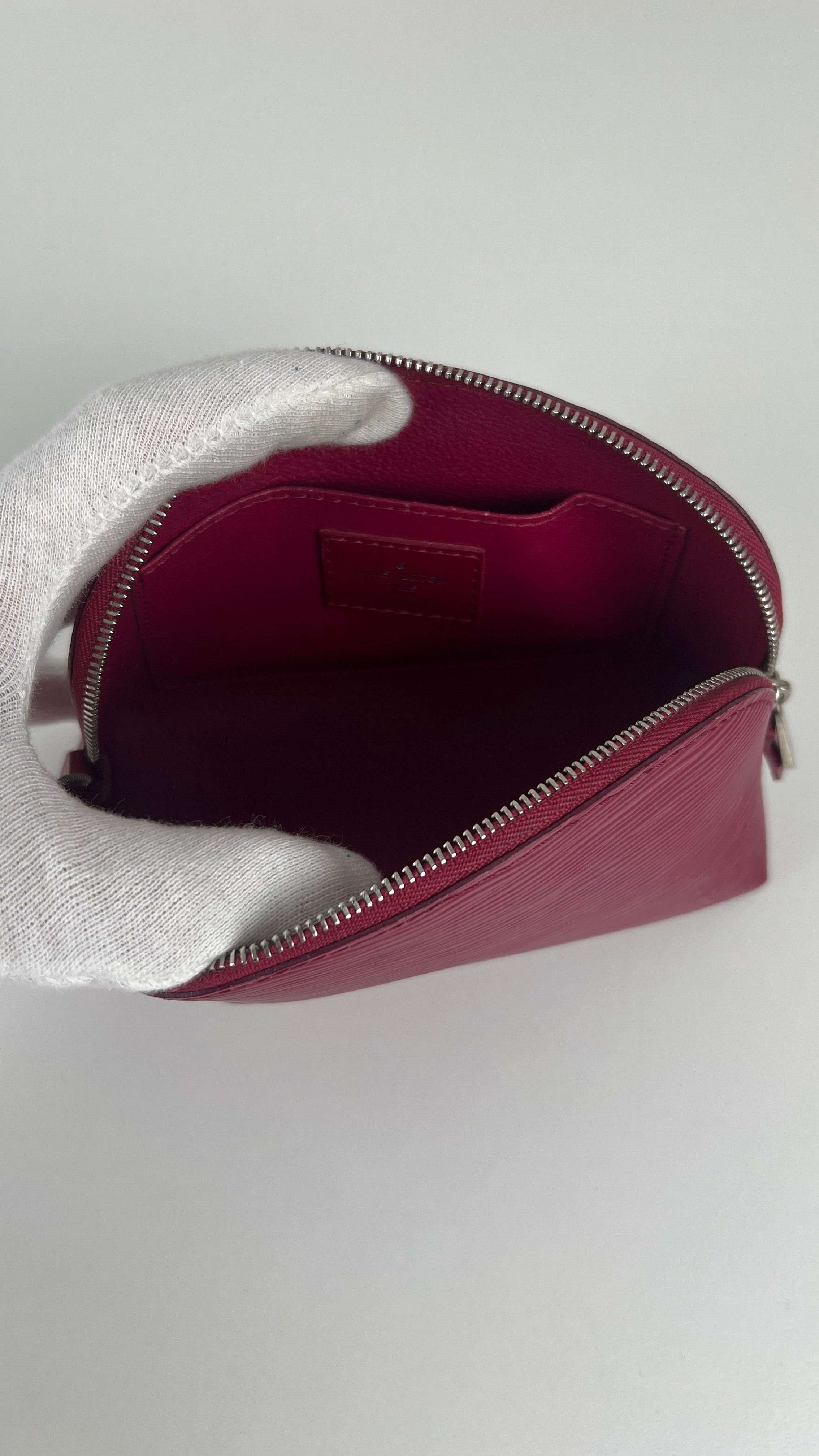 Cette pochette cosmétique Louis Vuitton en cuir Epi est en très bon état. Le cuir est en très bon état. Les coins sont en très bon état, légèrement utilisé très léger. L'intérieur est en très bon état.