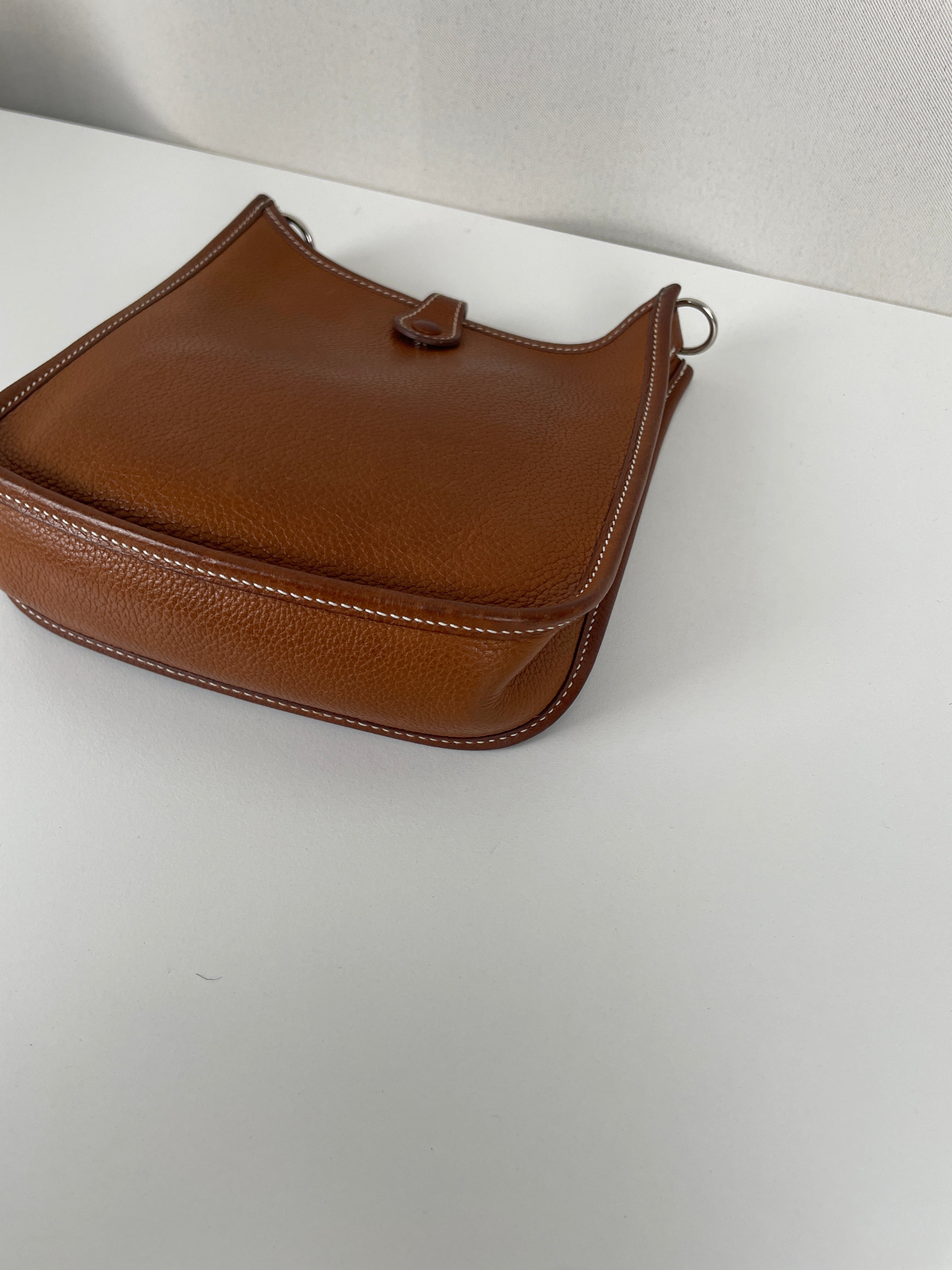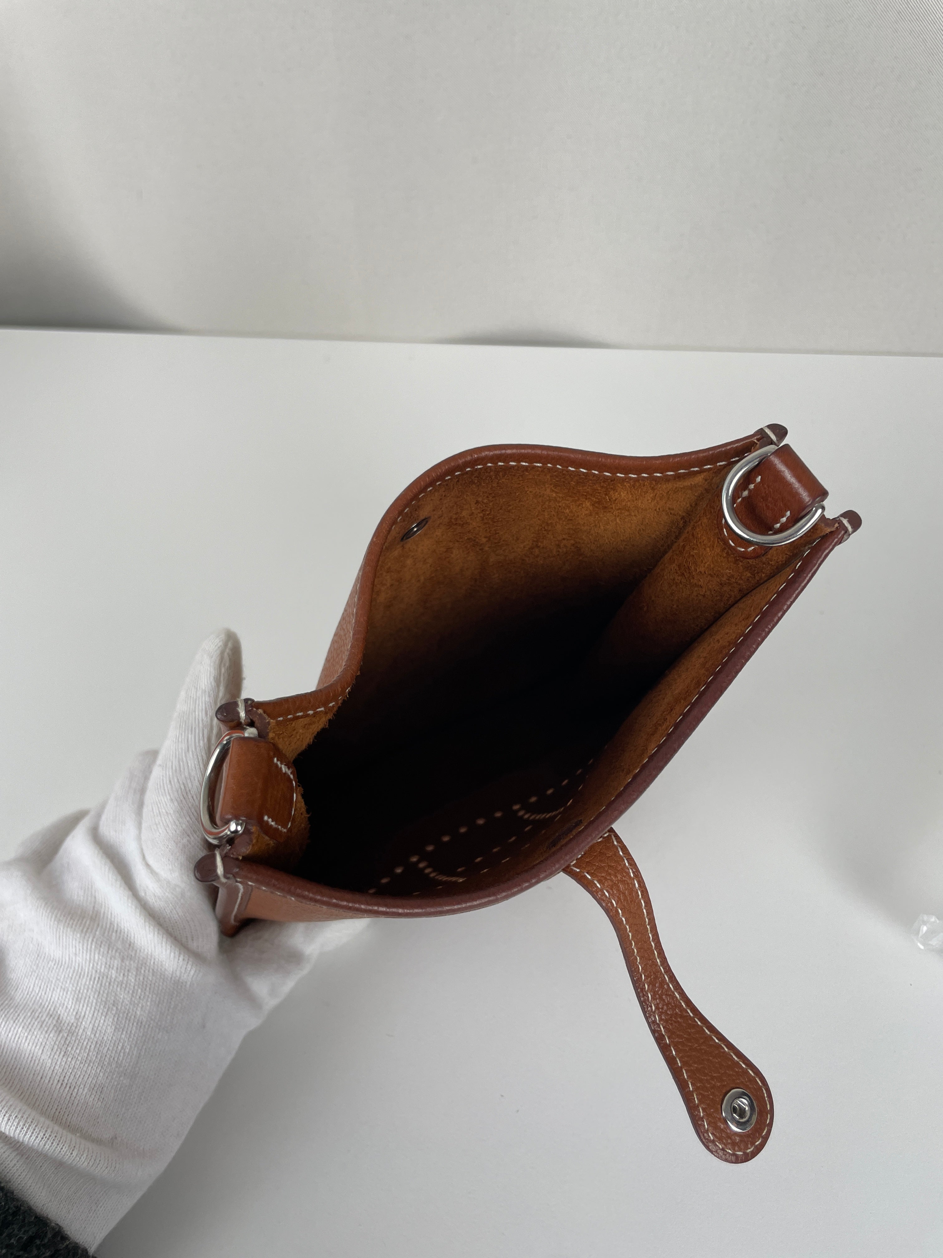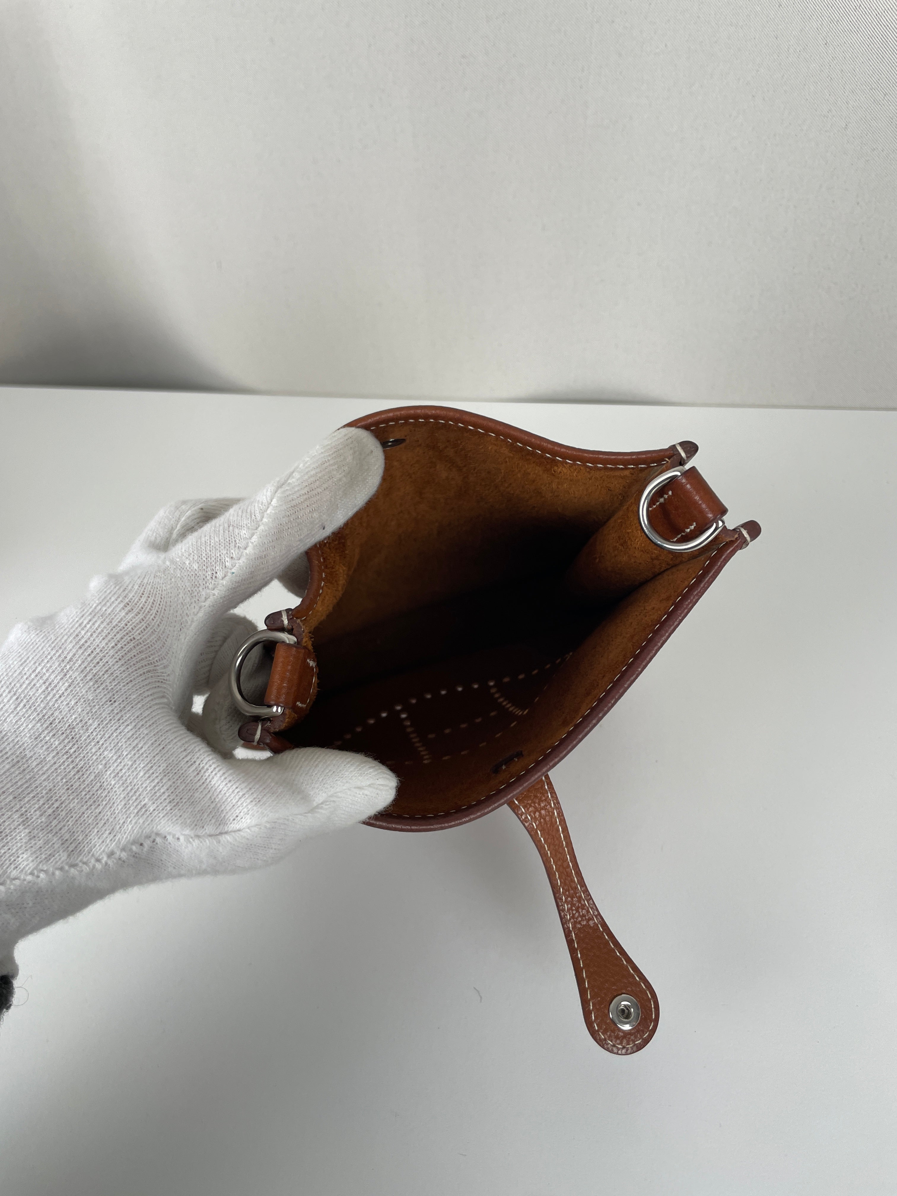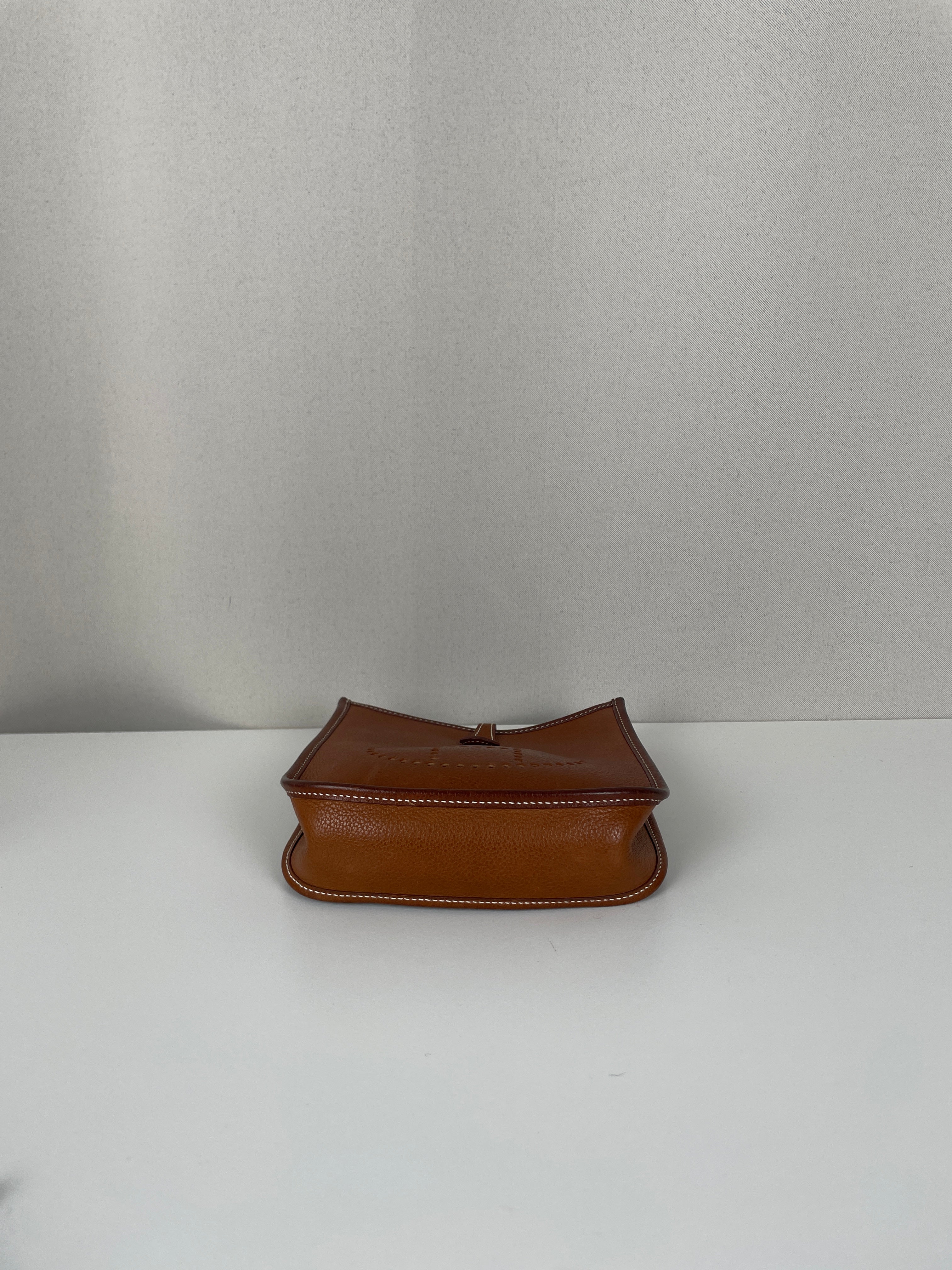 Ce Hermès Mini Evelyne est en très bon état. Le cuir et les coins sont en bon état, un peu noircis. Quelques mini traces sur le cuir. Le cuir est sublime, cuir qu'on ne vois pas souvent chez Hermès. L'intérieur est en parfait état. La bandoulière est en parfait état. Il est livré avec boite + dustbag + facture + Notre certificat d'authentification.