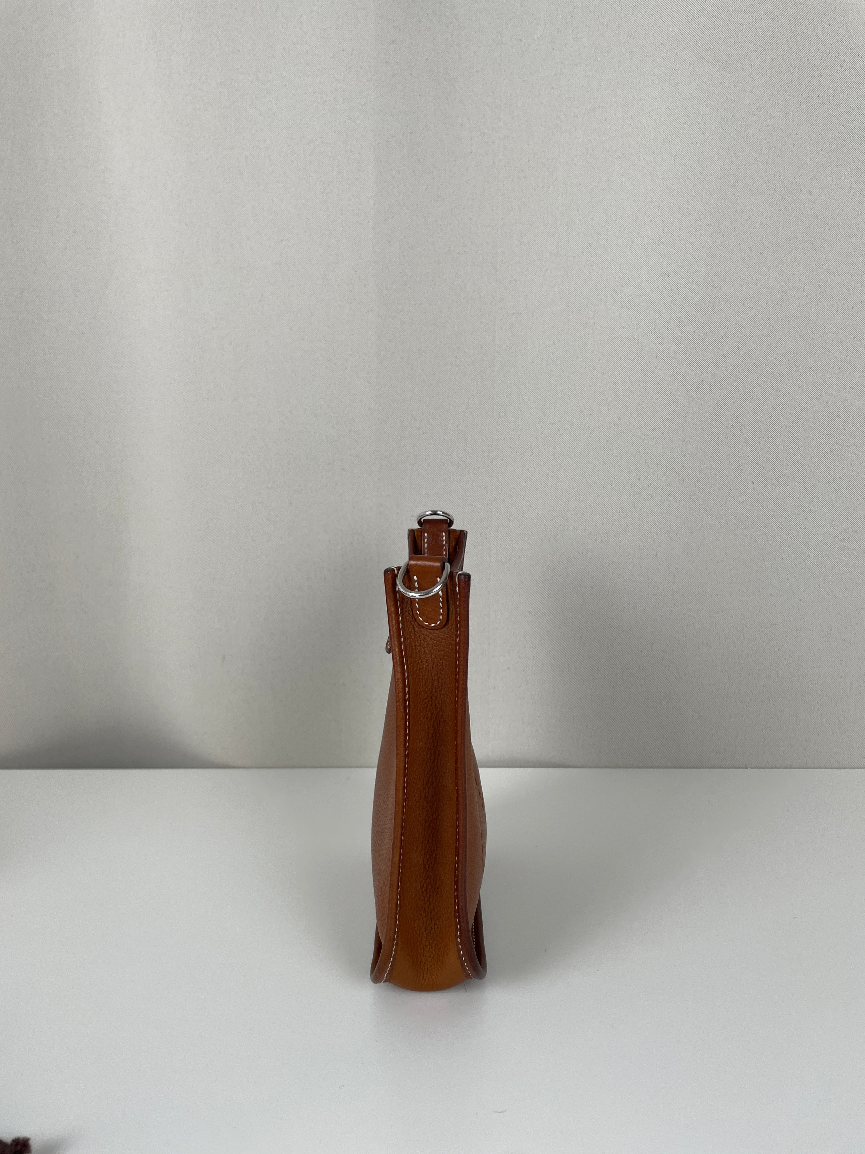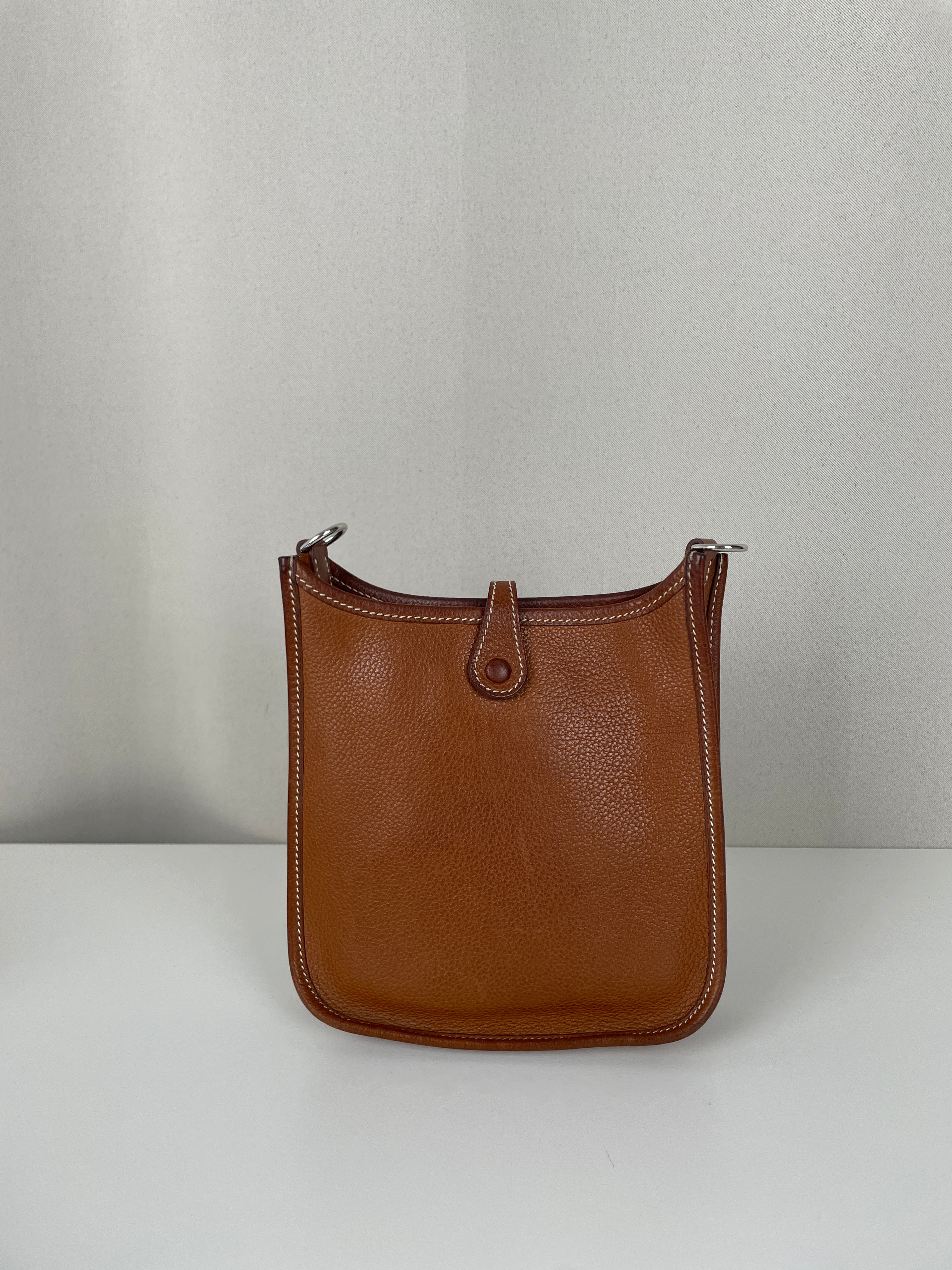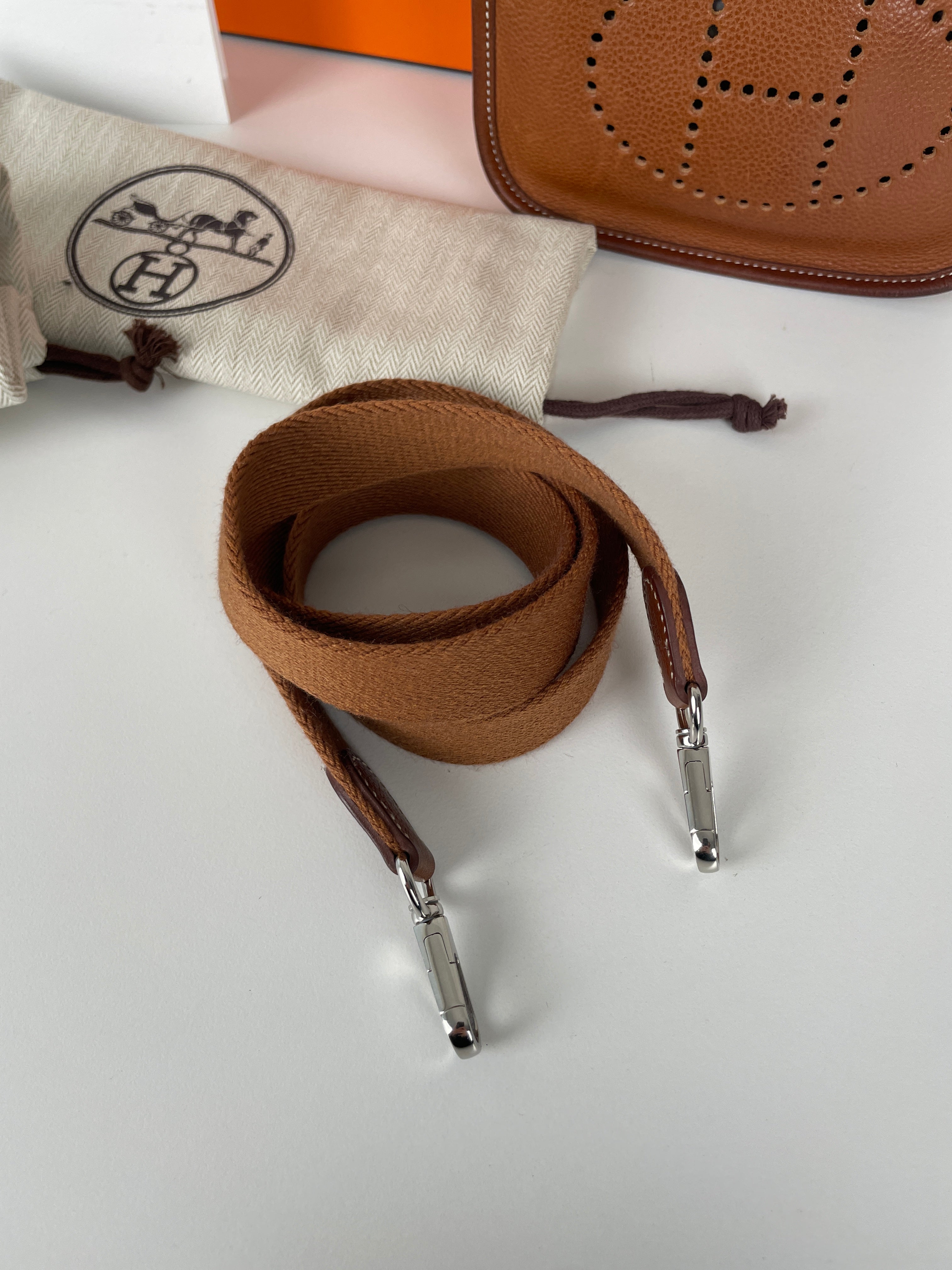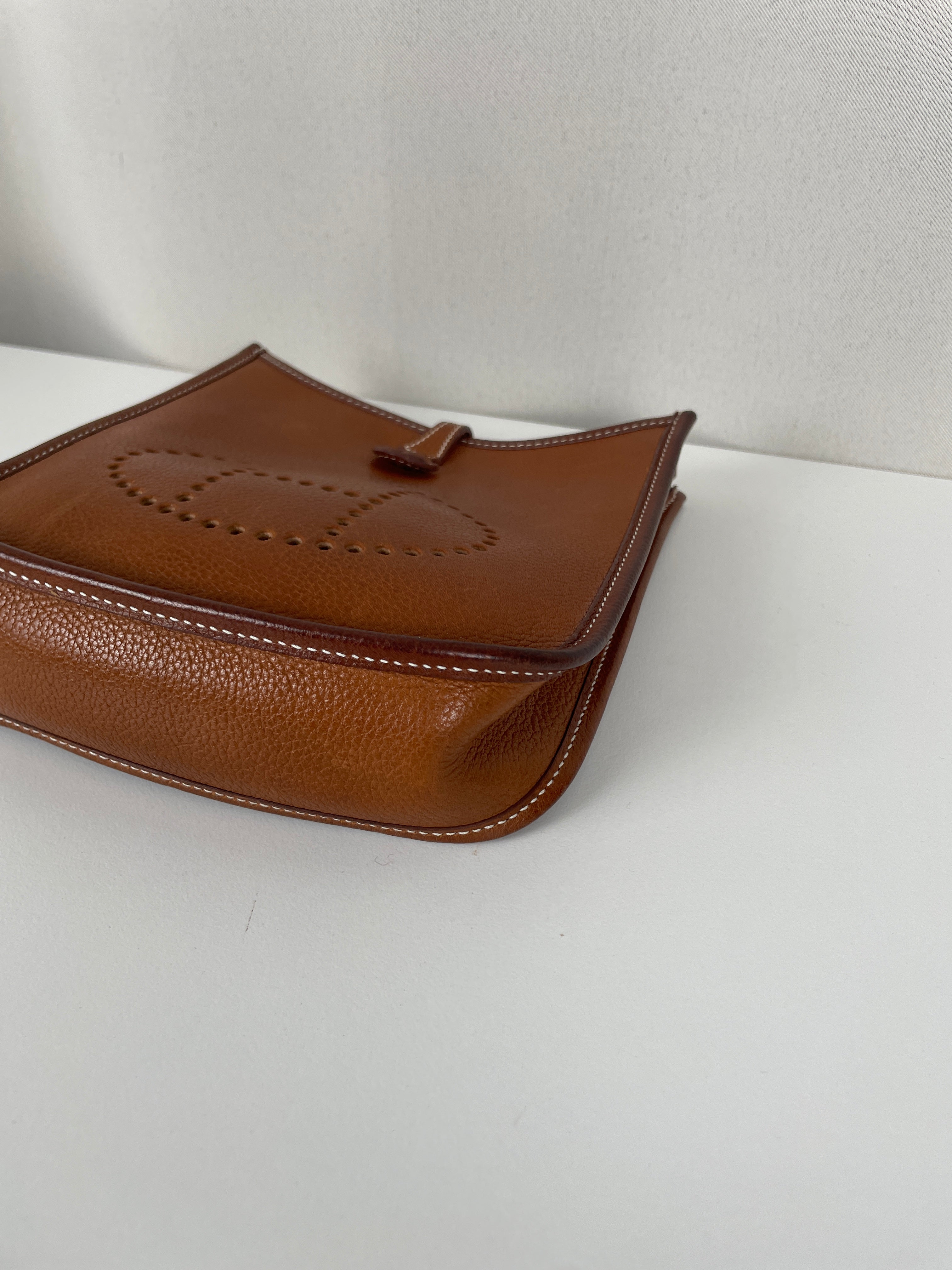 Ce Hermès Mini Evelyne est en très bon état. Le cuir et les coins sont en bon état, un peu noircis. Quelques mini traces sur le cuir. Le cuir est sublime, cuir qu'on ne vois pas souvent chez Hermès. L'intérieur est en parfait état. La bandoulière est en parfait état. Il est livré avec boite + dustbag + facture + Notre certificat d'authentification.