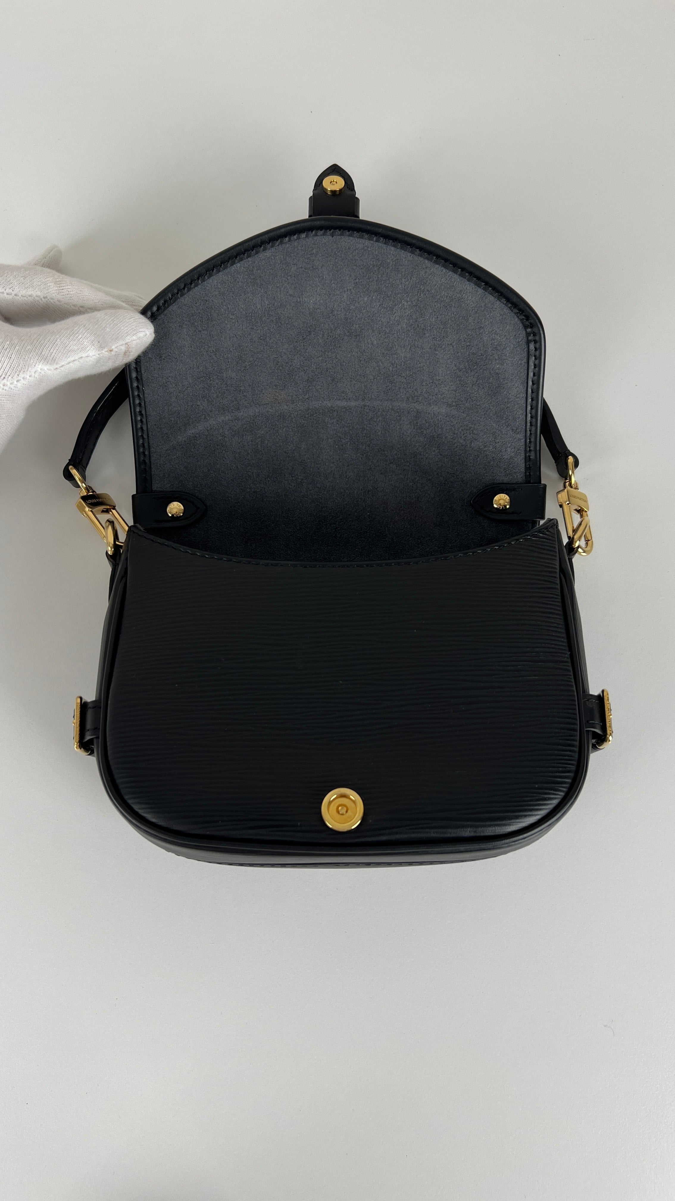 Ce Louis Vuitton Saumur BB est comme neuf. Le cuir est en très bon état. Les coins sont comme neufs. La bandoulière est en très bon état. L'intérieur est en très bon état. Il y a une petite mini trace sur le daim à l'intérieur.