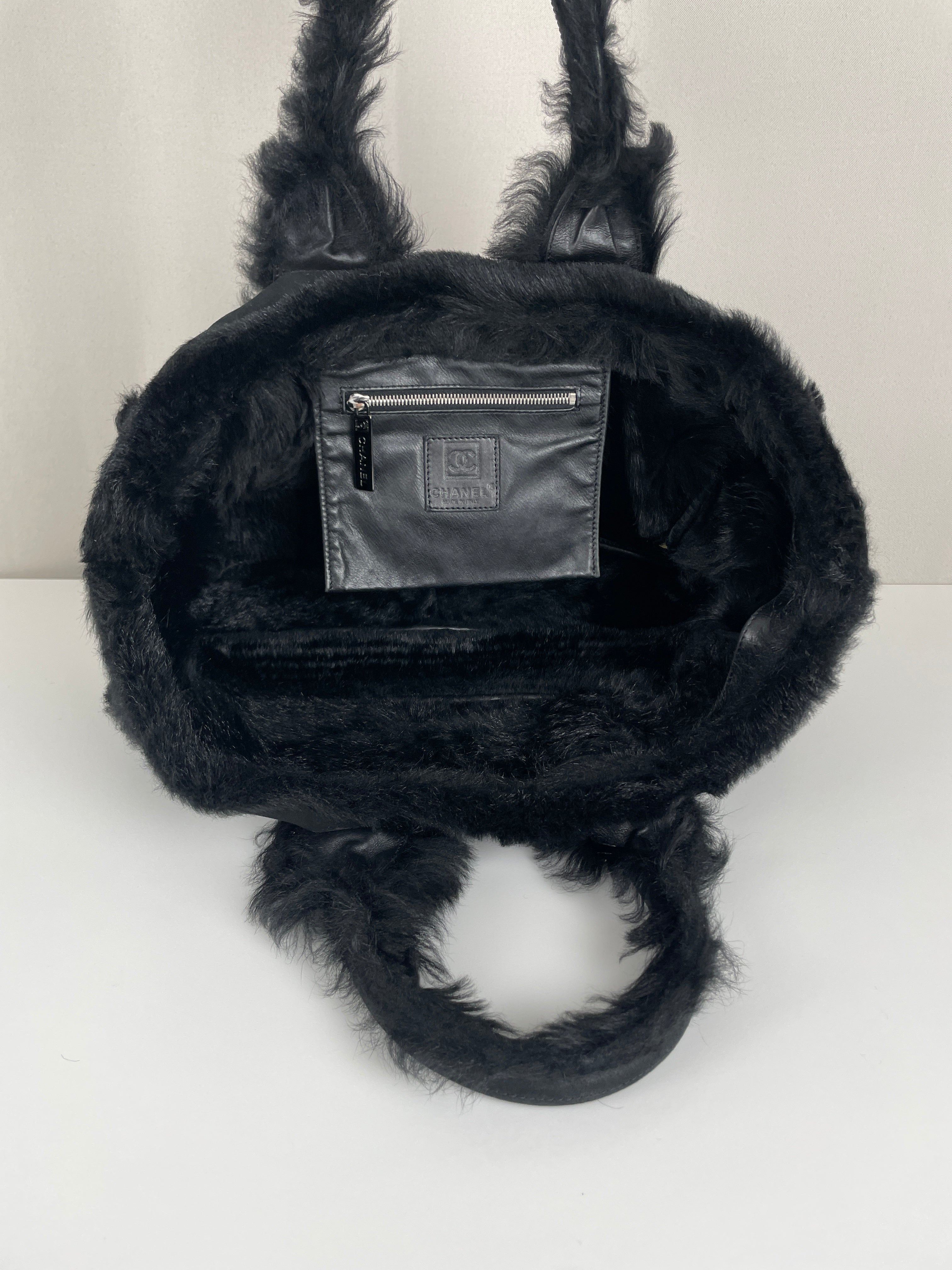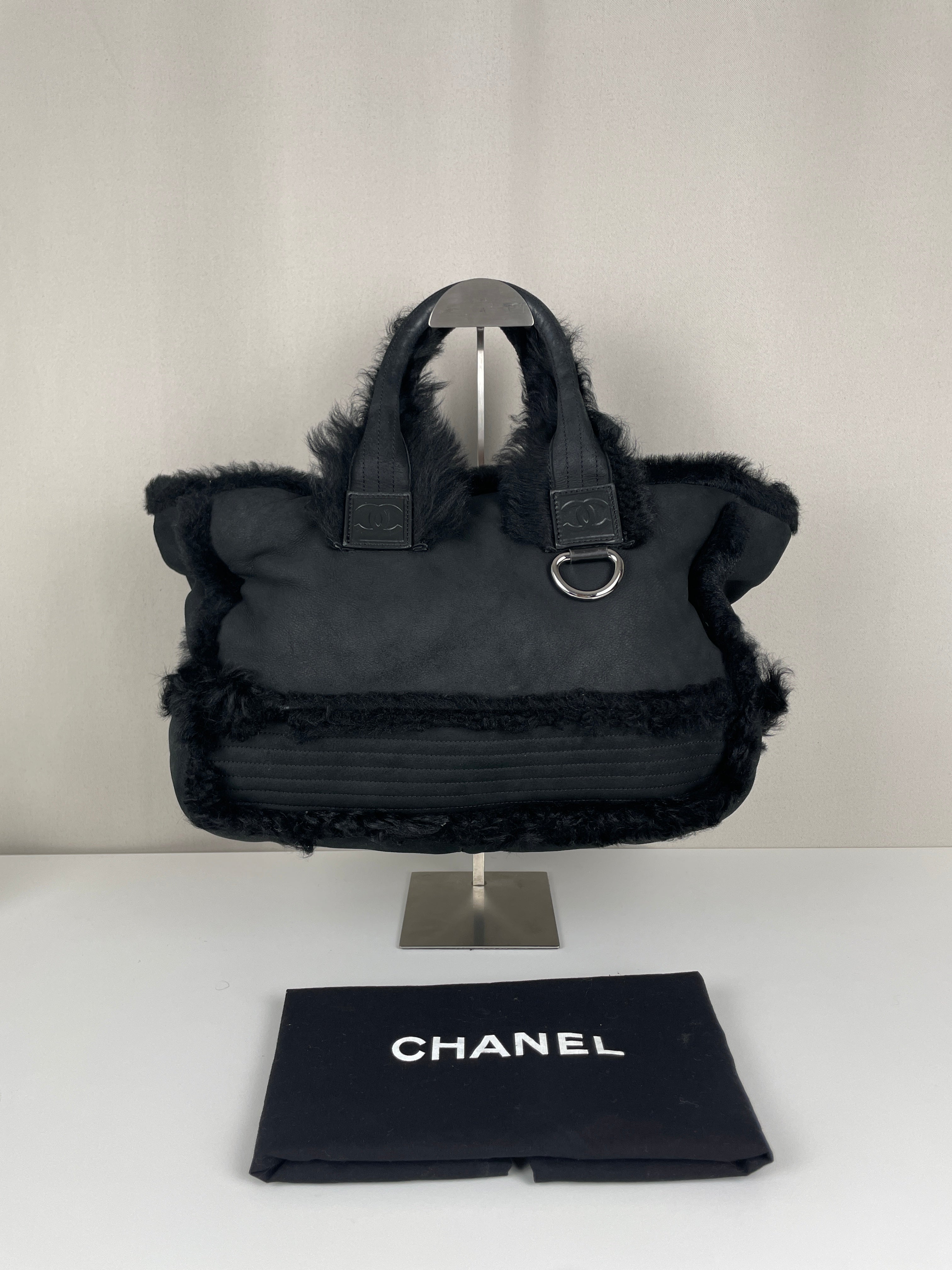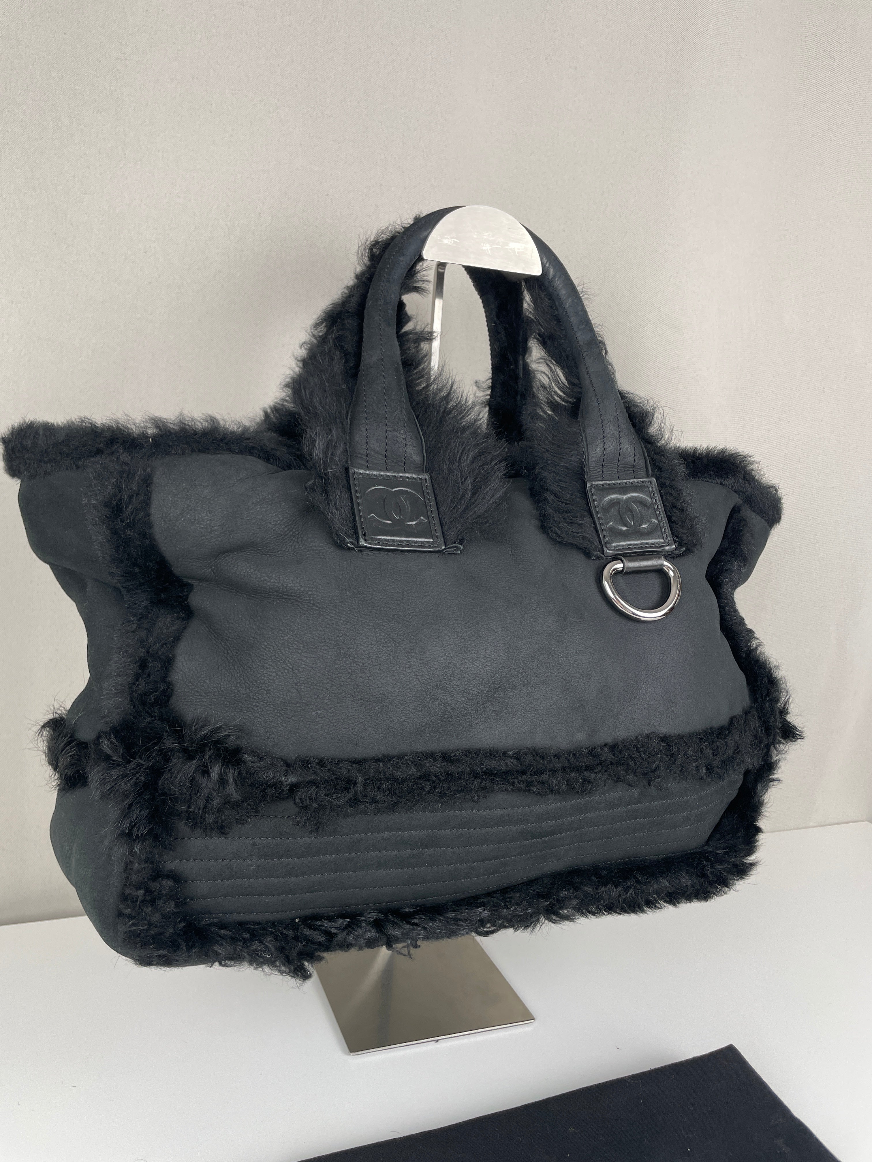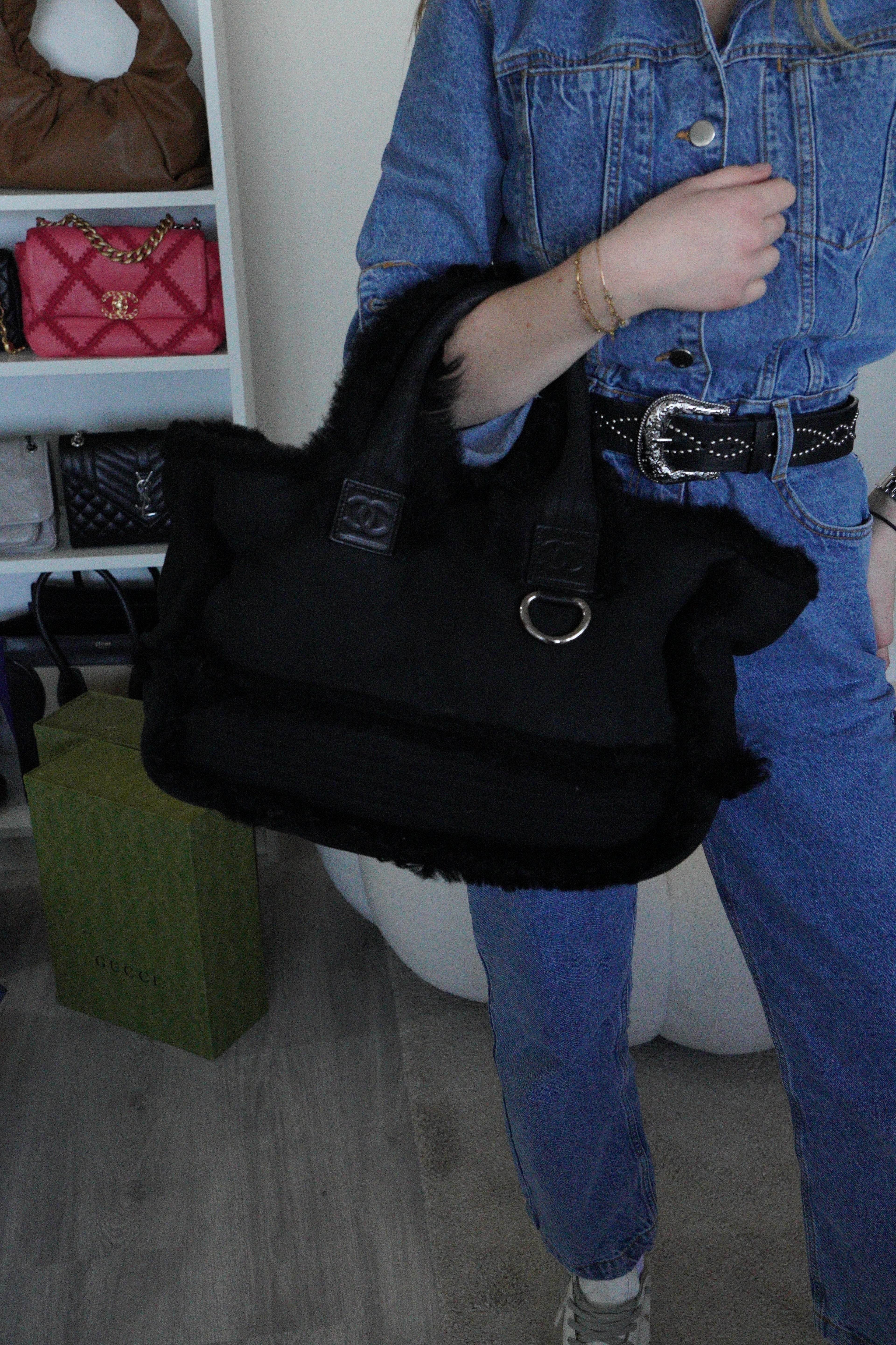 Ce sac cabas réversible Chanel est en très bon état. La peau et le cuir sont en bon état avec seulement quelques signes d'usure mineurs sur la peau. La fourrure à l'intérieur est en très bon état. Les poignées sont également en très bon état. Le sac a l'air délavé mais c'est l'effet normal. J'adore ce sac !