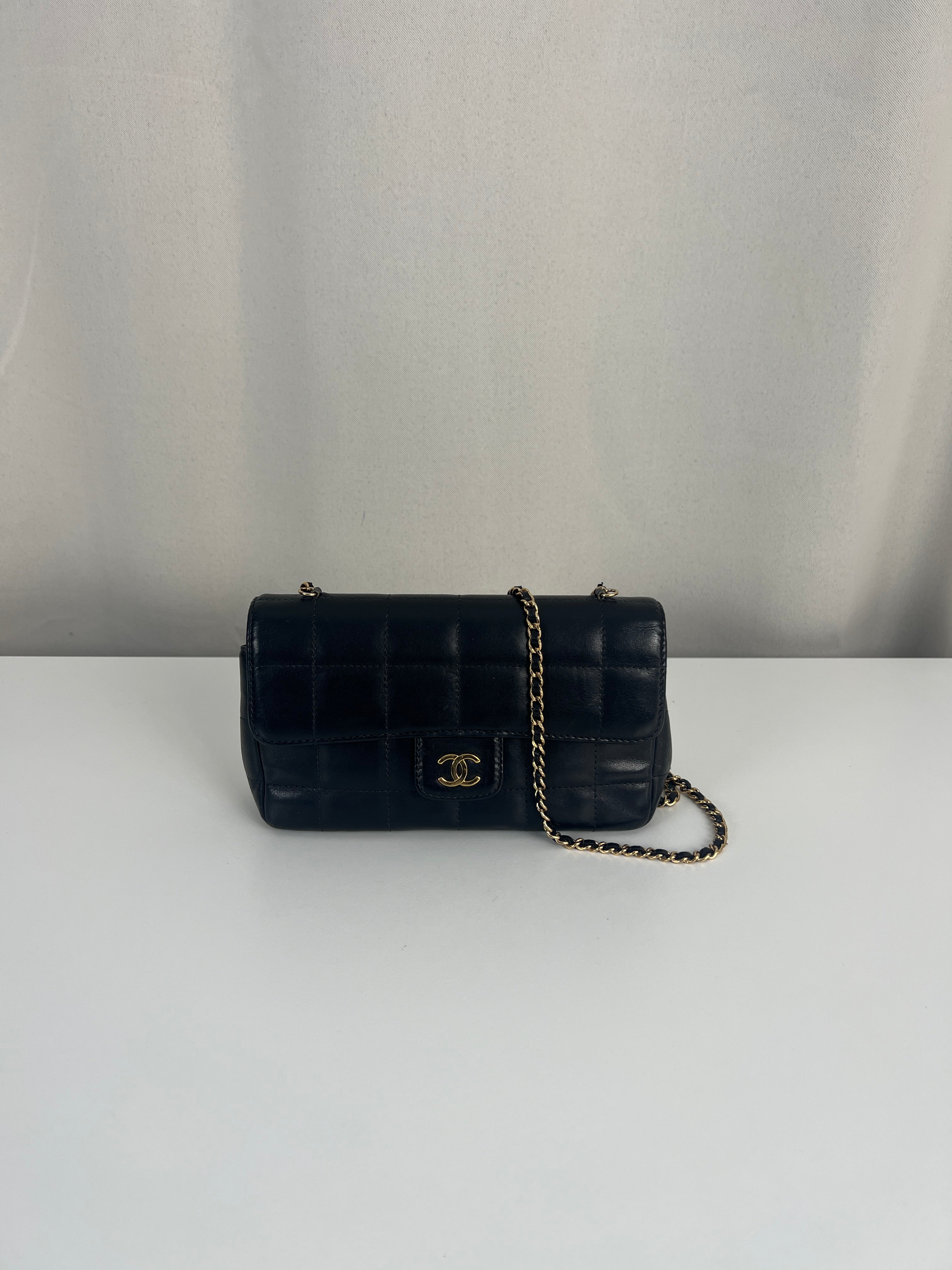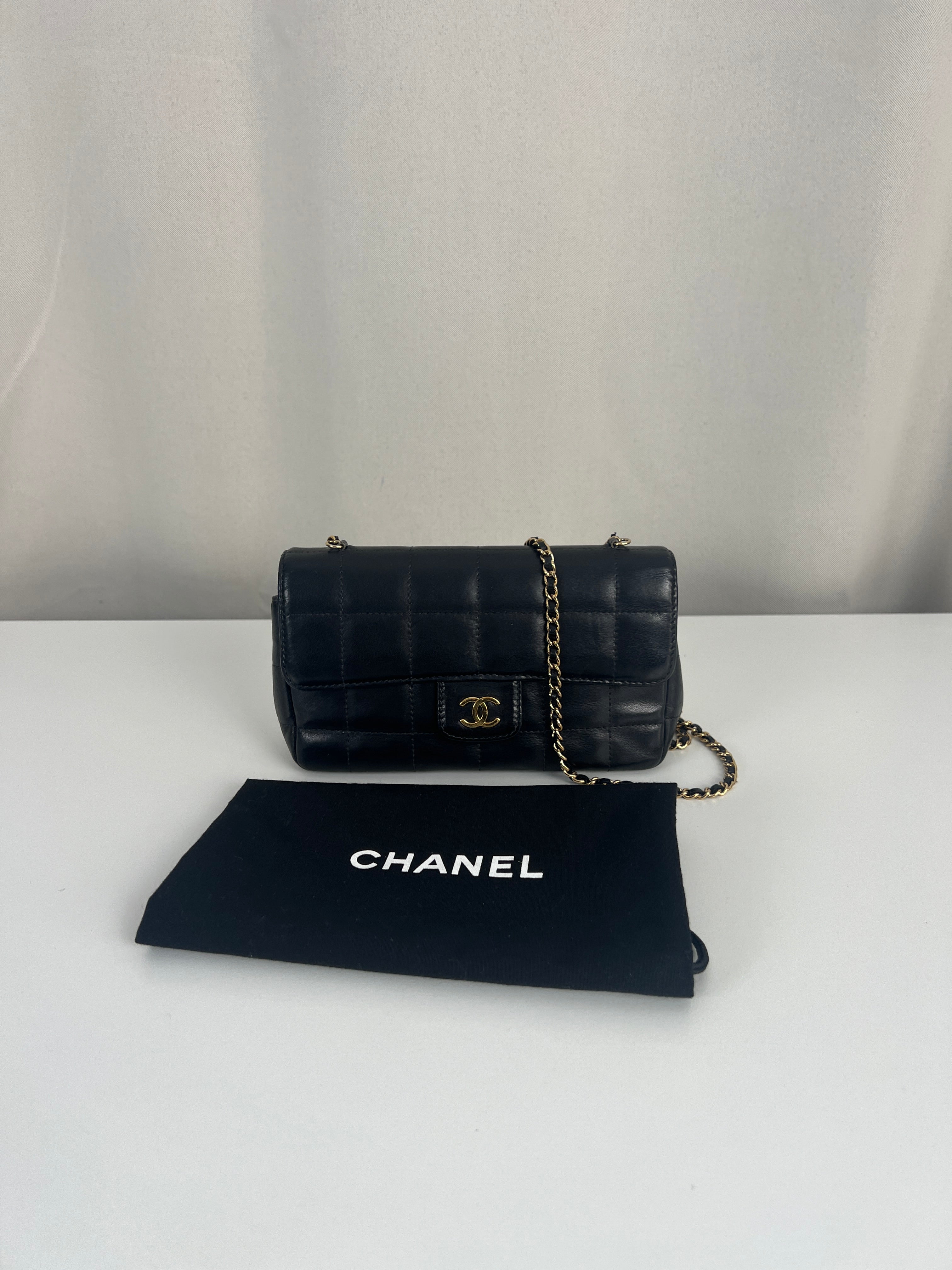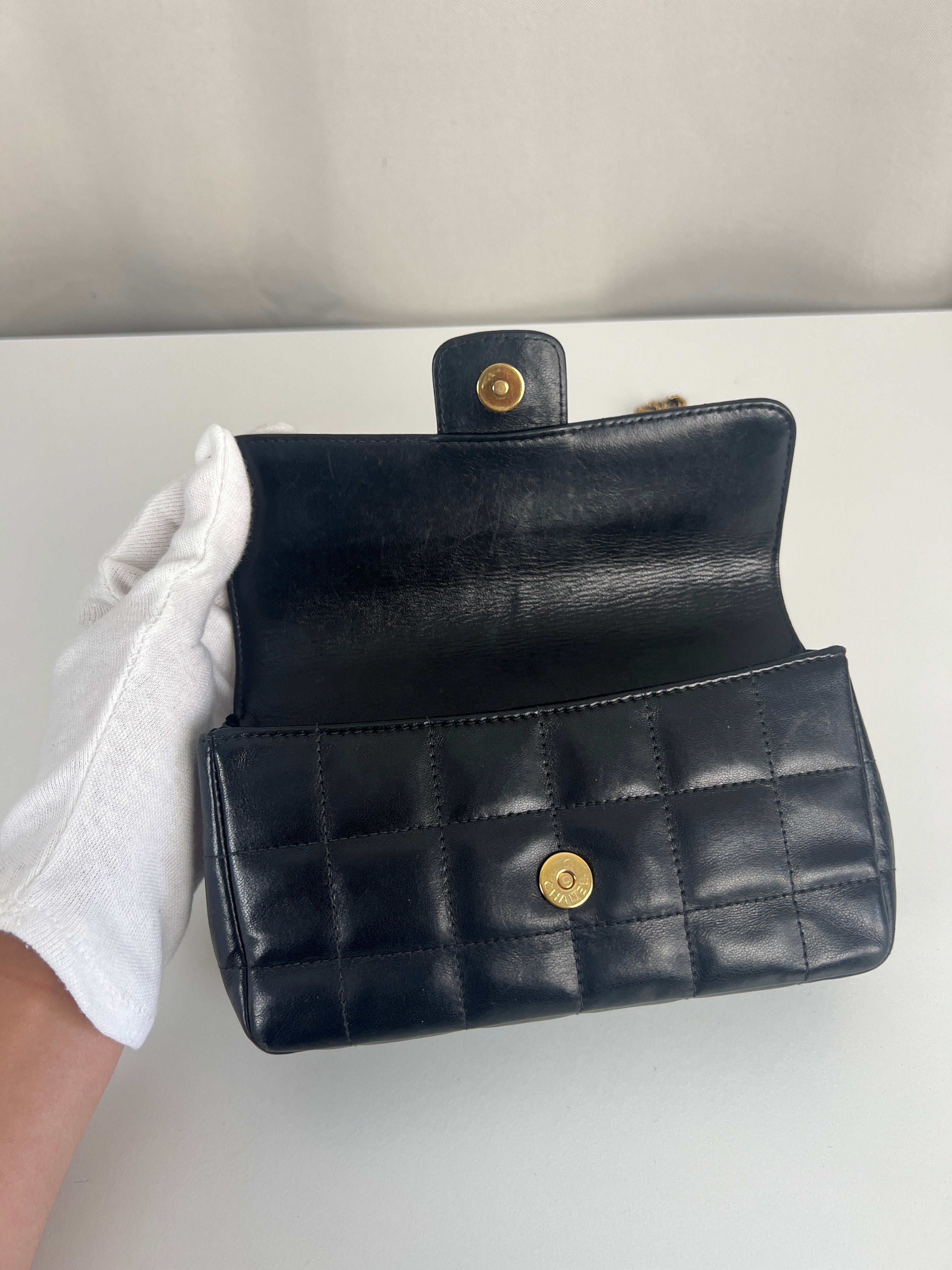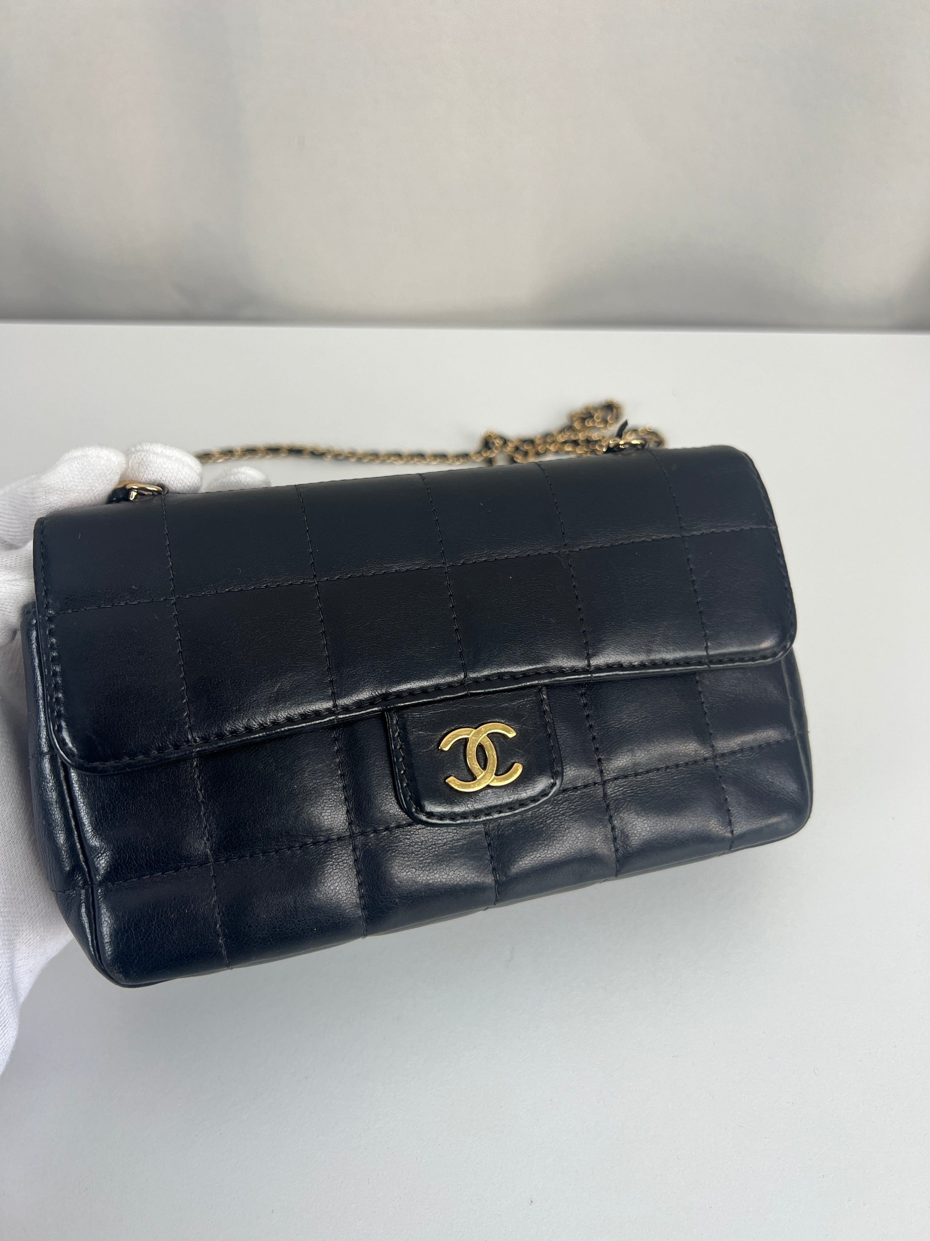 Ce petit sac "barre de chocolat" Chanel est en très bon état. Le cuir est en très bon état. Les coins sont un peu frottés. La bandoulière présente une partie en cuir un peu abîmée, rien de grave cependant. La bijouterie est en bon état. L'intérieur est en bon état. Vous pouvez voir qu'il a été un peu utilisé mais il est toujours en très bon état !