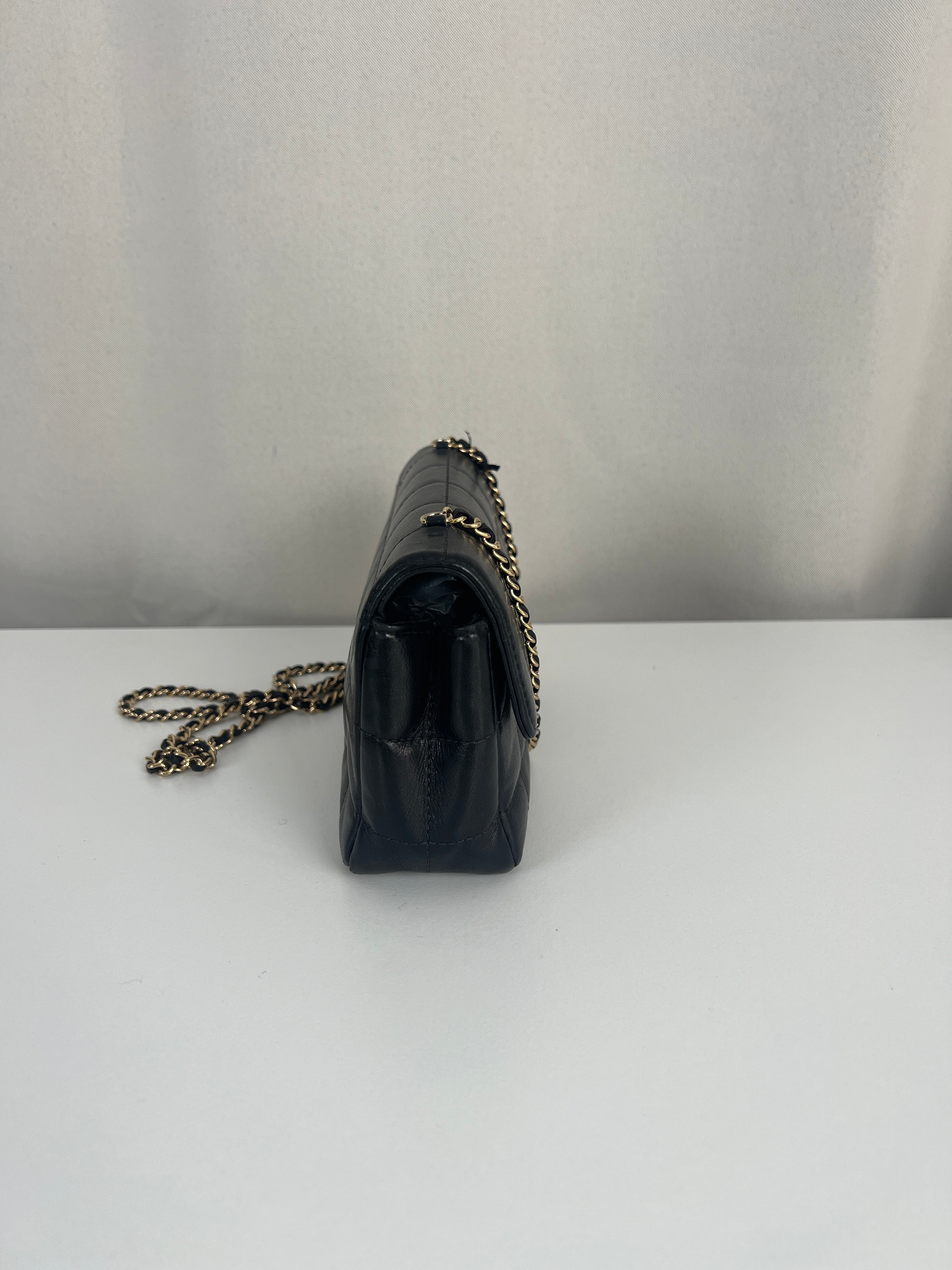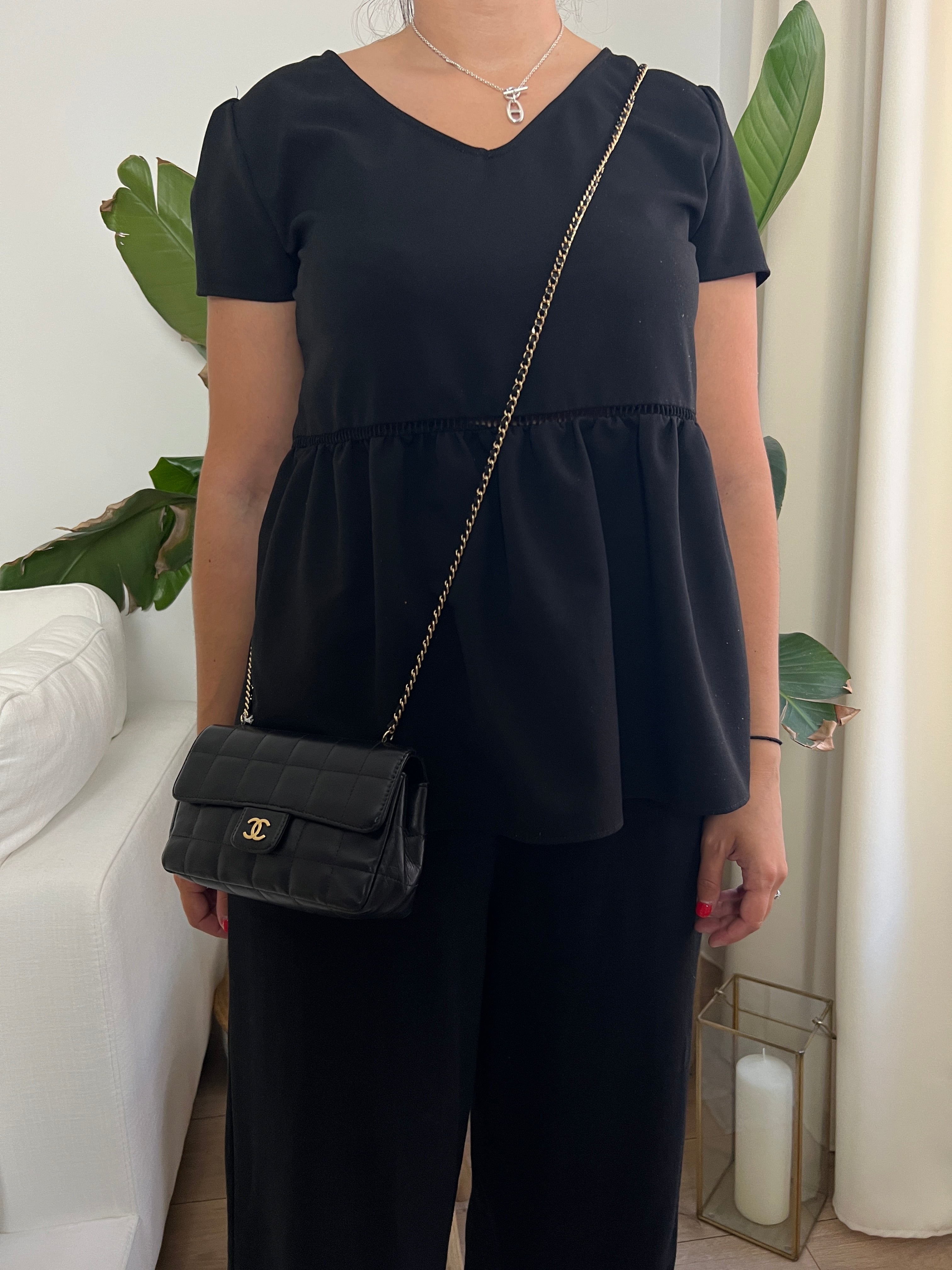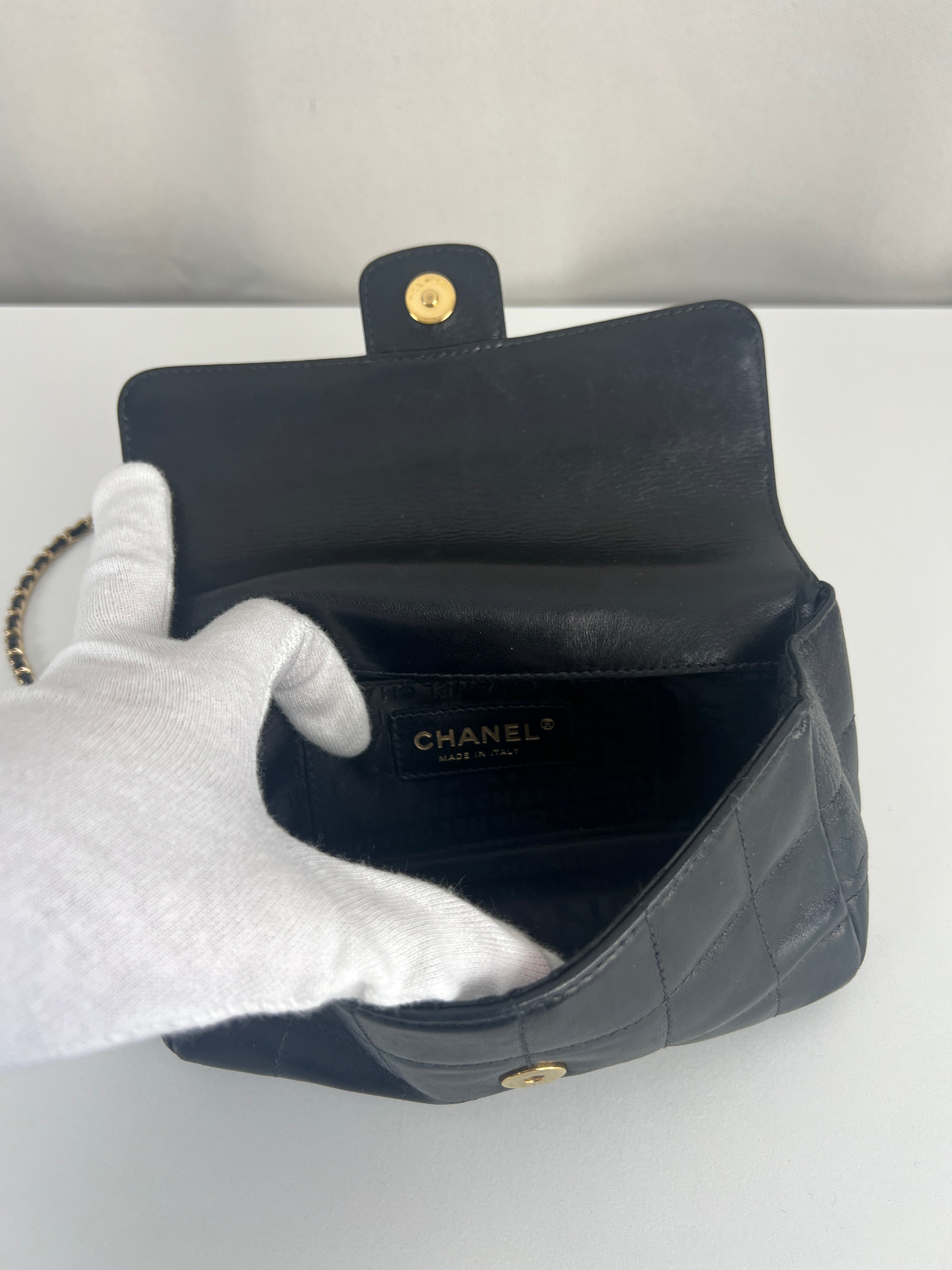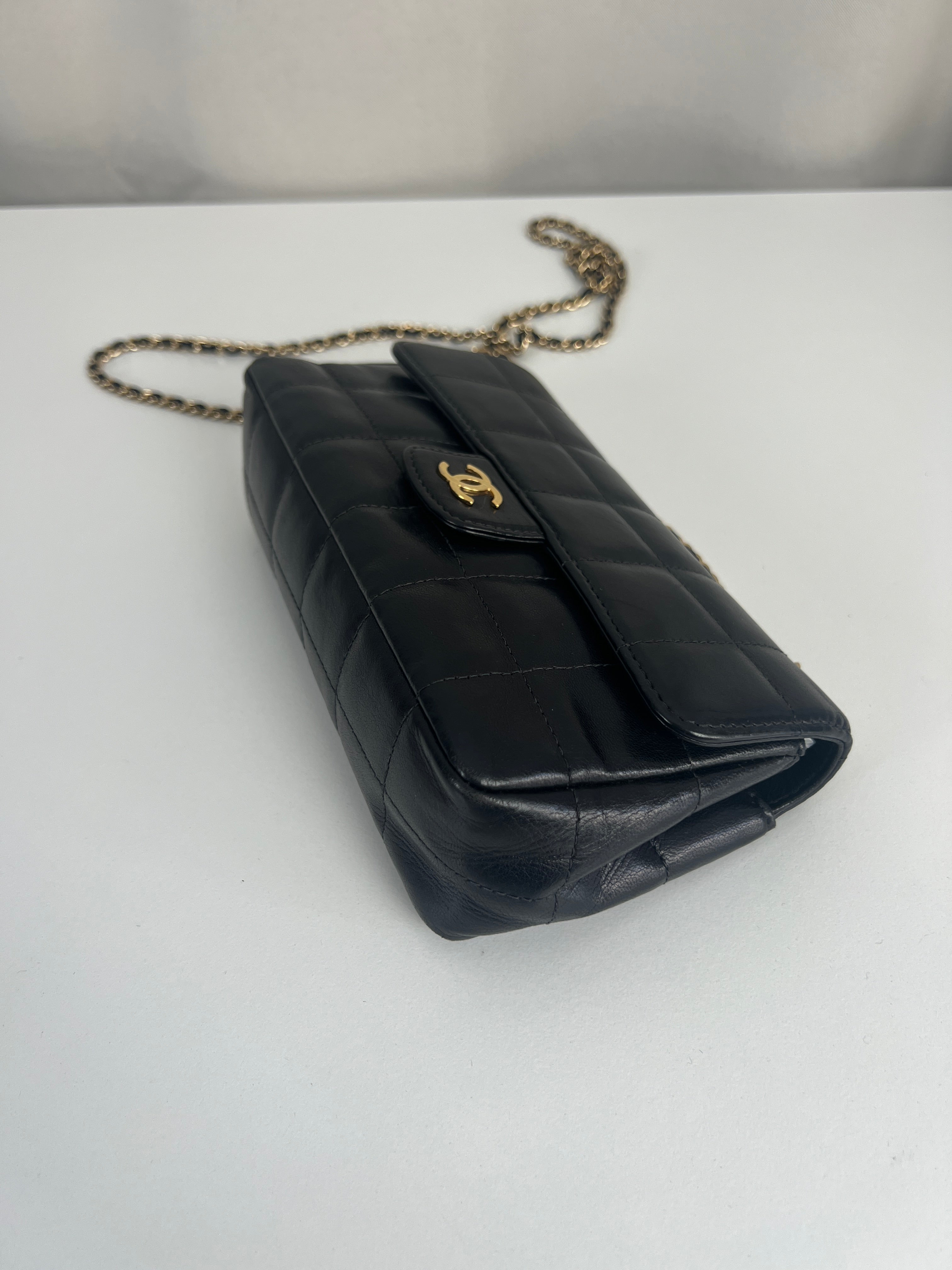 Ce petit sac "barre de chocolat" Chanel est en très bon état. Le cuir est en très bon état. Les coins sont un peu frottés. La bandoulière présente une partie en cuir un peu abîmée, rien de grave cependant. La bijouterie est en bon état. L'intérieur est en bon état. Vous pouvez voir qu'il a été un peu utilisé mais il est toujours en très bon état !