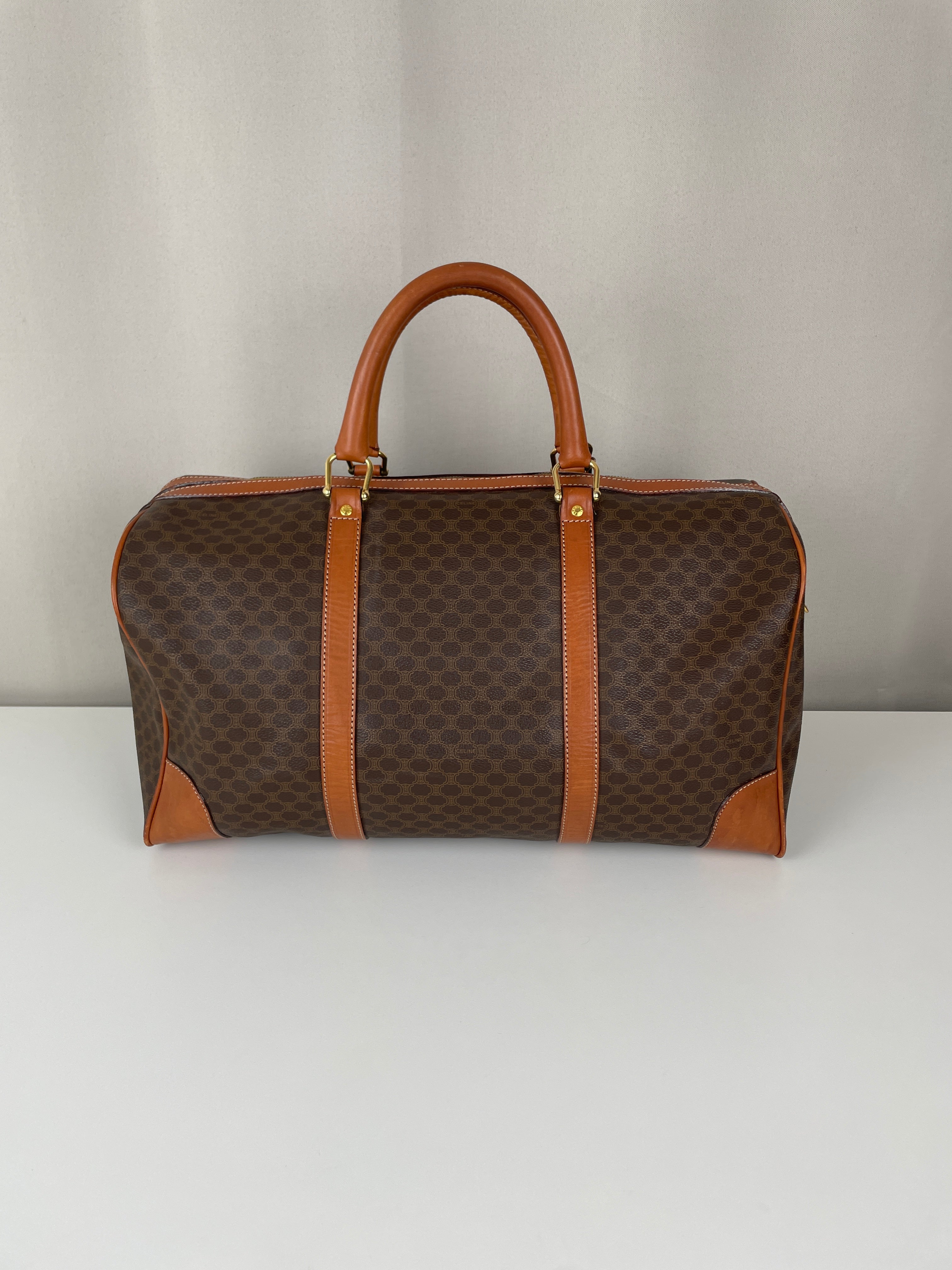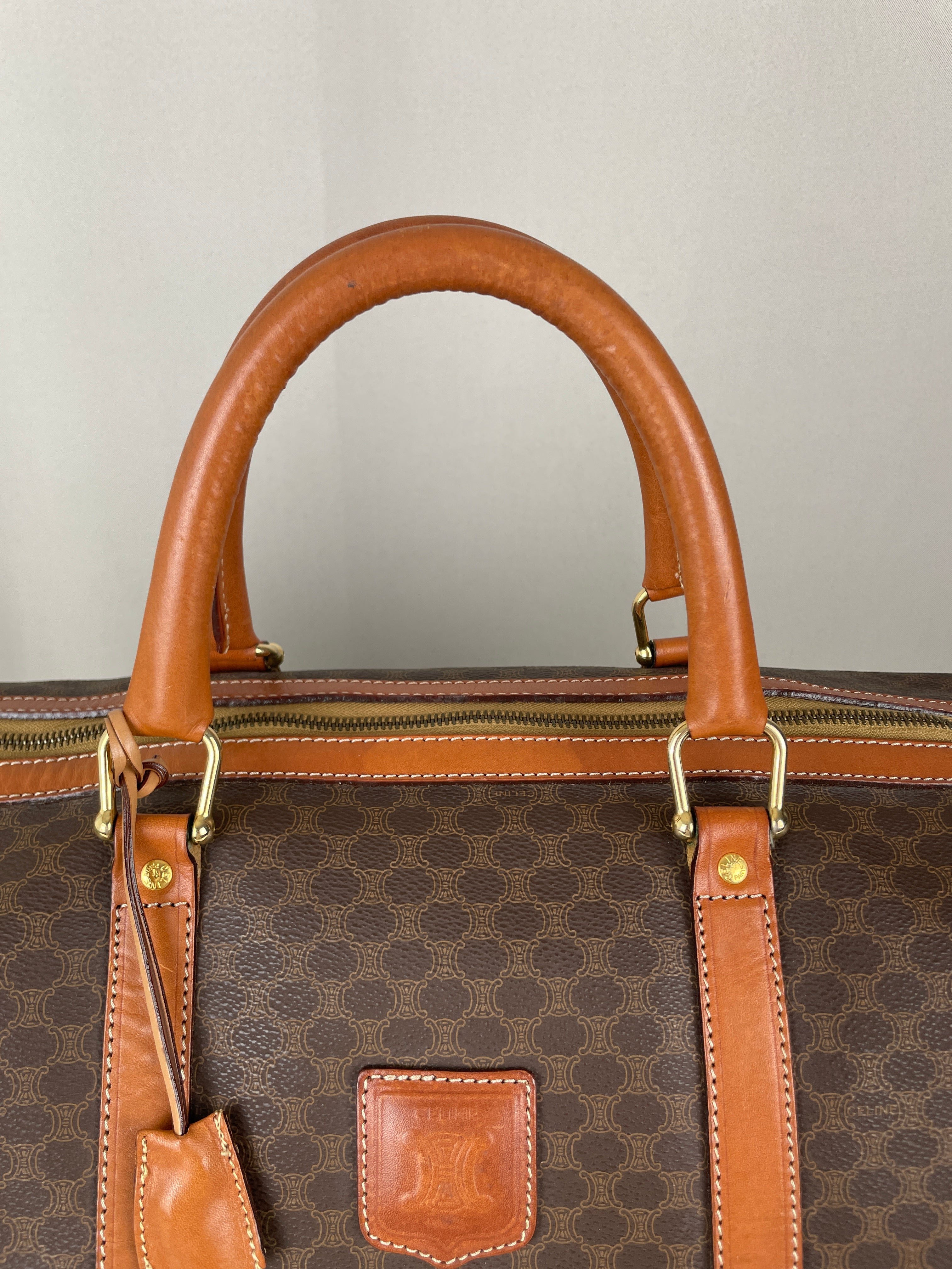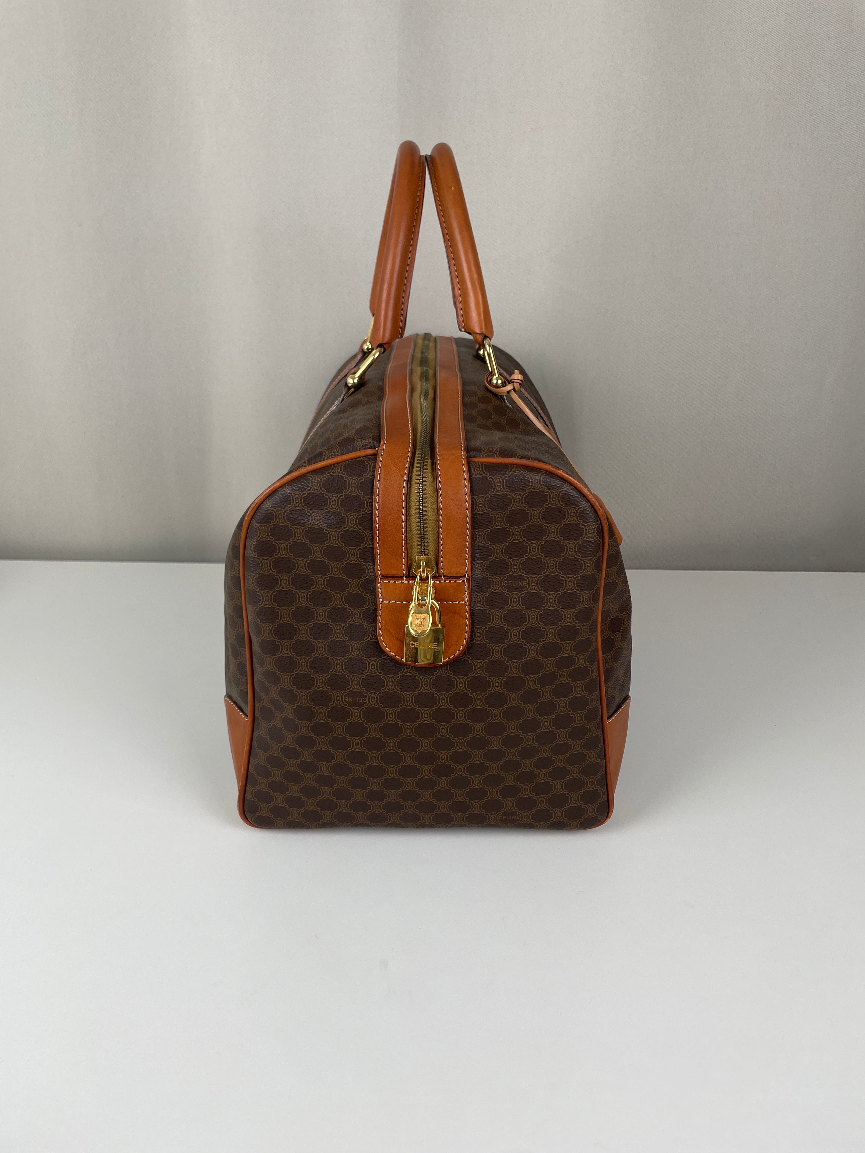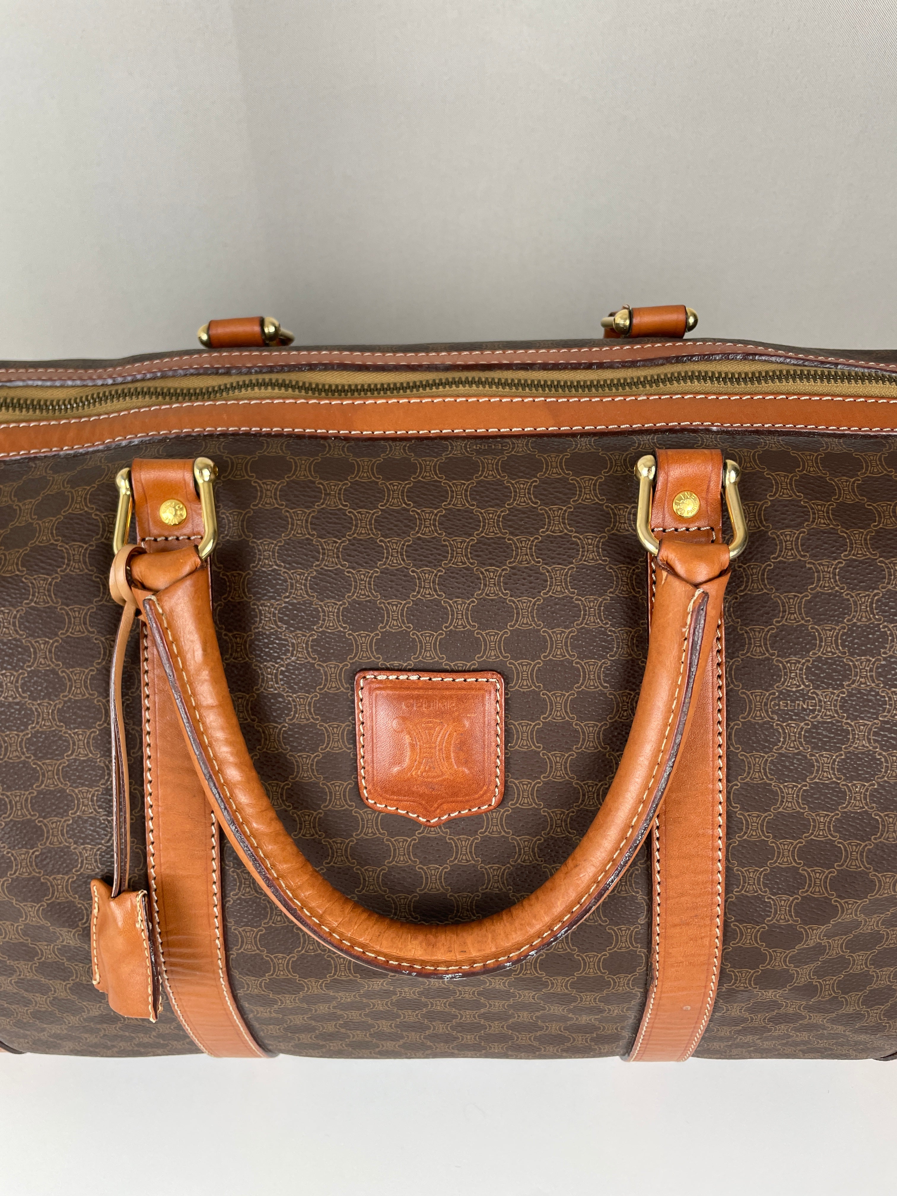 Le sac de voyage Boston est l'un des modèles les plus pratiques et sophistiqués de Céline. Cette édition en toile et cuir marron illustre l'expertise de la maison en matière de matériaux mixtes et de luxe fonctionnel. Une pièce intemporelle qui incarne l'élégance discrète de Céline et représente le compagnon de voyage parfait avec un caractère authentique acquis par un usage délicat.