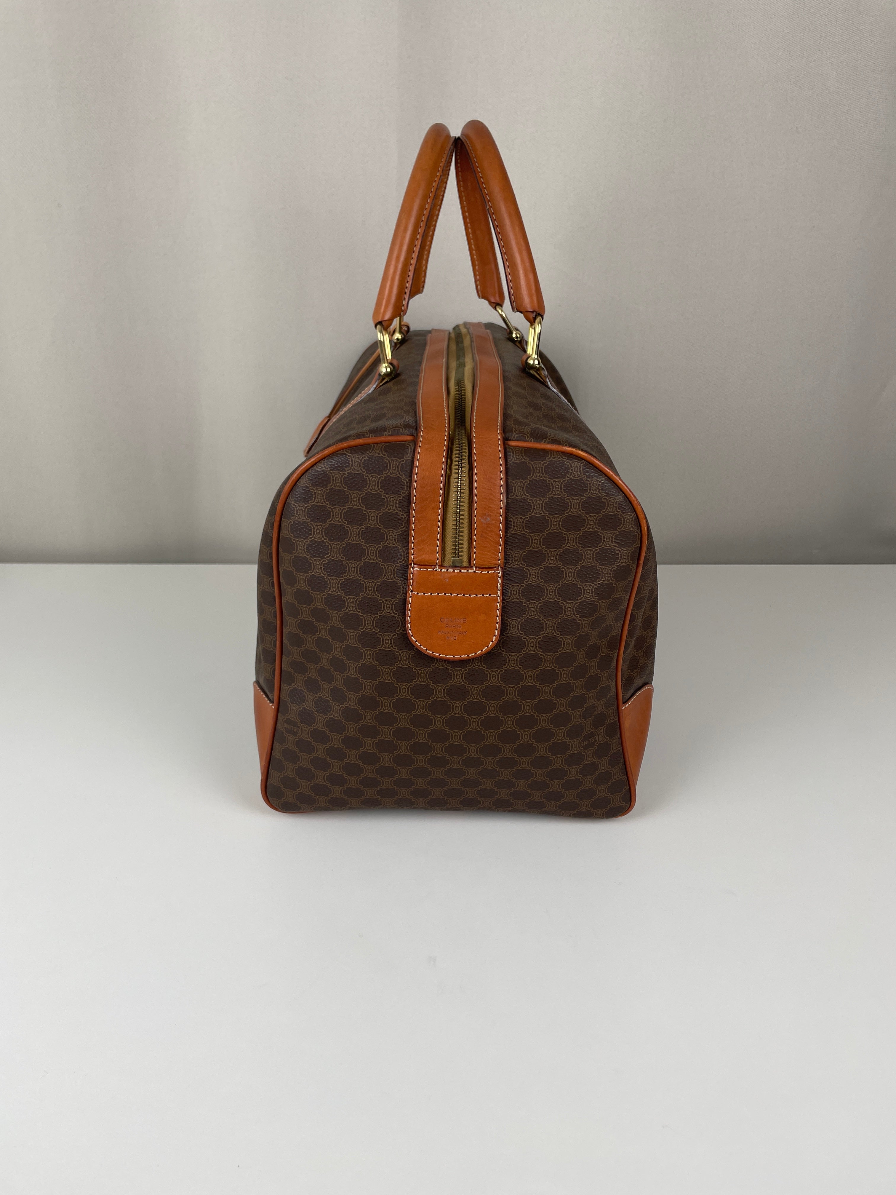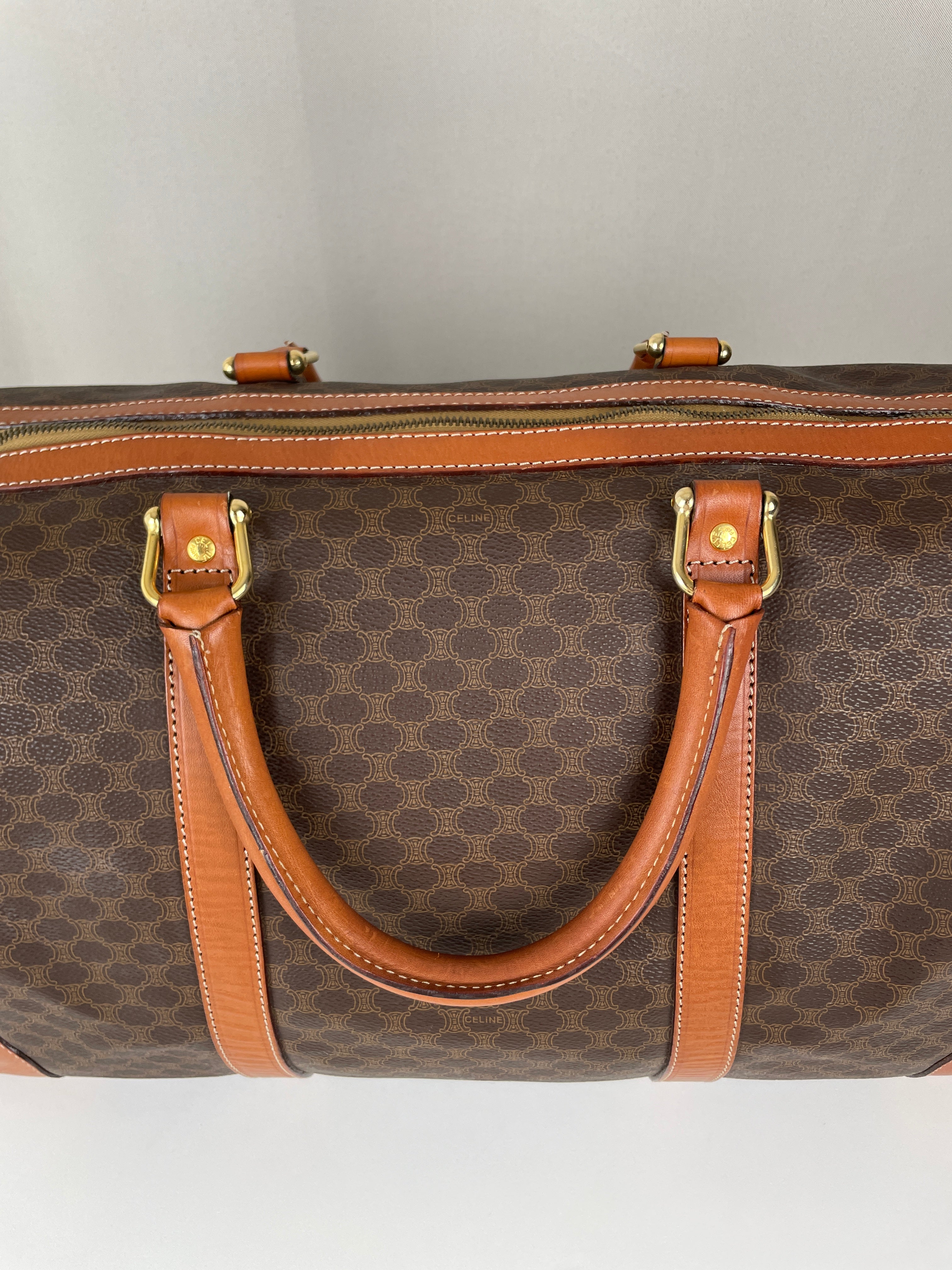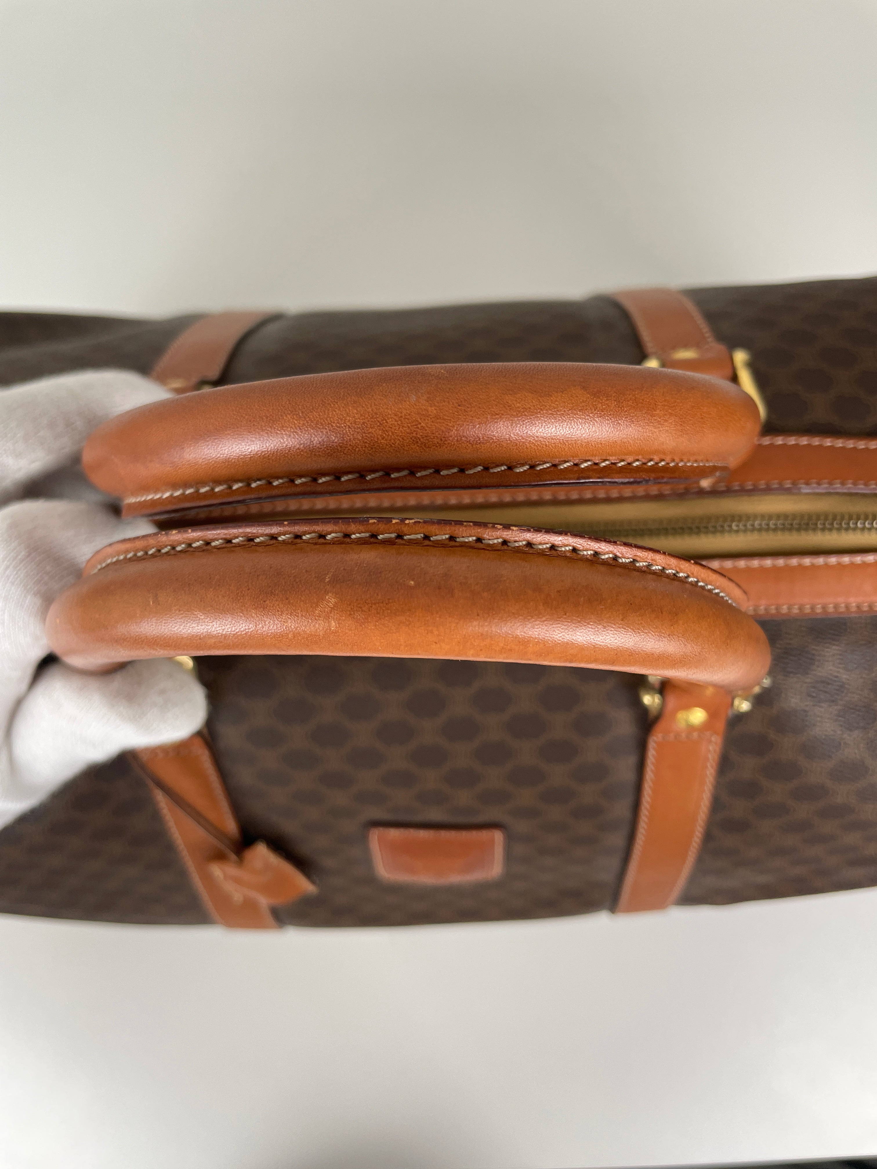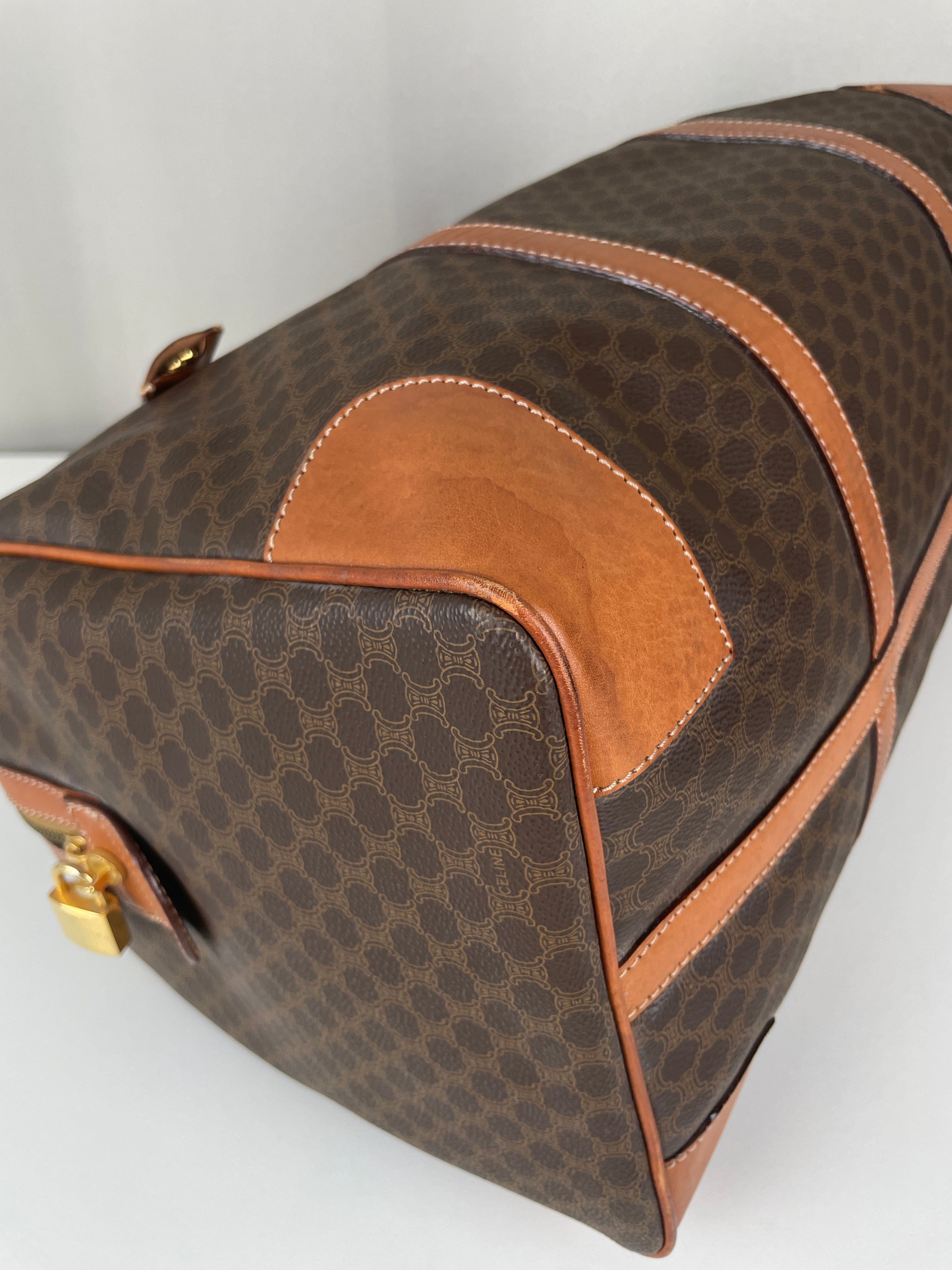 Le sac de voyage Boston est l'un des modèles les plus pratiques et sophistiqués de Céline. Cette édition en toile et cuir marron illustre l'expertise de la maison en matière de matériaux mixtes et de luxe fonctionnel. Une pièce intemporelle qui incarne l'élégance discrète de Céline et représente le compagnon de voyage parfait avec un caractère authentique acquis par un usage délicat.
