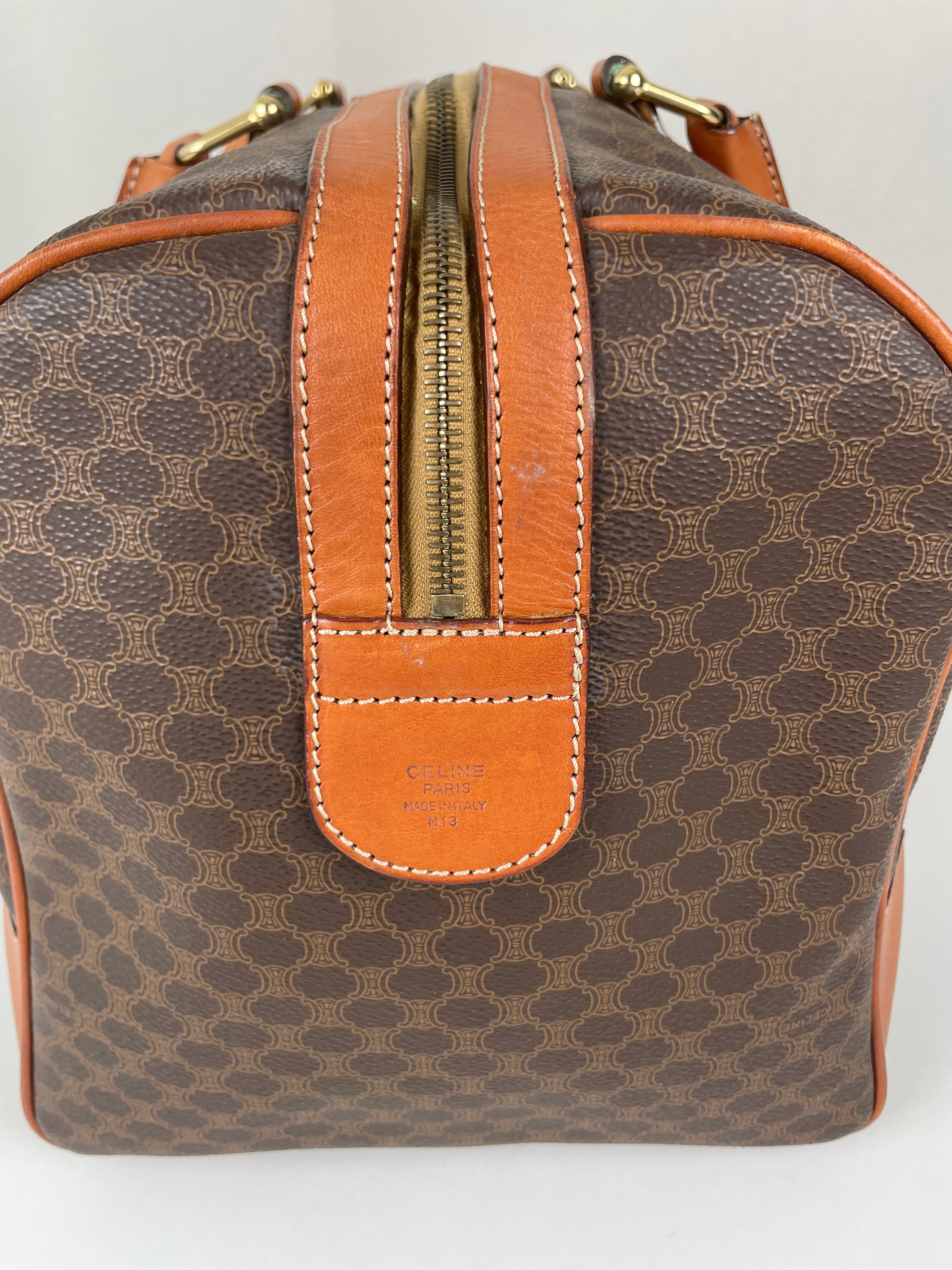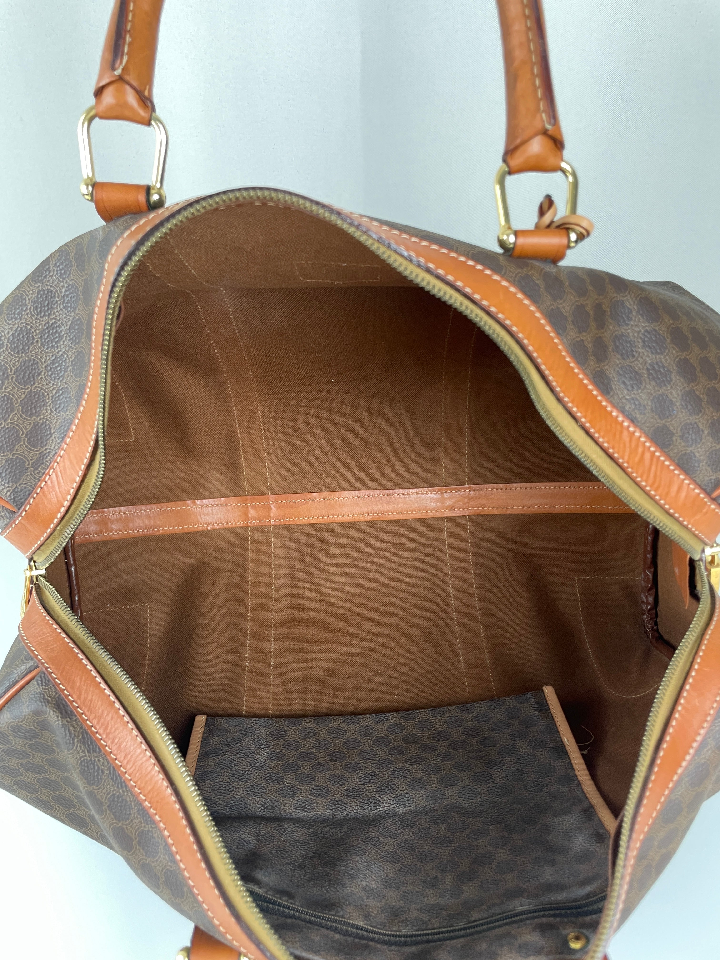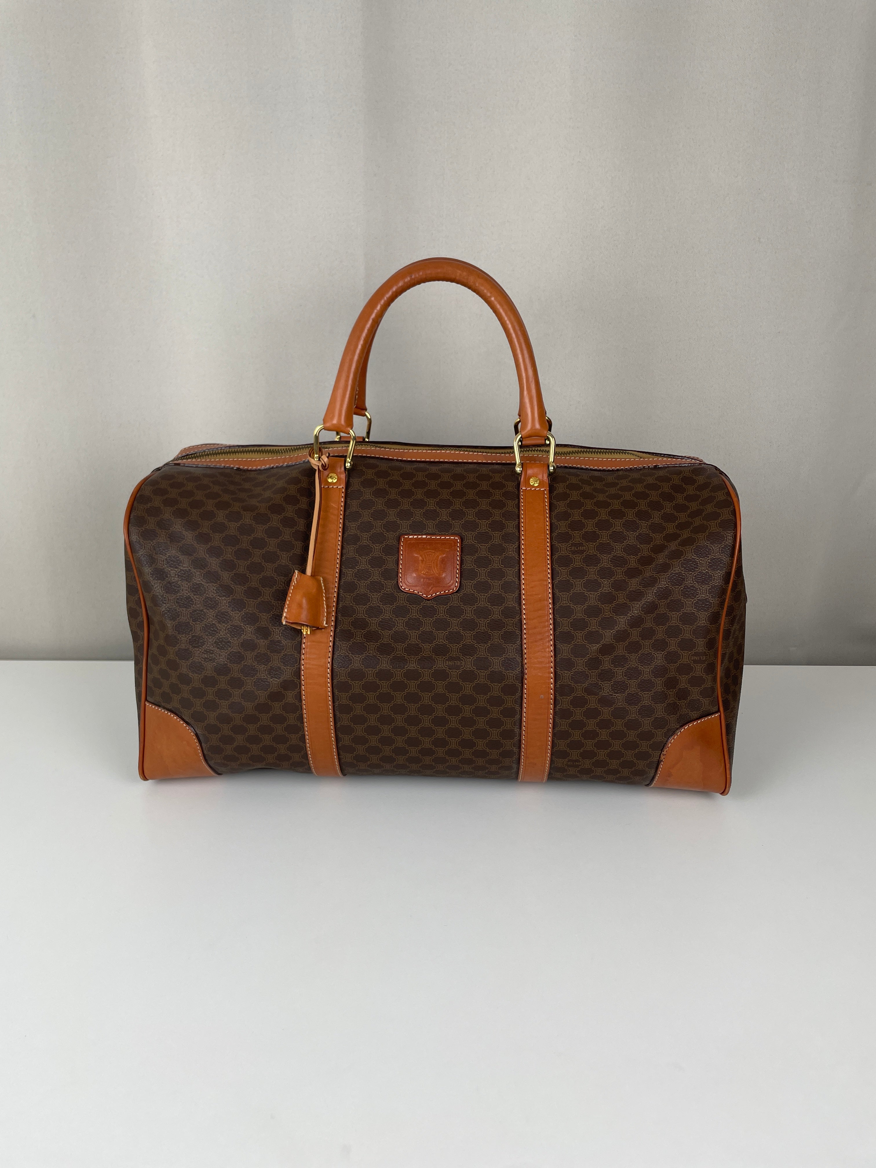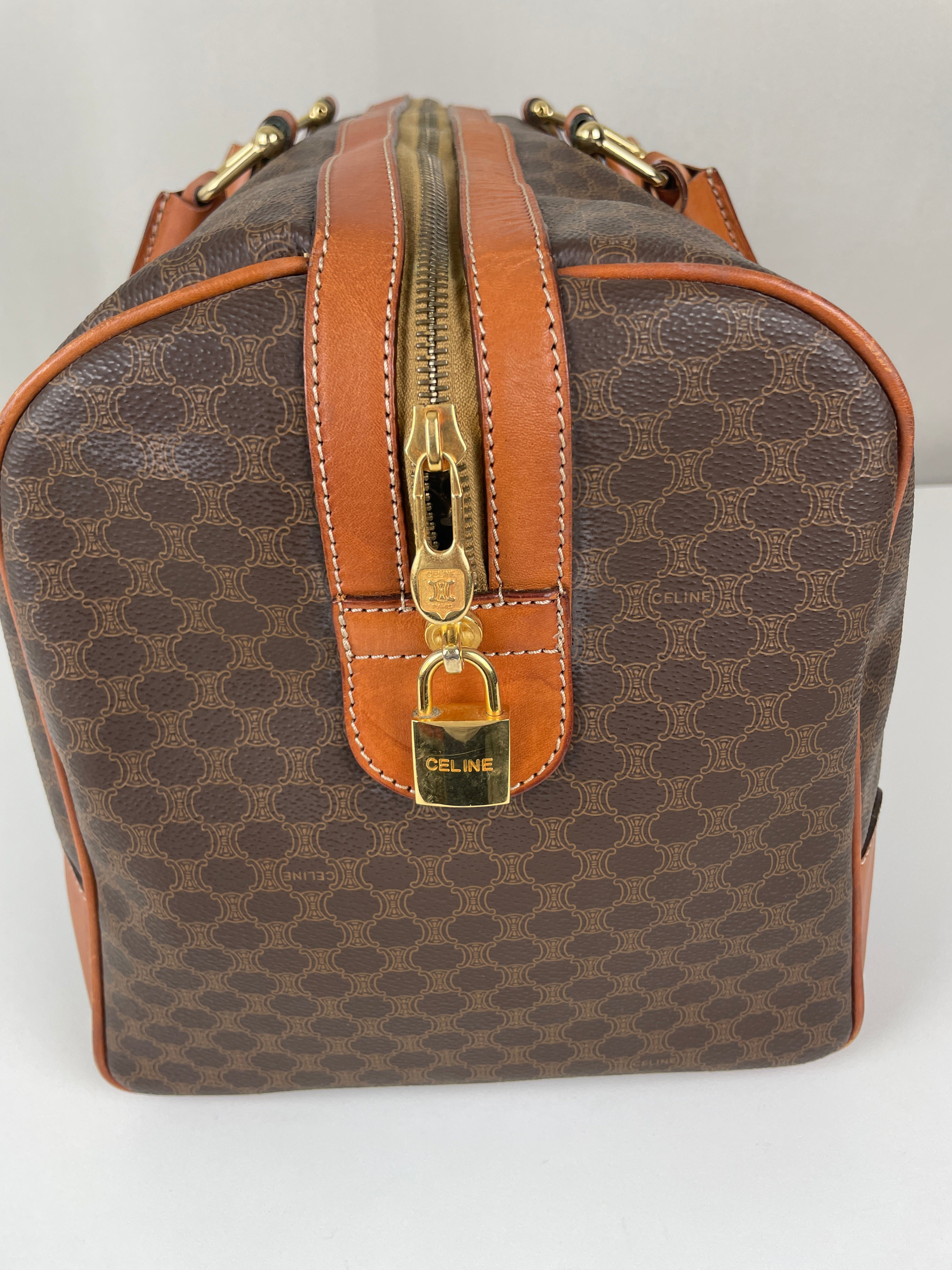 Le sac de voyage Boston est l'un des modèles les plus pratiques et sophistiqués de Céline. Cette édition en toile et cuir marron illustre l'expertise de la maison en matière de matériaux mixtes et de luxe fonctionnel. Une pièce intemporelle qui incarne l'élégance discrète de Céline et représente le compagnon de voyage parfait avec un caractère authentique acquis par un usage délicat.