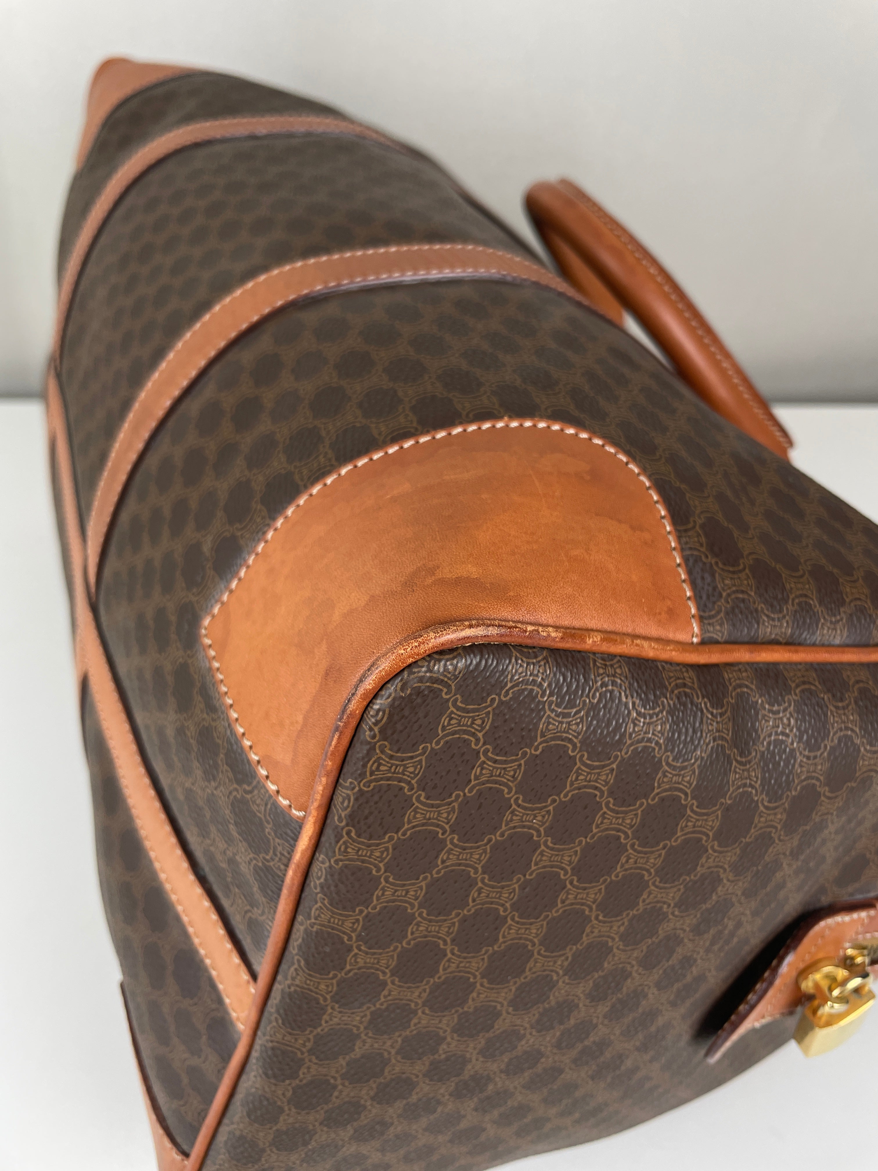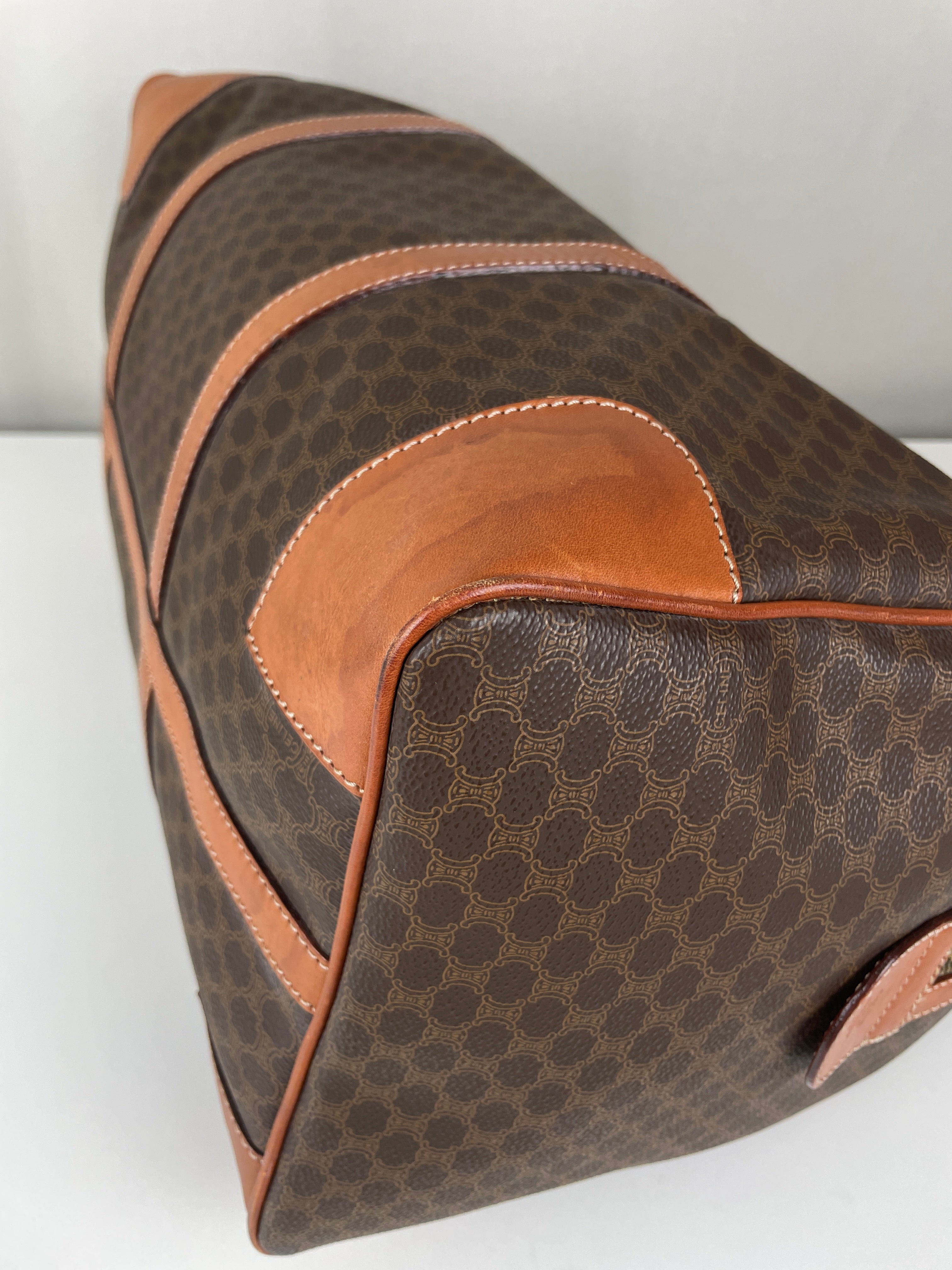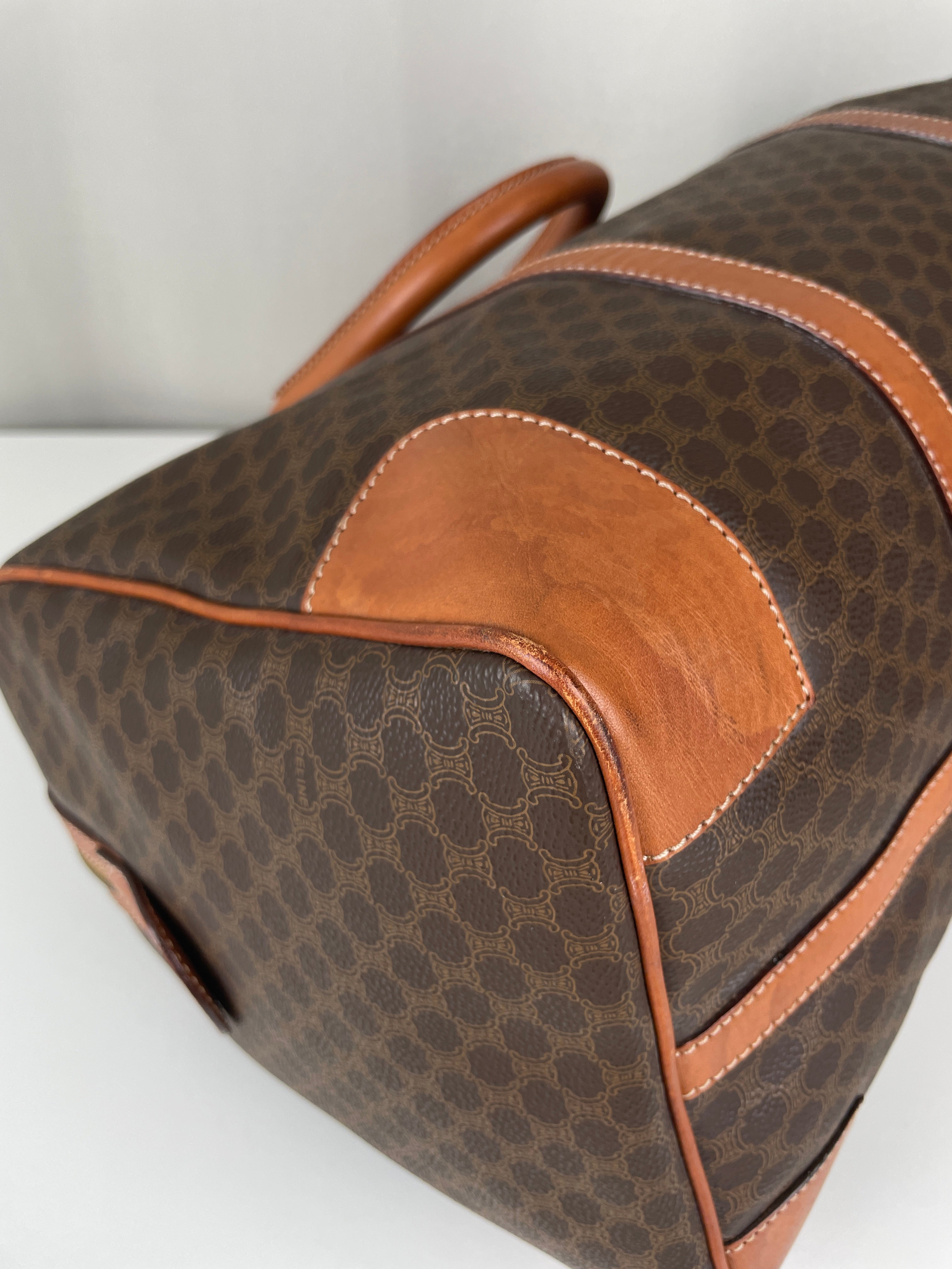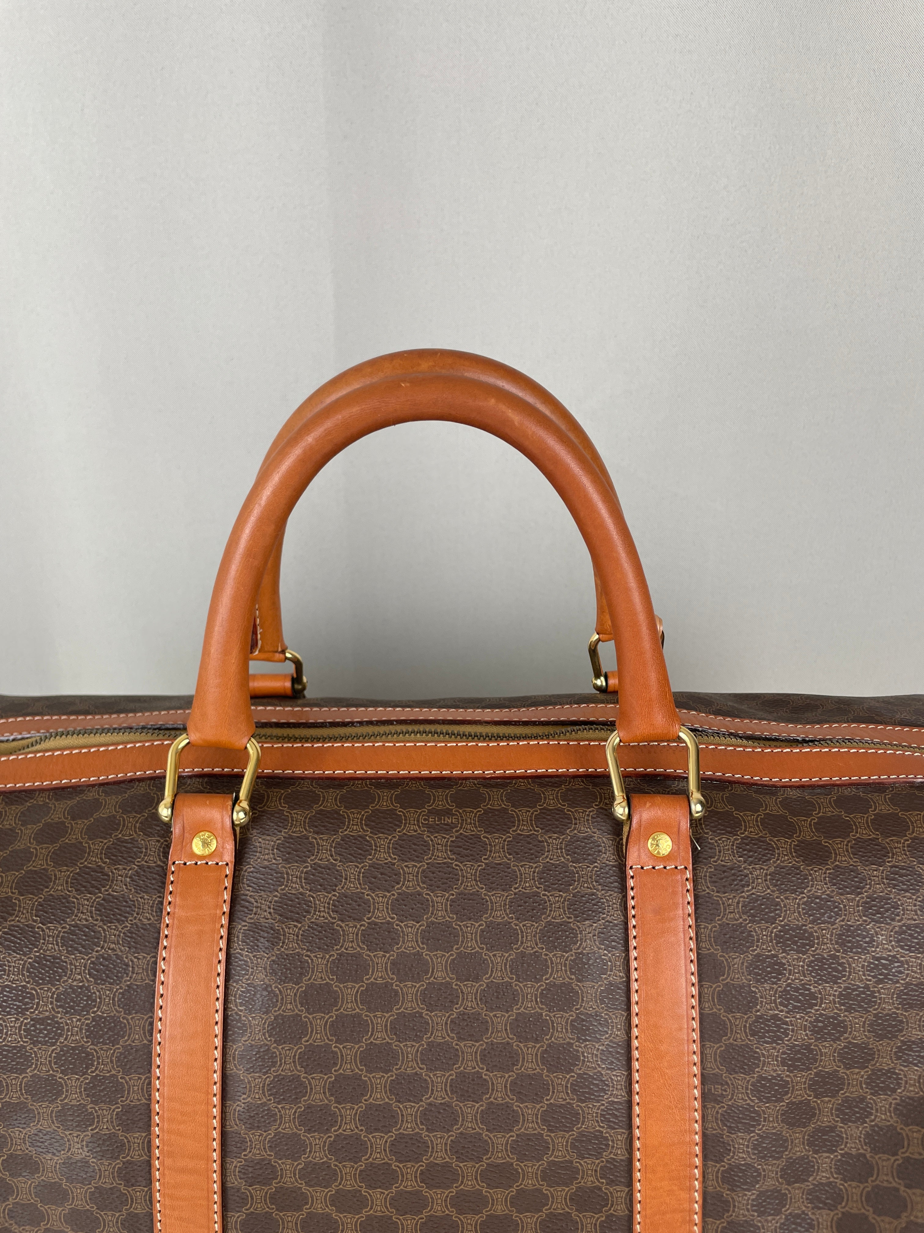 Le sac de voyage Boston est l'un des modèles les plus pratiques et sophistiqués de Céline. Cette édition en toile et cuir marron illustre l'expertise de la maison en matière de matériaux mixtes et de luxe fonctionnel. Une pièce intemporelle qui incarne l'élégance discrète de Céline et représente le compagnon de voyage parfait avec un caractère authentique acquis par un usage délicat.