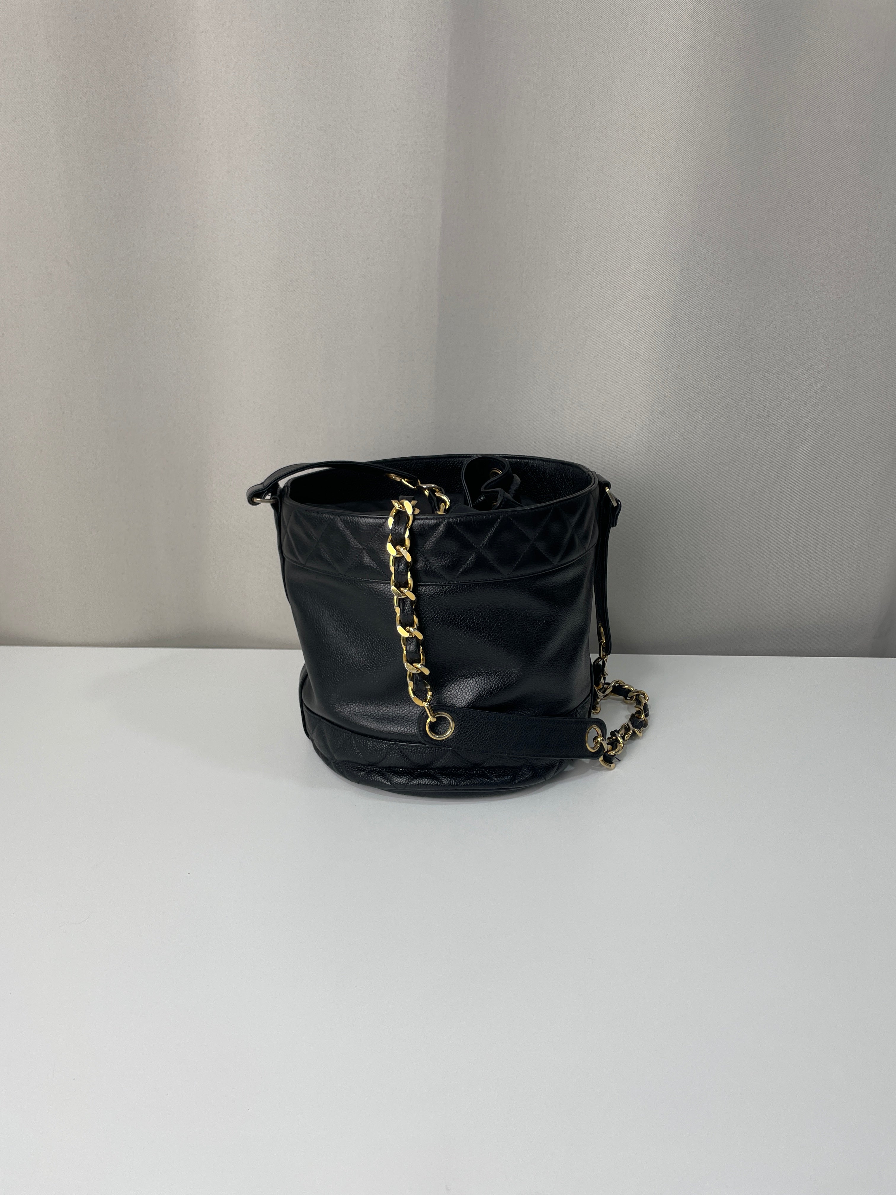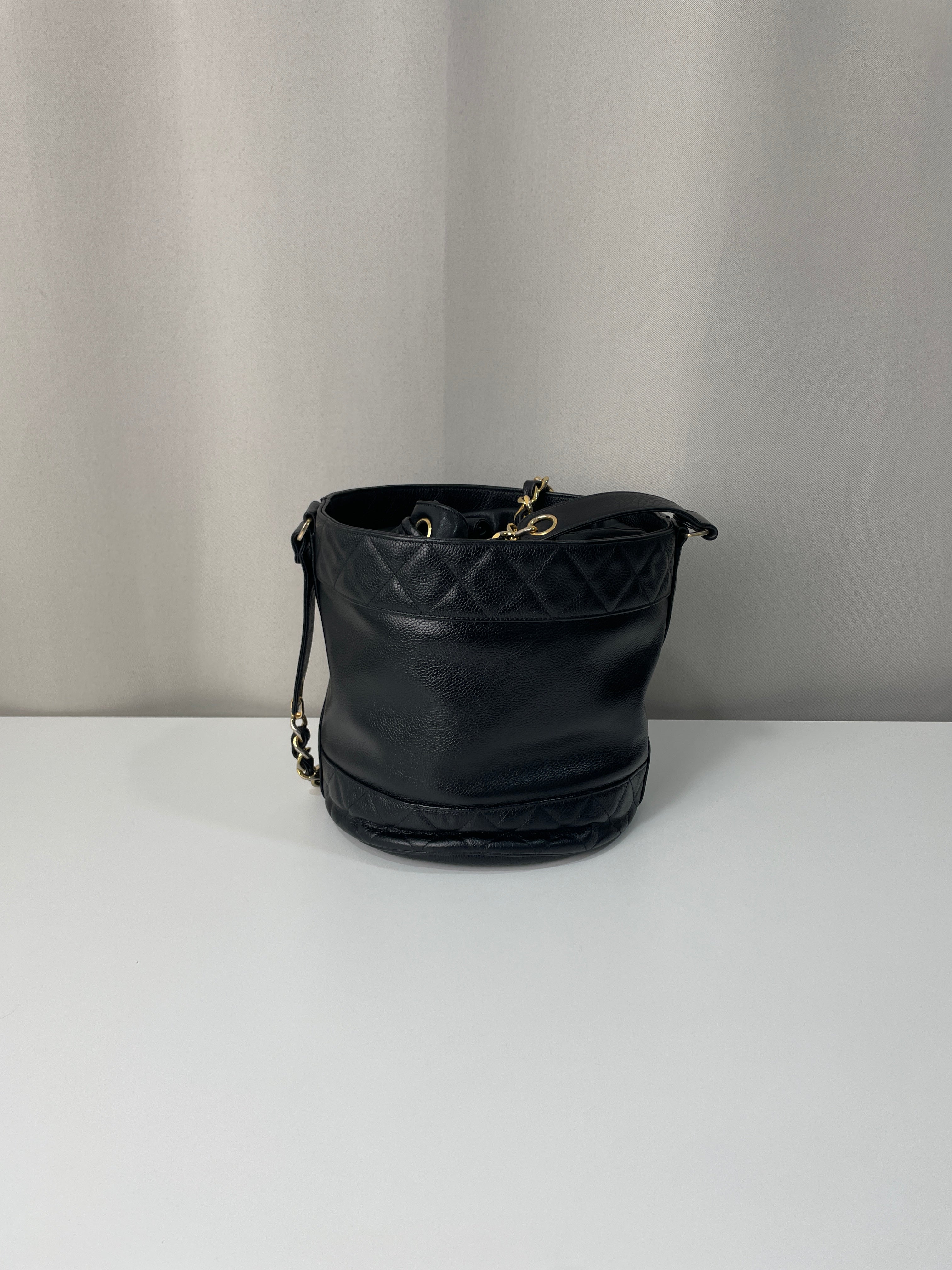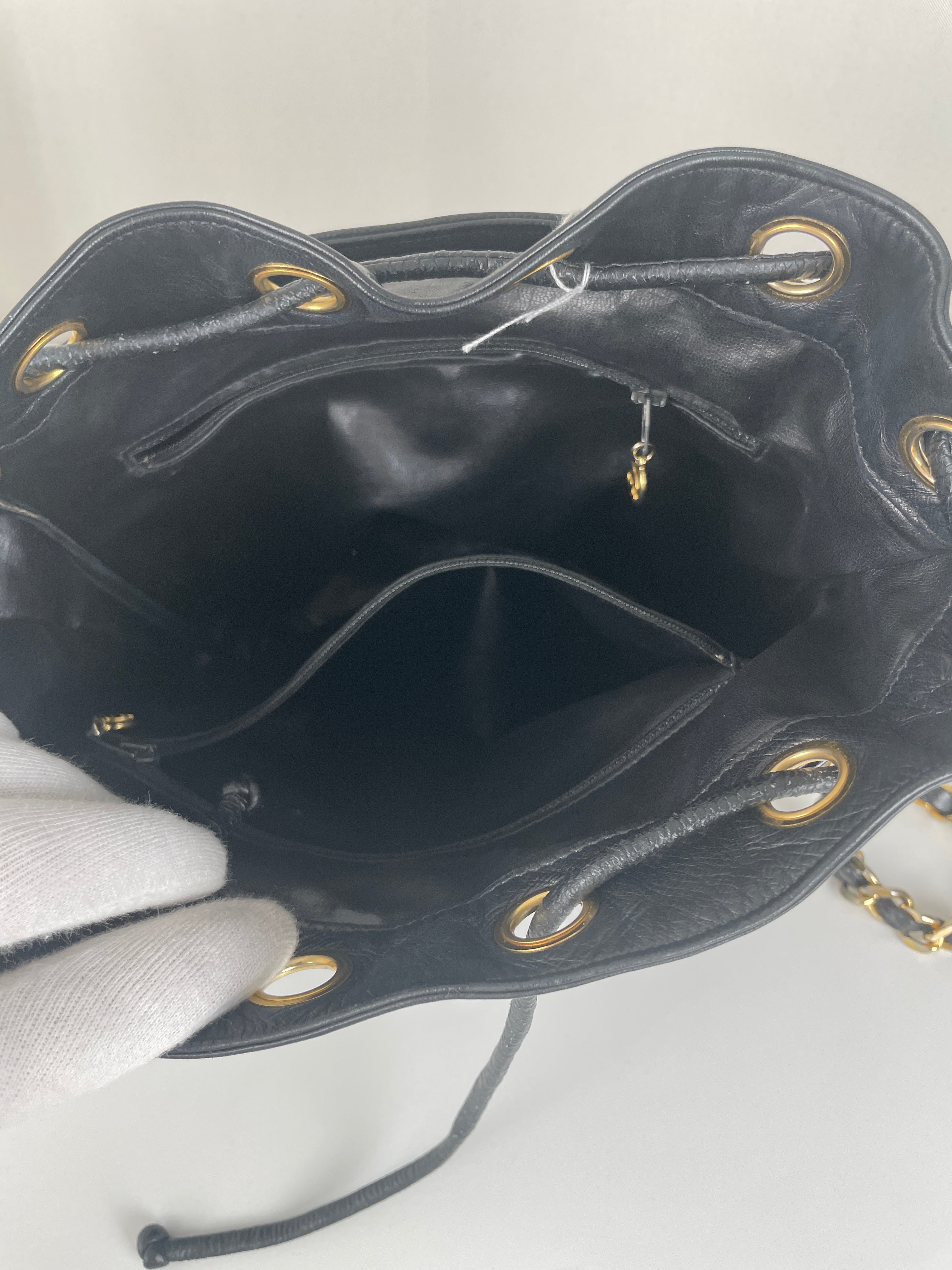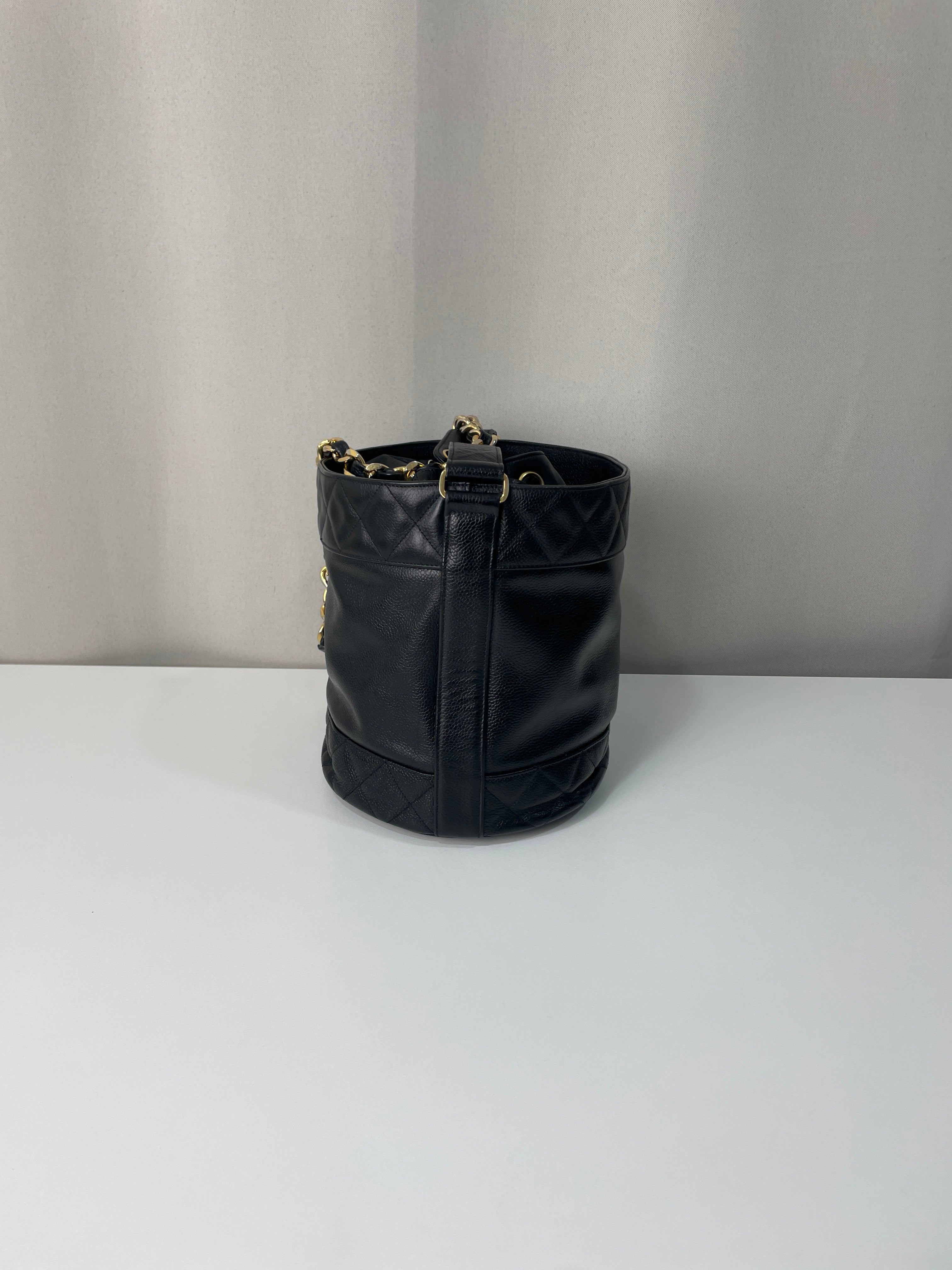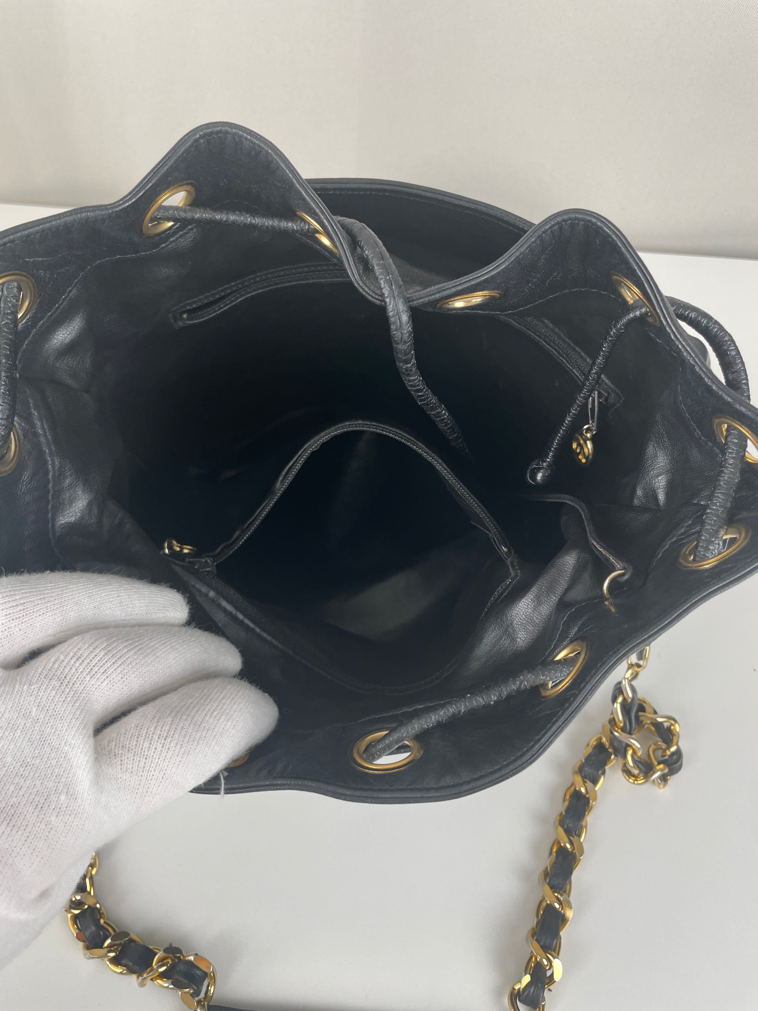 Le Bucket est l'un des modèles vintage les plus distinctifs et recherchés de Chanel. Cette édition en cuir noir de 1989-1991 illustre le savoir-faire intemporel de la maison avec plus de trois décennies de caractère authentique. Une pièce vintage rare qui incarne l'héritage de Chanel et représente un véritable objet de collection de l'âge d'or de la mode de luxe.