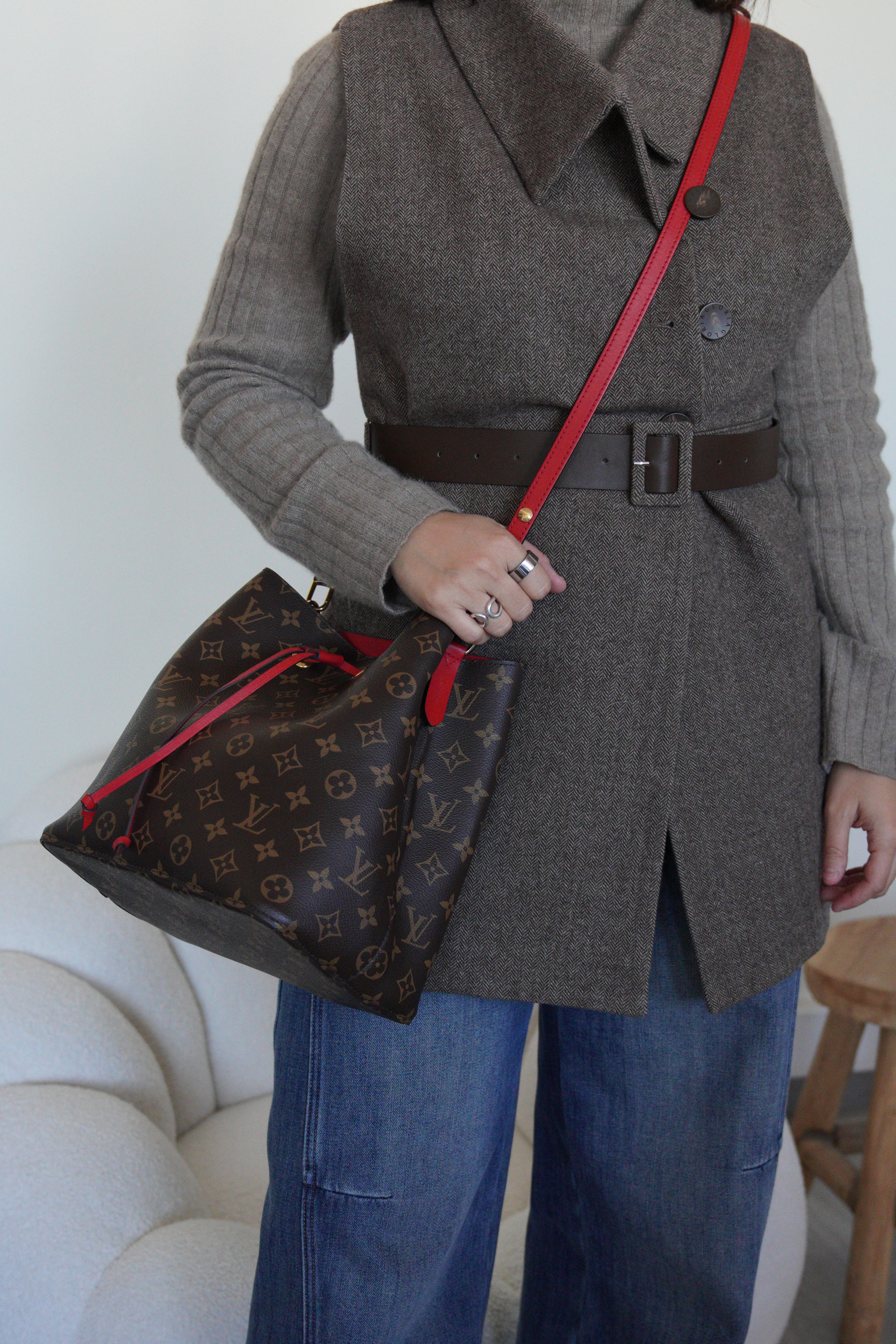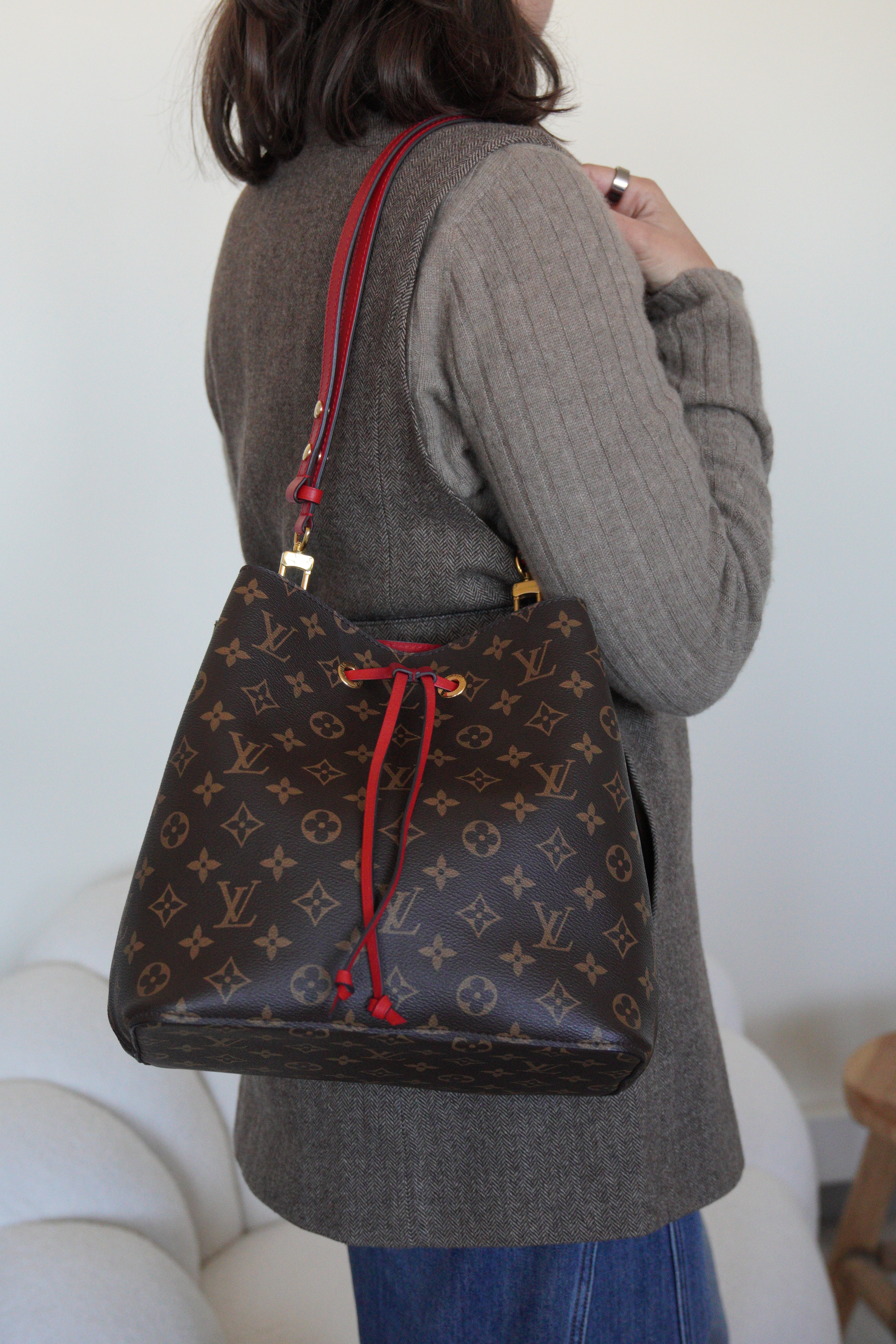 Néo Noé MM monogram et cuir rouge Louis Vuitton