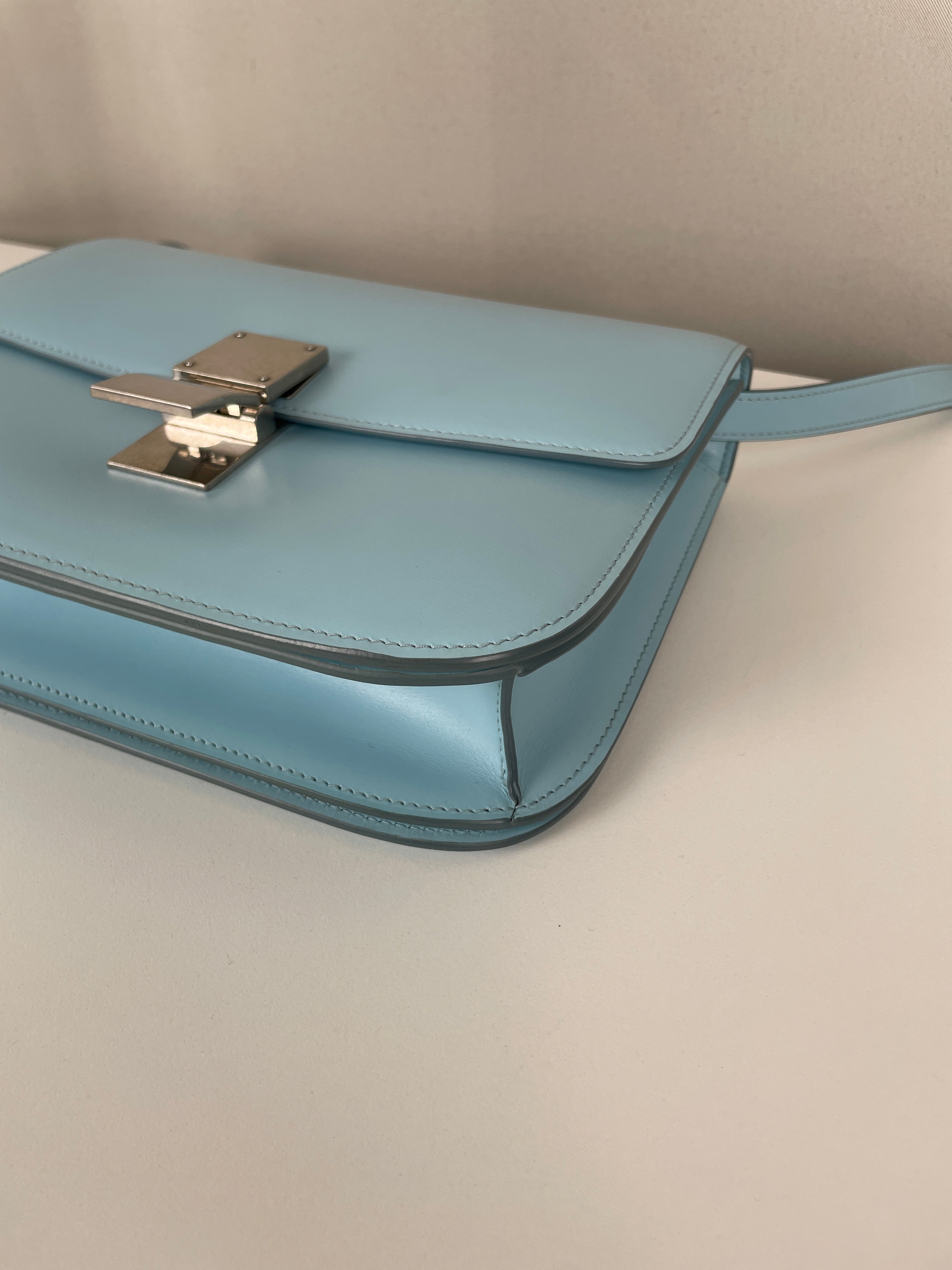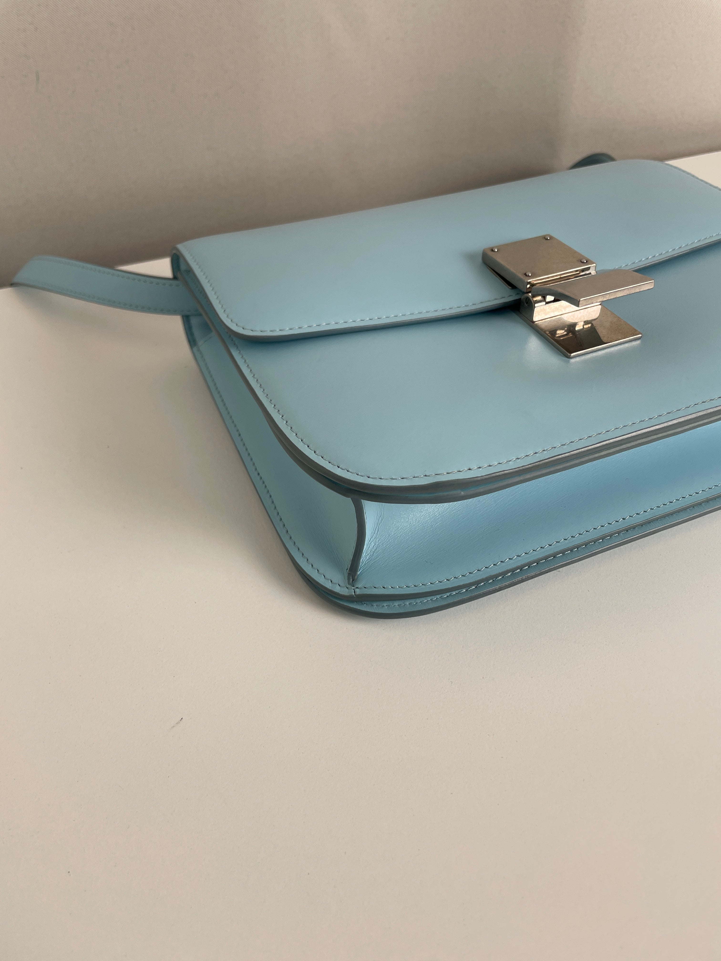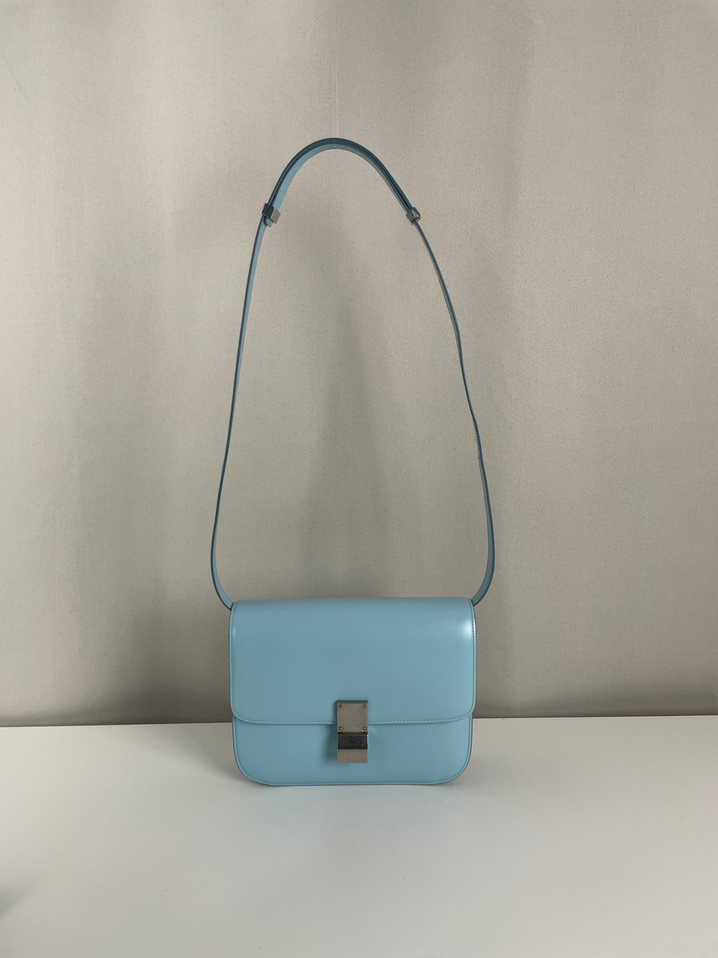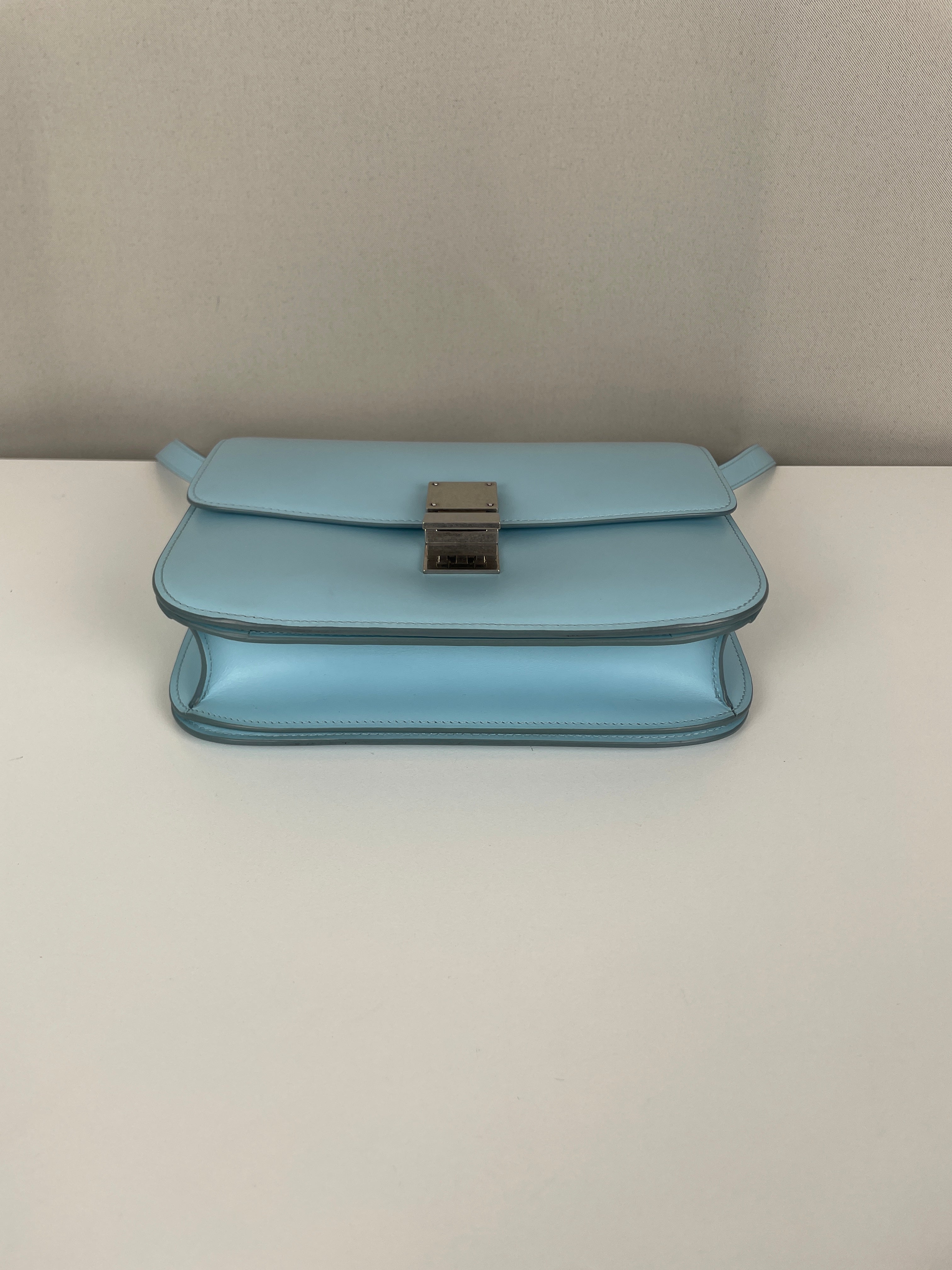 Cet sac Céline Box est en très bon état. Le cuir est en très bon état, on voit qu'il a déjà été porté (pas neuf mais top) mais reste super. Les coins sont en très bon état. La bijouterie présente quelques rayures. La bandoulière est en très bon état. L'intérieur est en très bon état.
