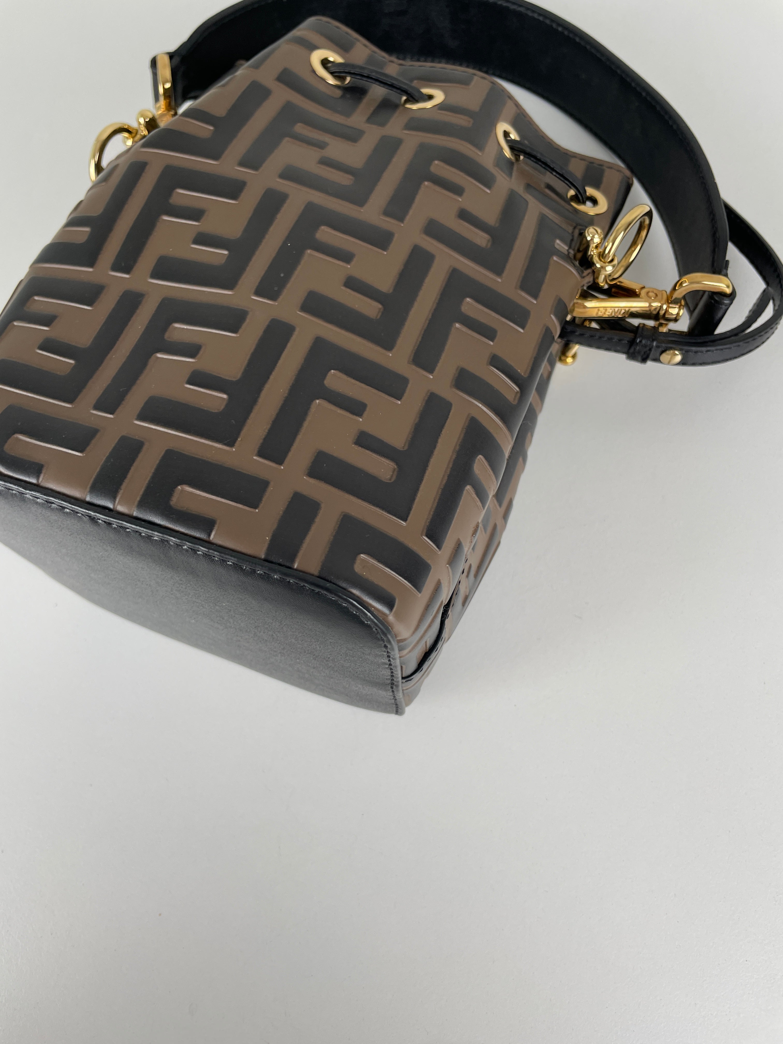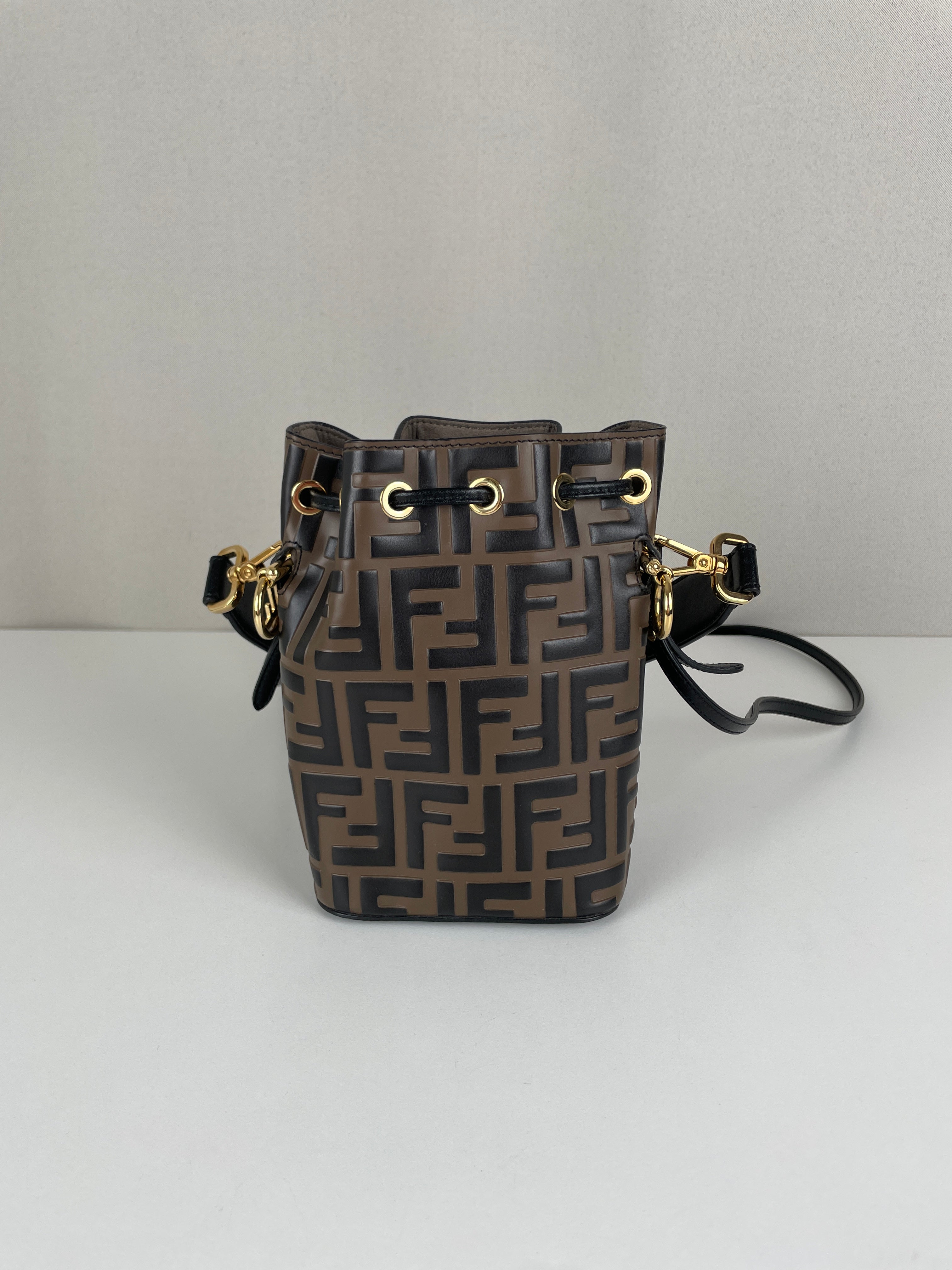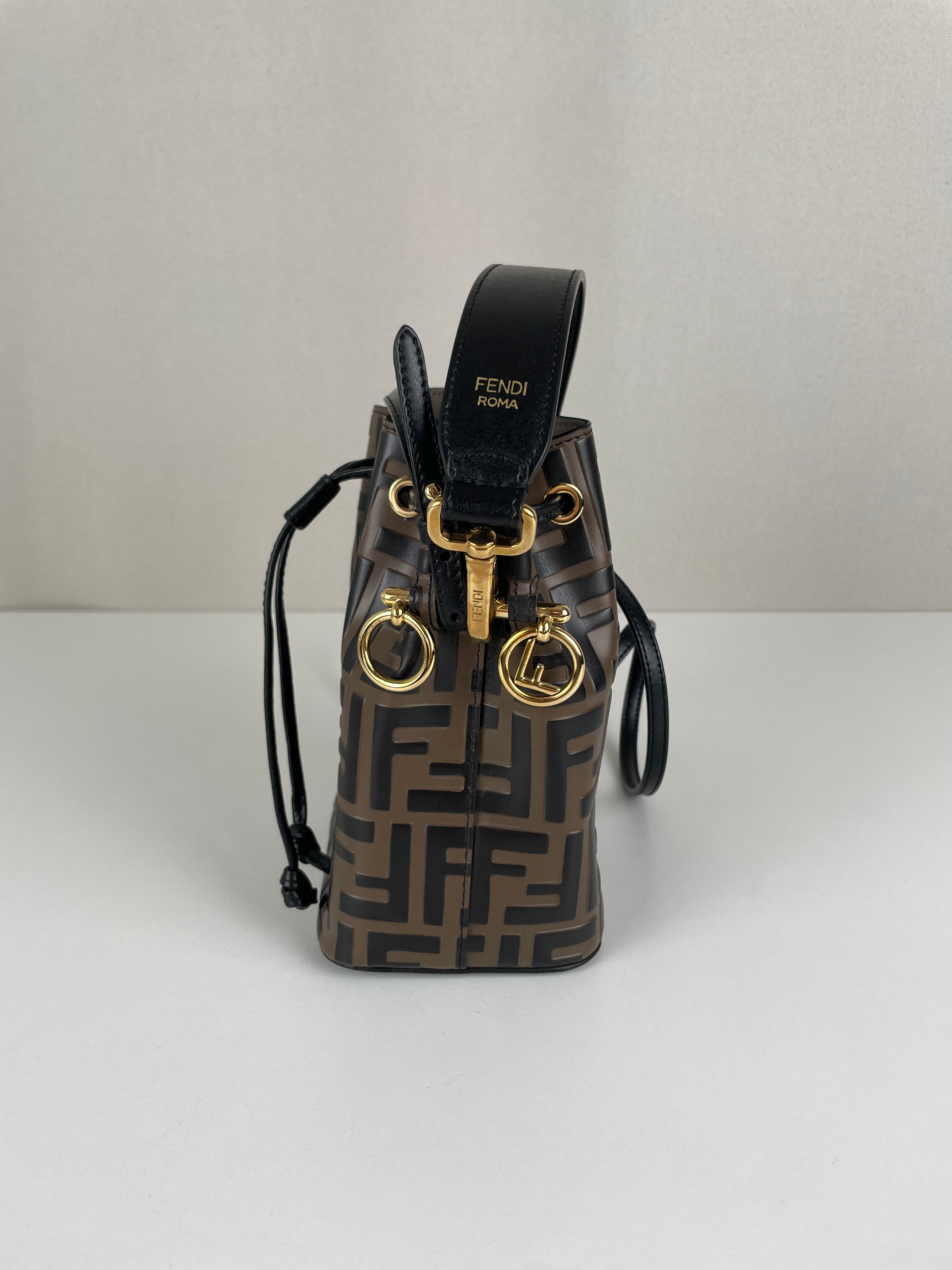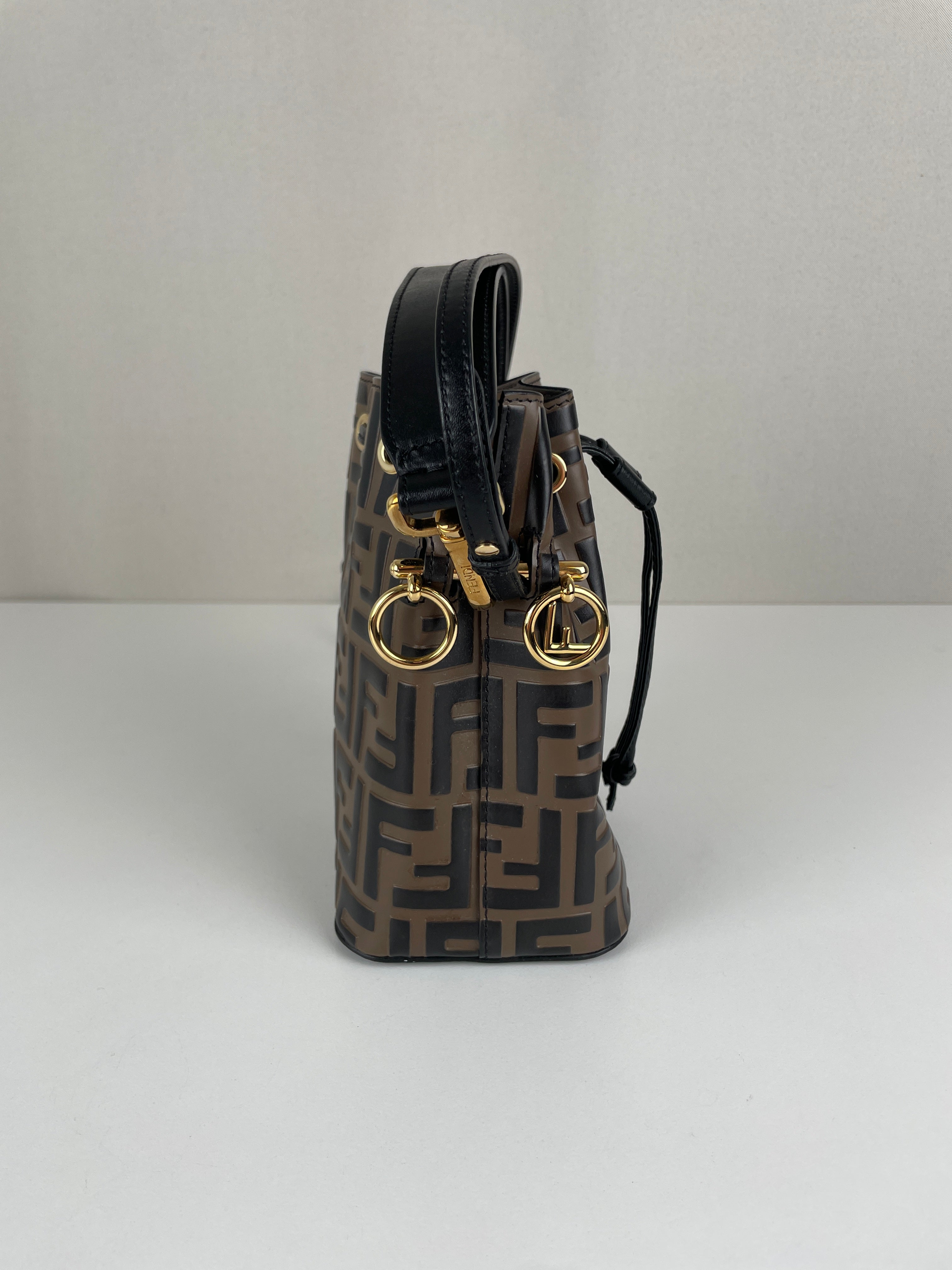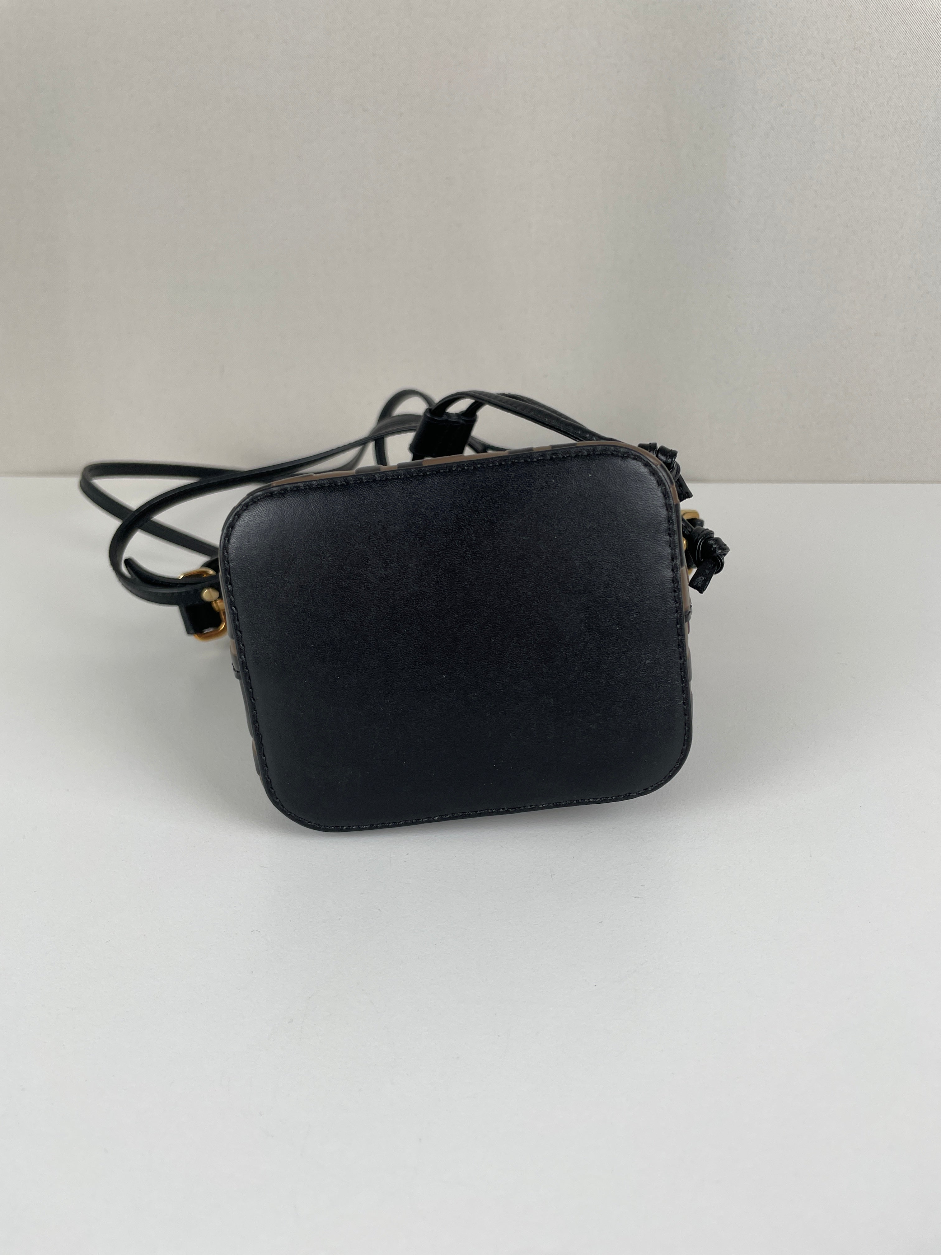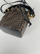 Mini sac Trésor seau Fendi en cuir noir et marron FF
