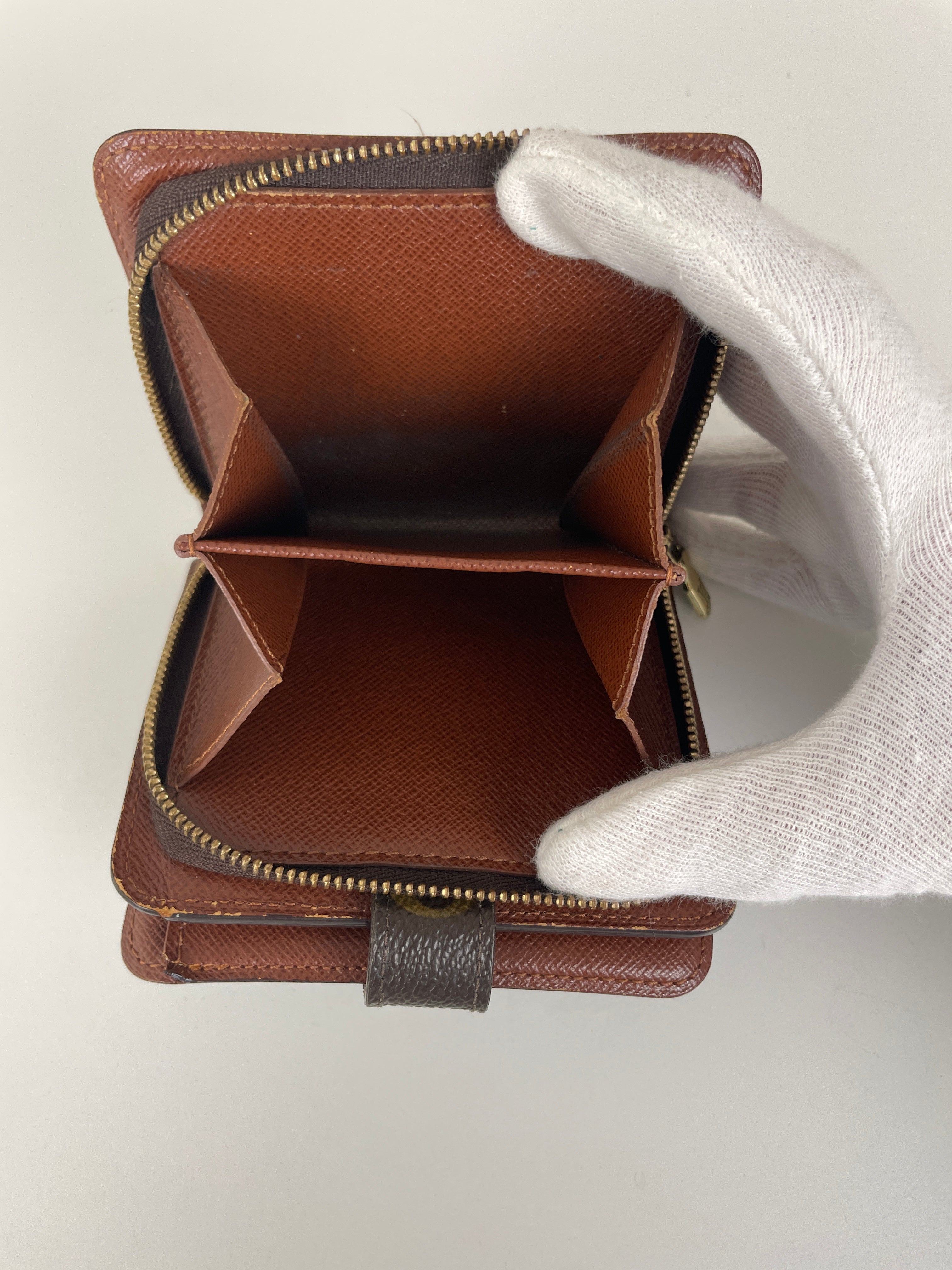 Portefeuille Louis Vuitton Compact Zip toile monogram bijouterie dorée