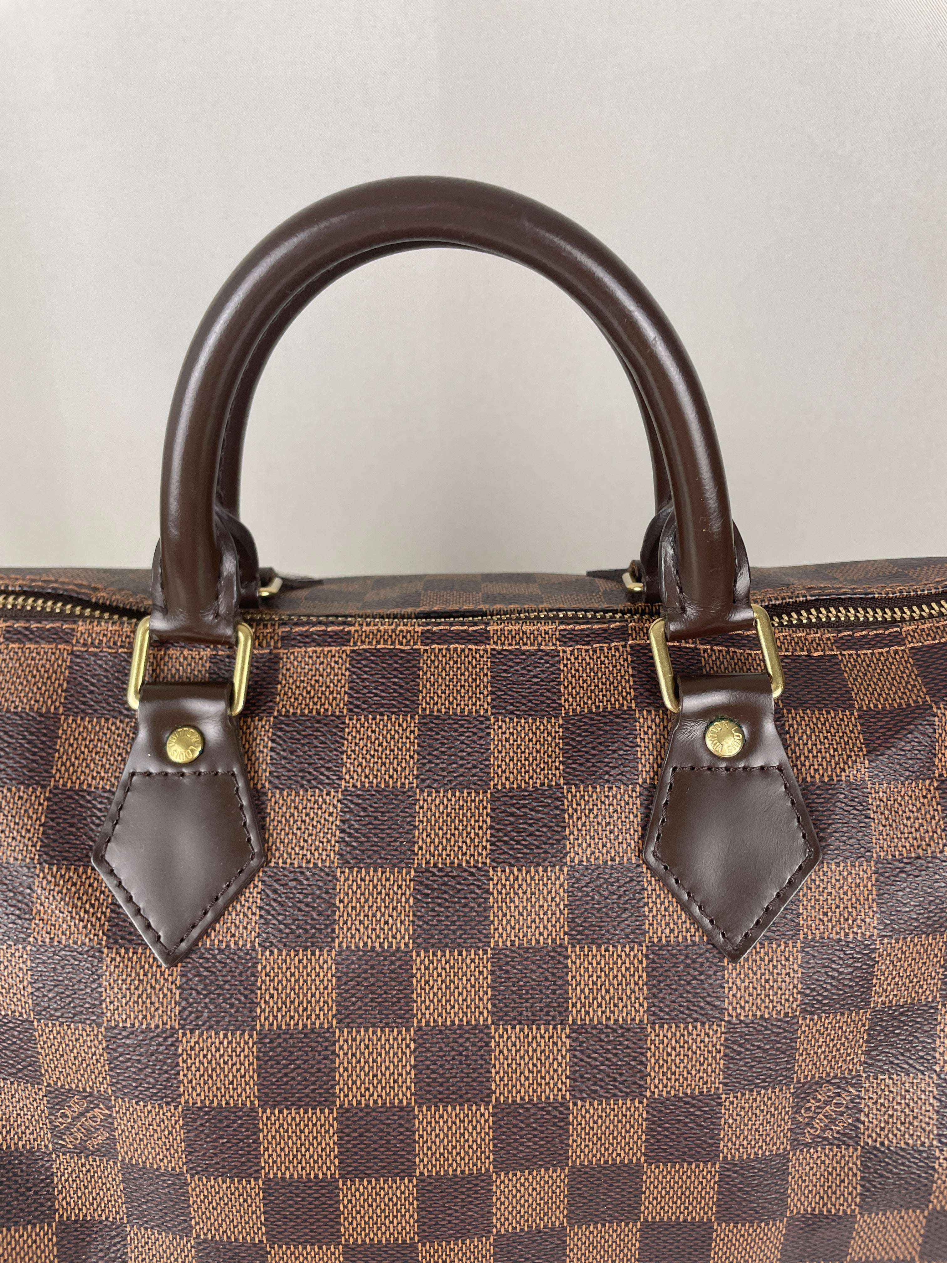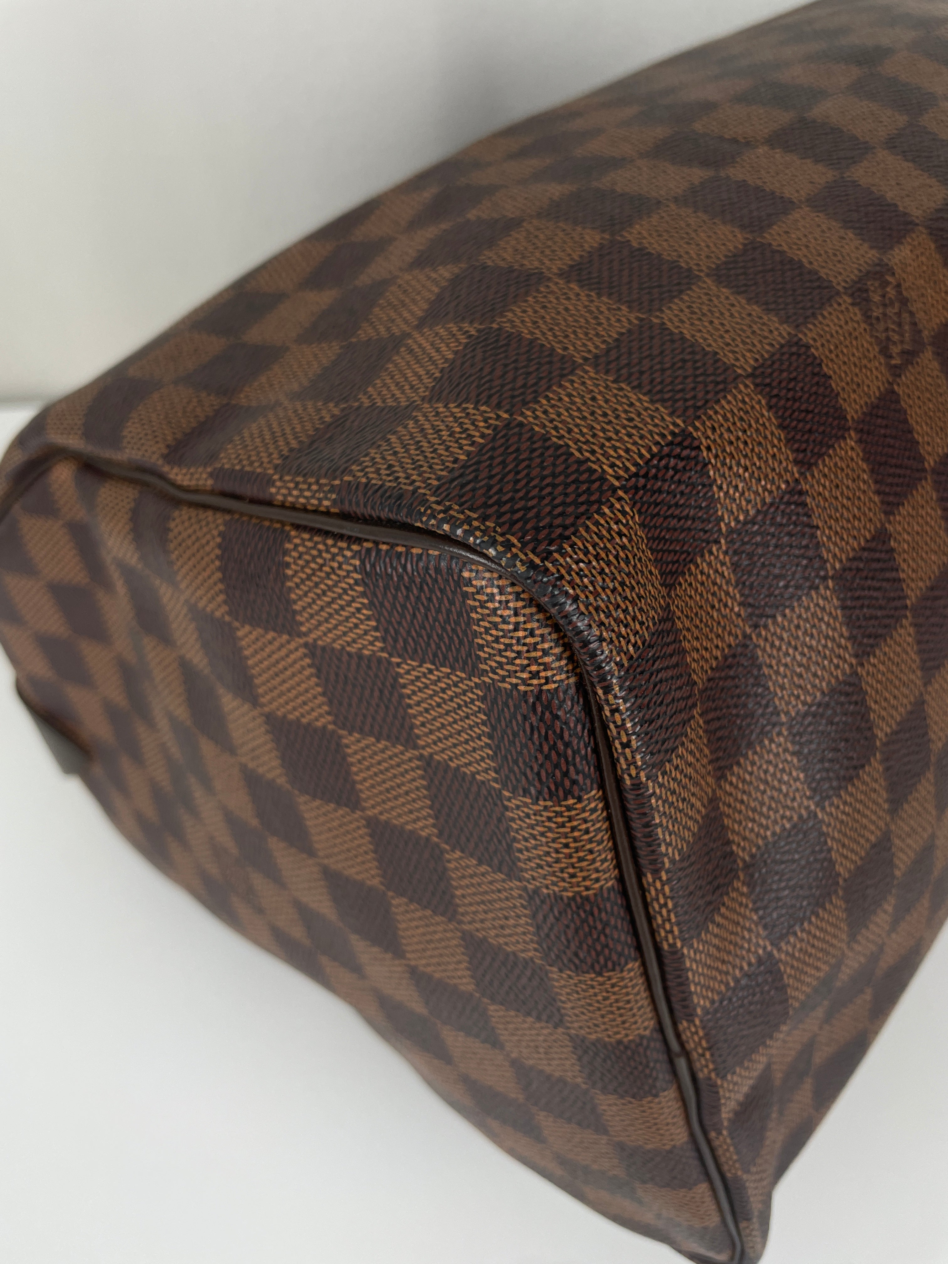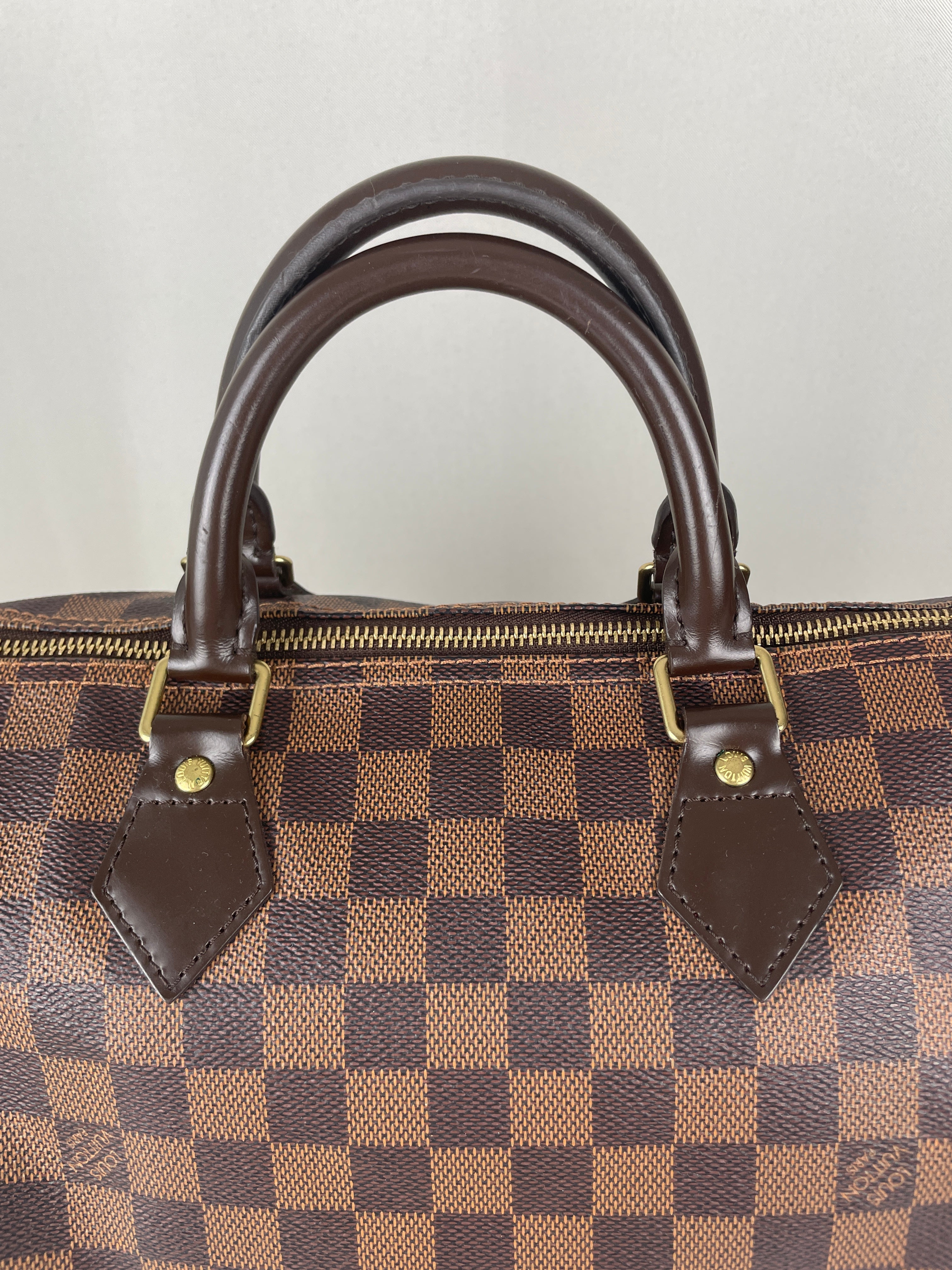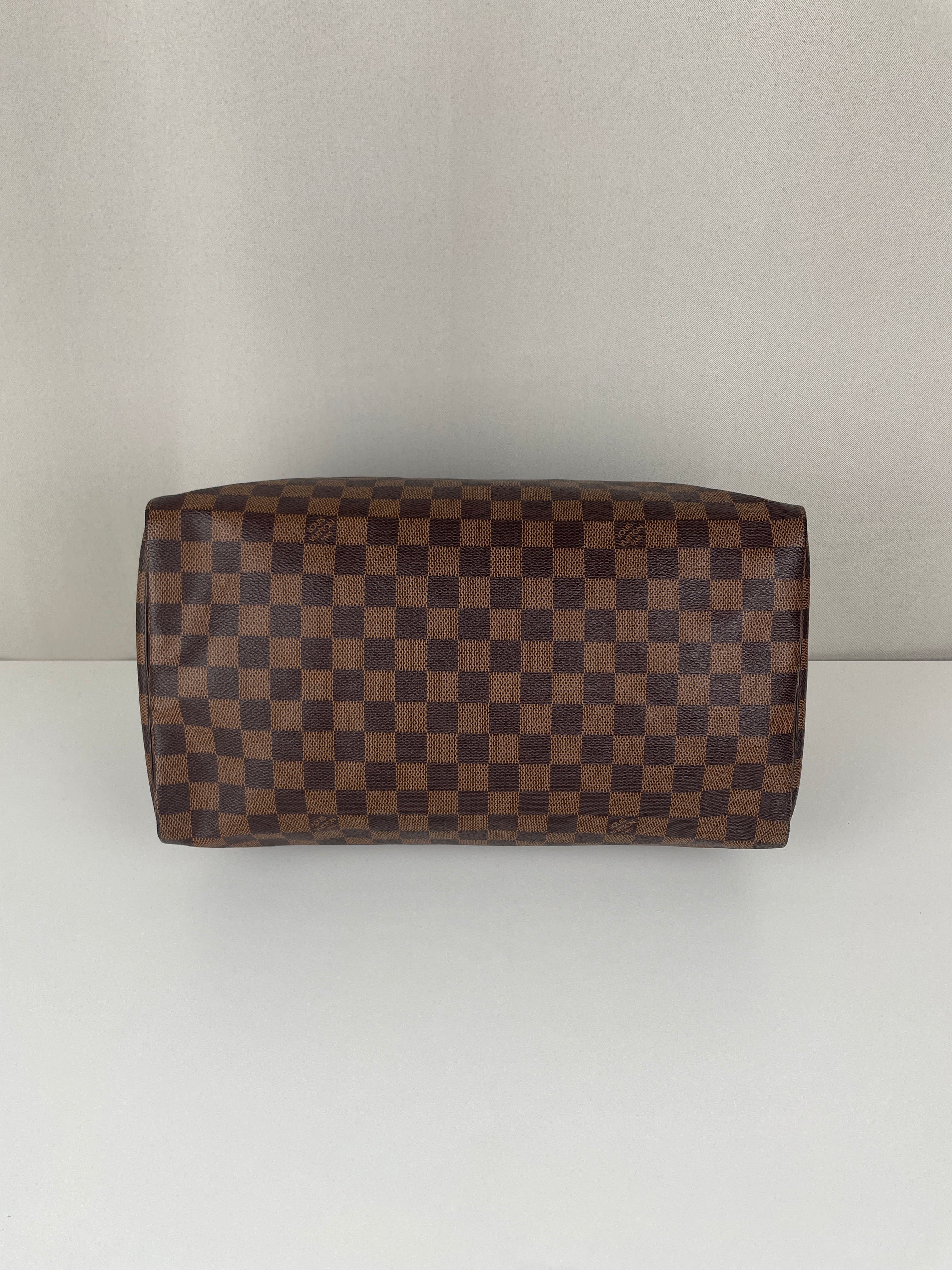 Le Speedy 35 en Damier Ebene représente l'évolution parfaite du sac à main le plus iconique de Louis Vuitton, combinant la silhouette intemporelle du sac docteur avec le motif à damier sophistiqué. Cette pièce de 2012 illustre plus d'une décennie de caractère authentique tout en maintenant la qualité exceptionnelle qui définit l'artisanat patrimonial de Louis Vuitton. La toile Damier offre une alternative raffinée au monogram classique, tandis que la taille généreuse de 35cm fournit amplement d'espace pour les essentiels quotidiens ou les escapades de week-end. Complet avec boîte originale, housse de protection, cadenas et clés, ce Speedy représente une opportunité exceptionnelle de posséder un set complet du design le plus aimé et durable de Louis Vuitton avec tous ses accessoires originaux.