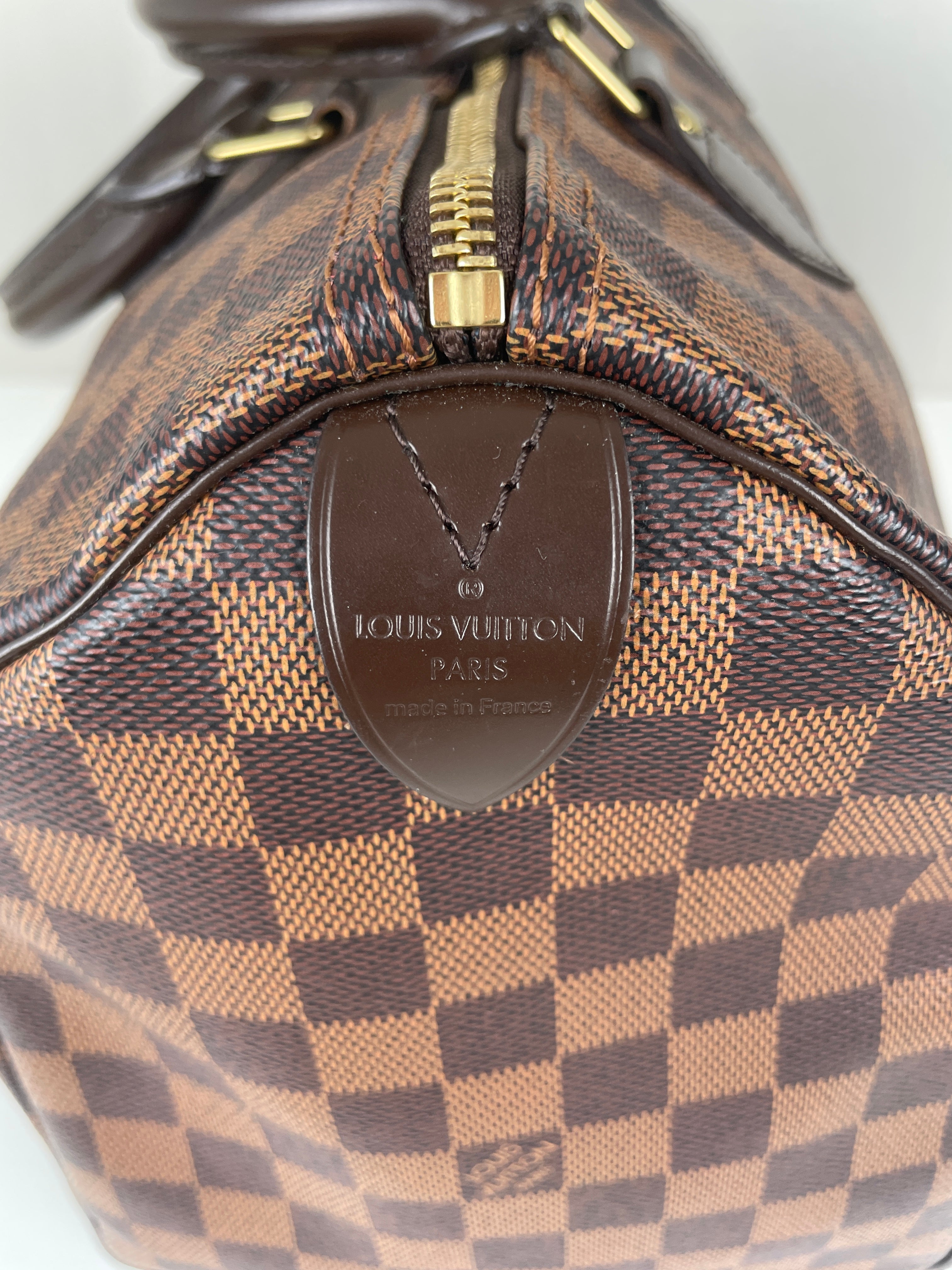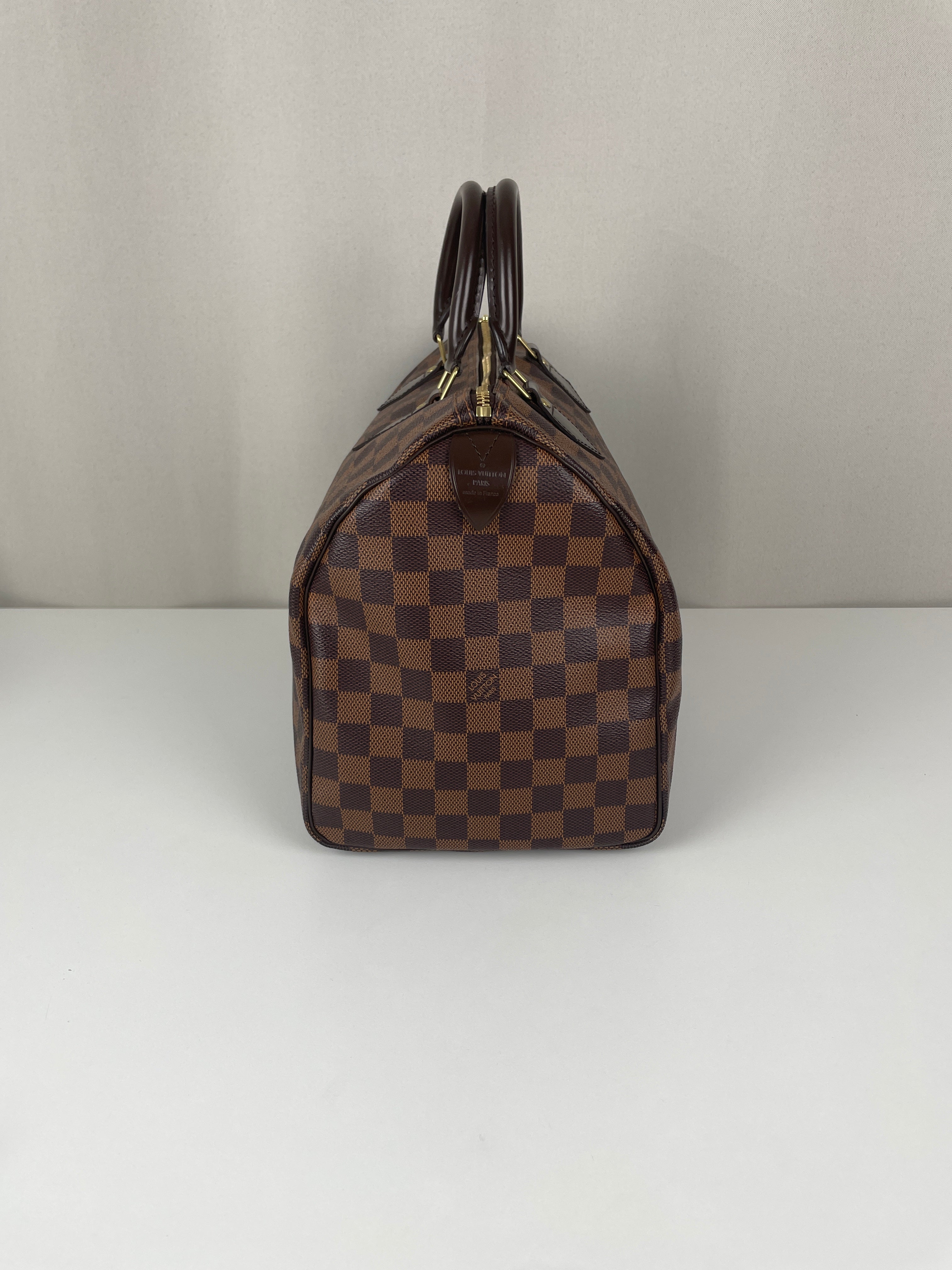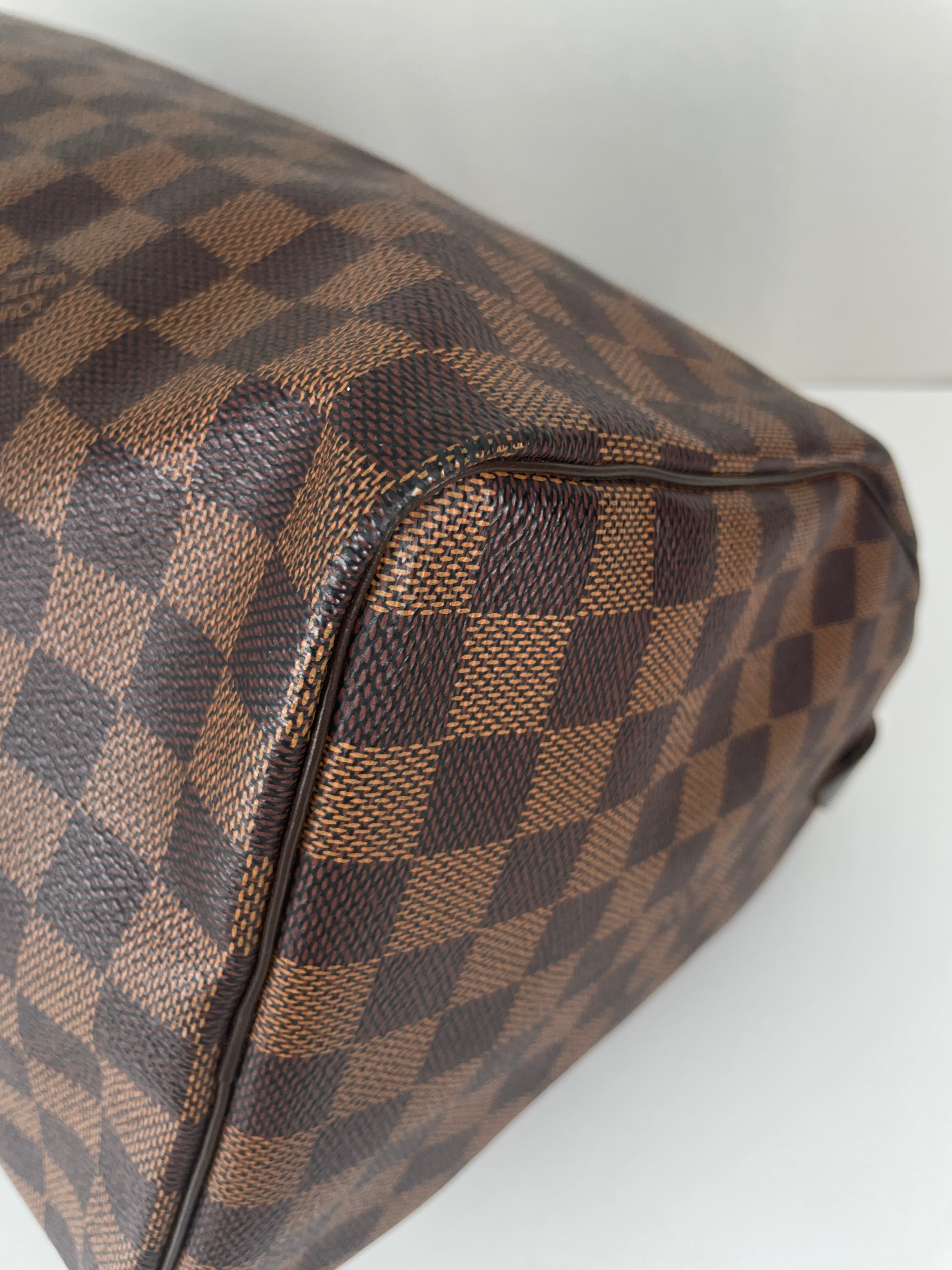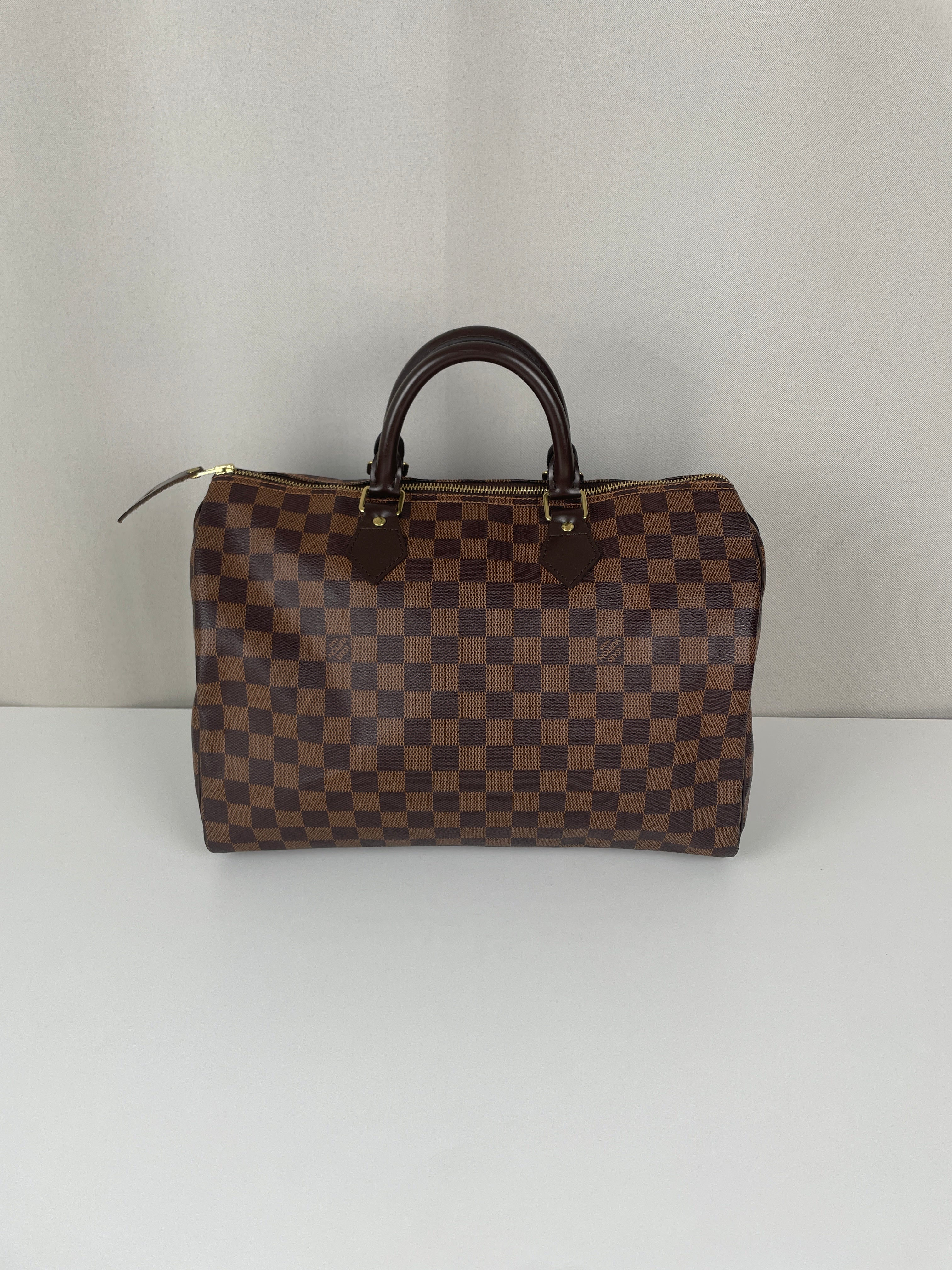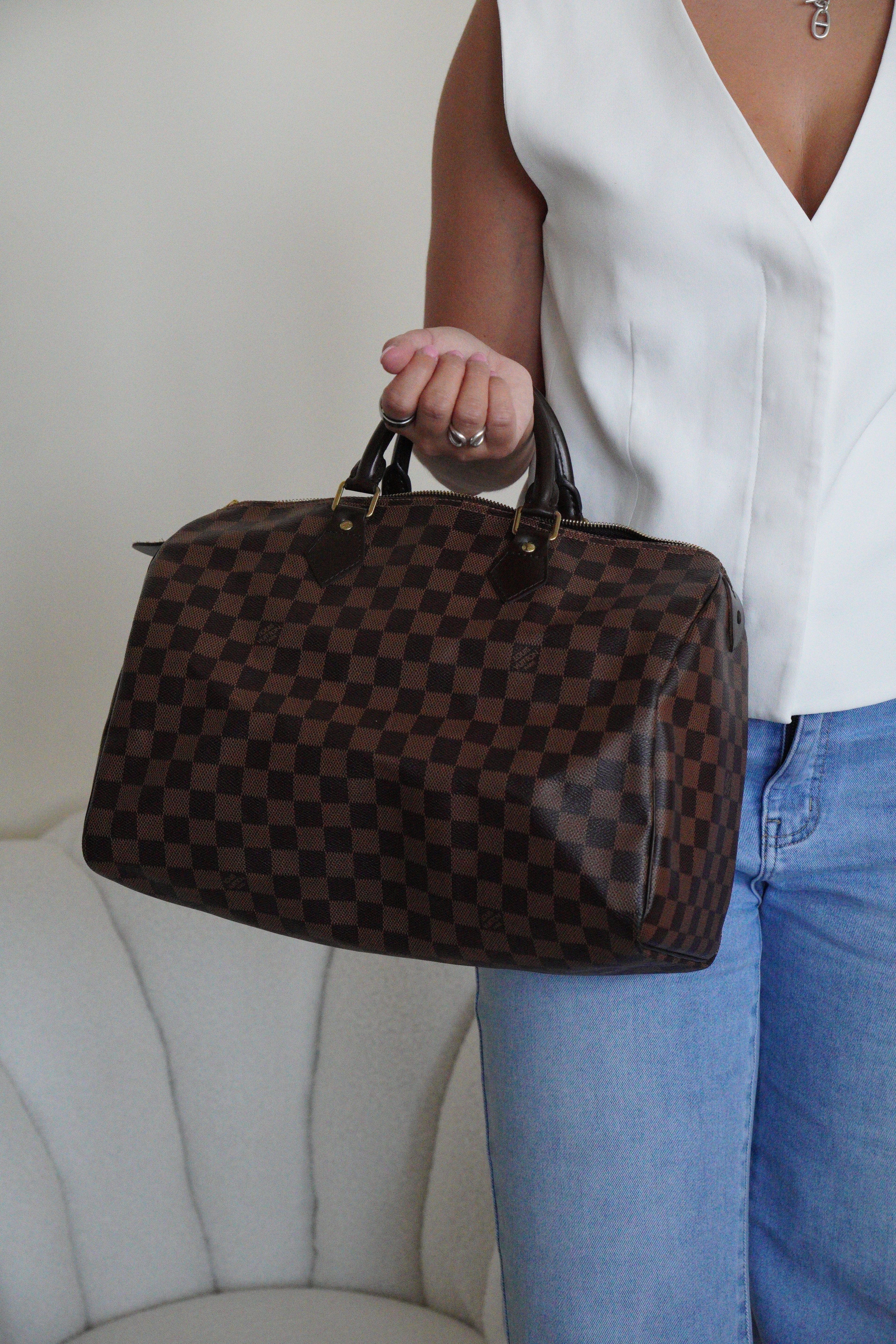 Le Speedy 35 en Damier Ebene représente l'évolution parfaite du sac à main le plus iconique de Louis Vuitton, combinant la silhouette intemporelle du sac docteur avec le motif à damier sophistiqué. Cette pièce de 2012 illustre plus d'une décennie de caractère authentique tout en maintenant la qualité exceptionnelle qui définit l'artisanat patrimonial de Louis Vuitton. La toile Damier offre une alternative raffinée au monogram classique, tandis que la taille généreuse de 35cm fournit amplement d'espace pour les essentiels quotidiens ou les escapades de week-end. Complet avec boîte originale, housse de protection, cadenas et clés, ce Speedy représente une opportunité exceptionnelle de posséder un set complet du design le plus aimé et durable de Louis Vuitton avec tous ses accessoires originaux.