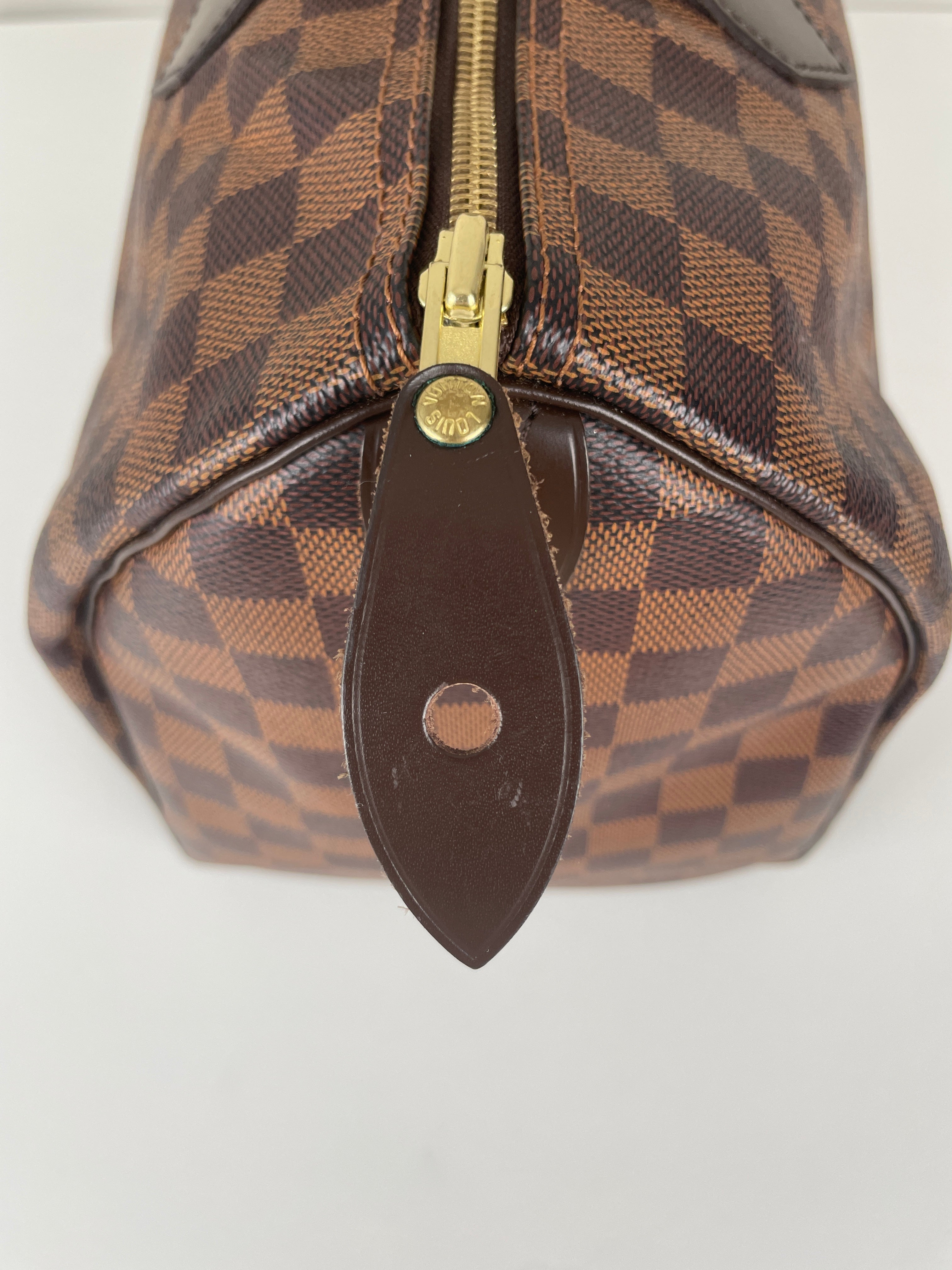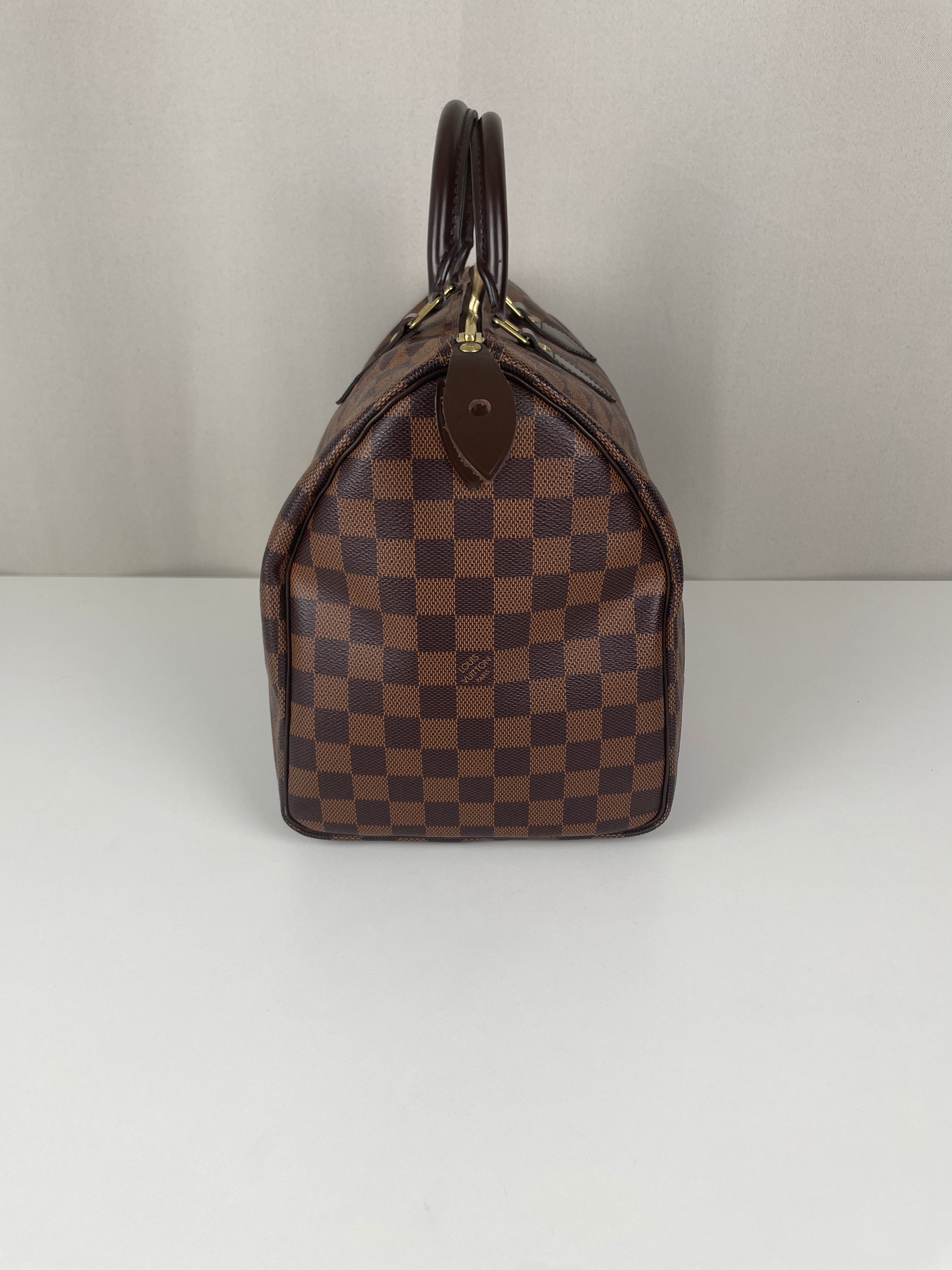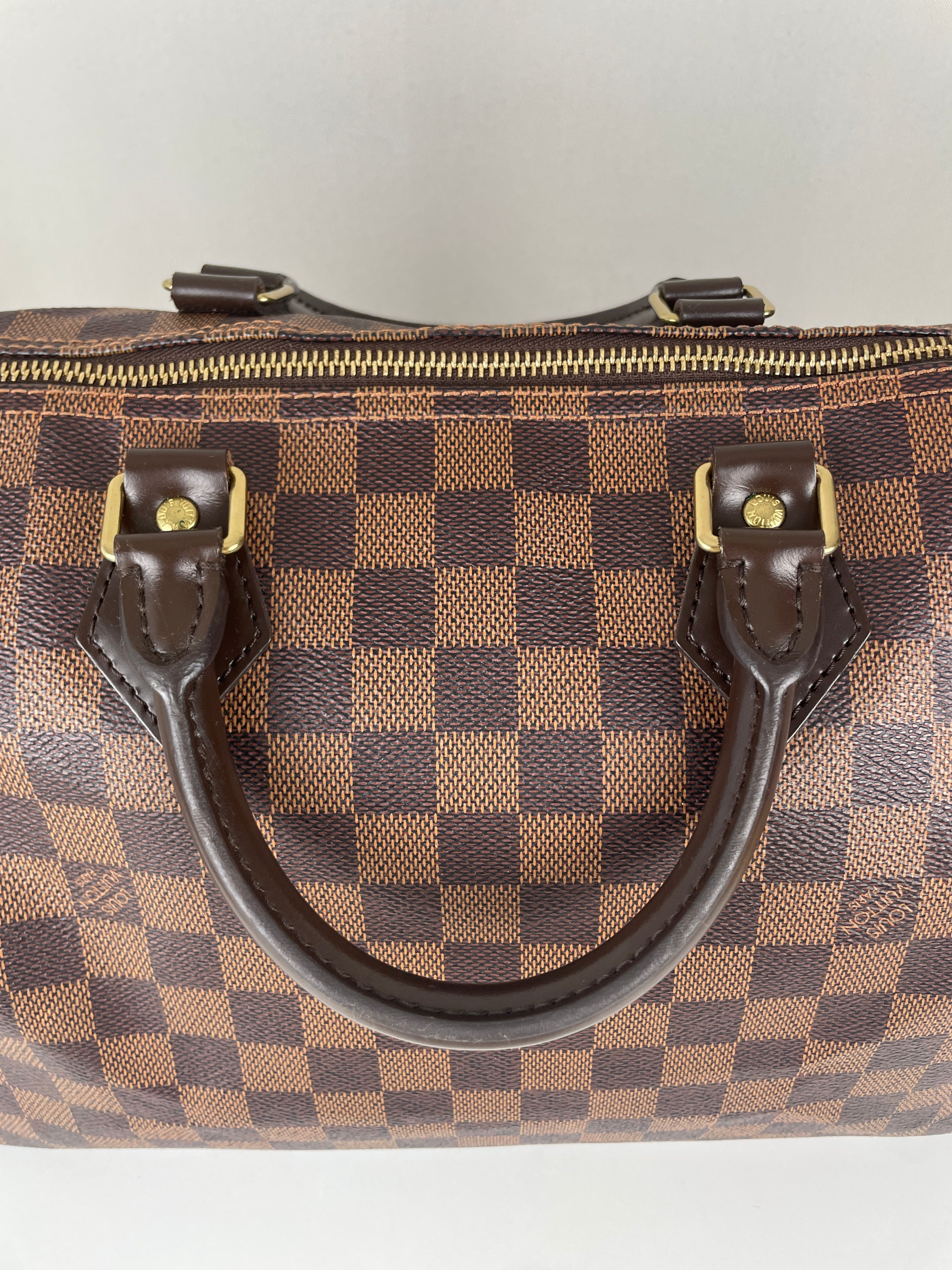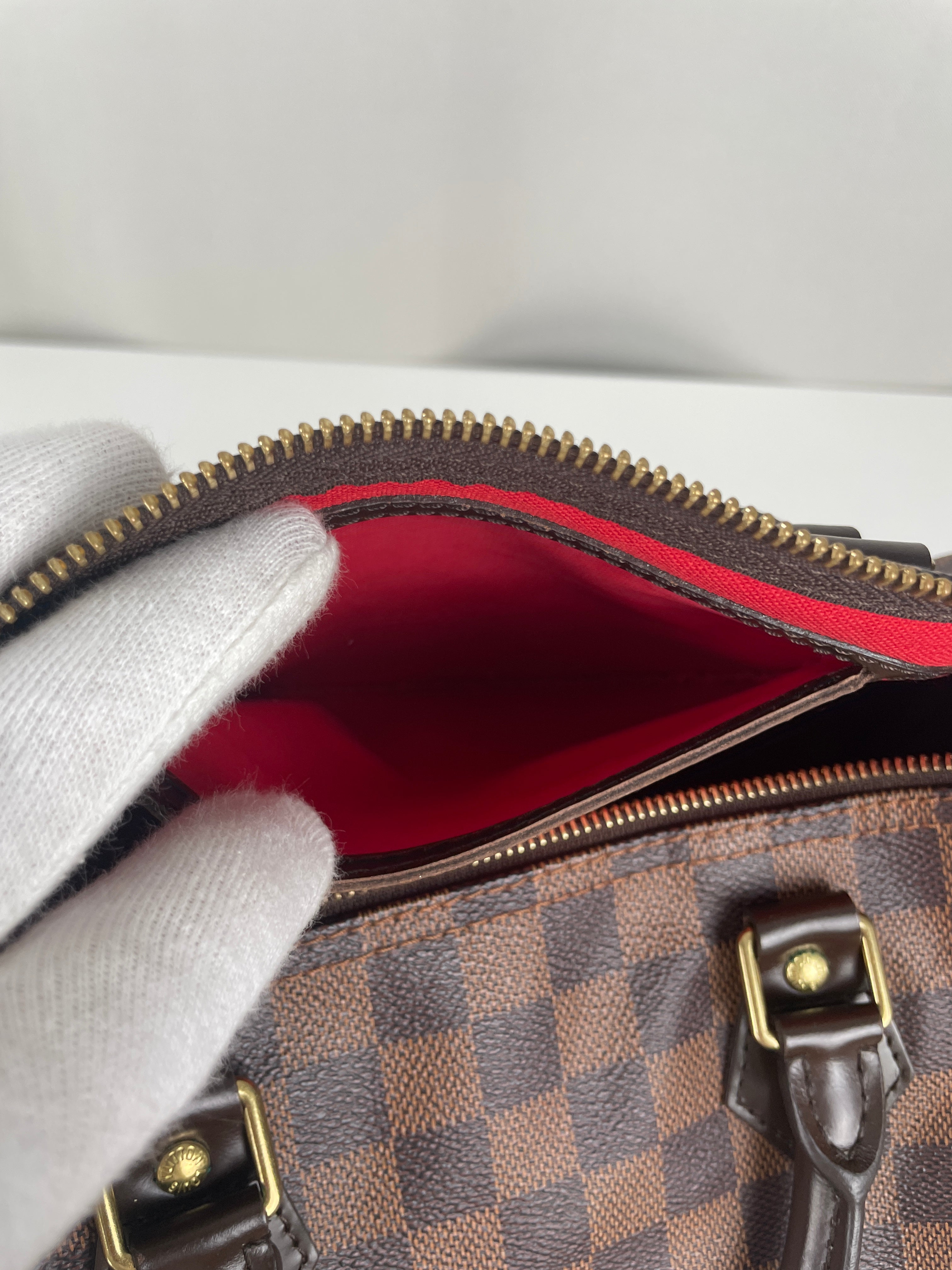 Le Speedy 35 en Damier Ebene représente l'évolution parfaite du sac à main le plus iconique de Louis Vuitton, combinant la silhouette intemporelle du sac docteur avec le motif à damier sophistiqué. Cette pièce de 2012 illustre plus d'une décennie de caractère authentique tout en maintenant la qualité exceptionnelle qui définit l'artisanat patrimonial de Louis Vuitton. La toile Damier offre une alternative raffinée au monogram classique, tandis que la taille généreuse de 35cm fournit amplement d'espace pour les essentiels quotidiens ou les escapades de week-end. Complet avec boîte originale, housse de protection, cadenas et clés, ce Speedy représente une opportunité exceptionnelle de posséder un set complet du design le plus aimé et durable de Louis Vuitton avec tous ses accessoires originaux.