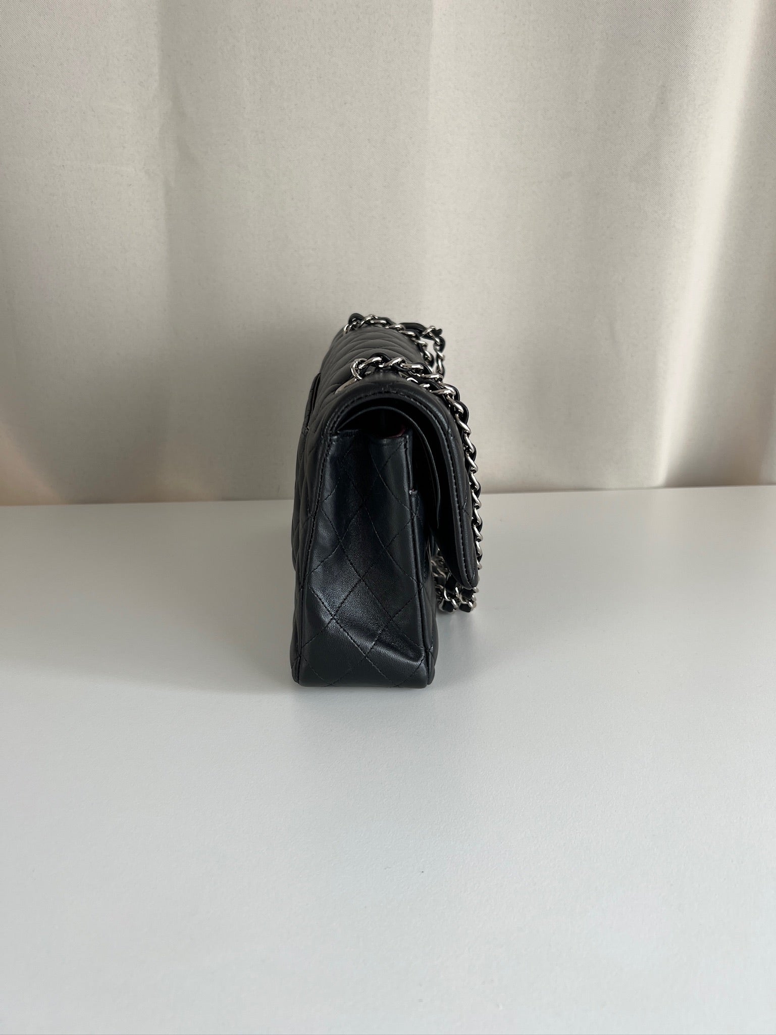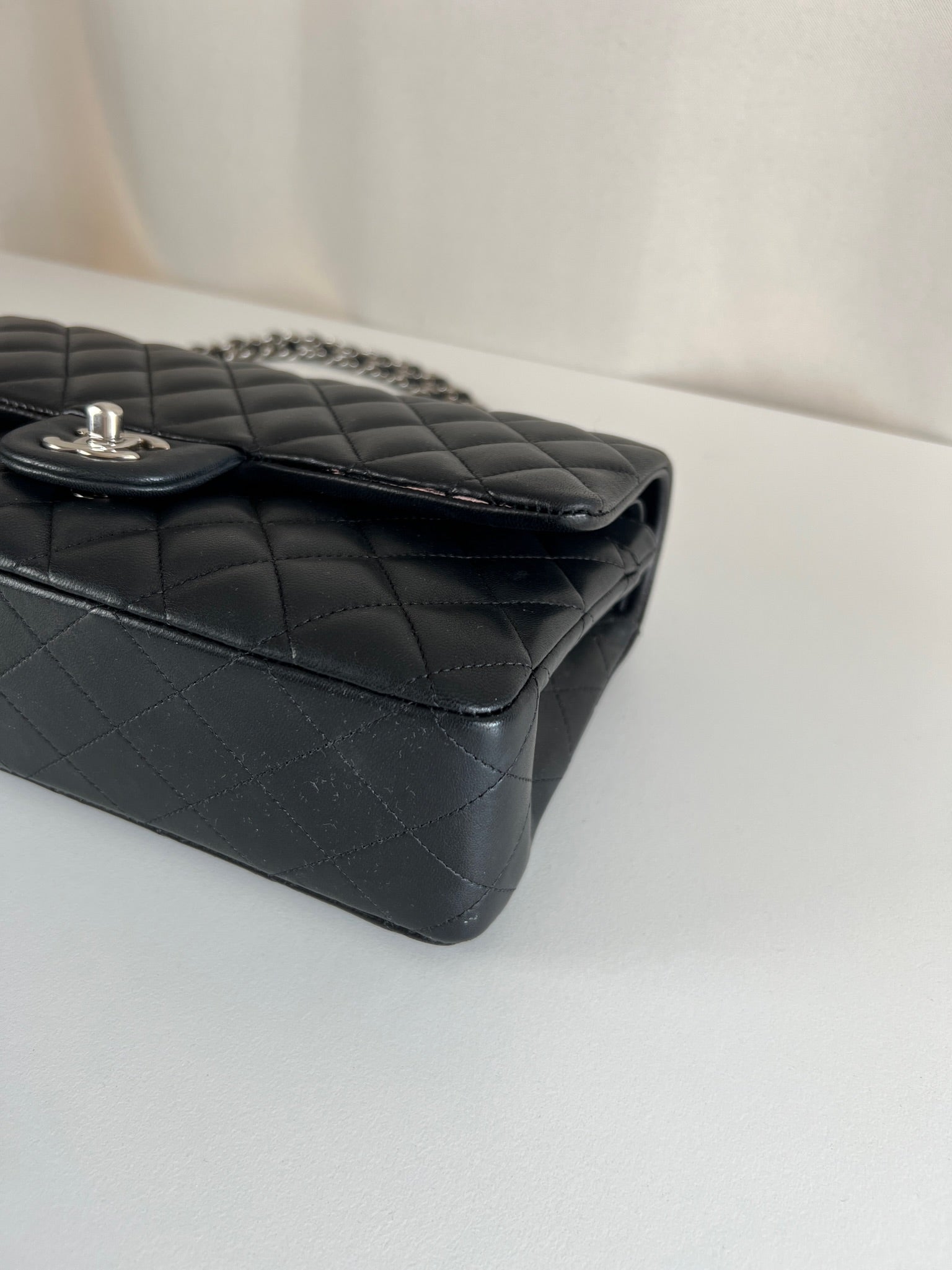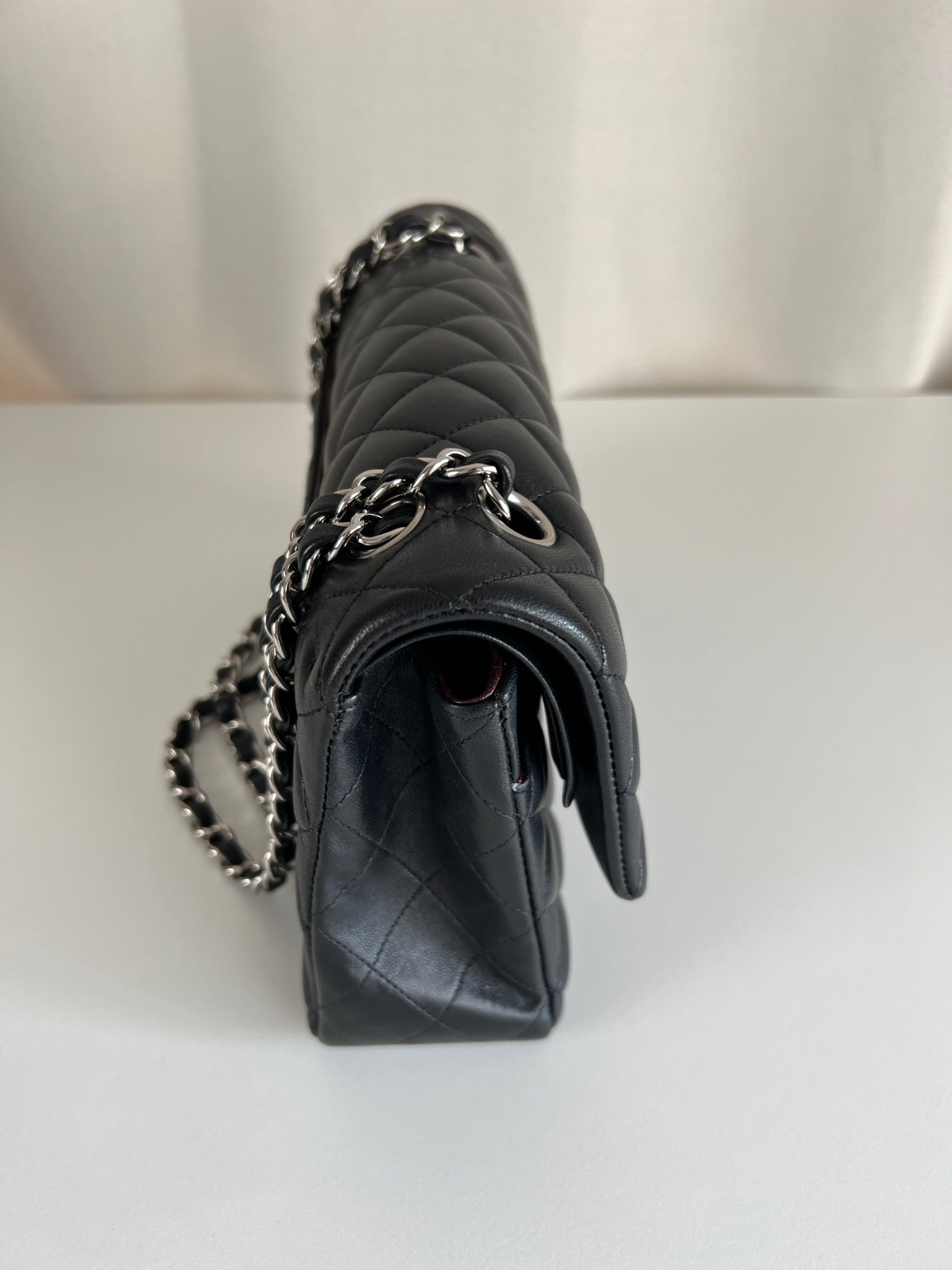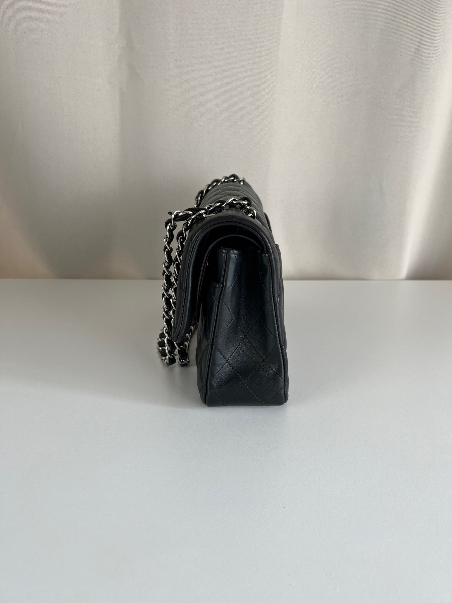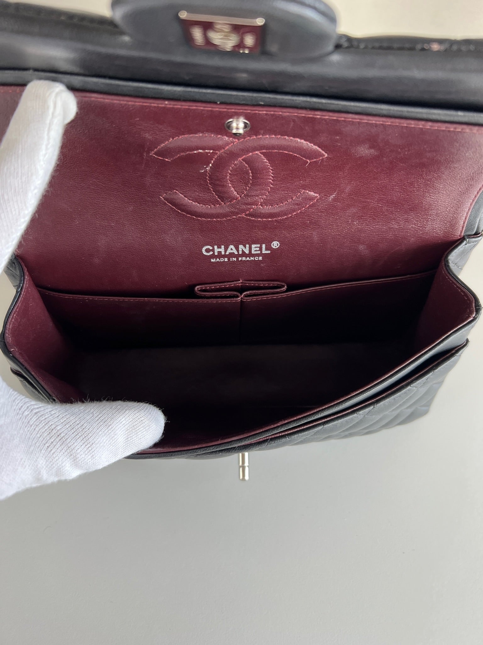 Ce sac rabat classique Chanel timeless est en très bon état et est très récent. Le cuir est en très bon état avec une petite tache sur le devant très mini. Les coins sont en parfait état. La bojouterie est argenté. L'intérieur est en très bon état, on voit des traces d'utilisation, il a été un peu utilisé mais pas énorme. Il est sublime. Il est livré avec boîte, dustbag, carte d'authentification et certificat Entrupy.
