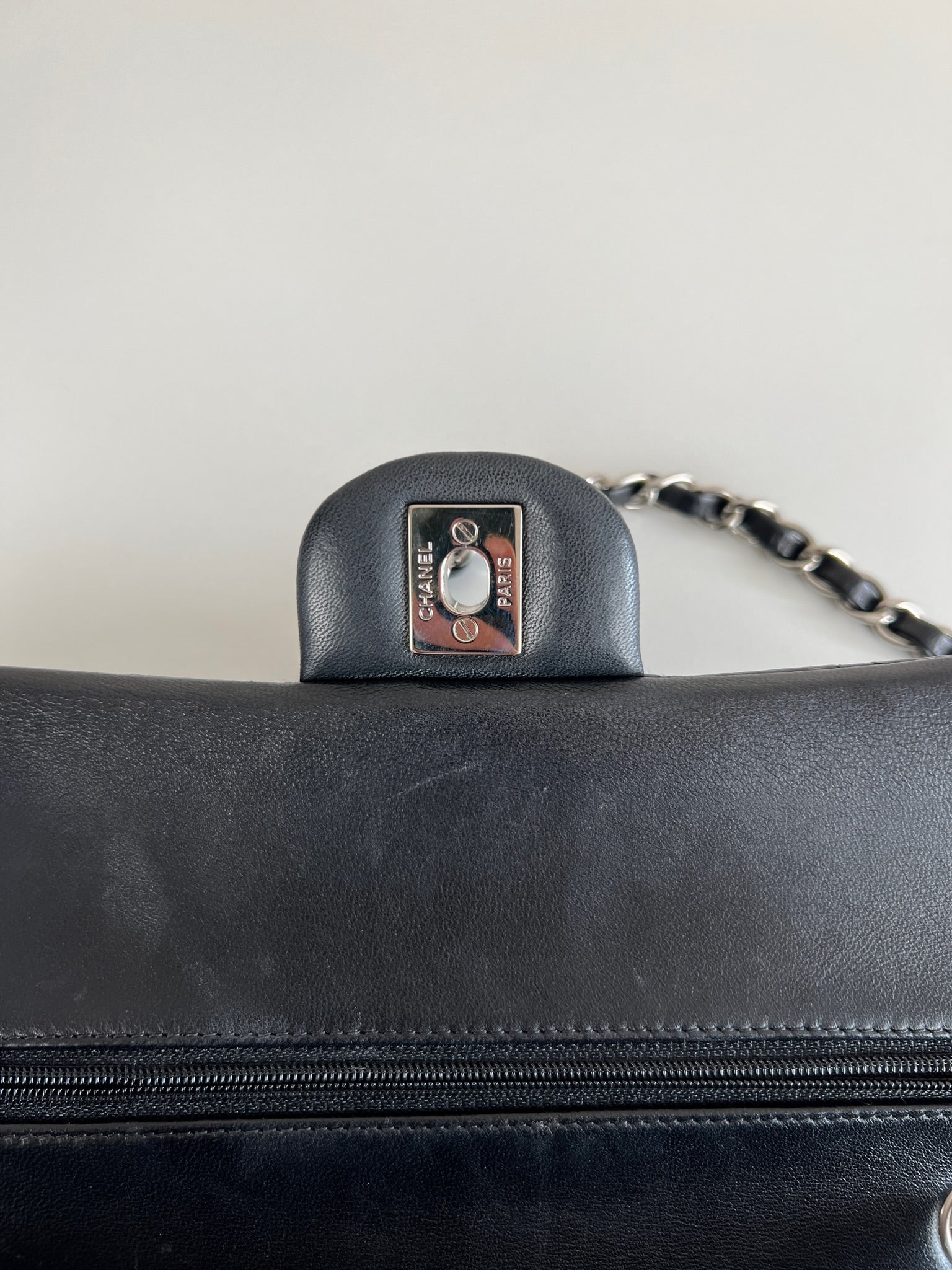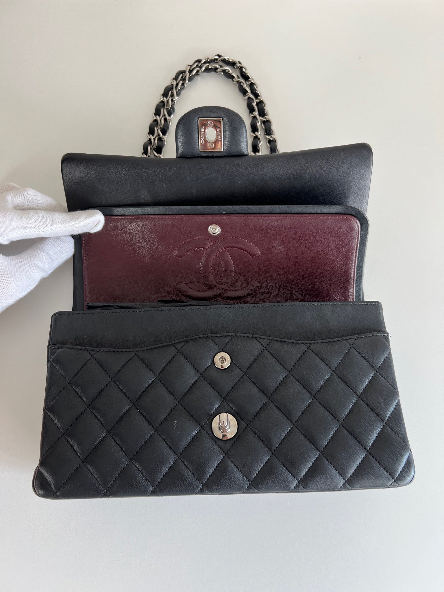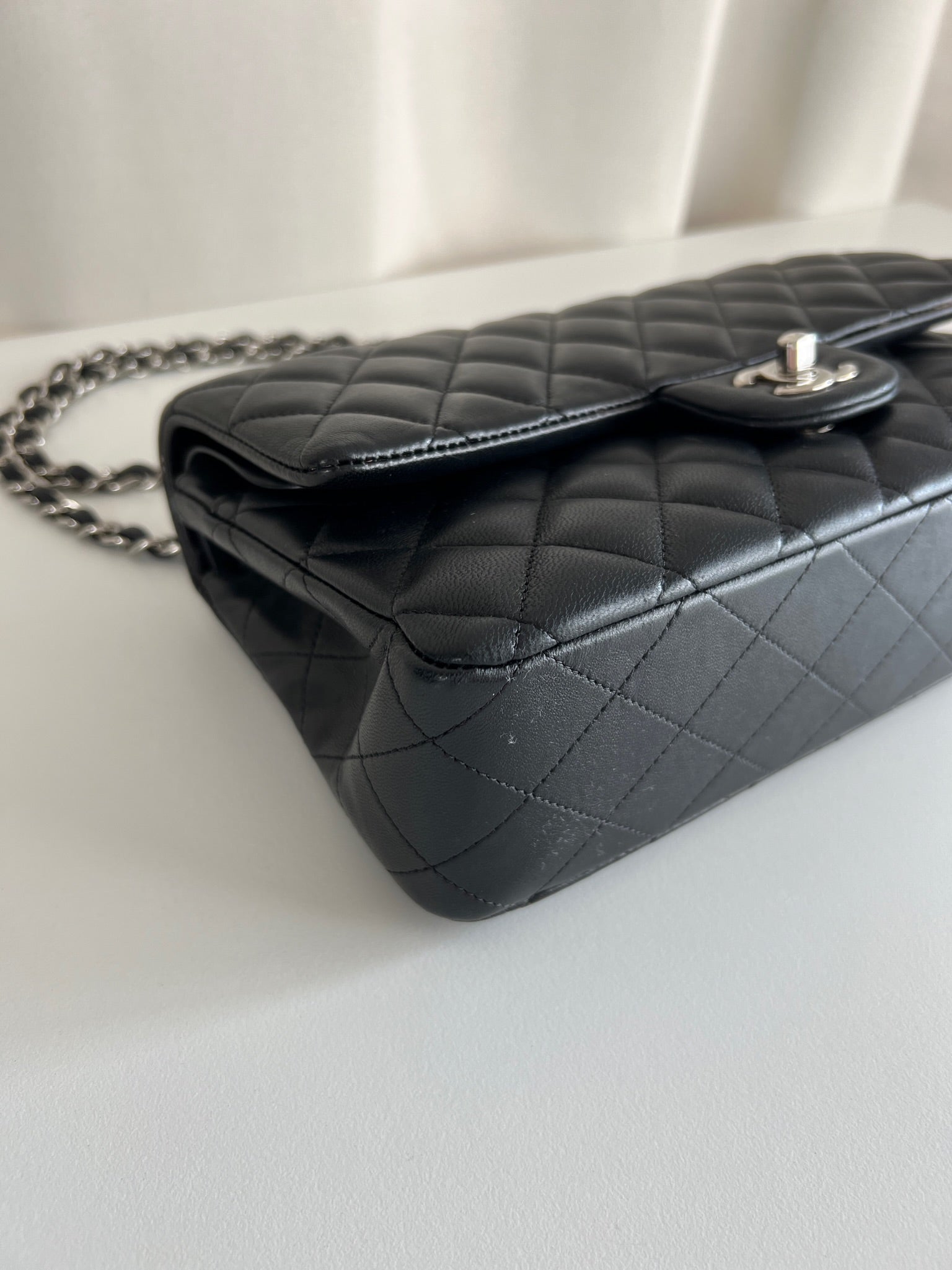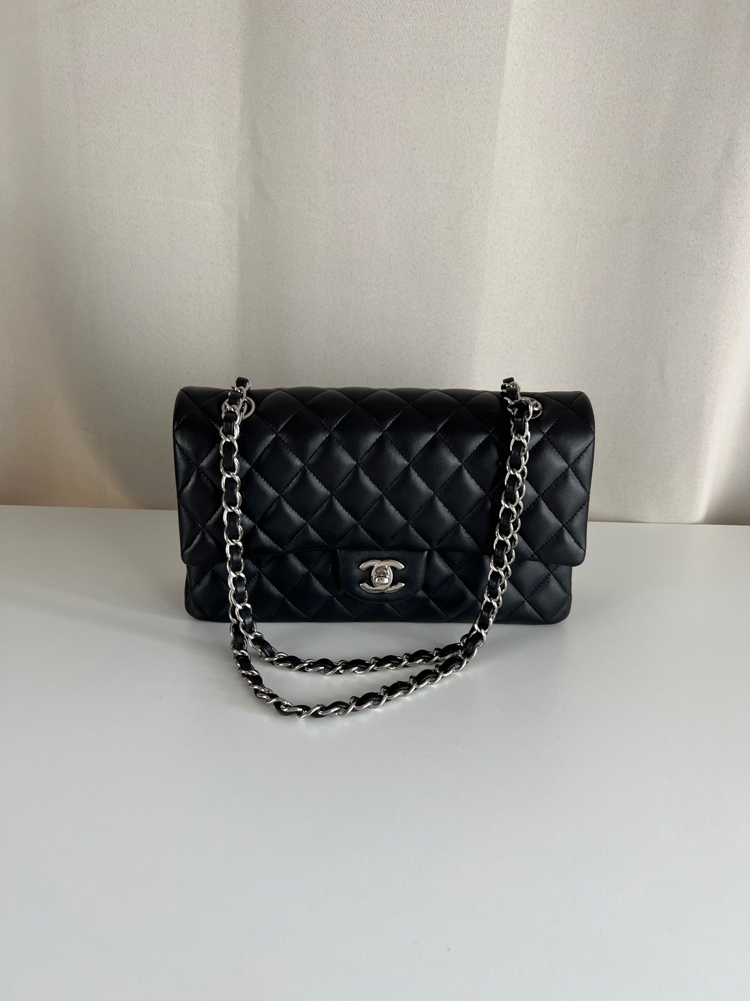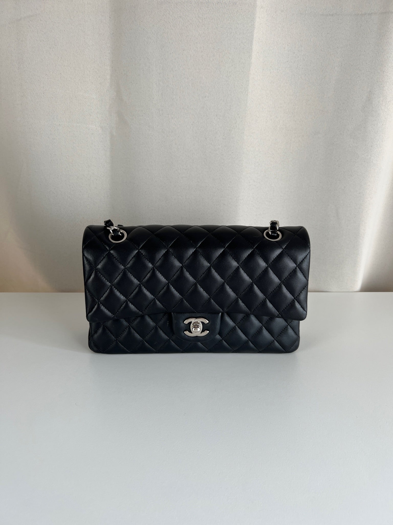Ce sac rabat classique Chanel timeless est en très bon état et est très récent. Le cuir est en très bon état avec une petite tache sur le devant très mini. Les coins sont en parfait état. La bojouterie est argenté. L'intérieur est en très bon état, on voit des traces d'utilisation, il a été un peu utilisé mais pas énorme. Il est sublime. Il est livré avec boîte, dustbag, carte d'authentification et certificat Entrupy.