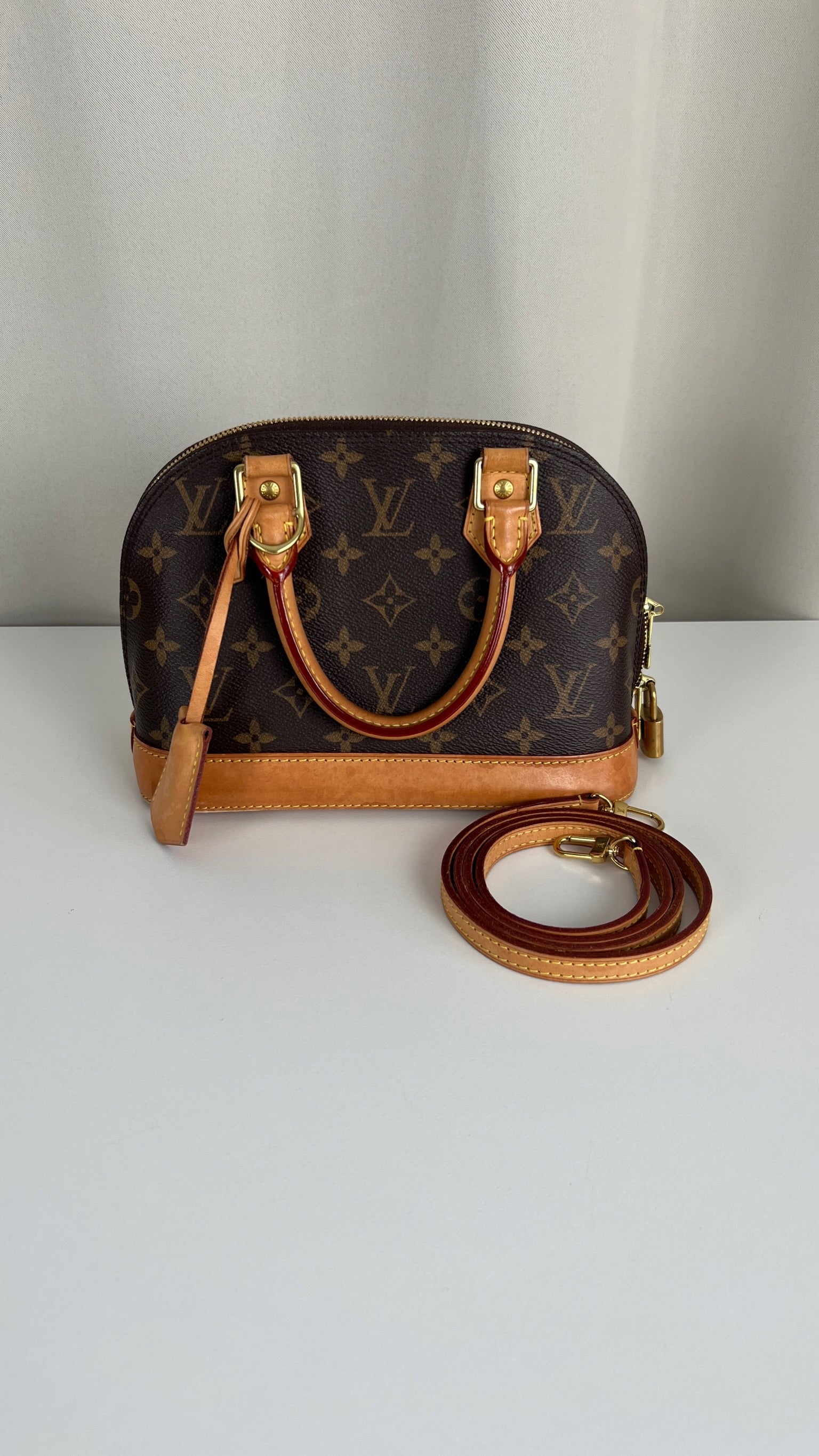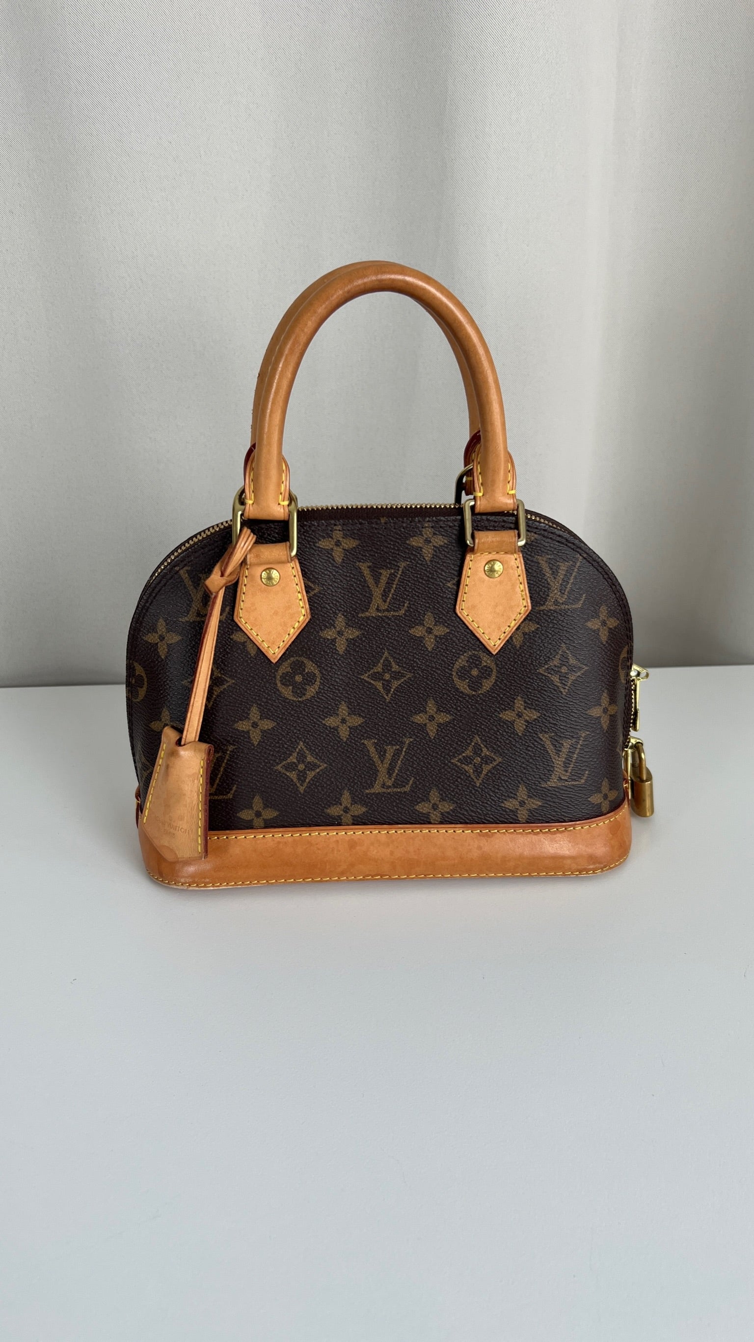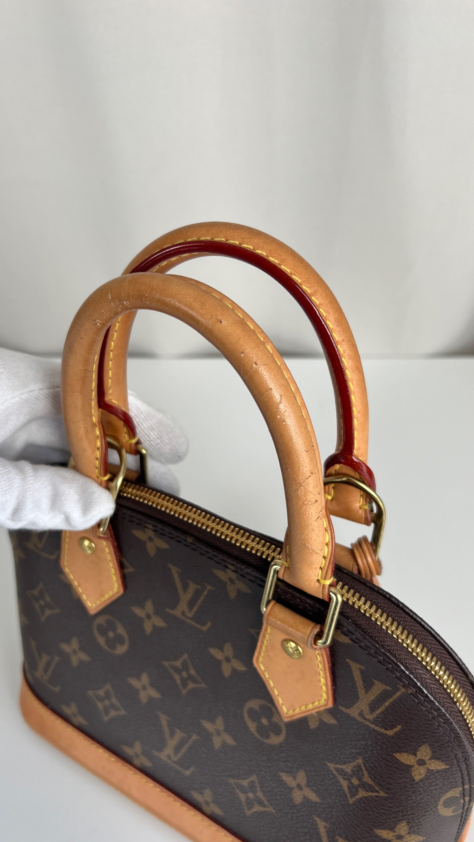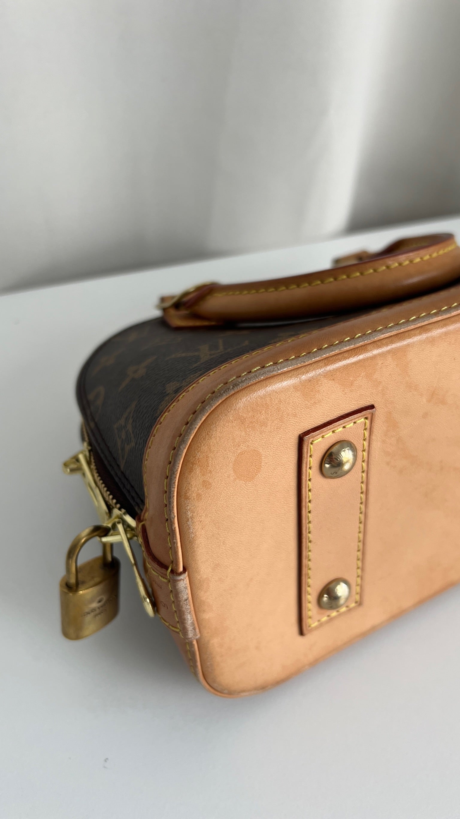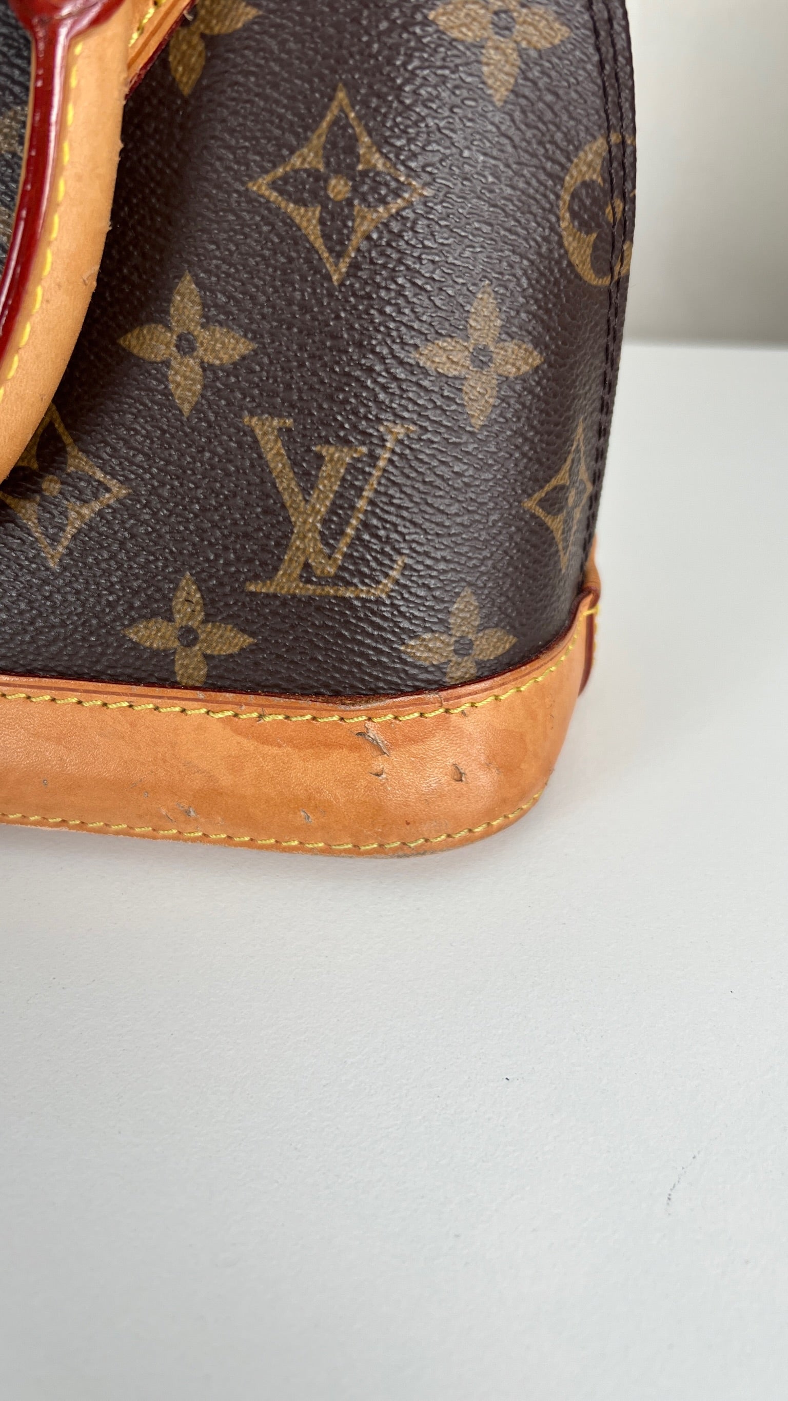 Ce sac Louis Vuitton Alma BB monogram est en bon état. La toile est en très bon état. La base en cuir comporte deux parties présentant des rayures et peu endommagées sur le coin. Les parties en cuir ont quelques taches mais c'est peu. Les poignées présentent également quelques petites "rayures". La bandoulière est en très bon état. L'intérieur est en très bon état.