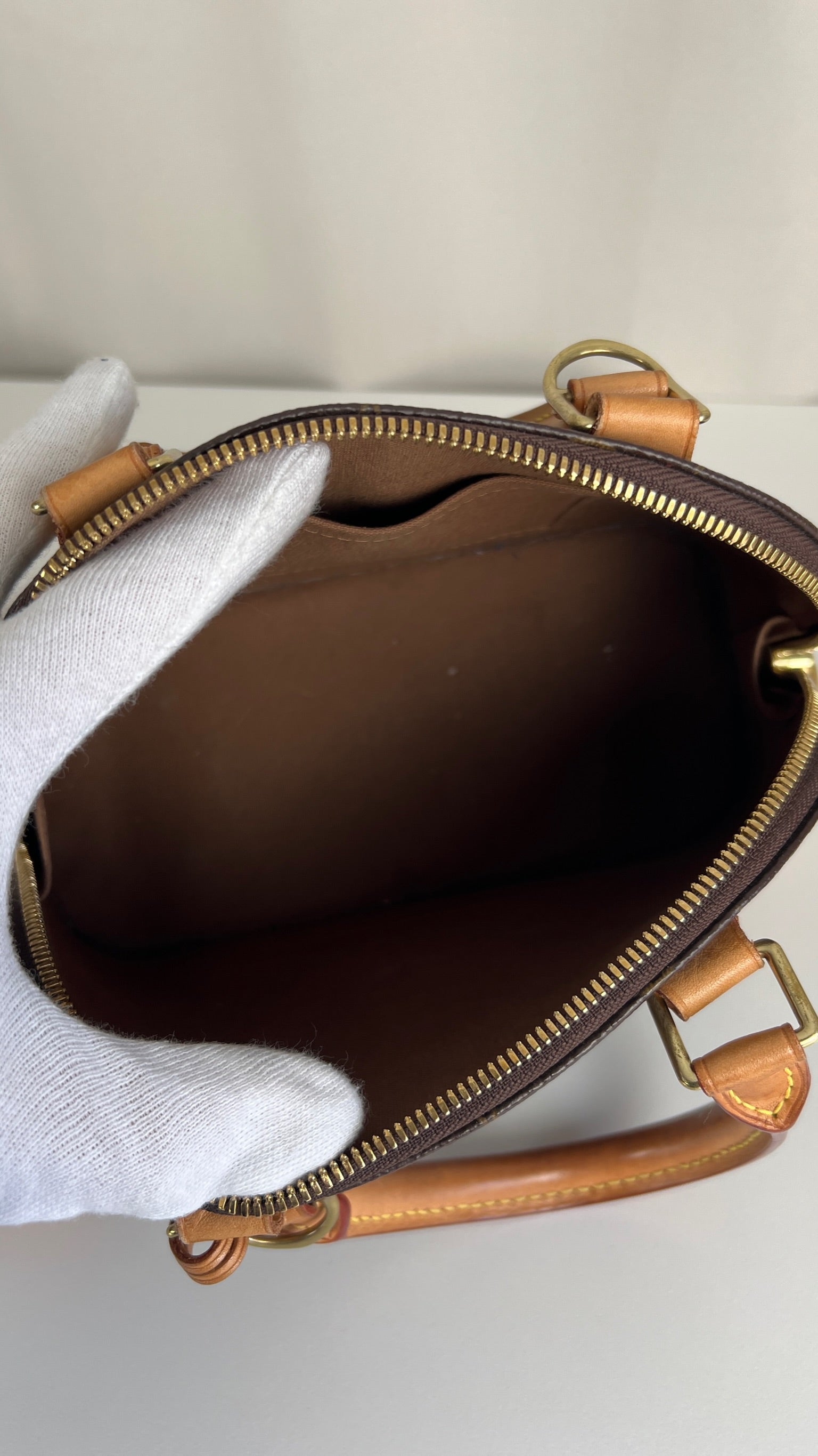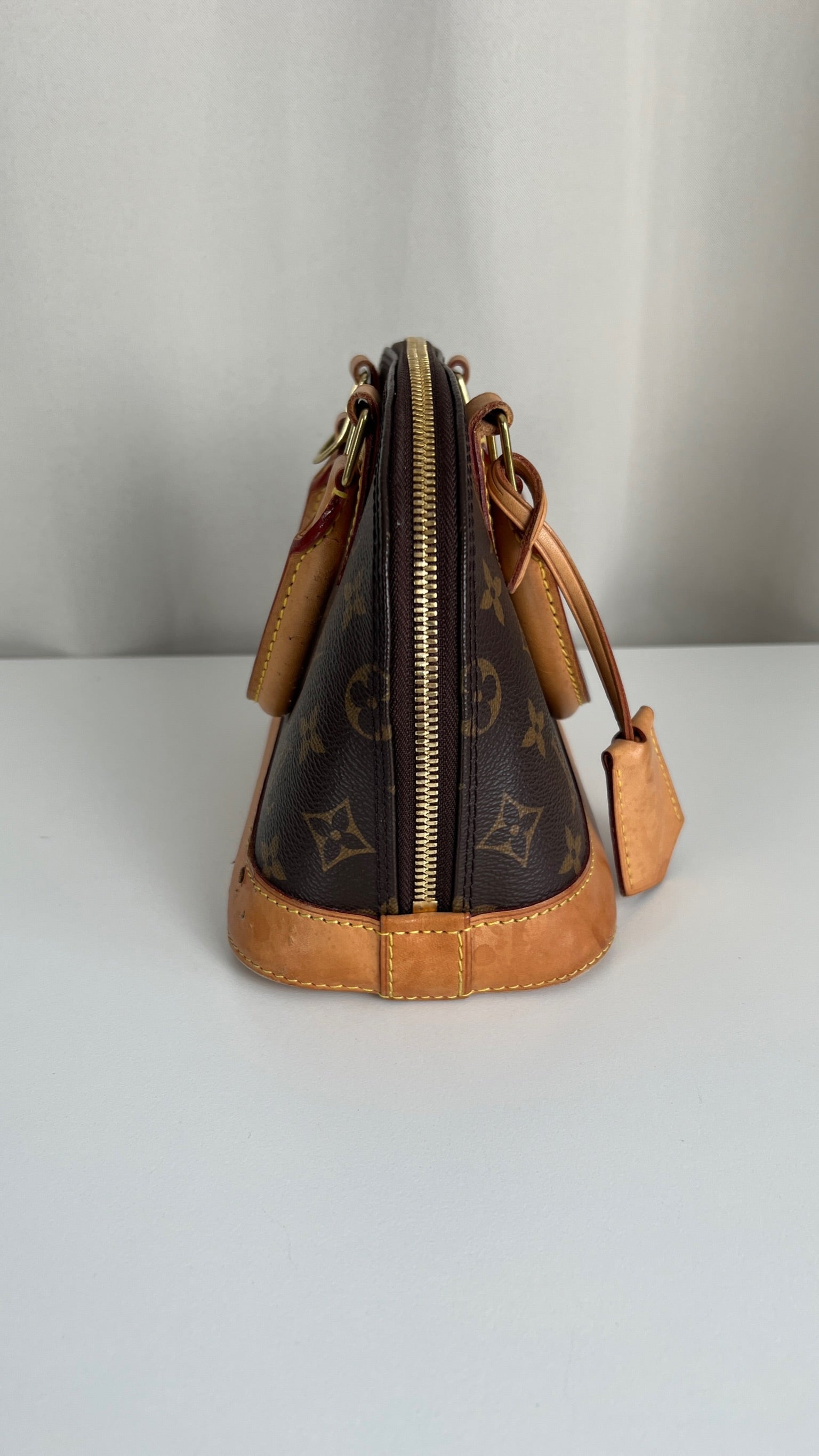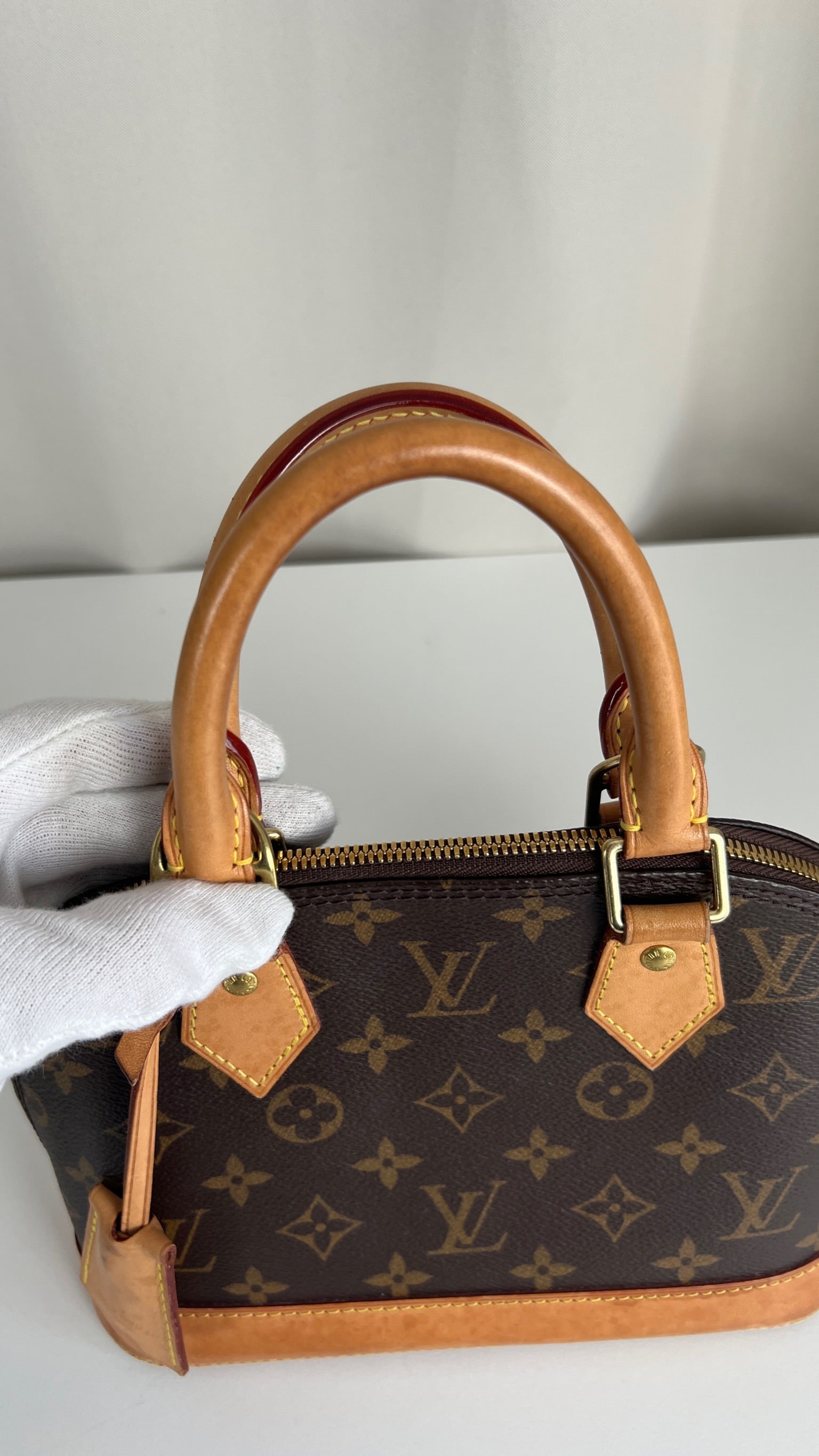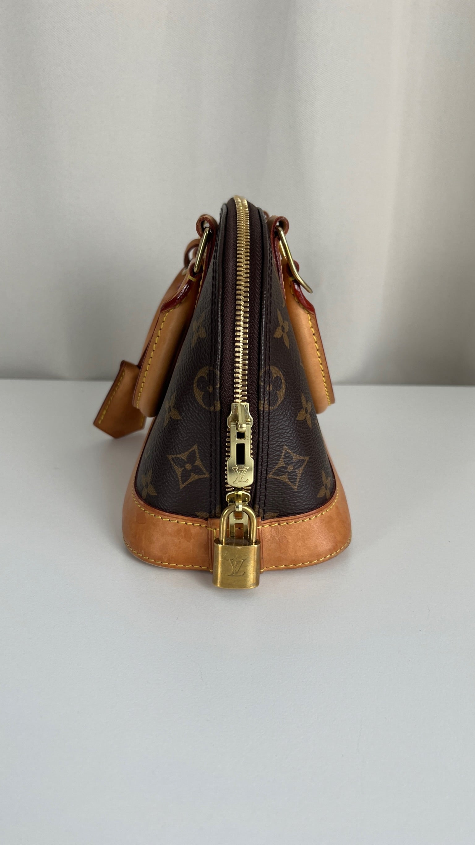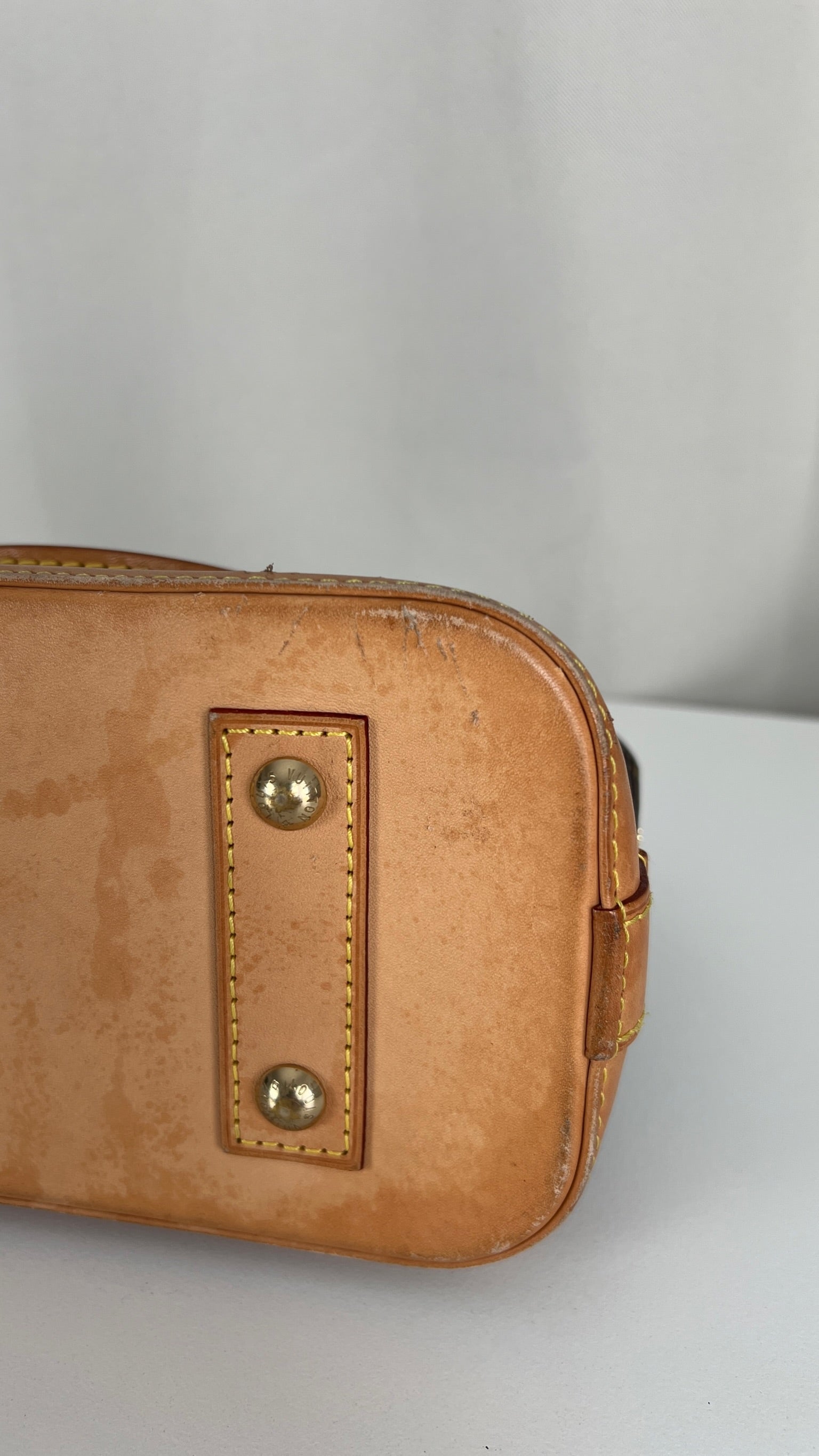 Ce sac Louis Vuitton Alma BB monogram est en bon état. La toile est en très bon état. La base en cuir comporte deux parties présentant des rayures et peu endommagées sur le coin. Les parties en cuir ont quelques taches mais c'est peu. Les poignées présentent également quelques petites "rayures". La bandoulière est en très bon état. L'intérieur est en très bon état.