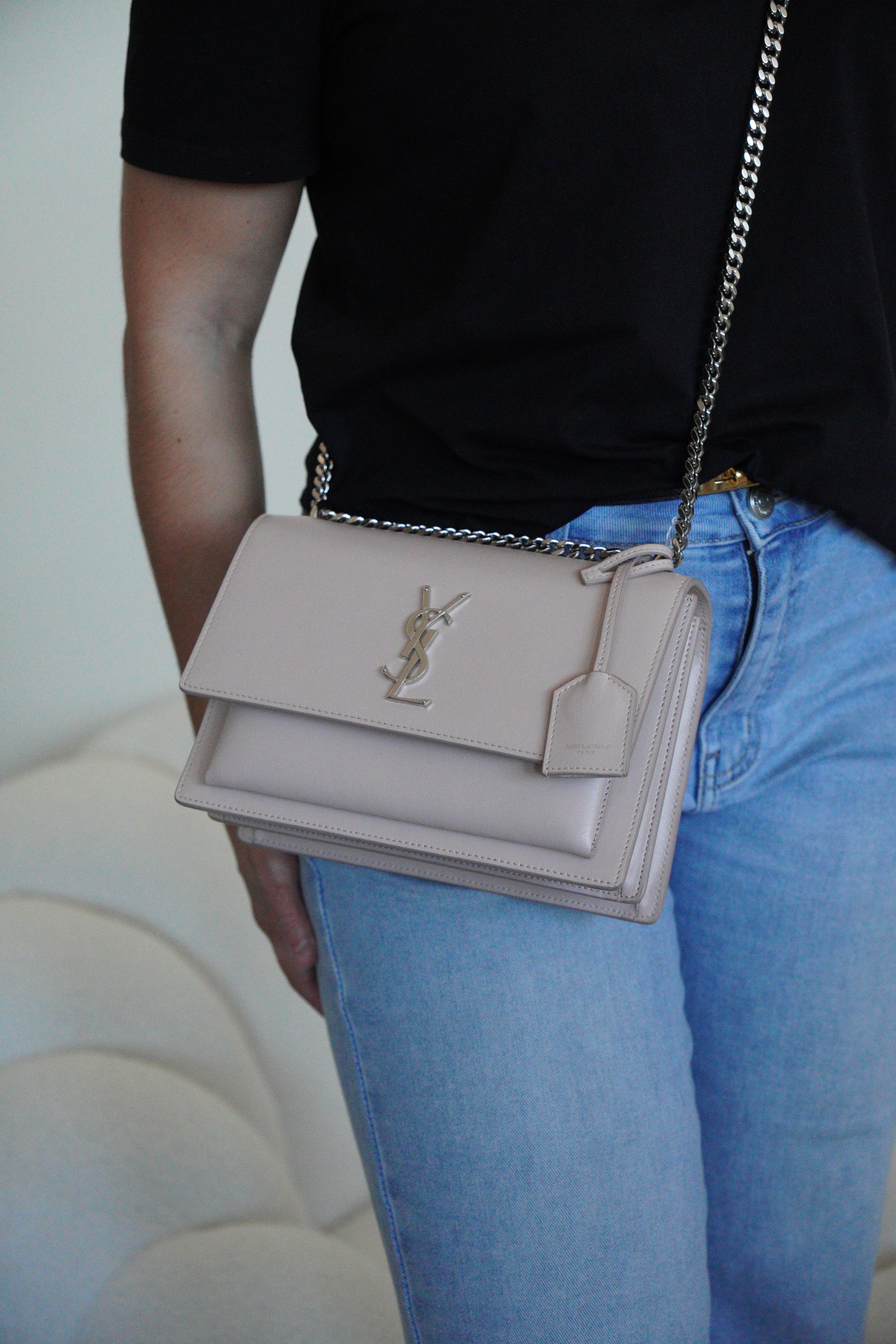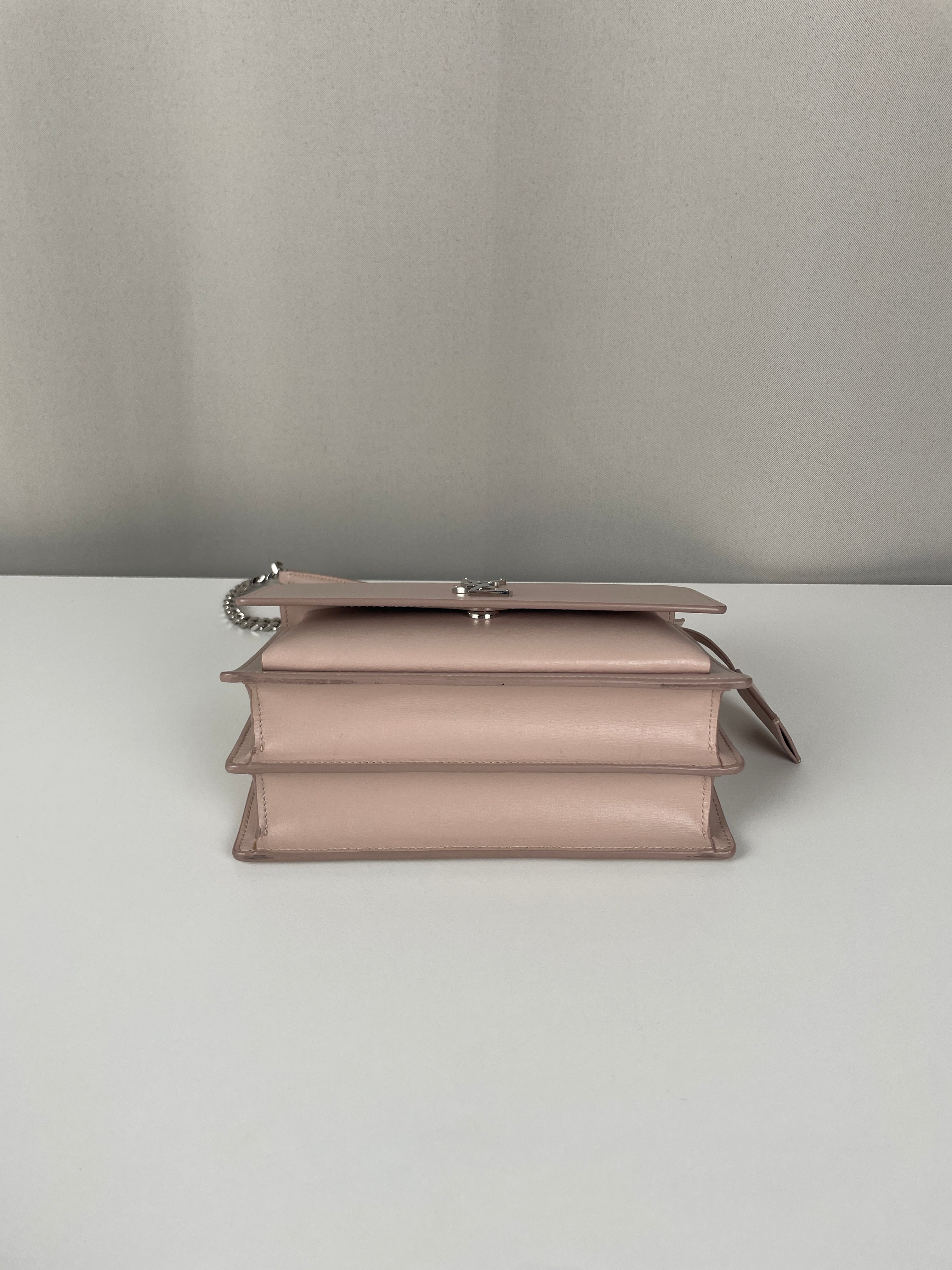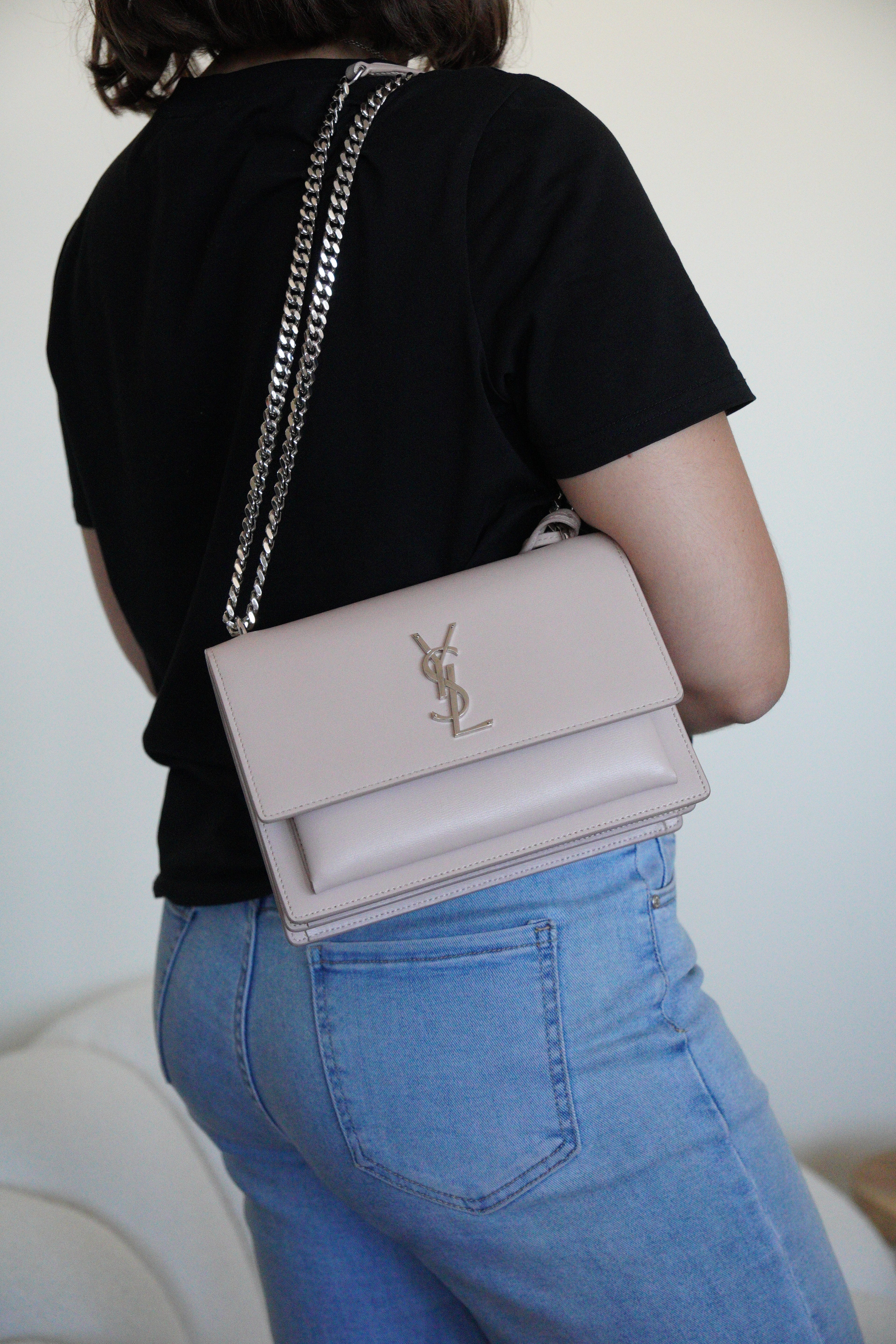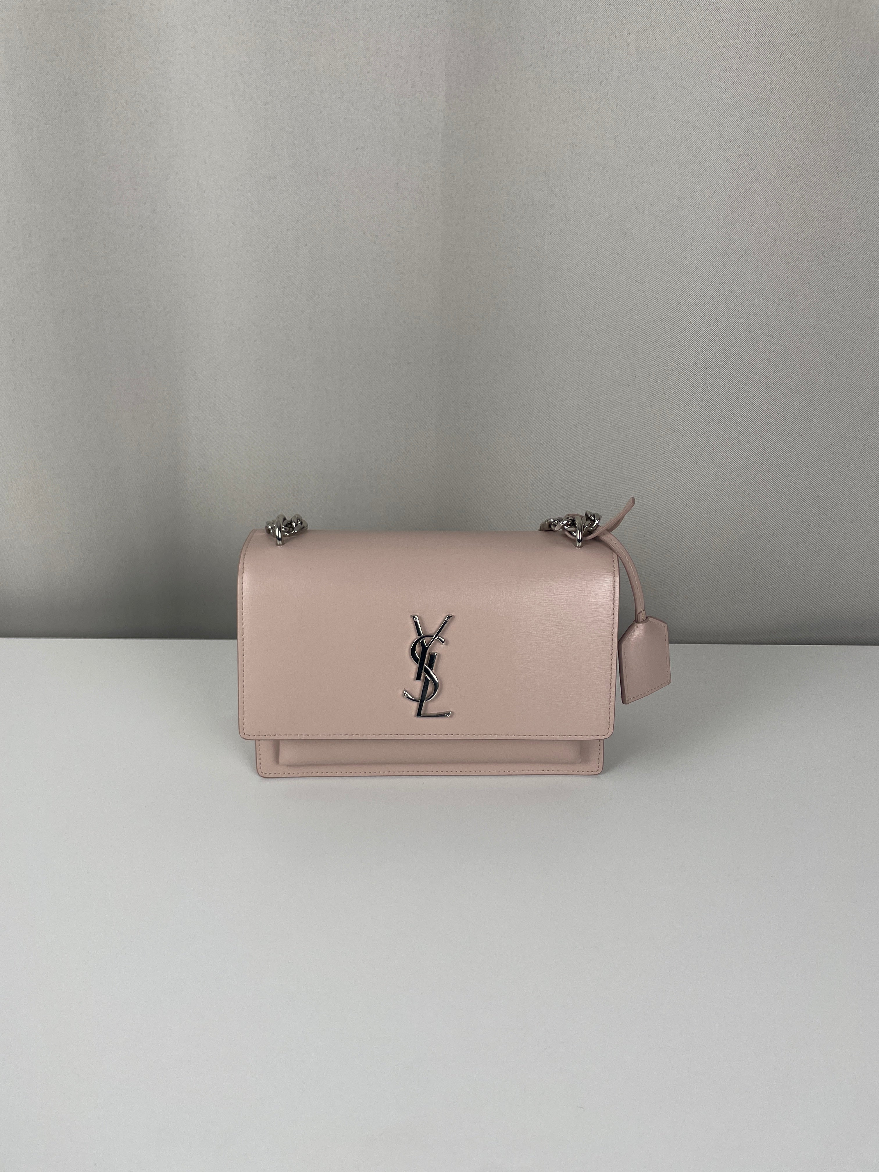 Le sac Saint Laurent Sunset incarne l'approche contemporaine du luxe de la Maison avec ses lignes épurées et sa silhouette sophistiquée. Faisant partie de la collection moderne Saint Laurent sous direction créative, ce sac porté croisé élégant arbore l'emblématique logo YSL et illustre le cool parisien avec son design structuré mais féminin. La bandoulière chaîne polyvalente et les proportions compactes le rendent parfait pour les occasions de jour comme de soir, tandis que la teinte rose distinctive ajoute une touche fraîche et vibrante à cette pièce raffinée qui capture l'essence du style Saint Laurent sans effort.