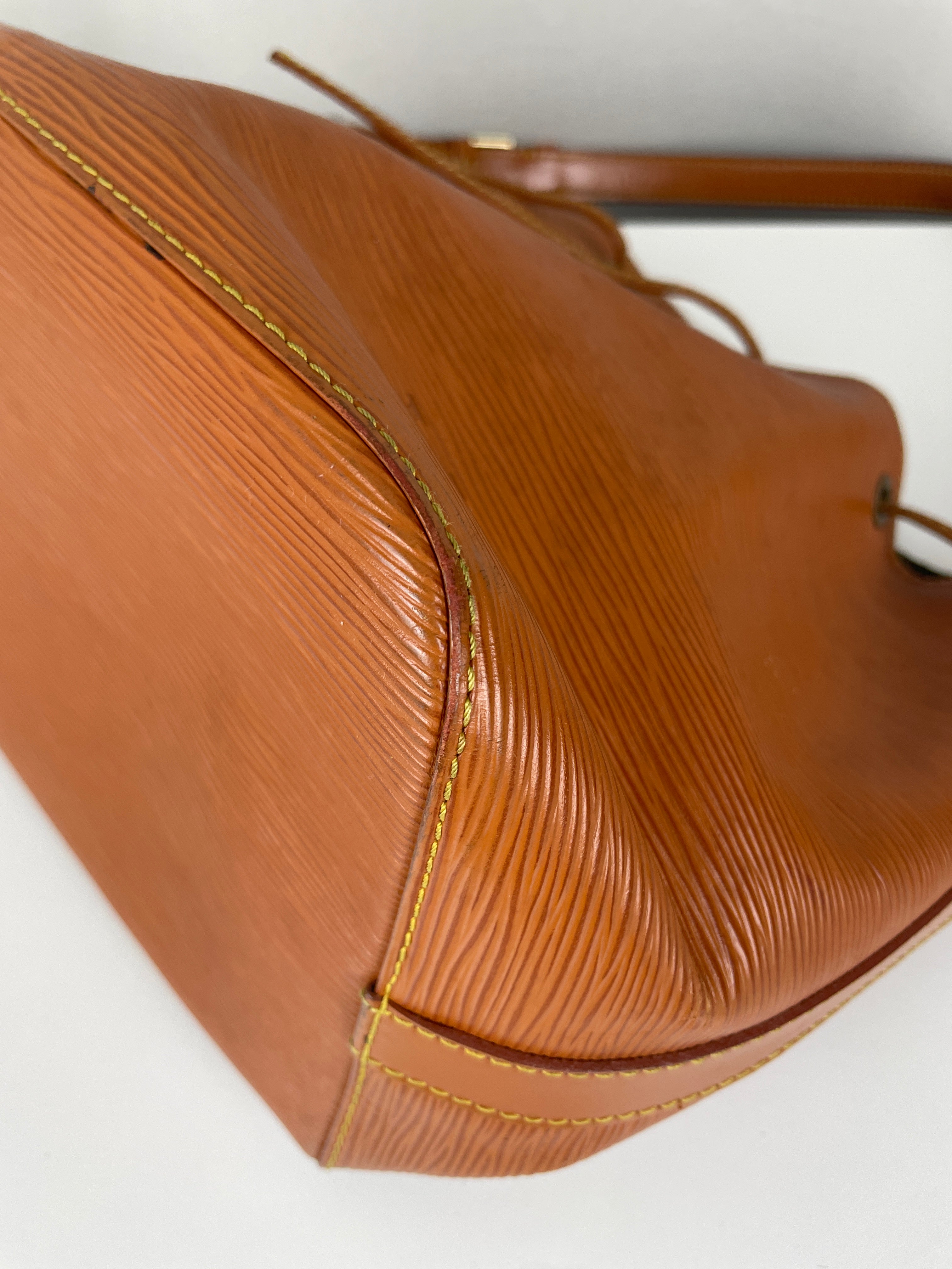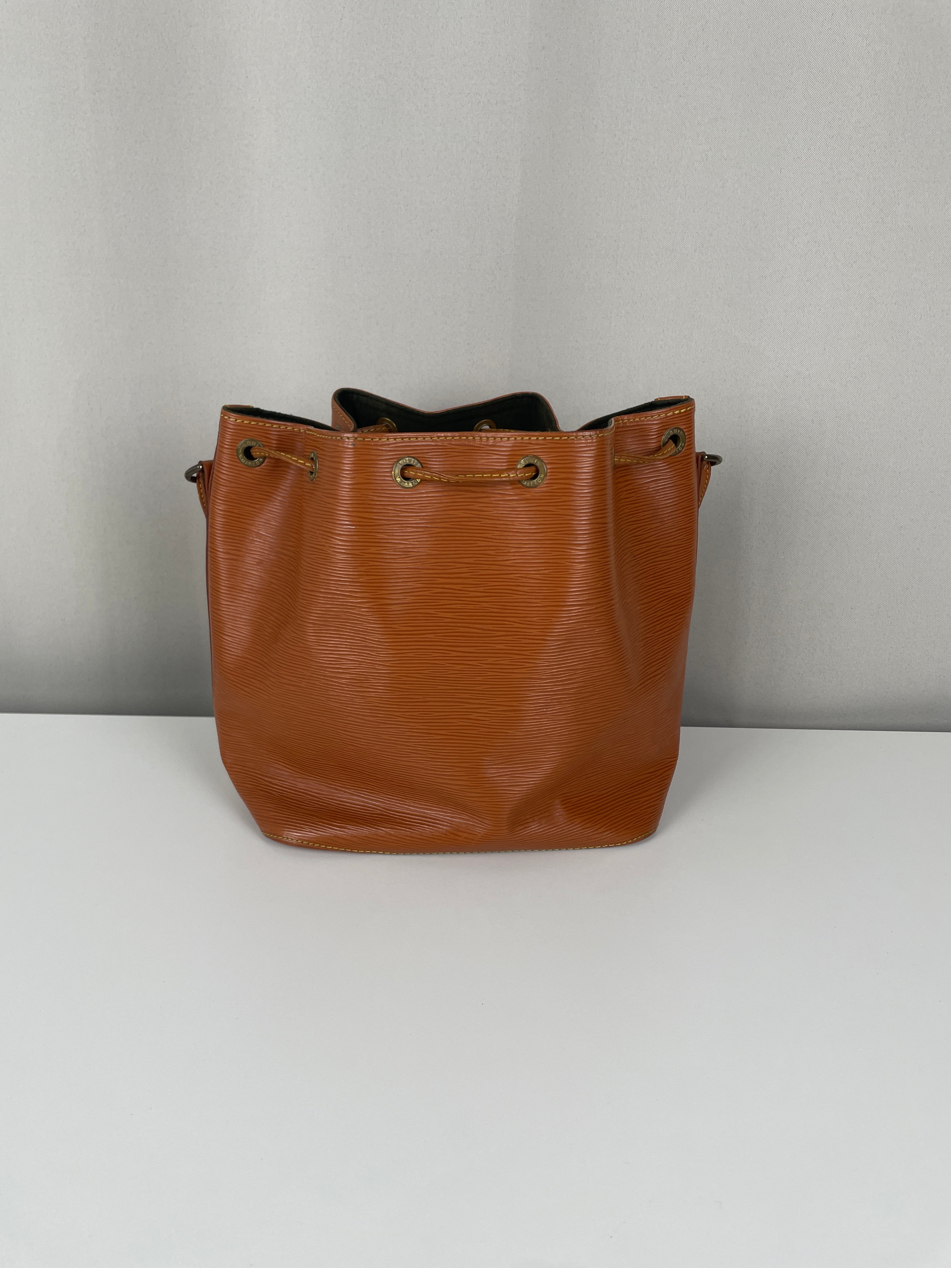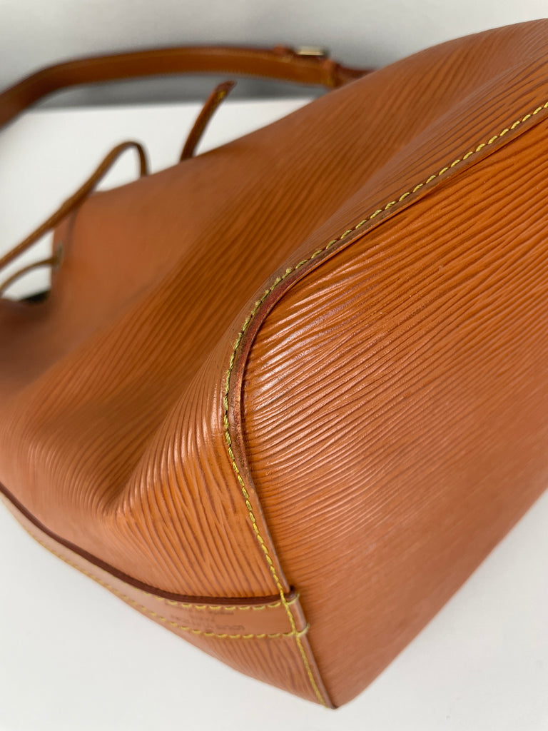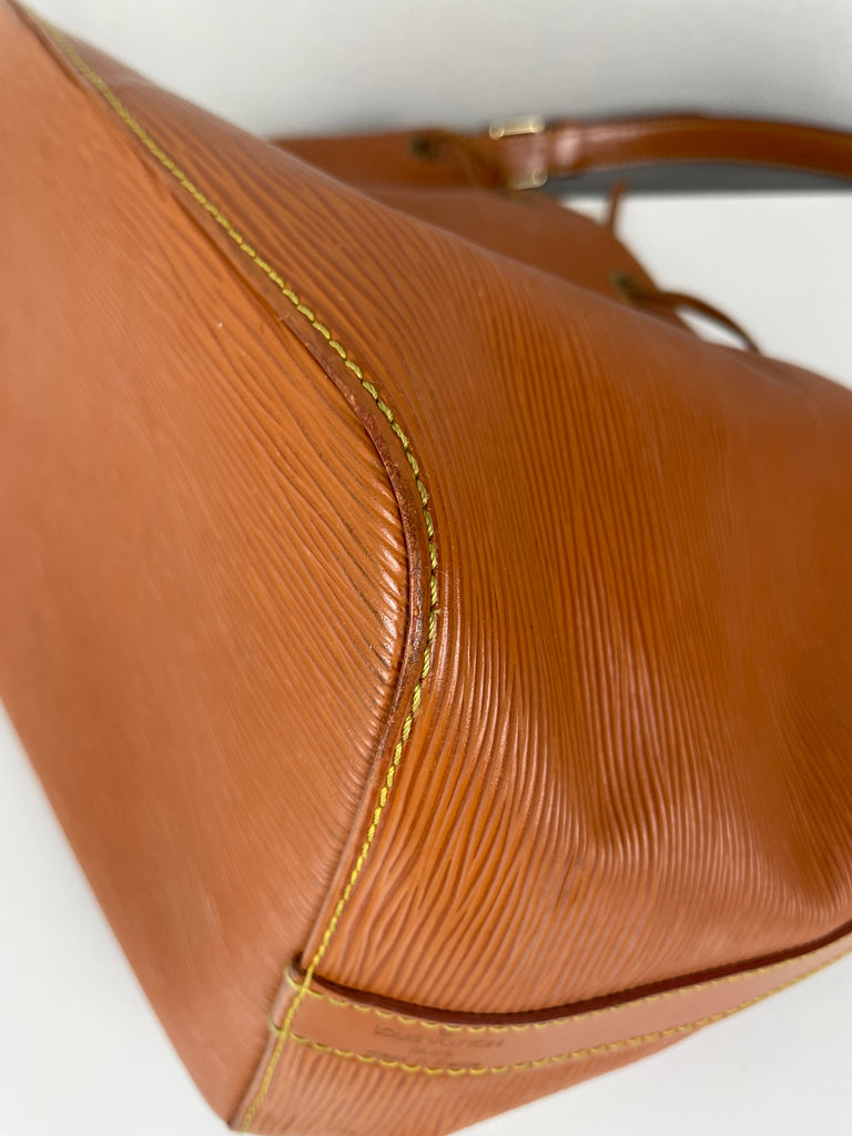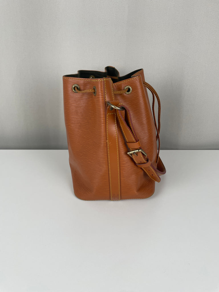 Sac seau Louis Vuitton Noe PM cuir épi marron bijouterie dorée