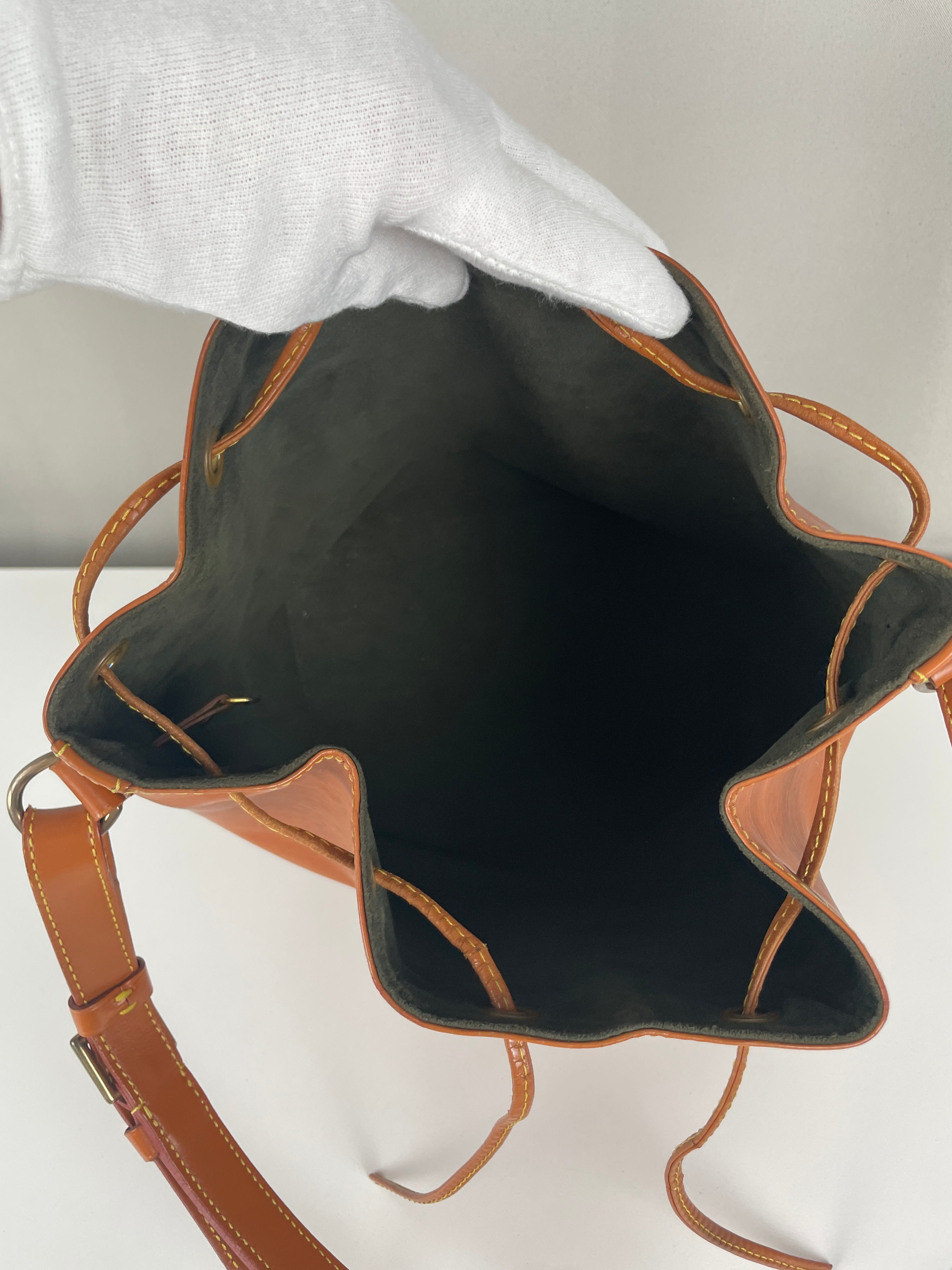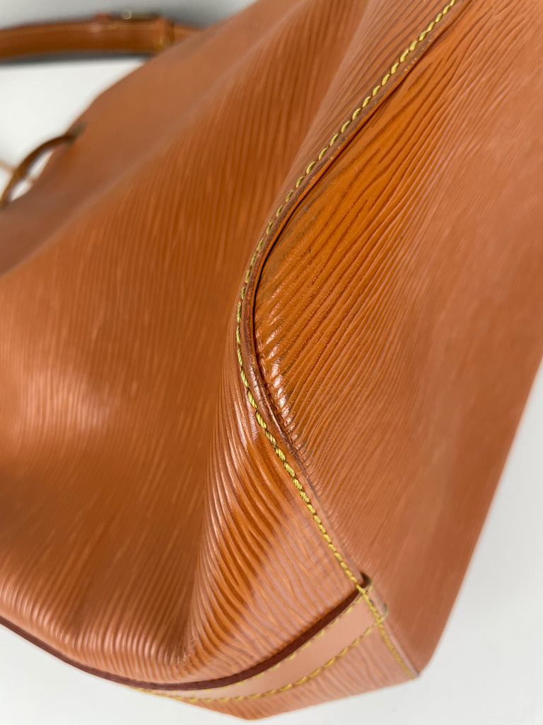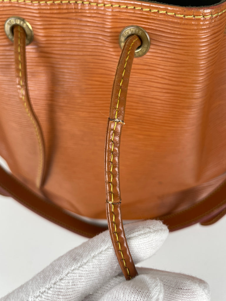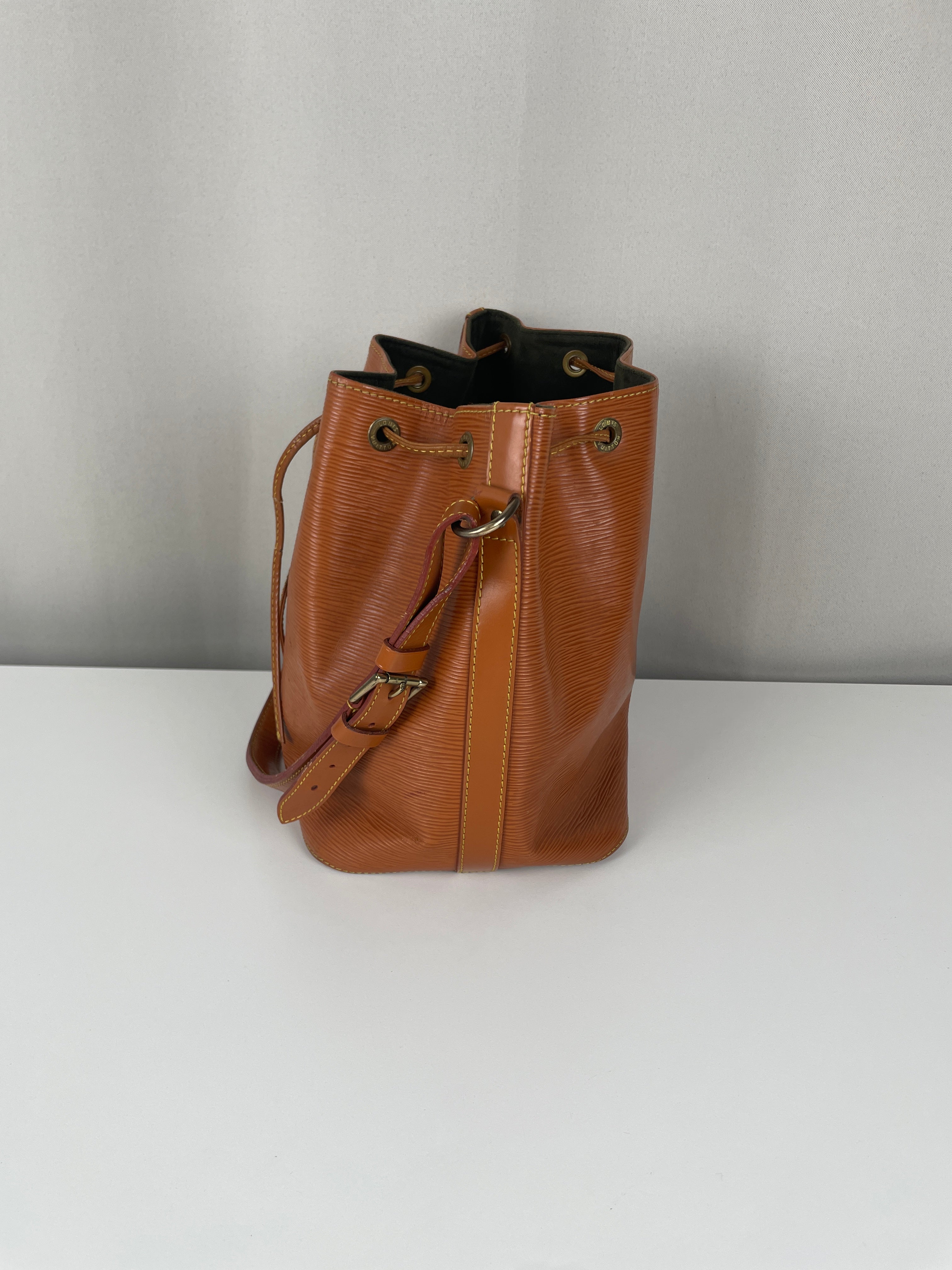 Sac seau Louis Vuitton Noe PM cuir épi marron bijouterie dorée