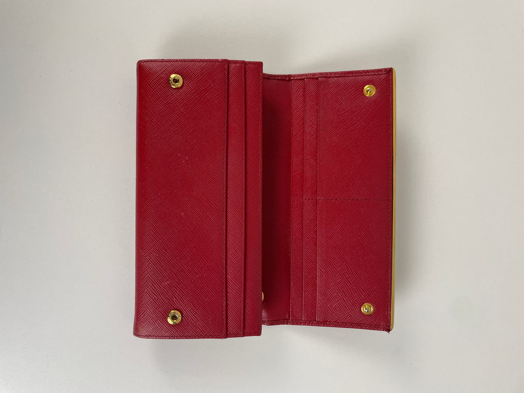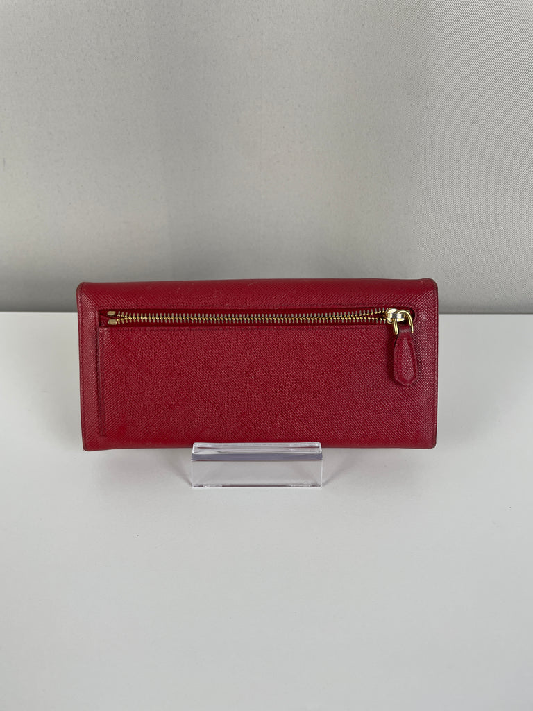 - Cuir : Cuir grainé saffiano en bon état, présentant des traces d'usure et des rayures.
