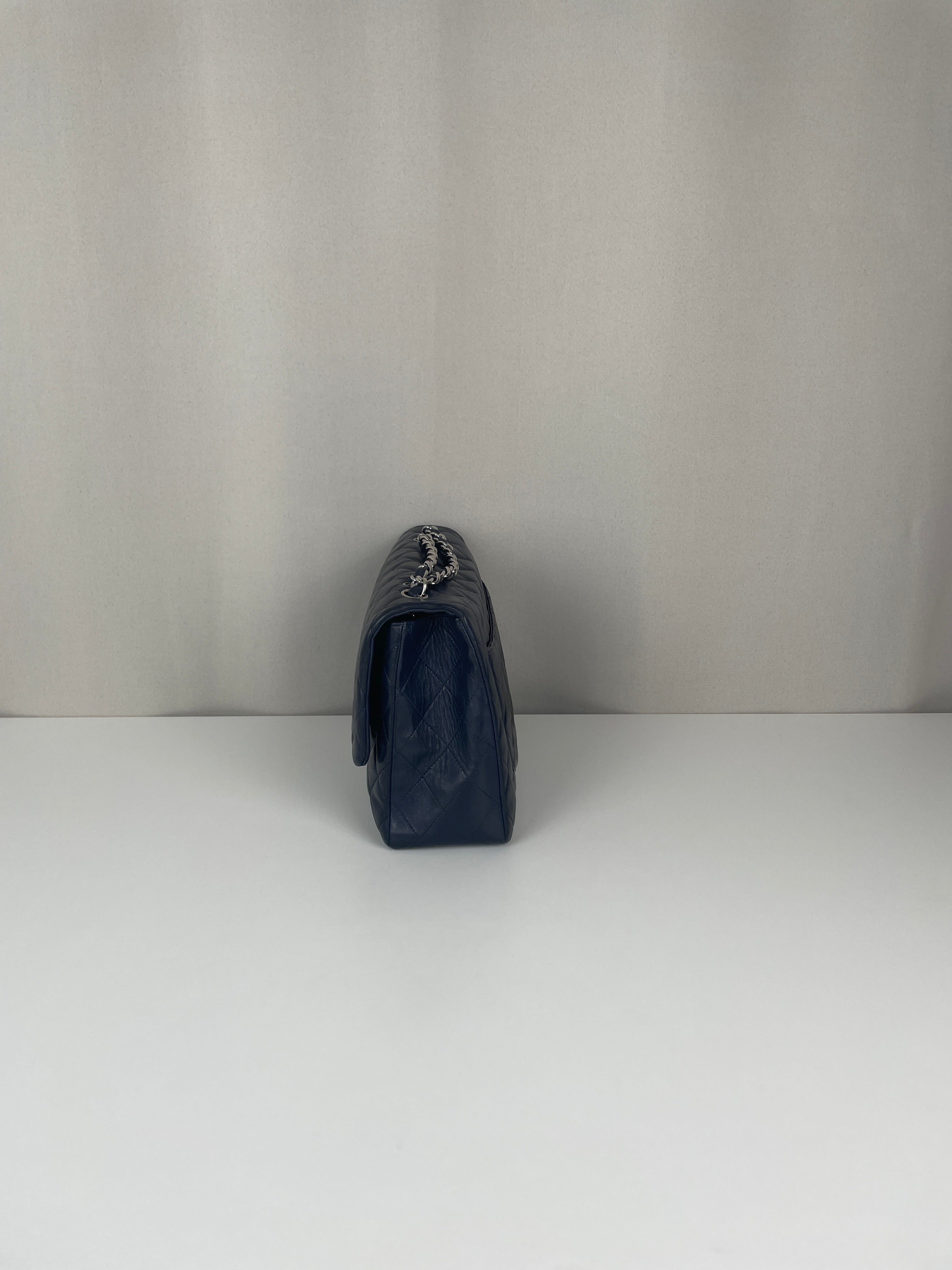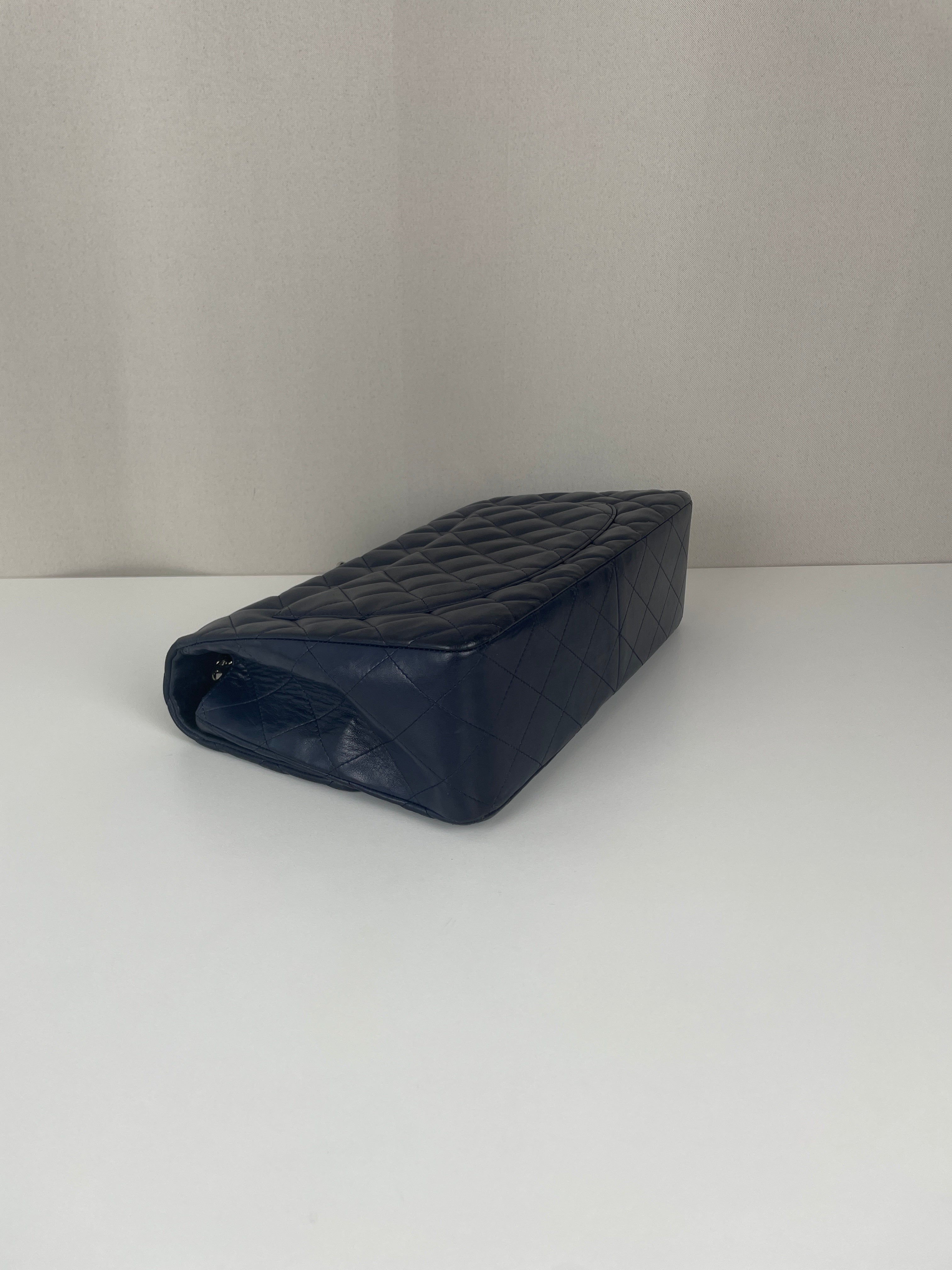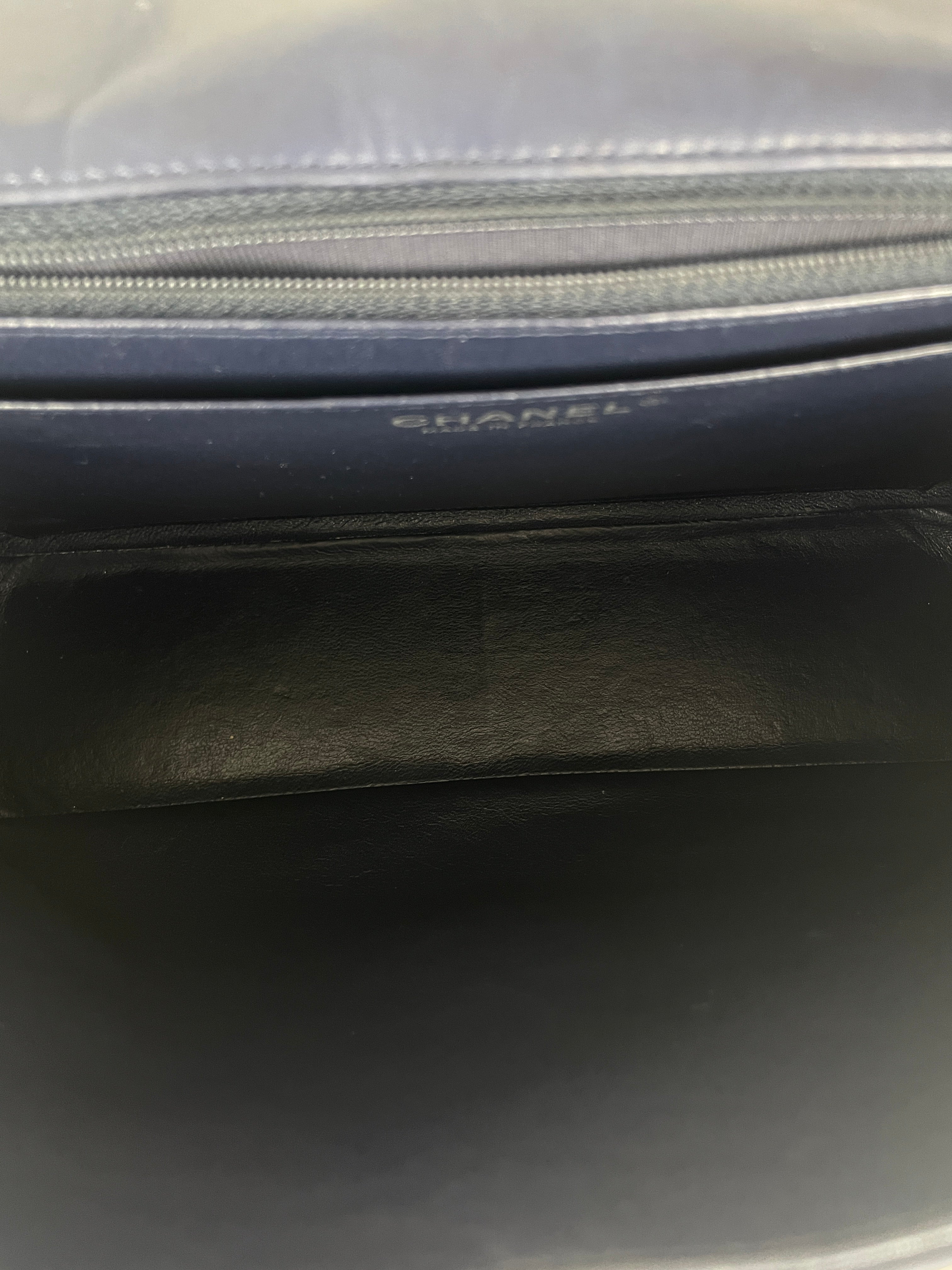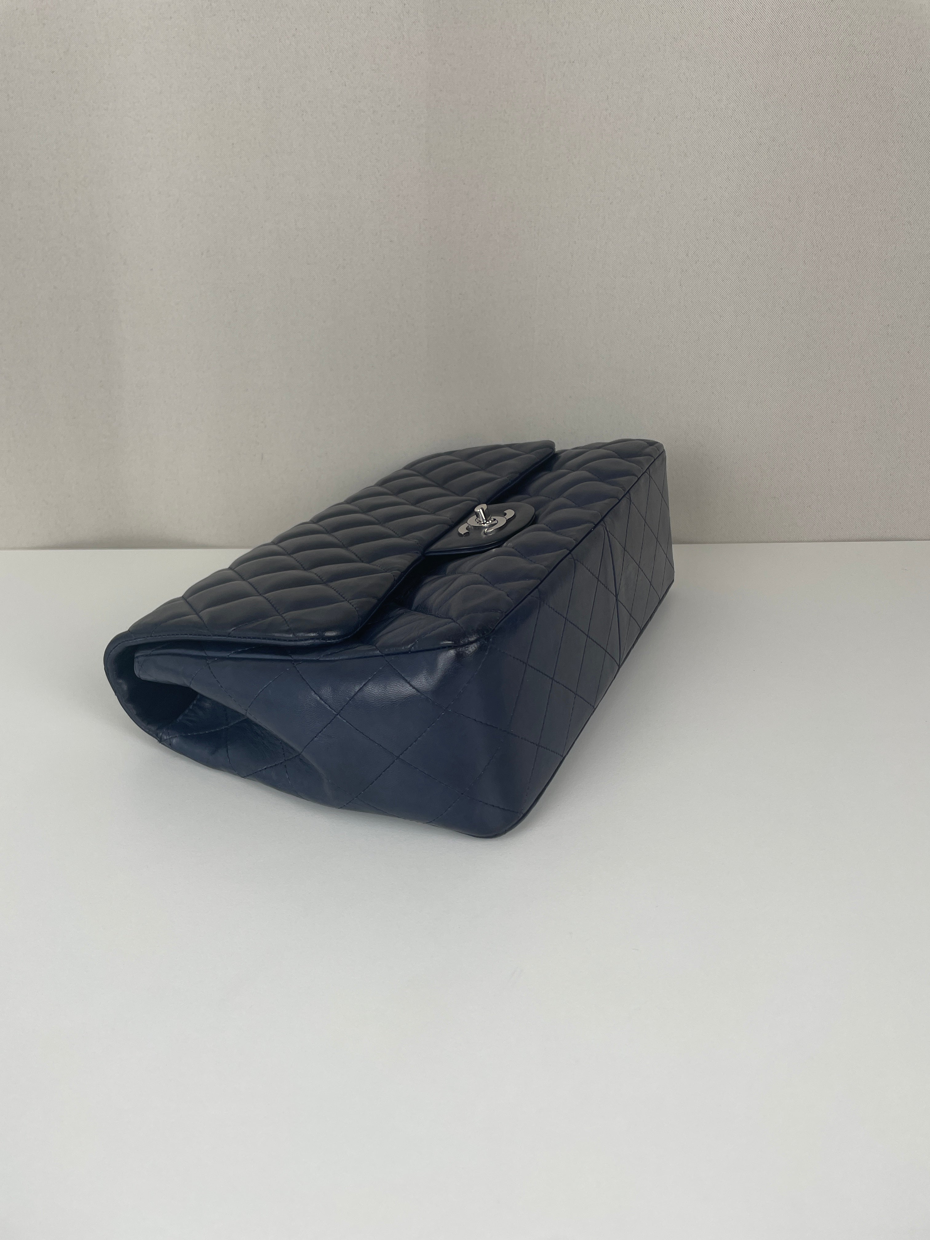 Ce Chanel Jumbo en cuir bleu marine est un classique de la collection 2005–2006. On retrouve tout le charme iconique de la maison avec son matelassage, sa double rabat et sa bijouterie argentée. Sa taille est parfaite pour un usage quotidien chic ou des occasions plus habillées. Un modèle emblématique et un excellent investissement mode.