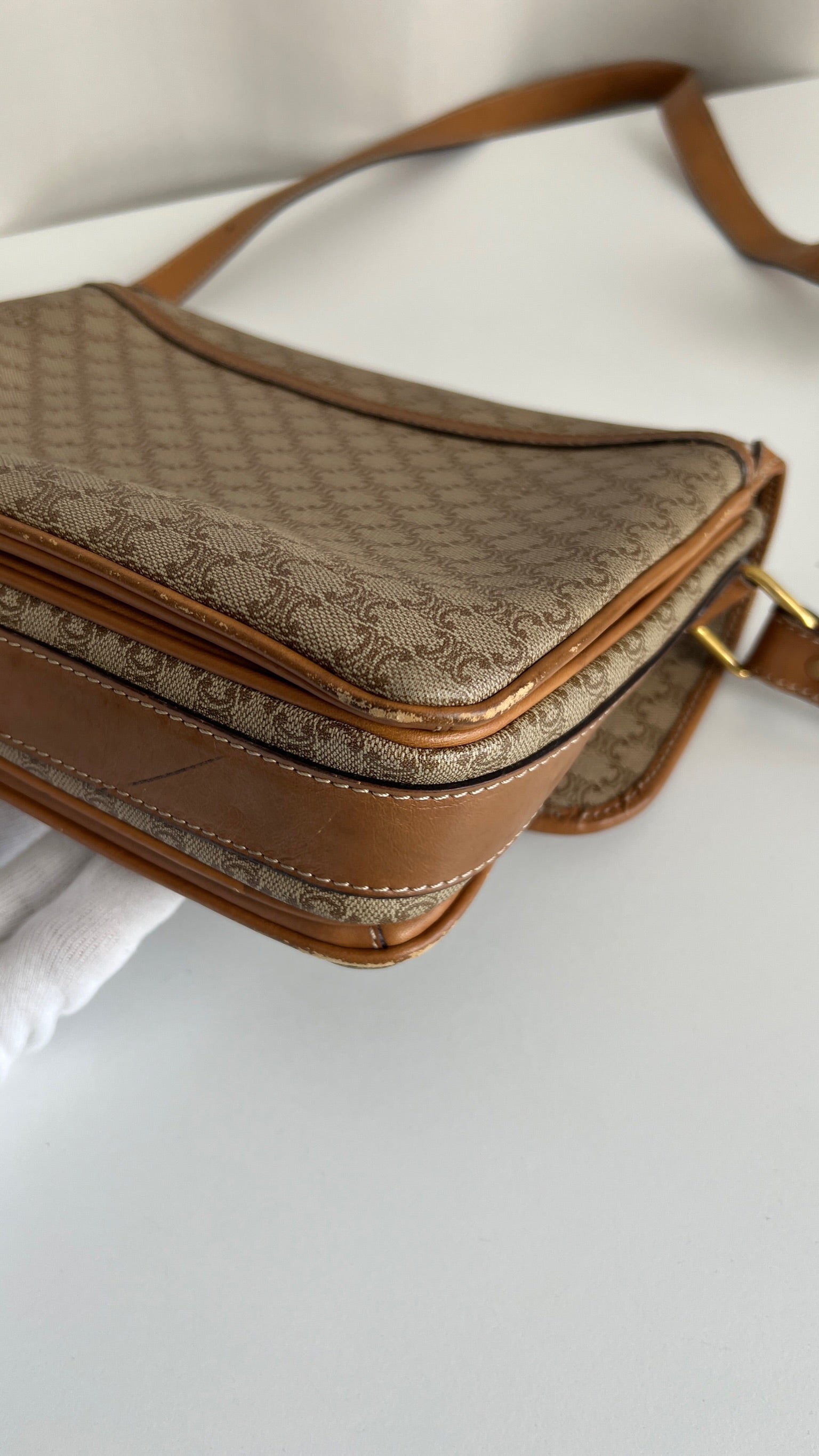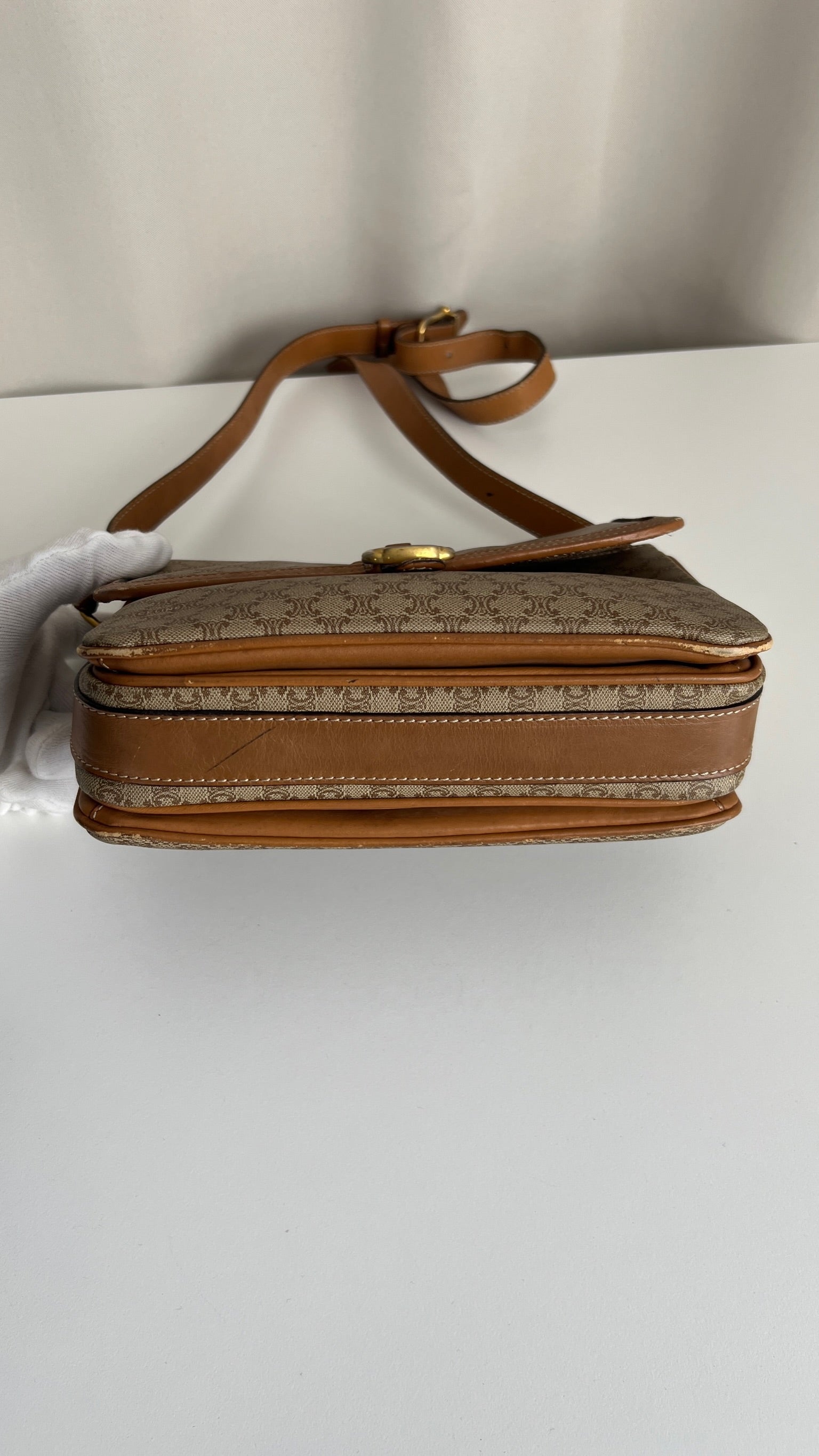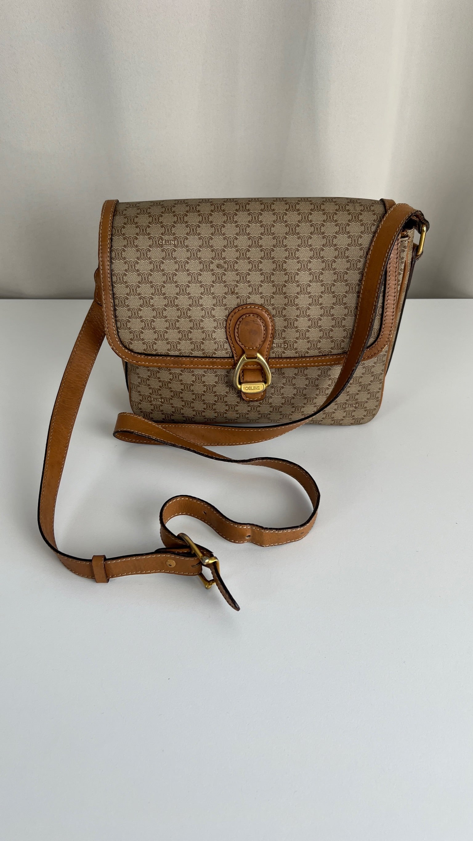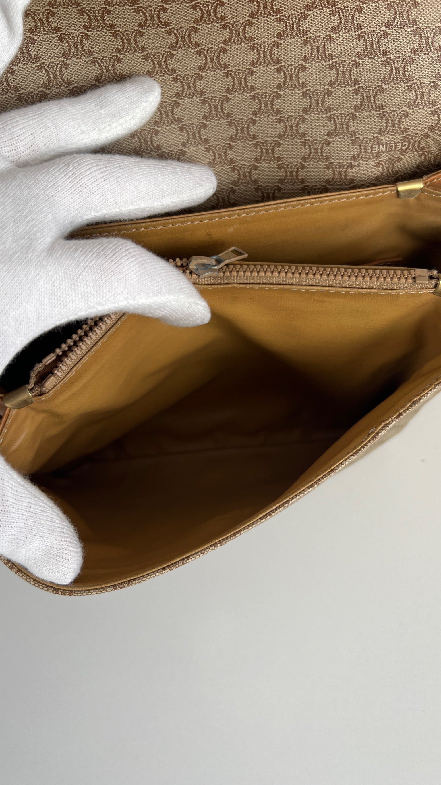 Ce sac Céline est en bon état. Le cuir présente des traces d'usure, les coins sont frottés, la bandoulière est en bon état. Le sac a été utilisé mais est toujours en bon état. La toile est en très bon état. L'intérieur est également en très bon état, aucune tache. La bijouterie est un peu usé suite à une utilisation normale. Vous disposez d'une poche zippée à l'intérieur du sac.