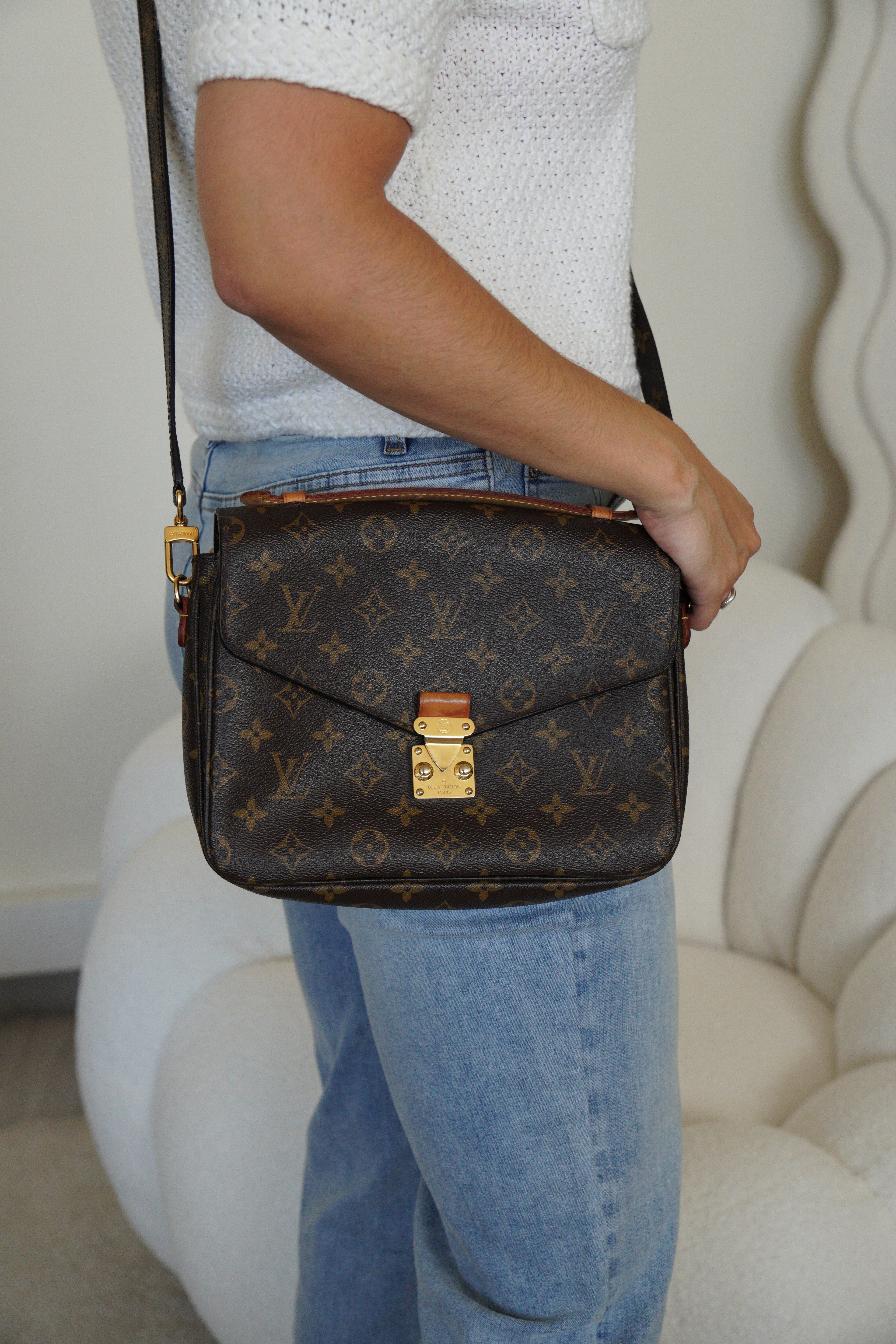 Ce sac Louis Vuitton Metis Monogram est en très bon état. La toile est en très bon état. Les coins sont en très bon état. Les parties en cuir sont tannées et en très bon état. La bandoulière est en très bon état. L'intérieur est en très bon état.