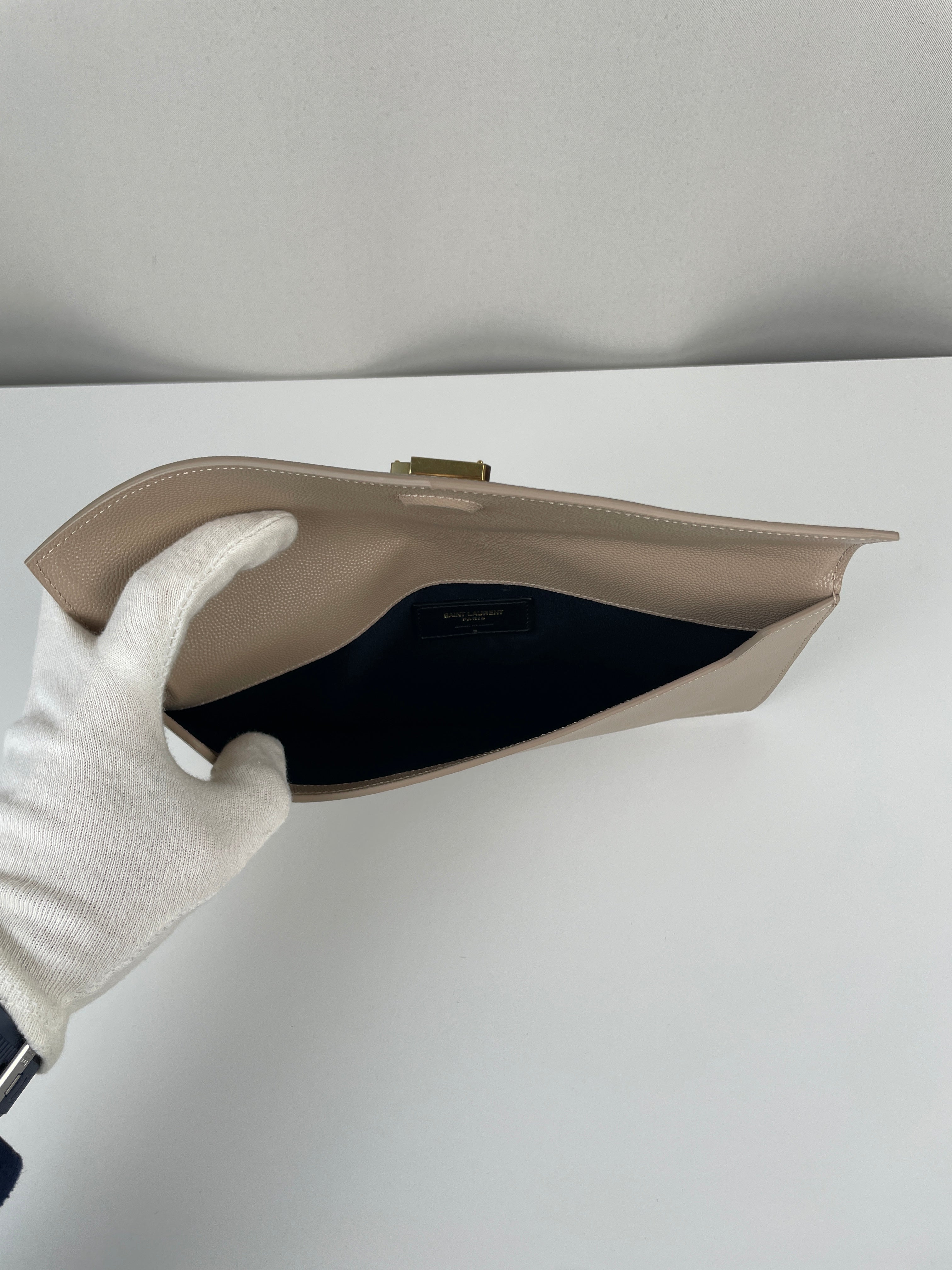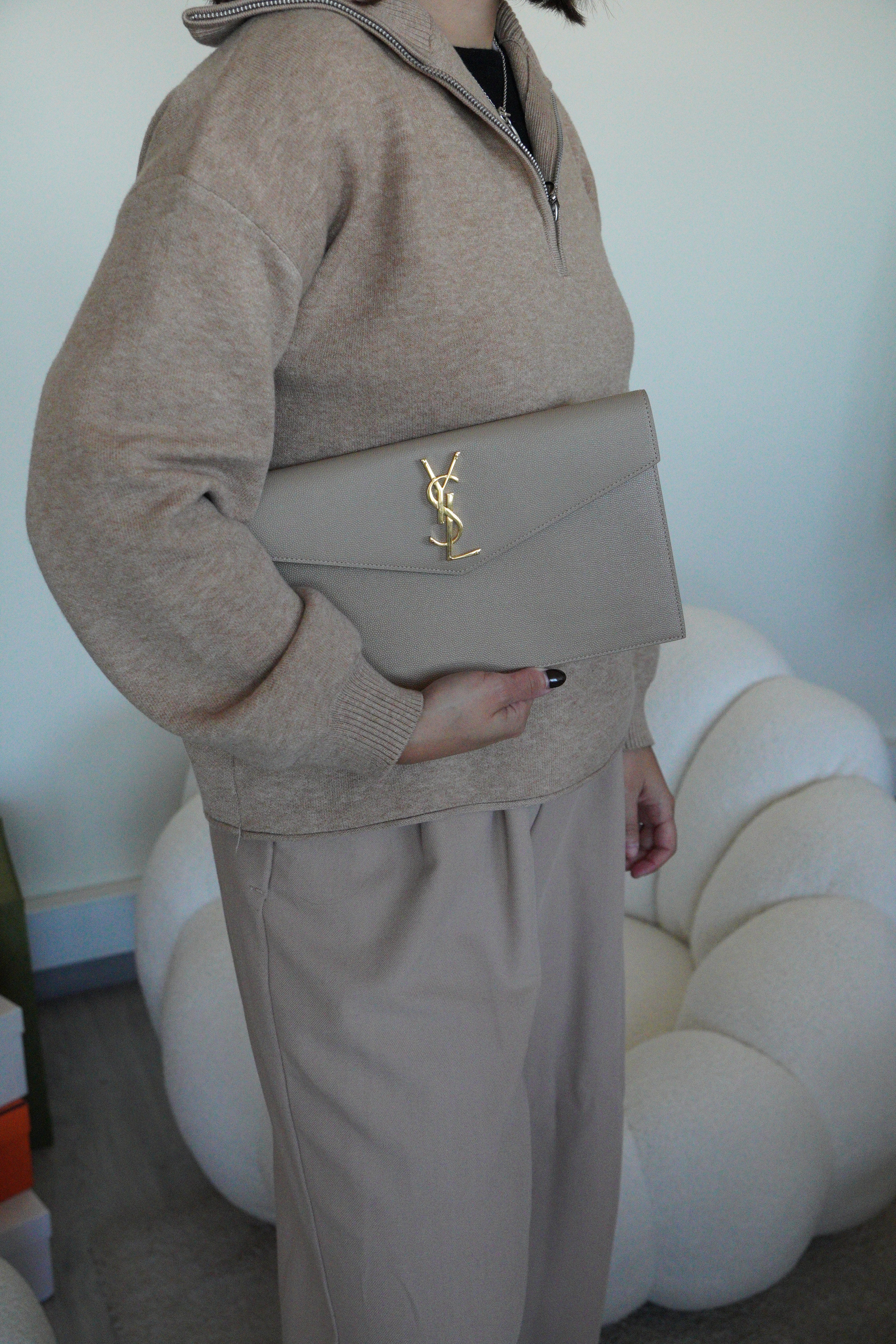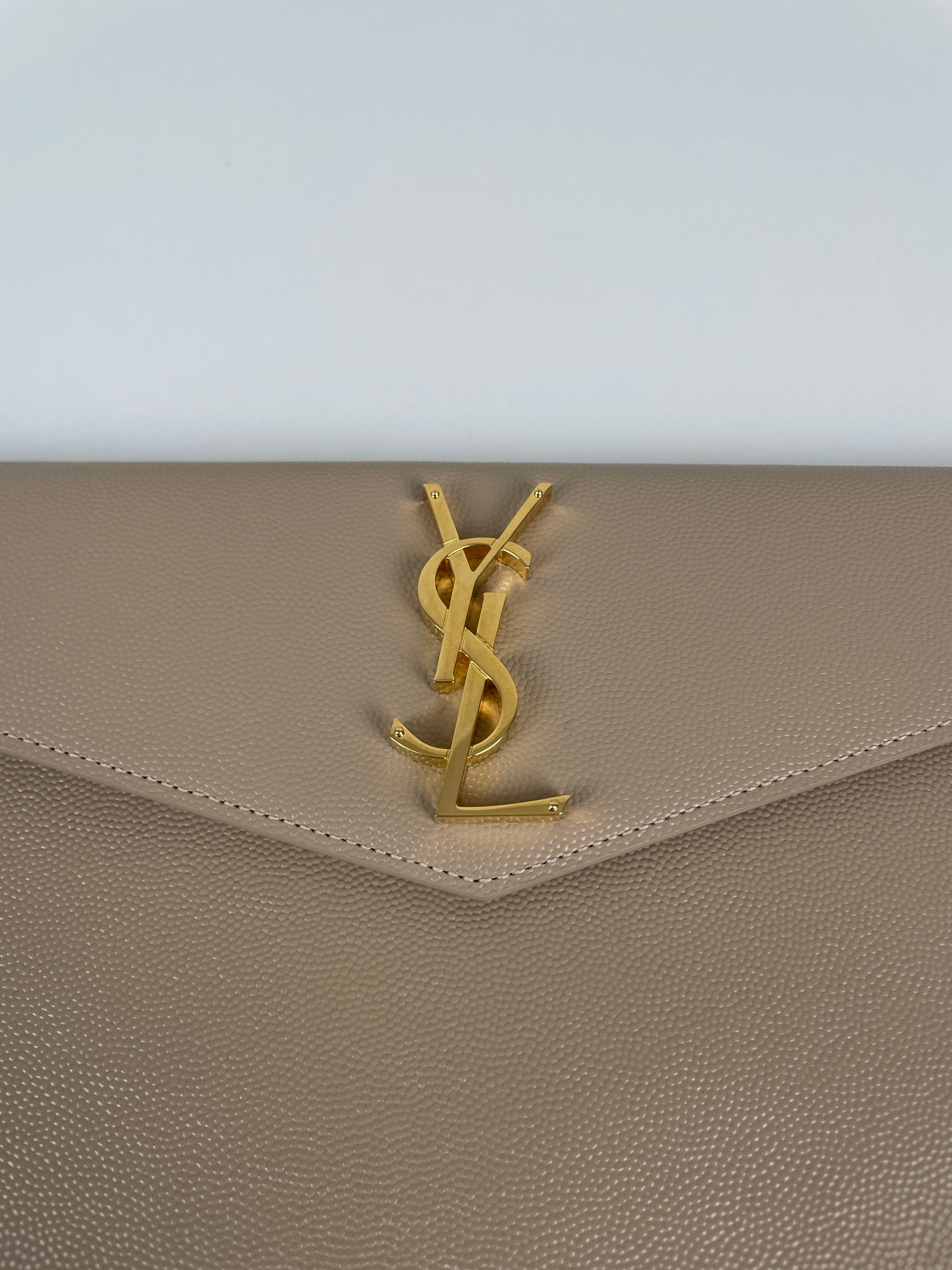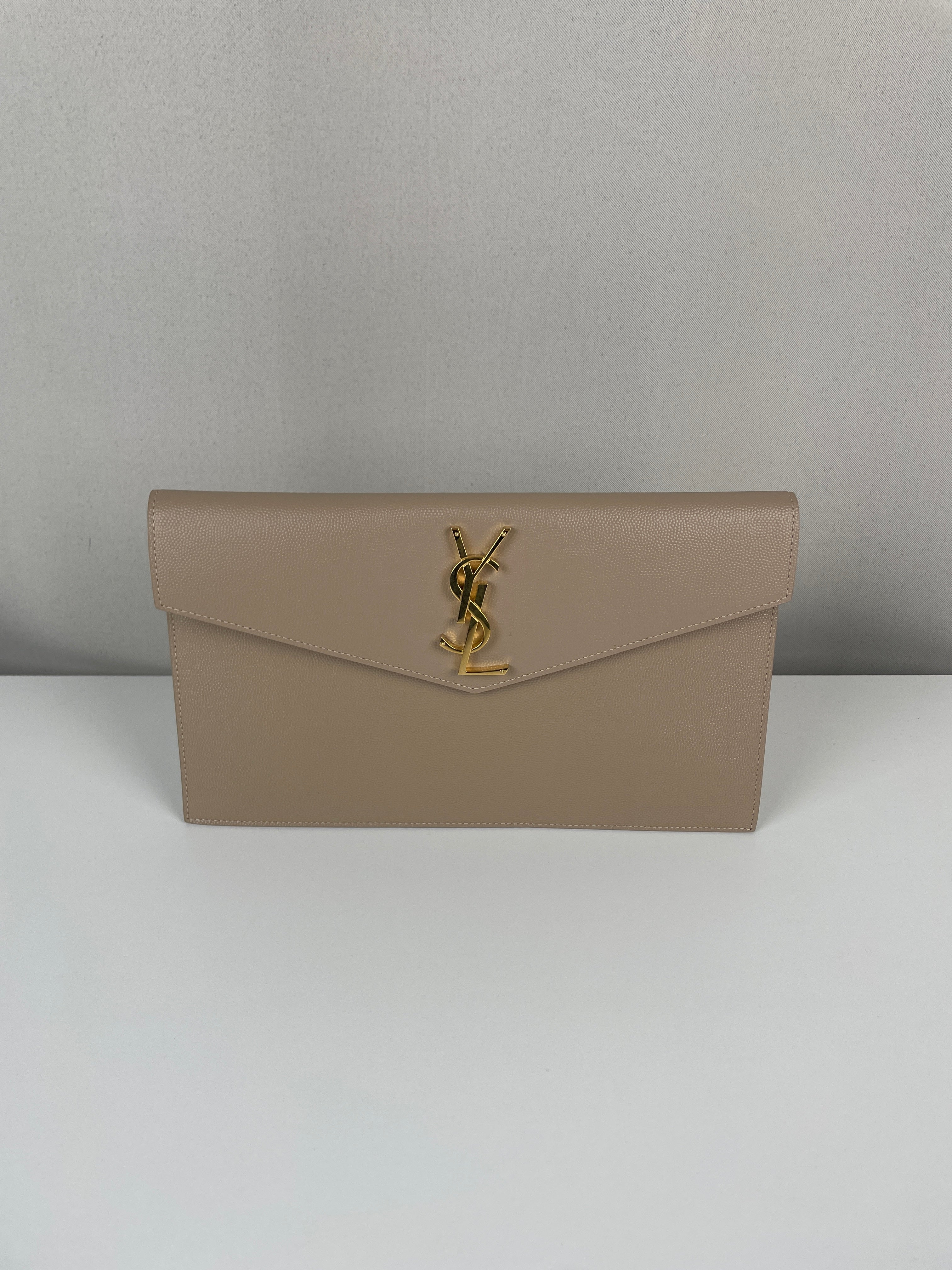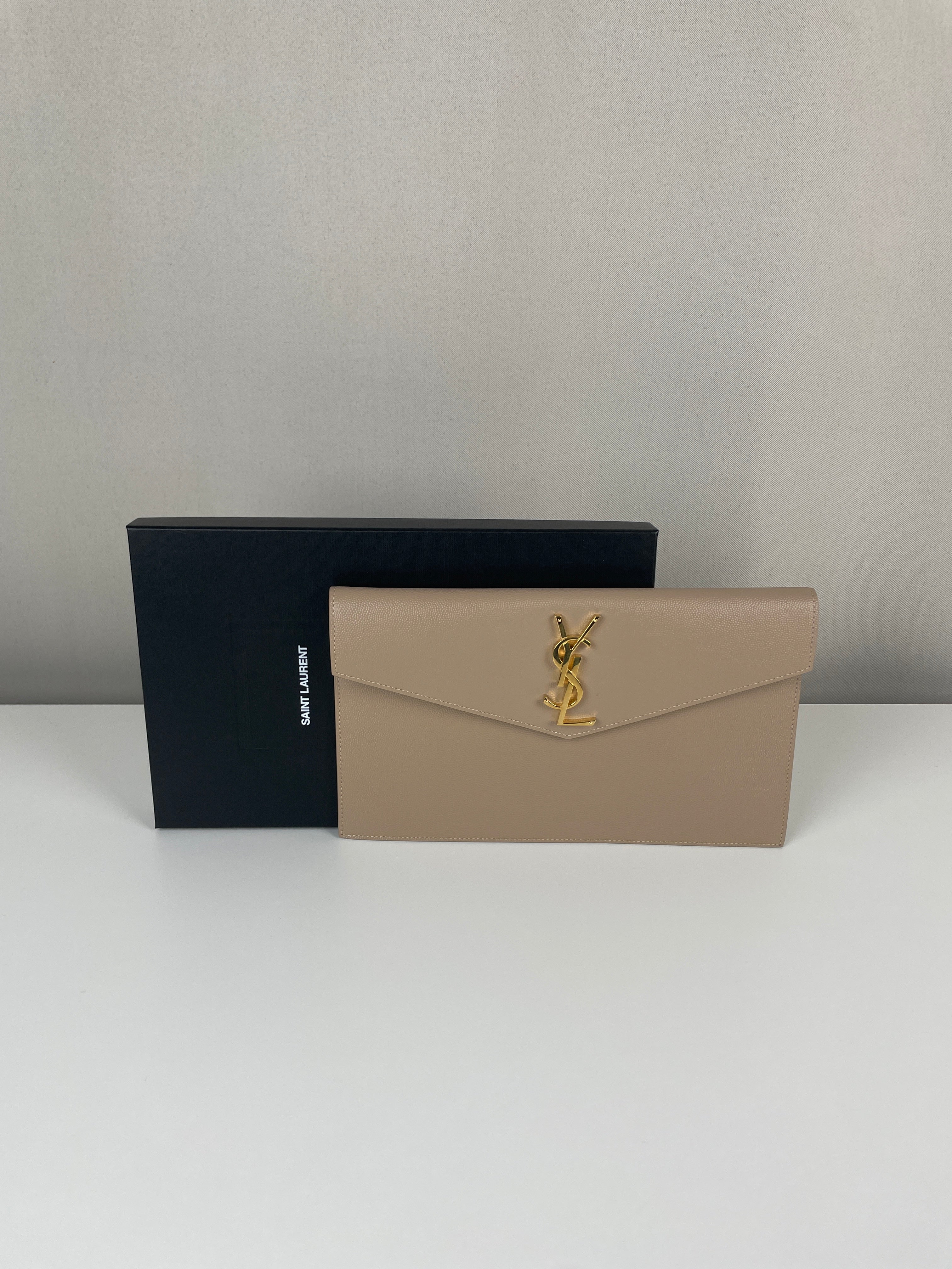 Cette pochette Saint Laurent Uptown est en très bon état, presque comme neuf. Le cuir, la bijouterie et les coins sont en très bon état. L'intérieur est également en très bon état. Il est livré avec la boîte.