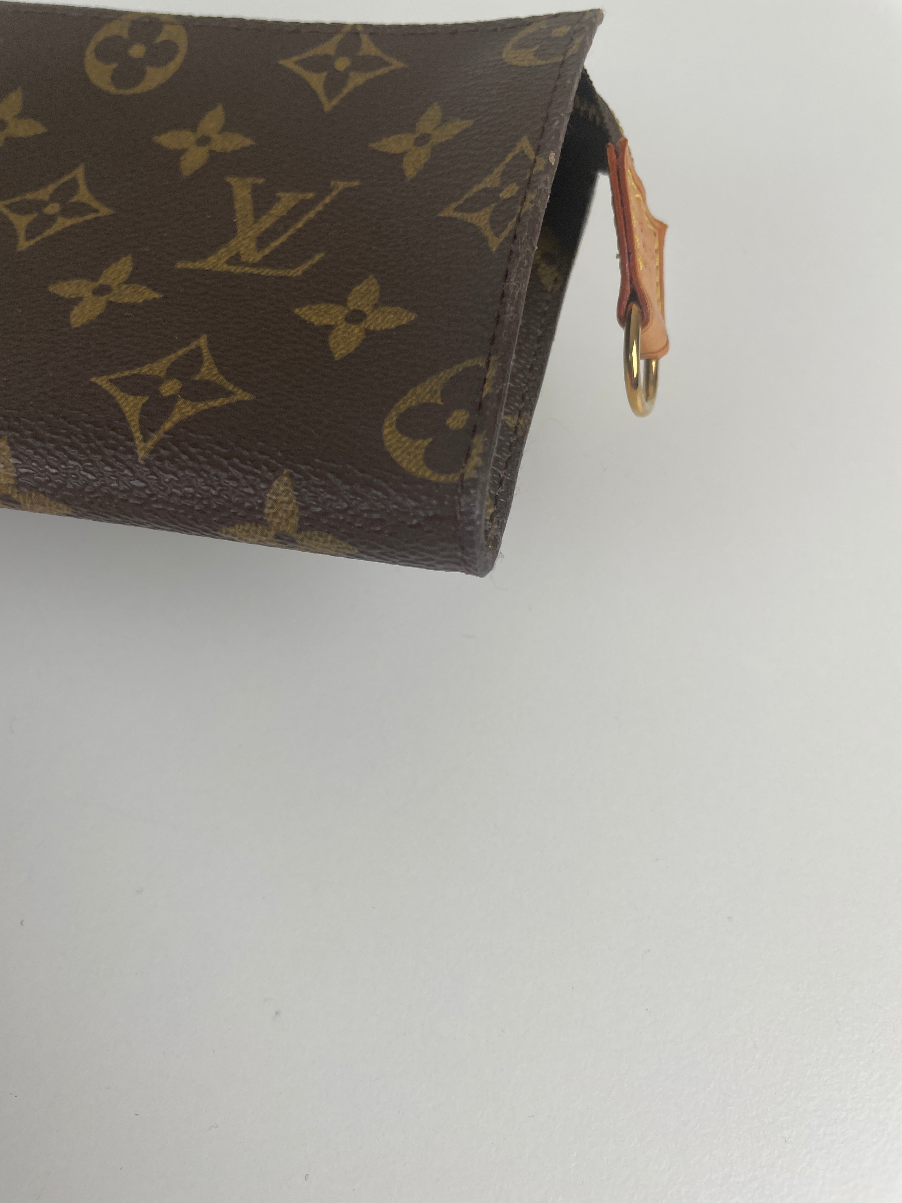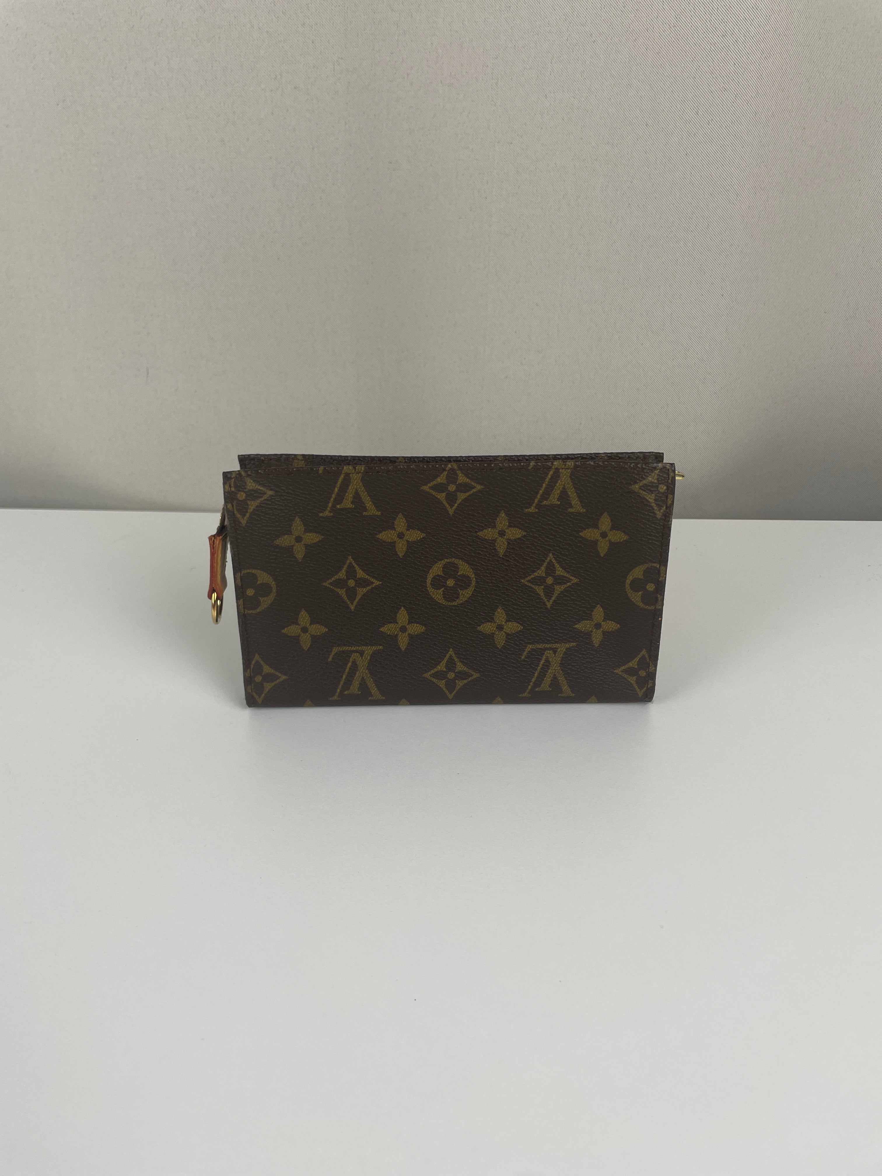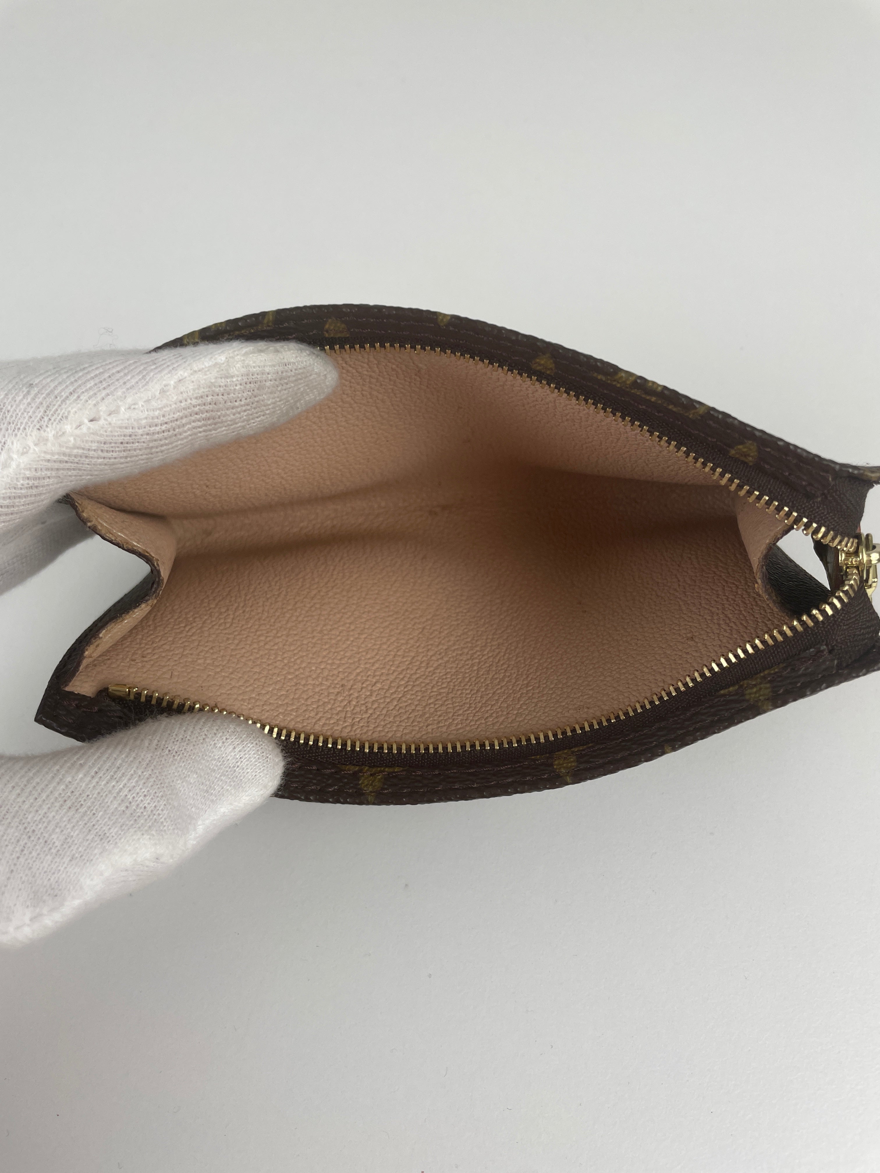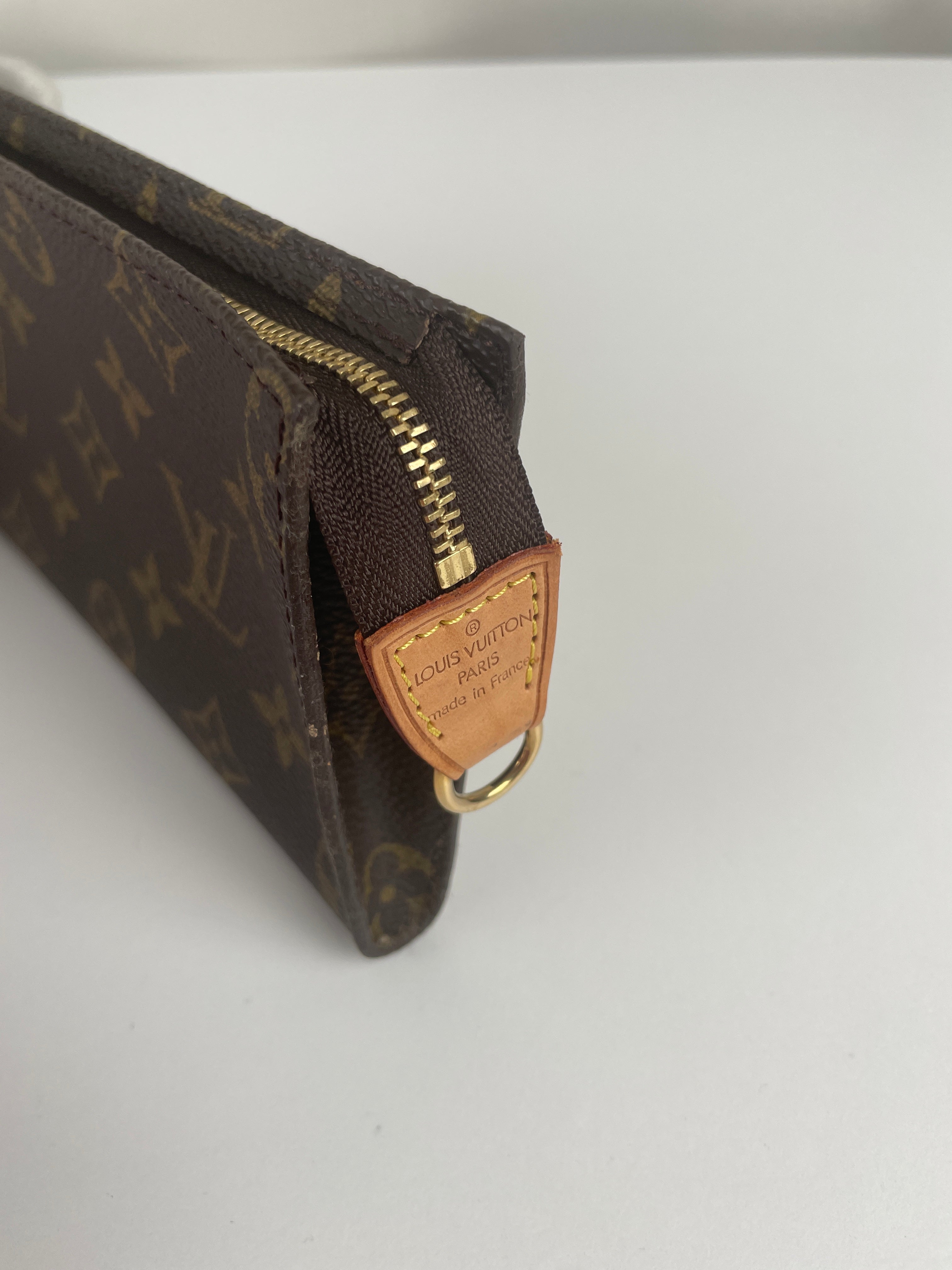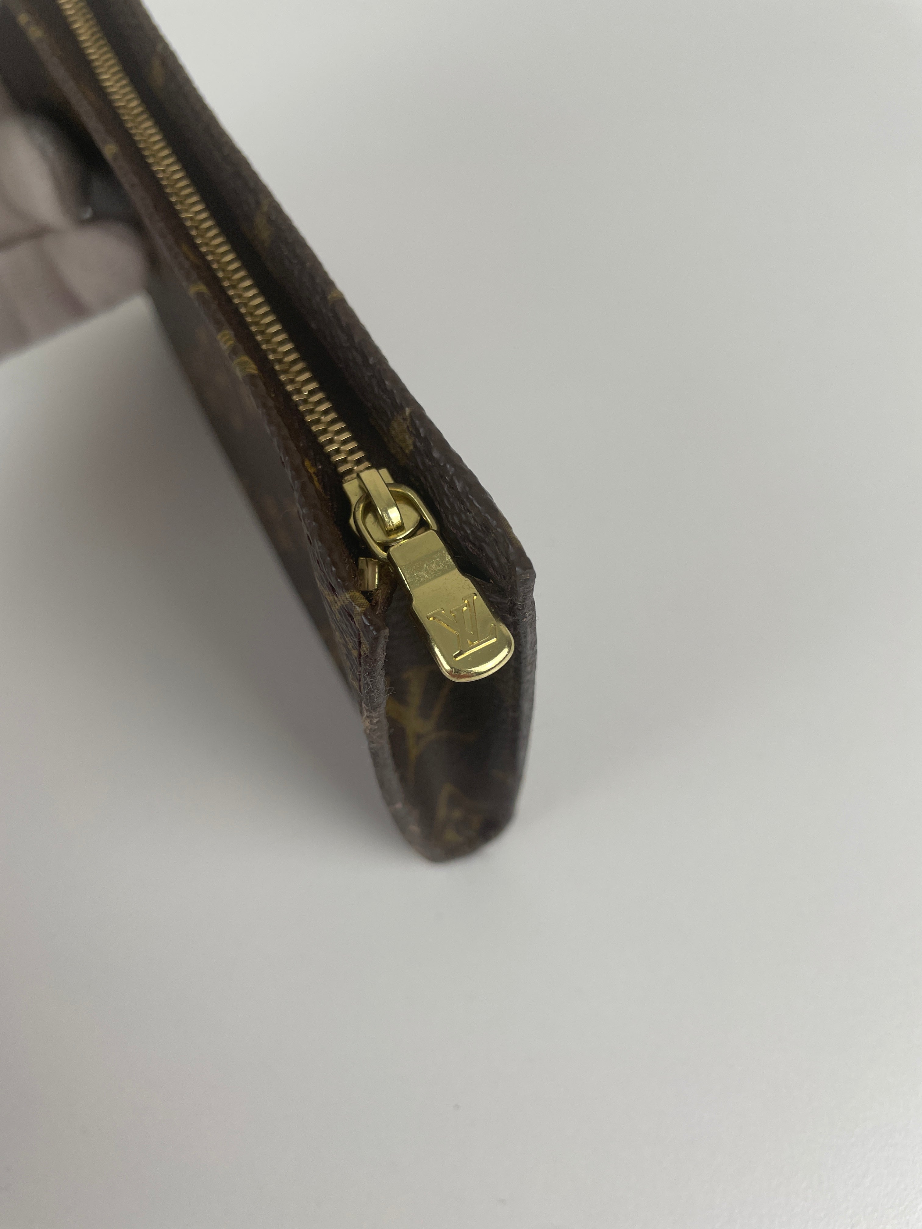 Cette petite pochette Louis Vuitton Monogram est en très bon état. La toile et les coins sont en très bon état. La partie cuir est en très bon état. La quincaillerie est en très bon état. L'intérieur est en très bon état.