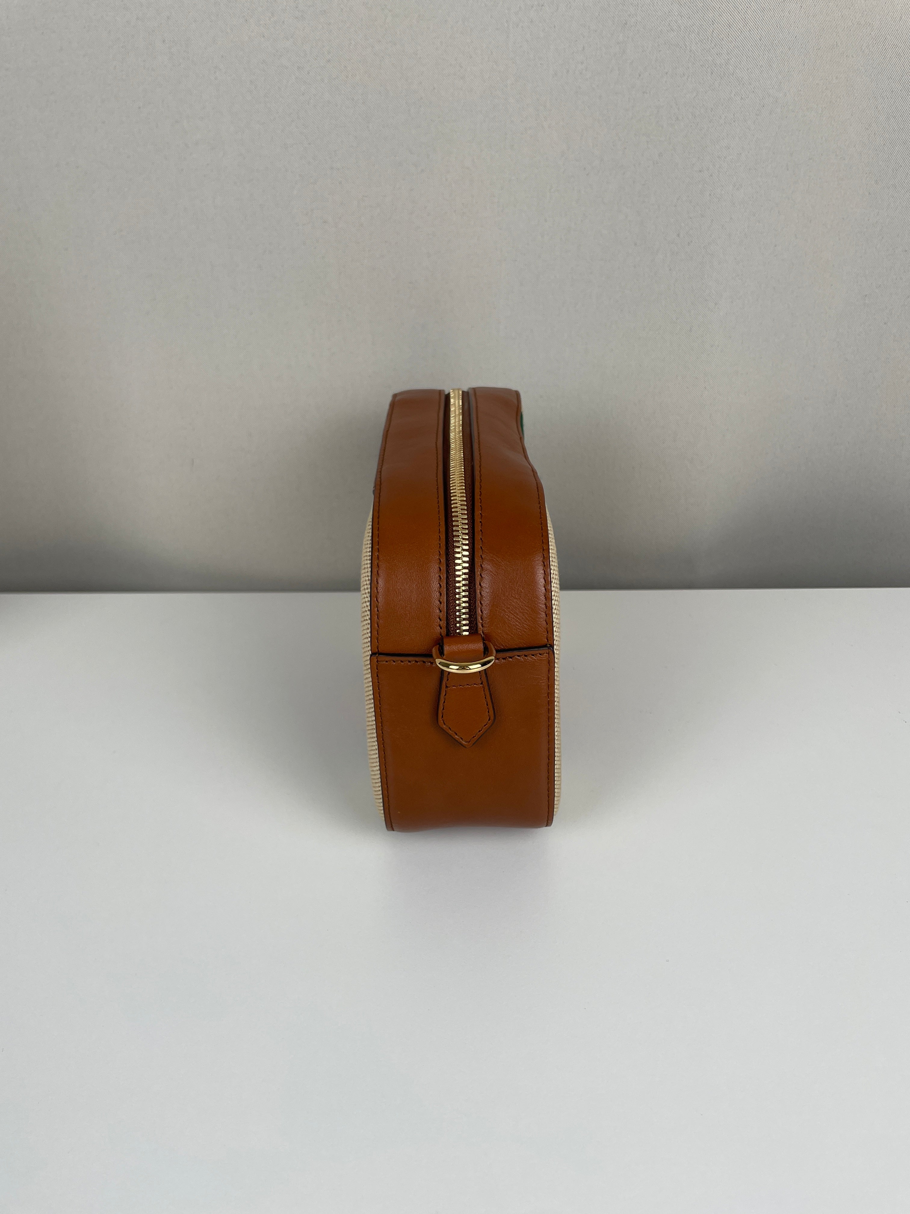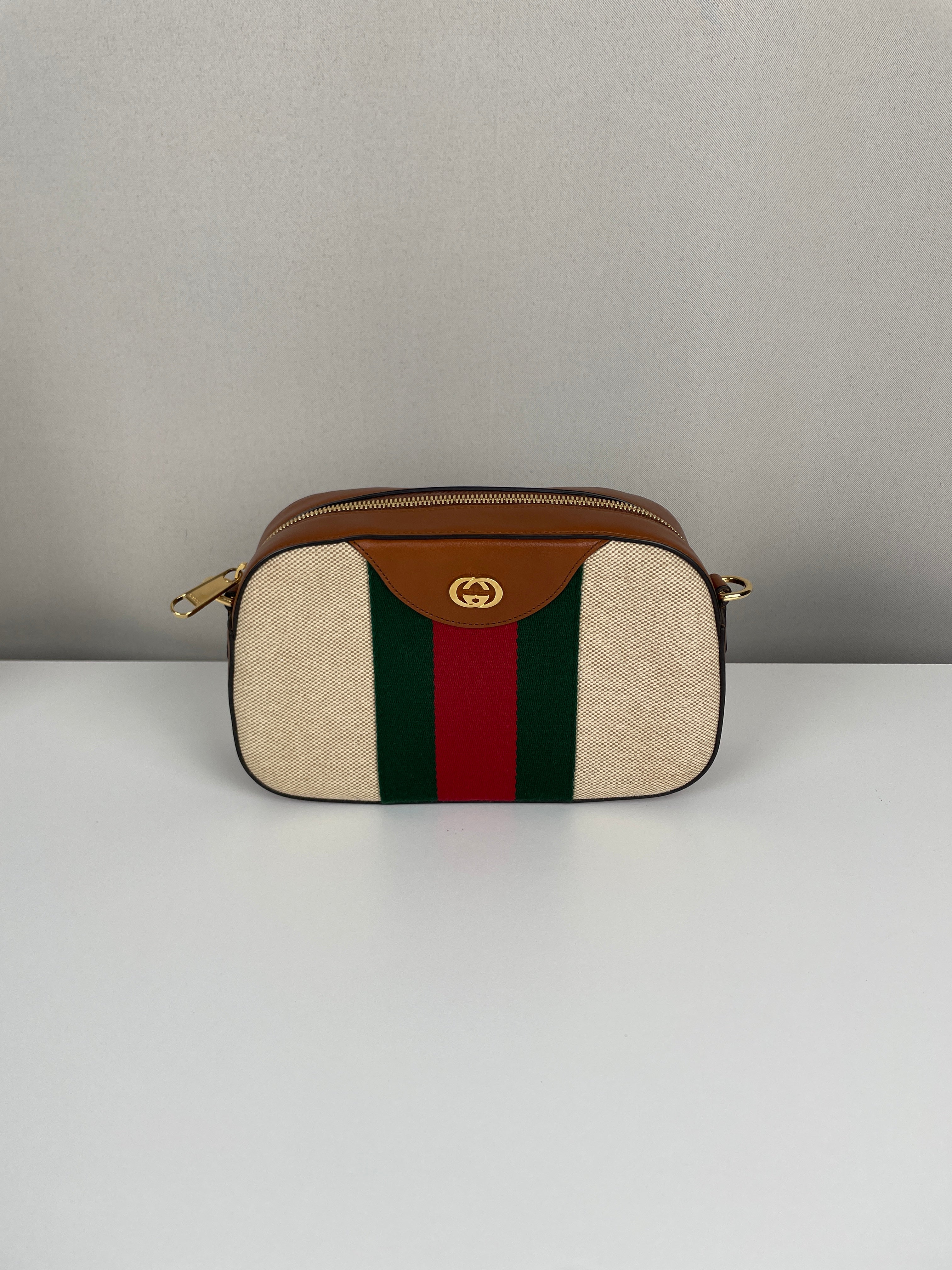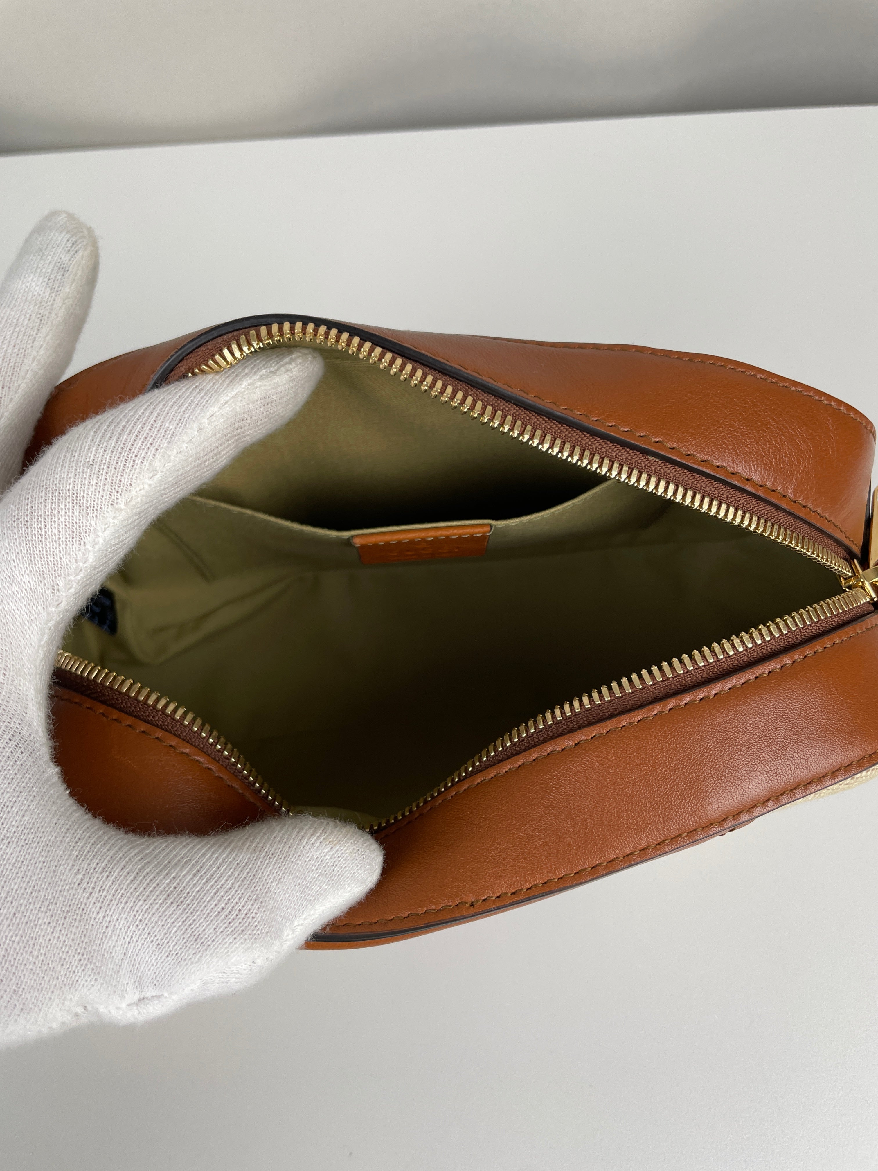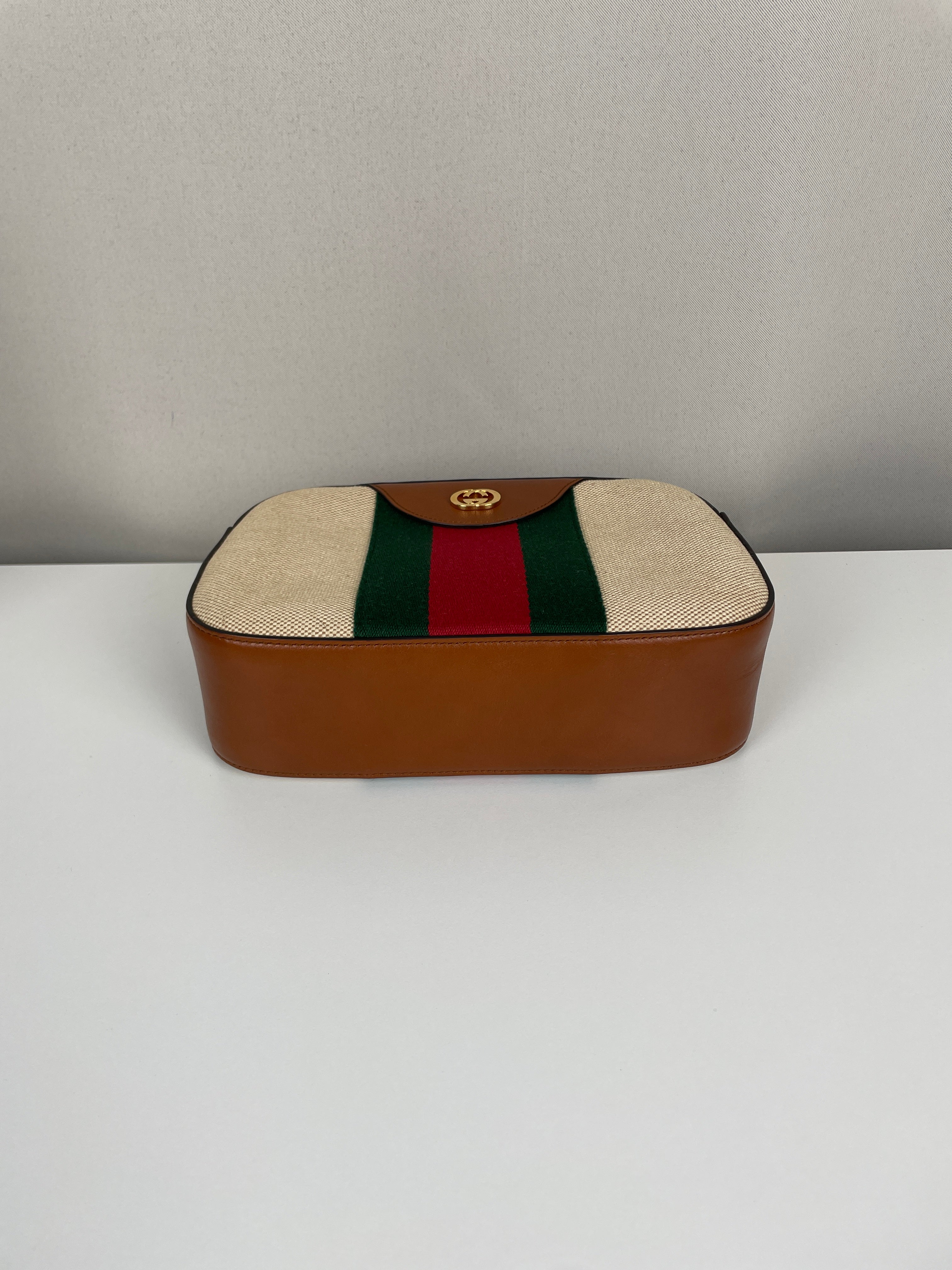 Ce sac Gucci Camera Bag est en très bon état. Le cuir est en très bon état. La toile est en très bon état. La bijouterie est en très bon état. L'intérieur est en très bon état. Comme neuf.