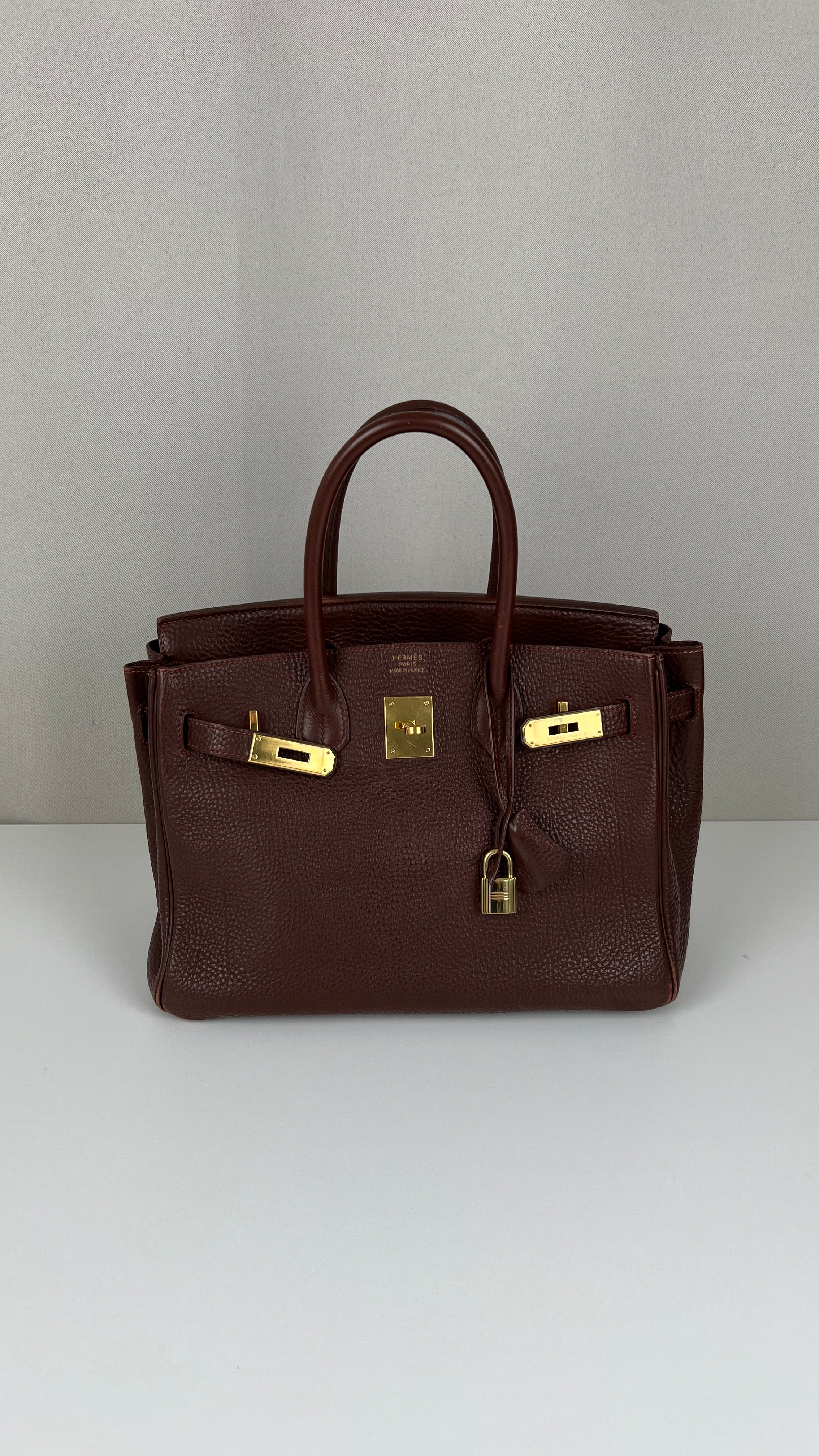 Sac Hermès Birkin 30 en cuir Togo marron/bordeaux bijouterie doré
