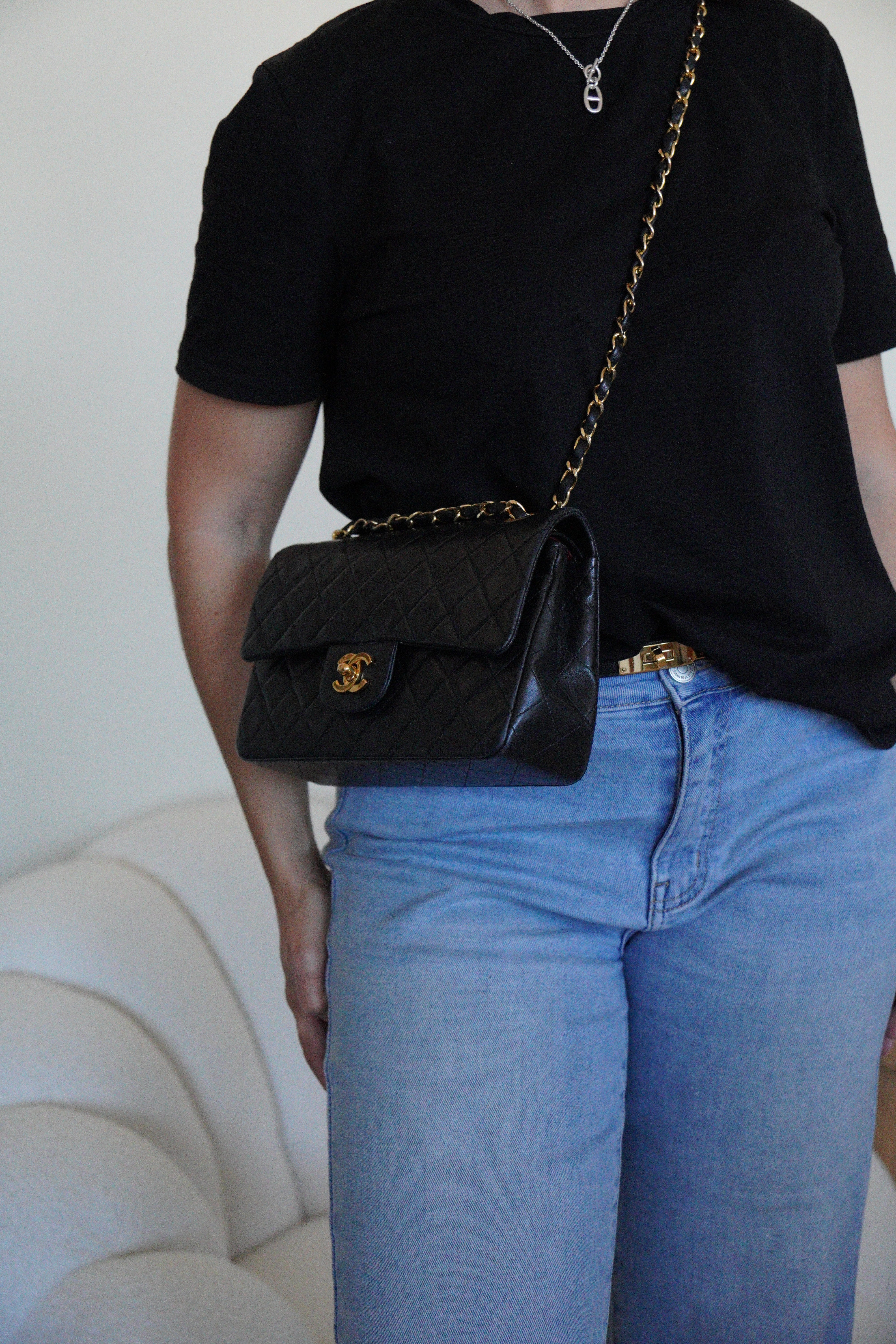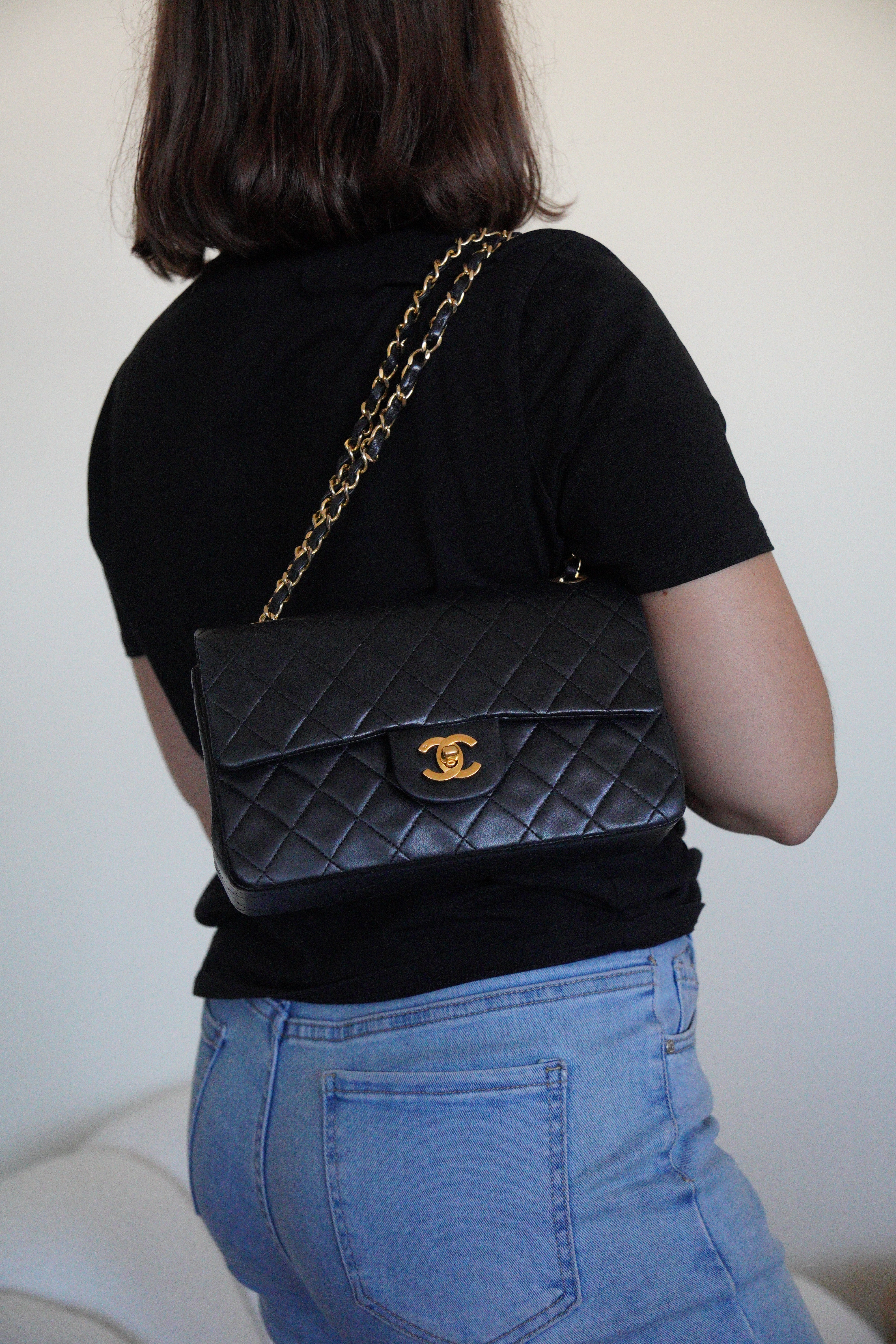 Sac Chanel Timeless petit modèle 23 cuir noir bijouterie dorée