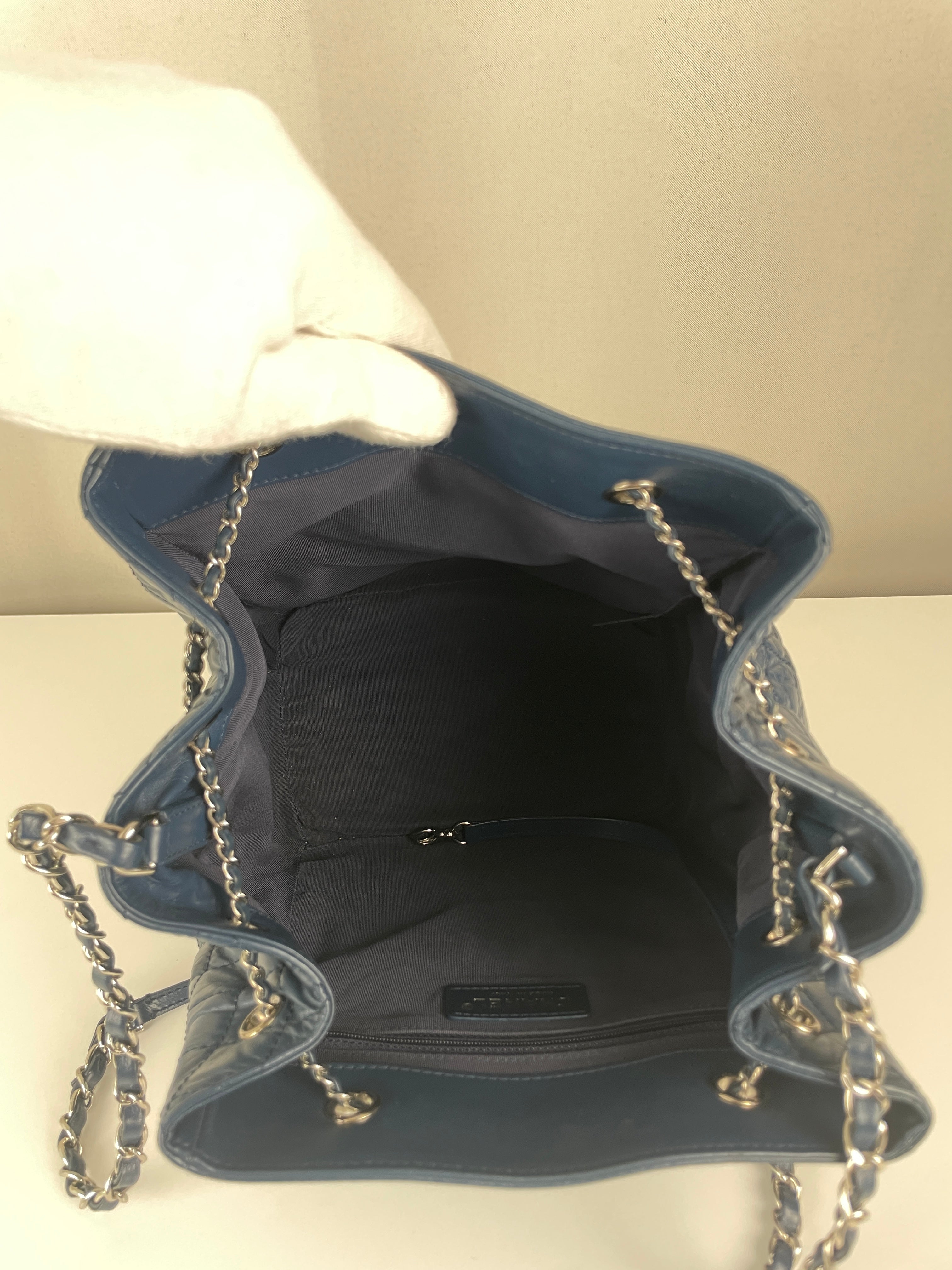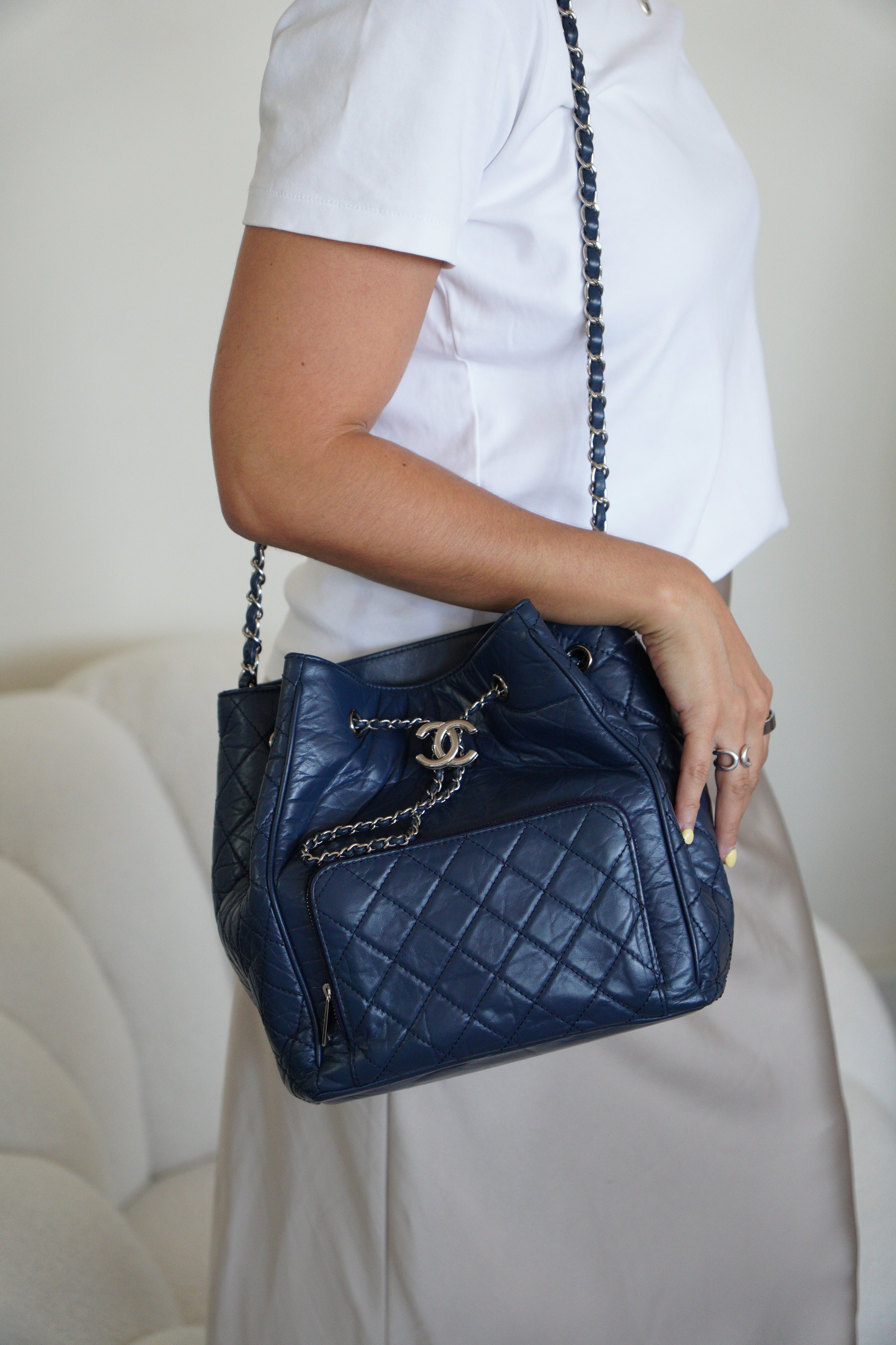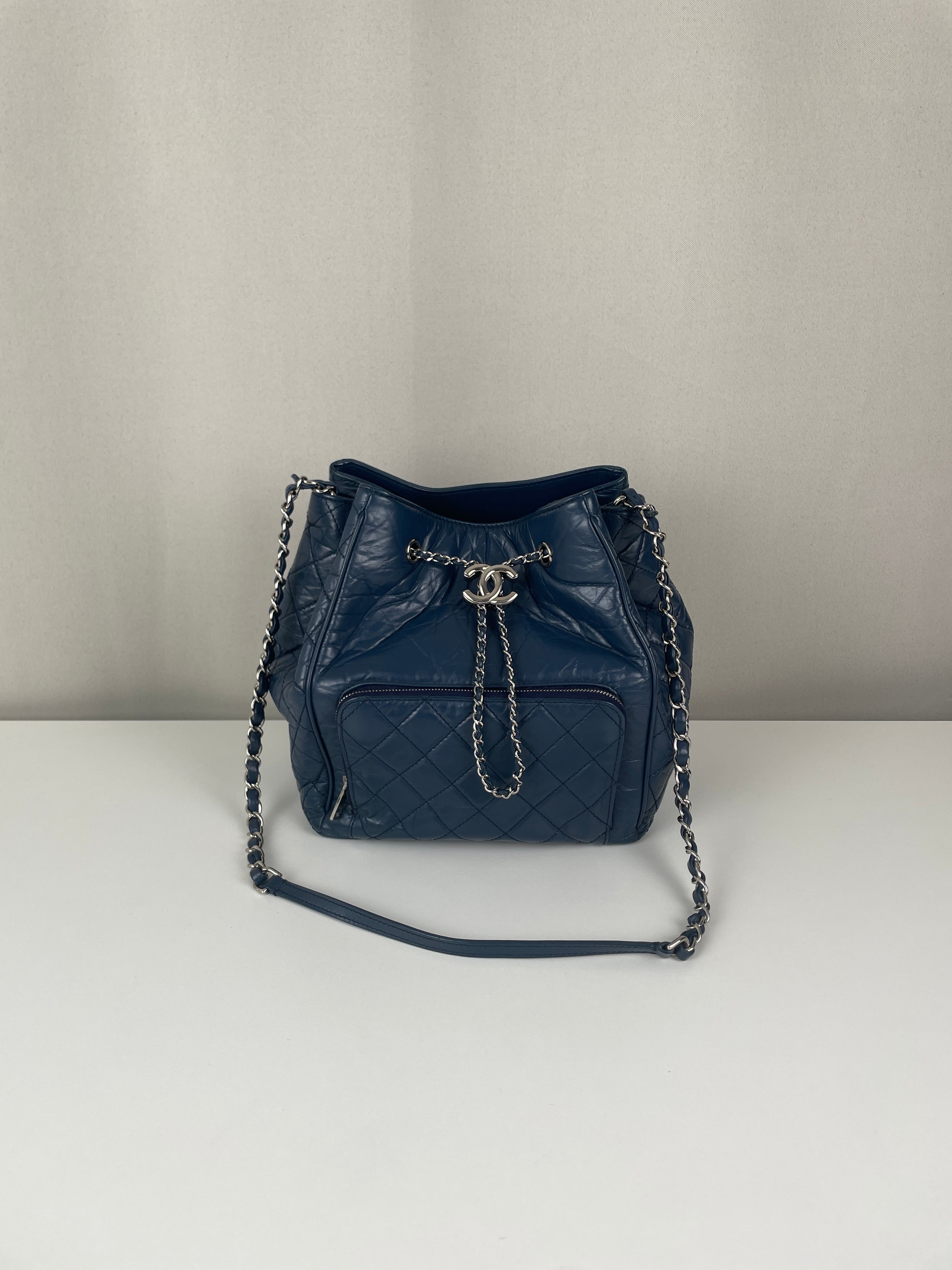 C'est une pièce magnifique pour celles qui aiment Chanel mais veulent quelque chose d'un peu différent du flap classique. La couleur bleue la rend vraiment spéciale et le style bucket est super polyvalent.