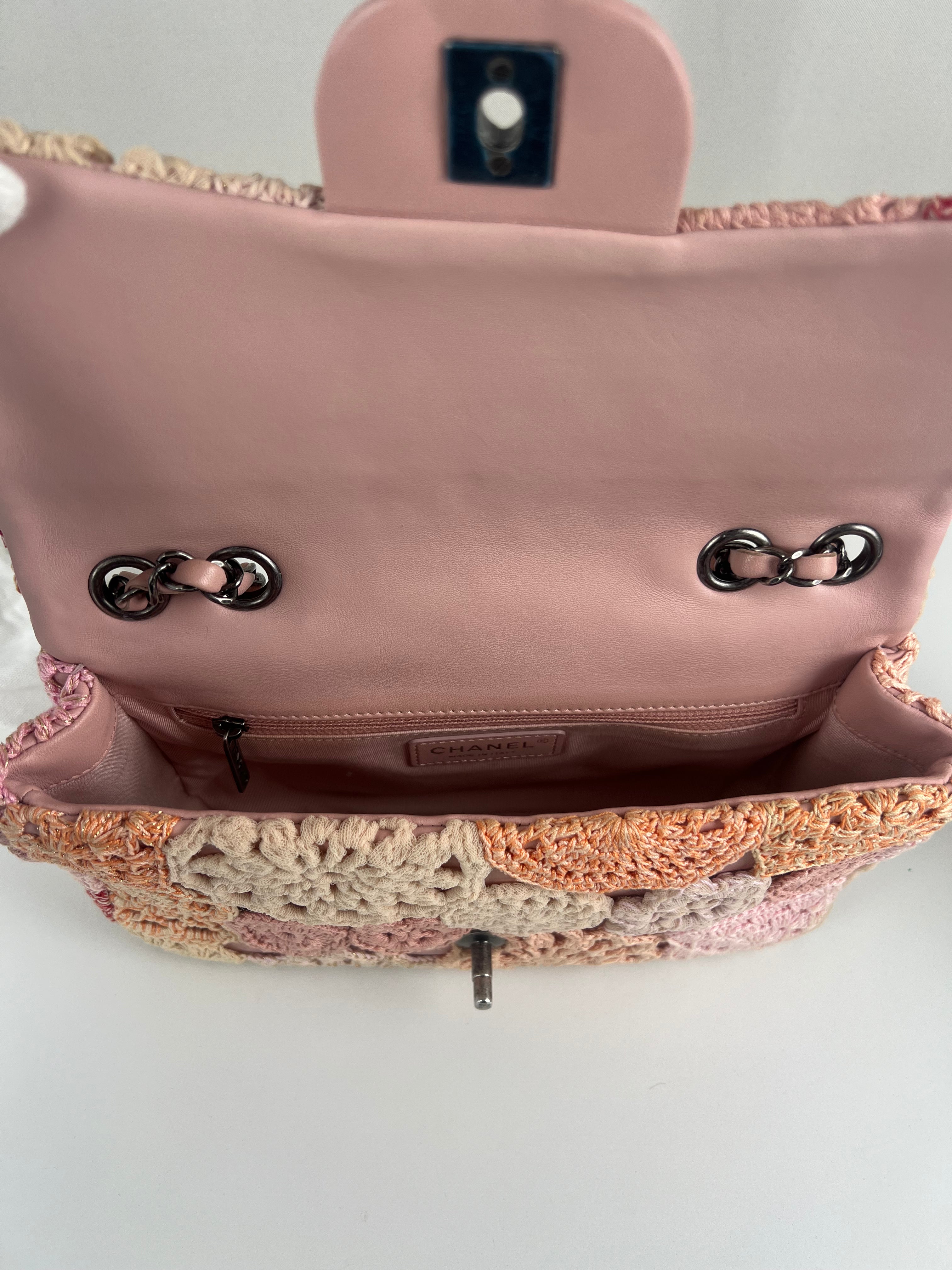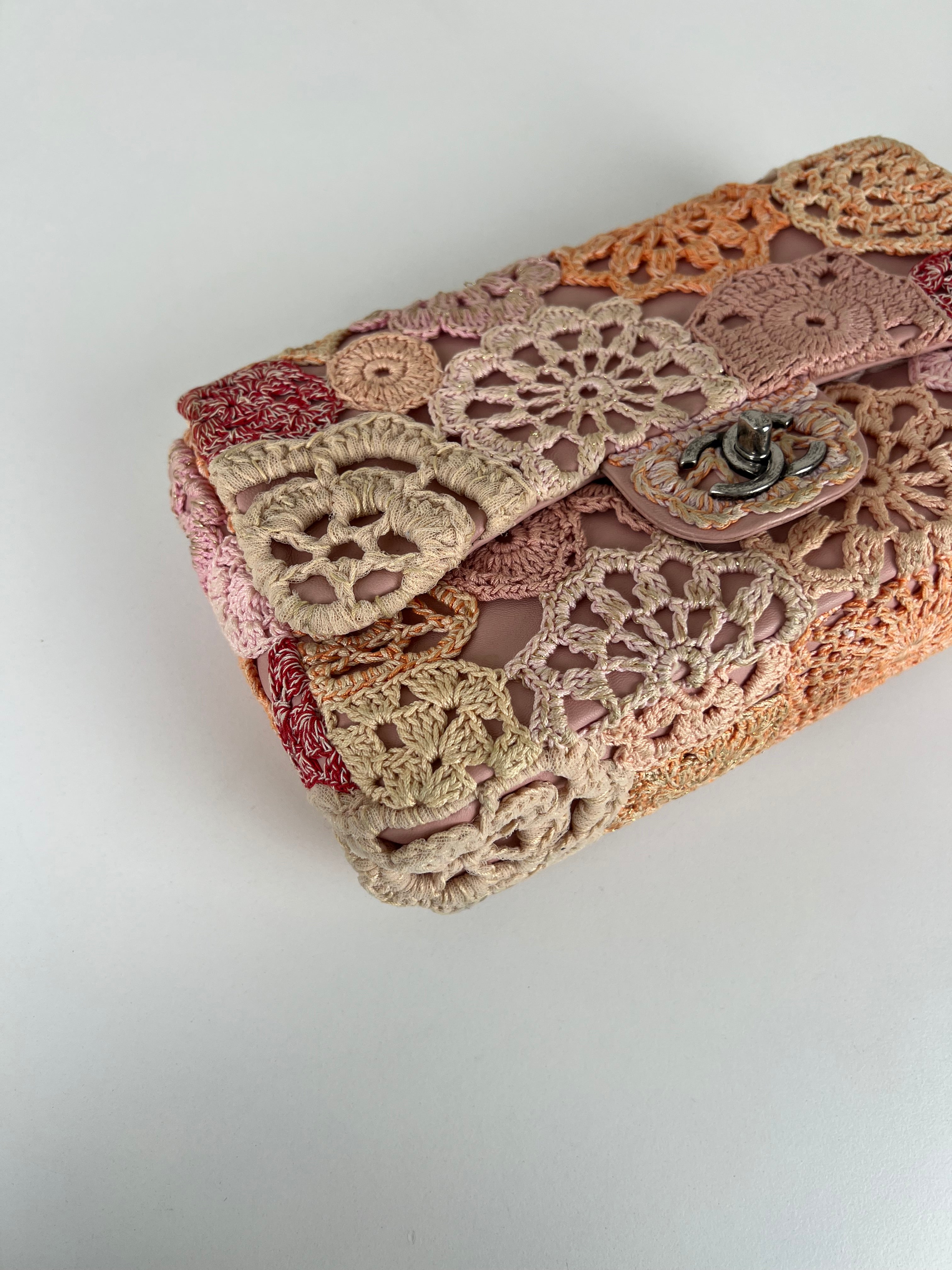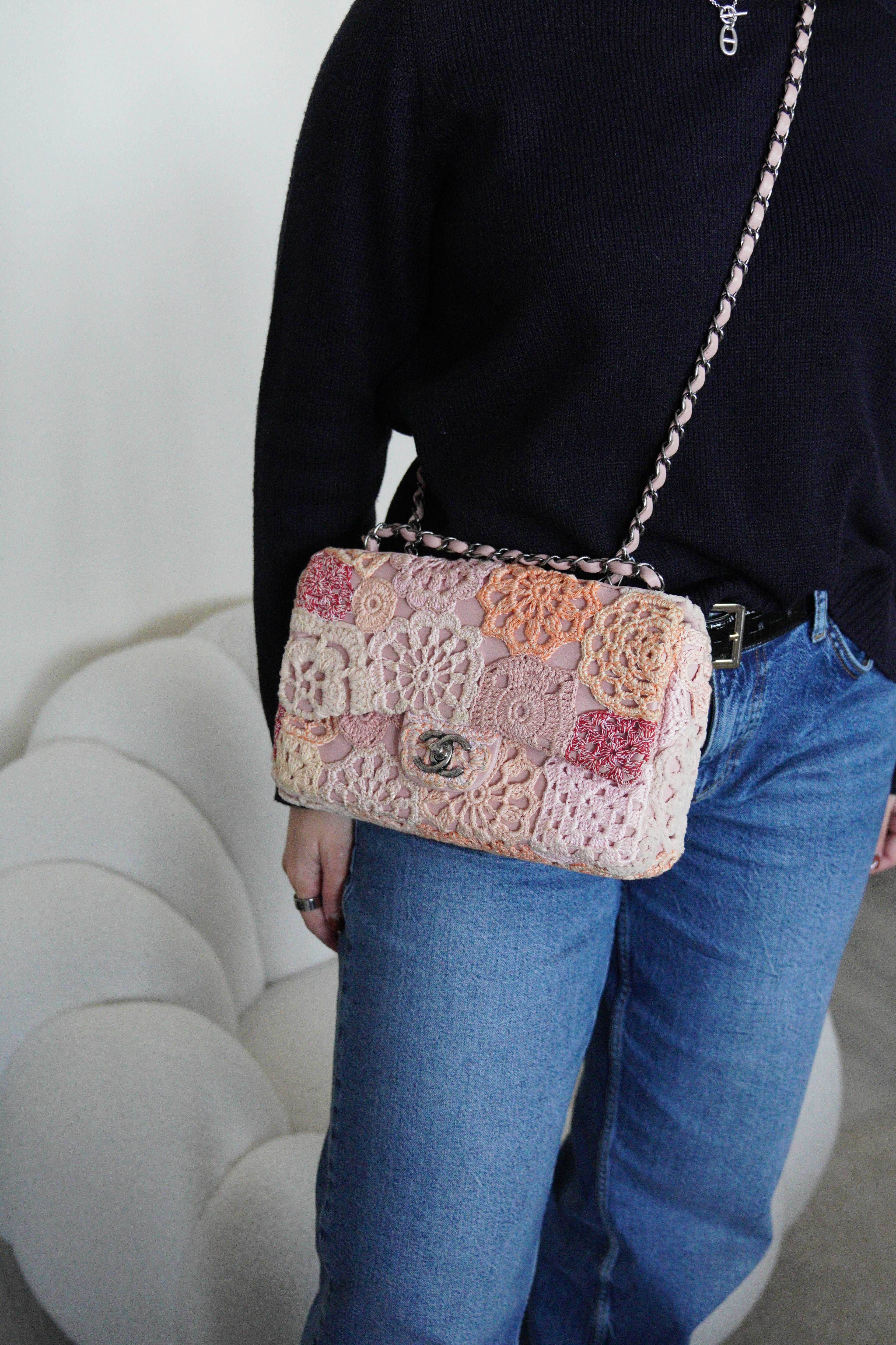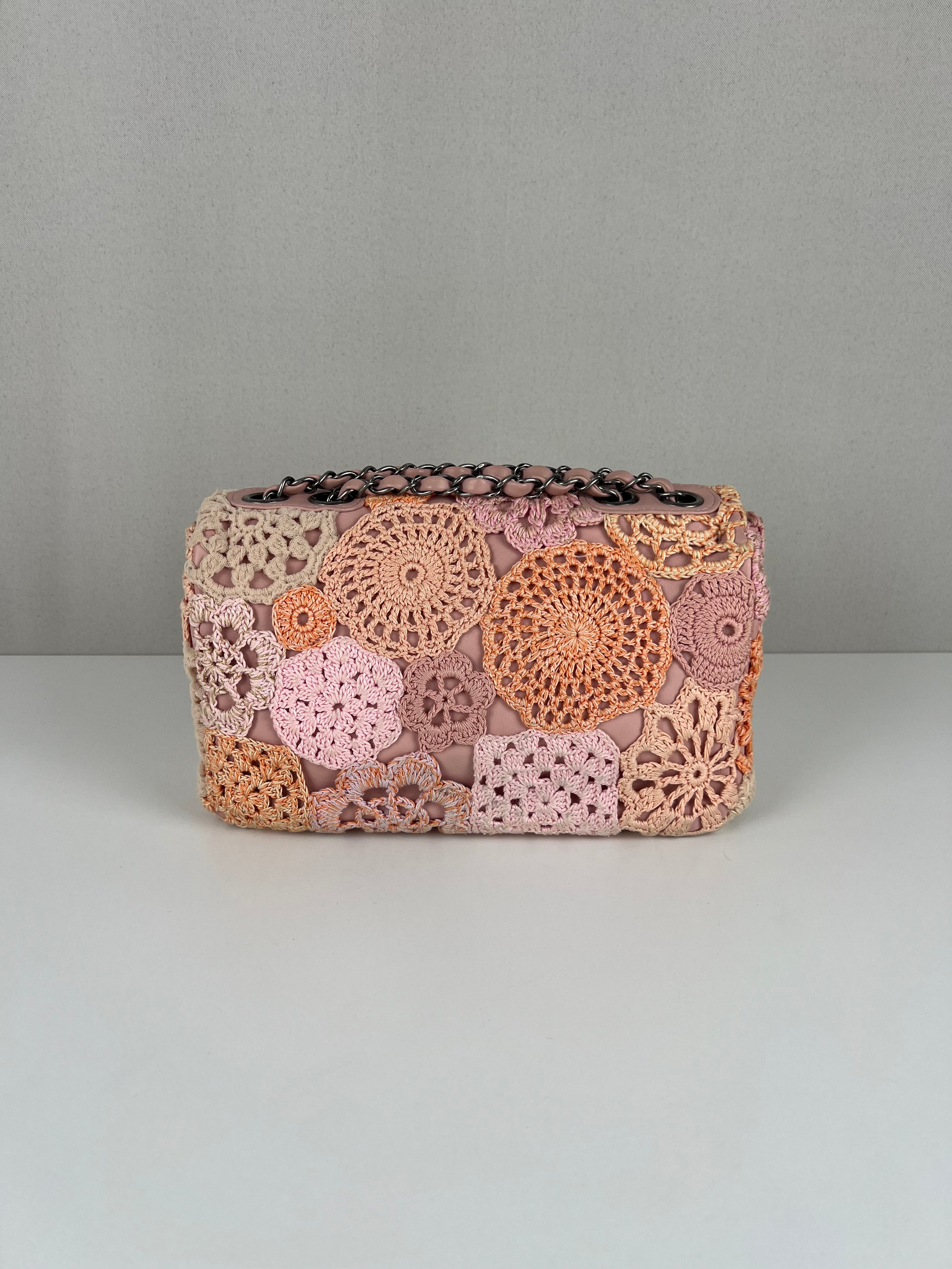 Chanel Timeless 25 édition limitée fleur en cuir et tissu crochet rose