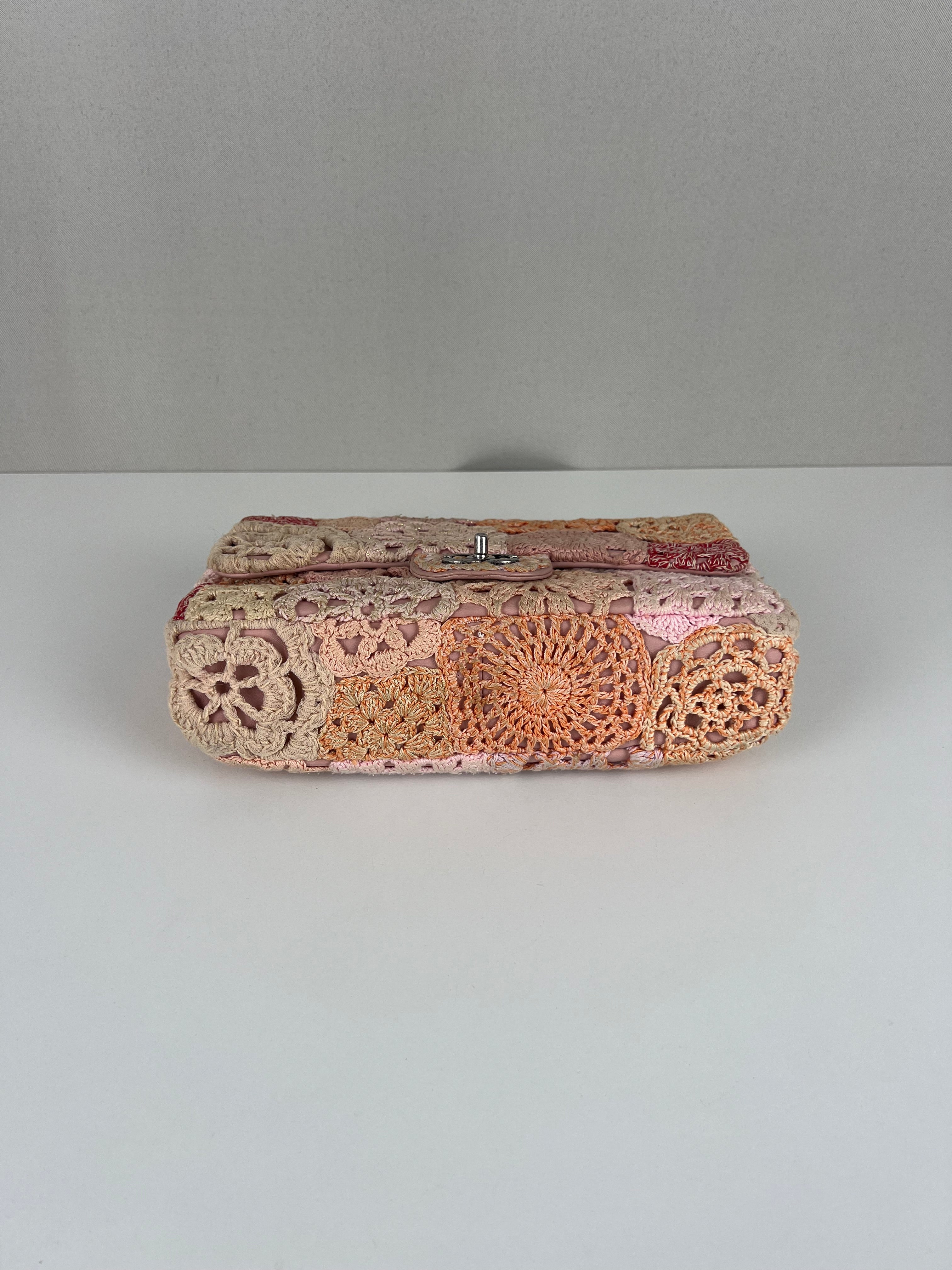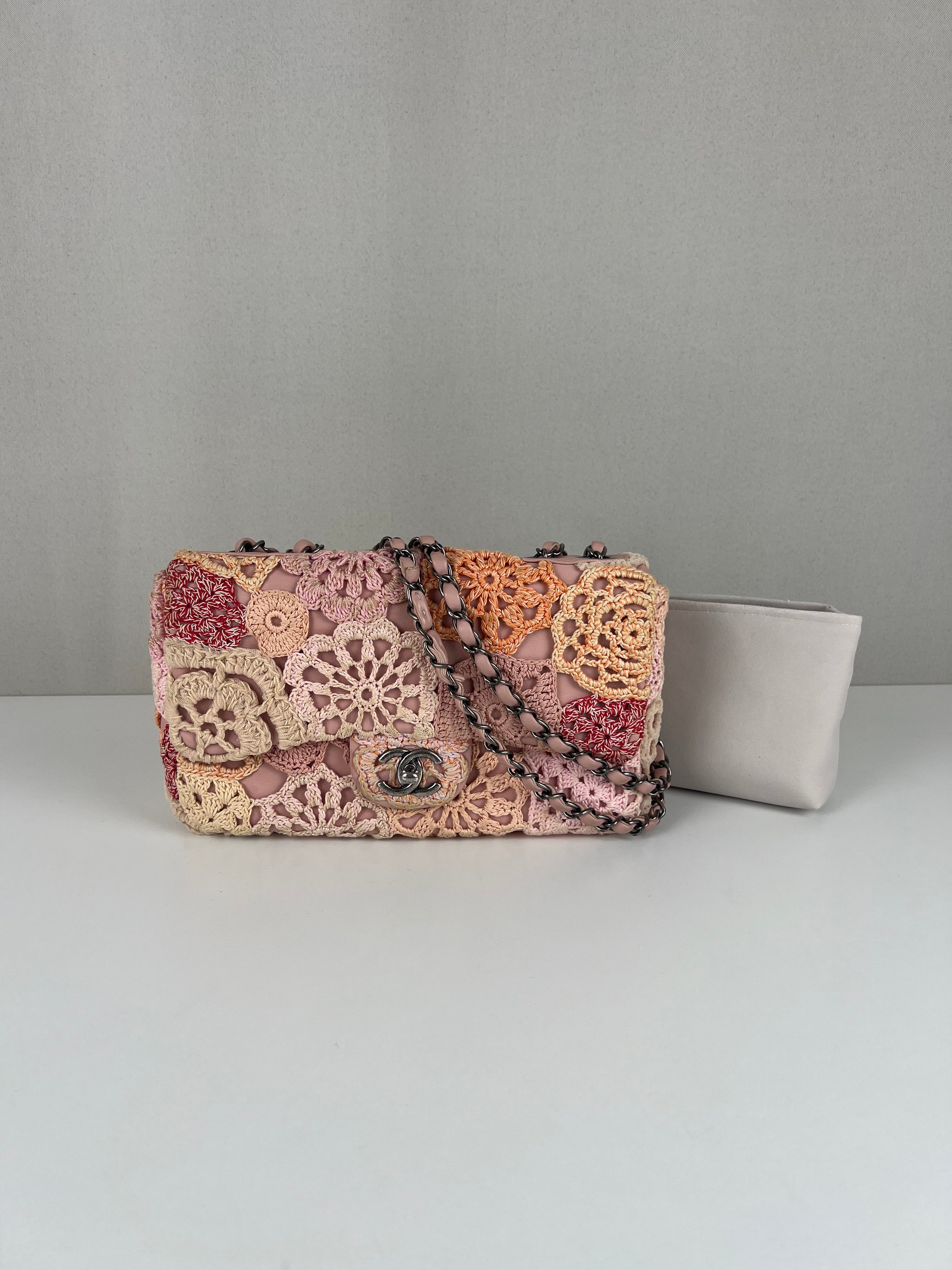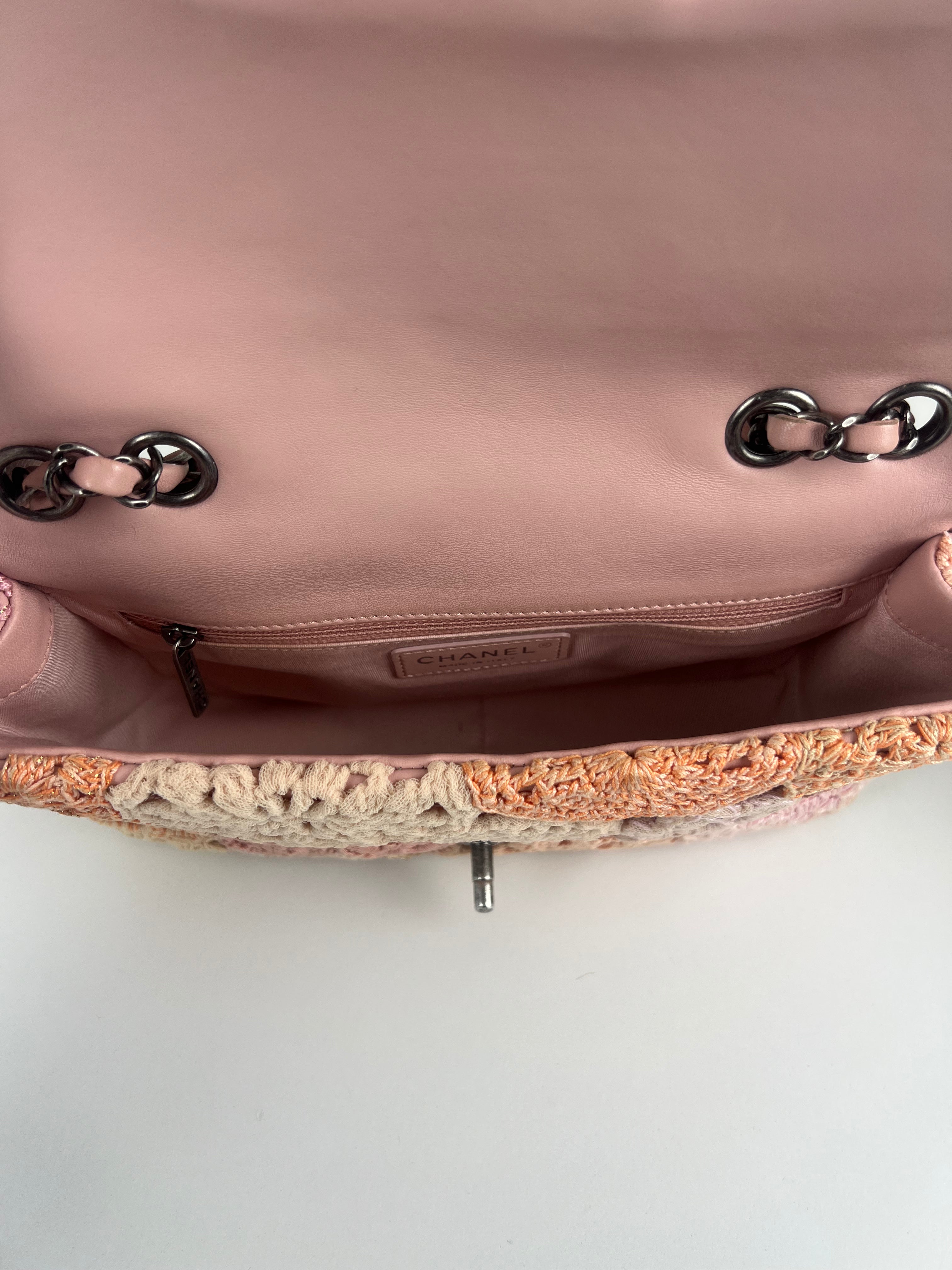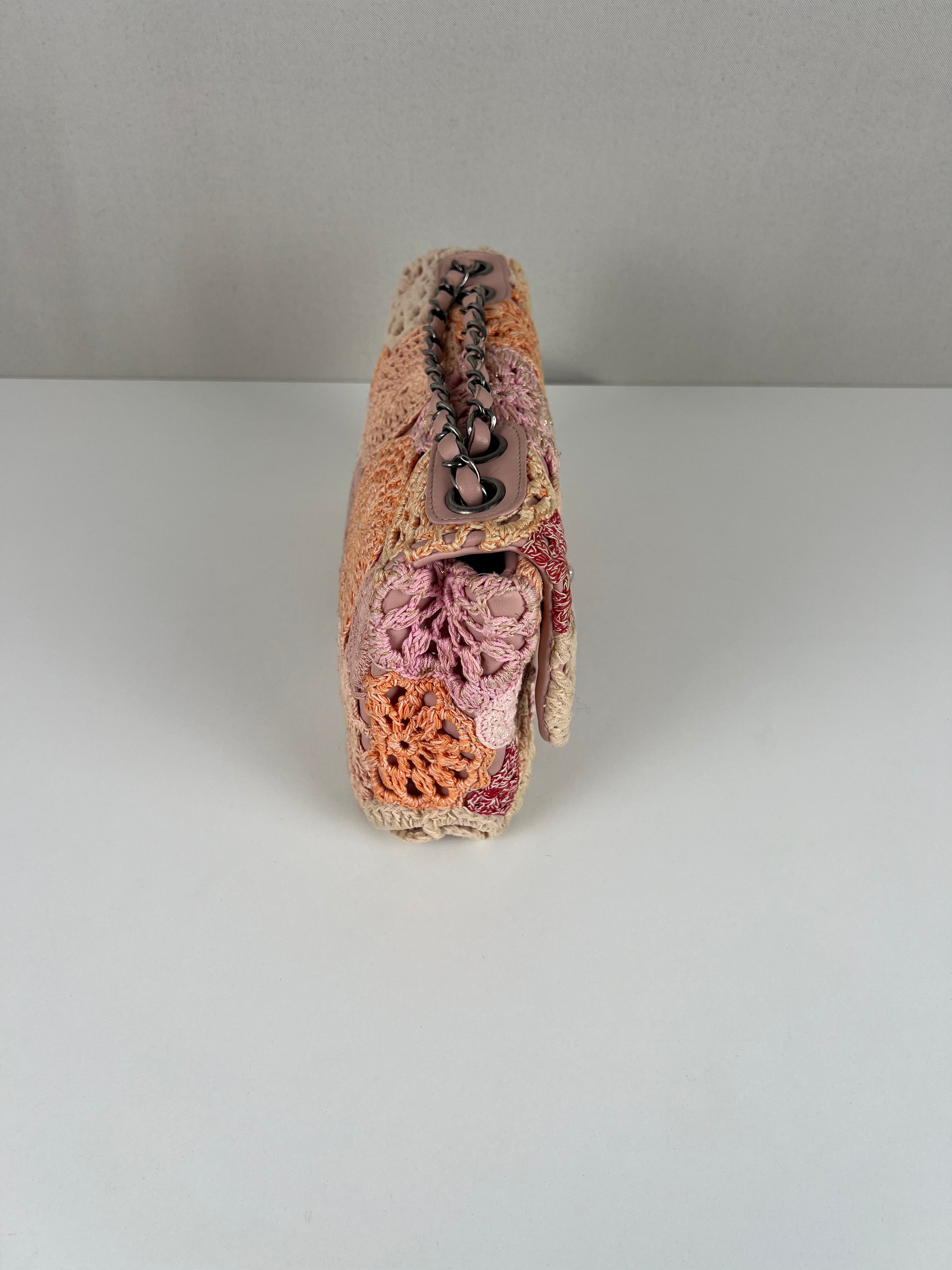 Chanel Timeless 25 édition limitée fleur en cuir et tissu crochet rose