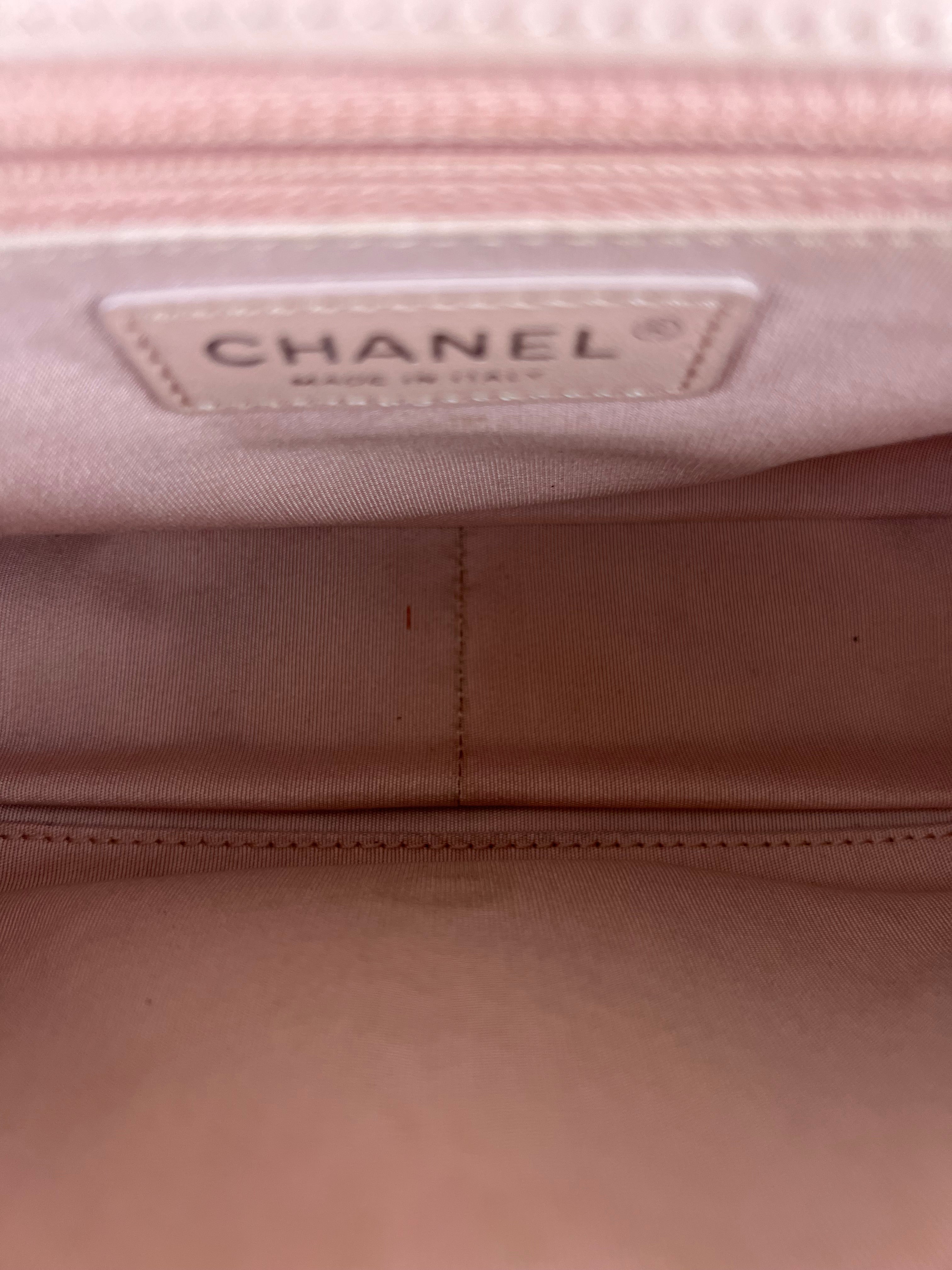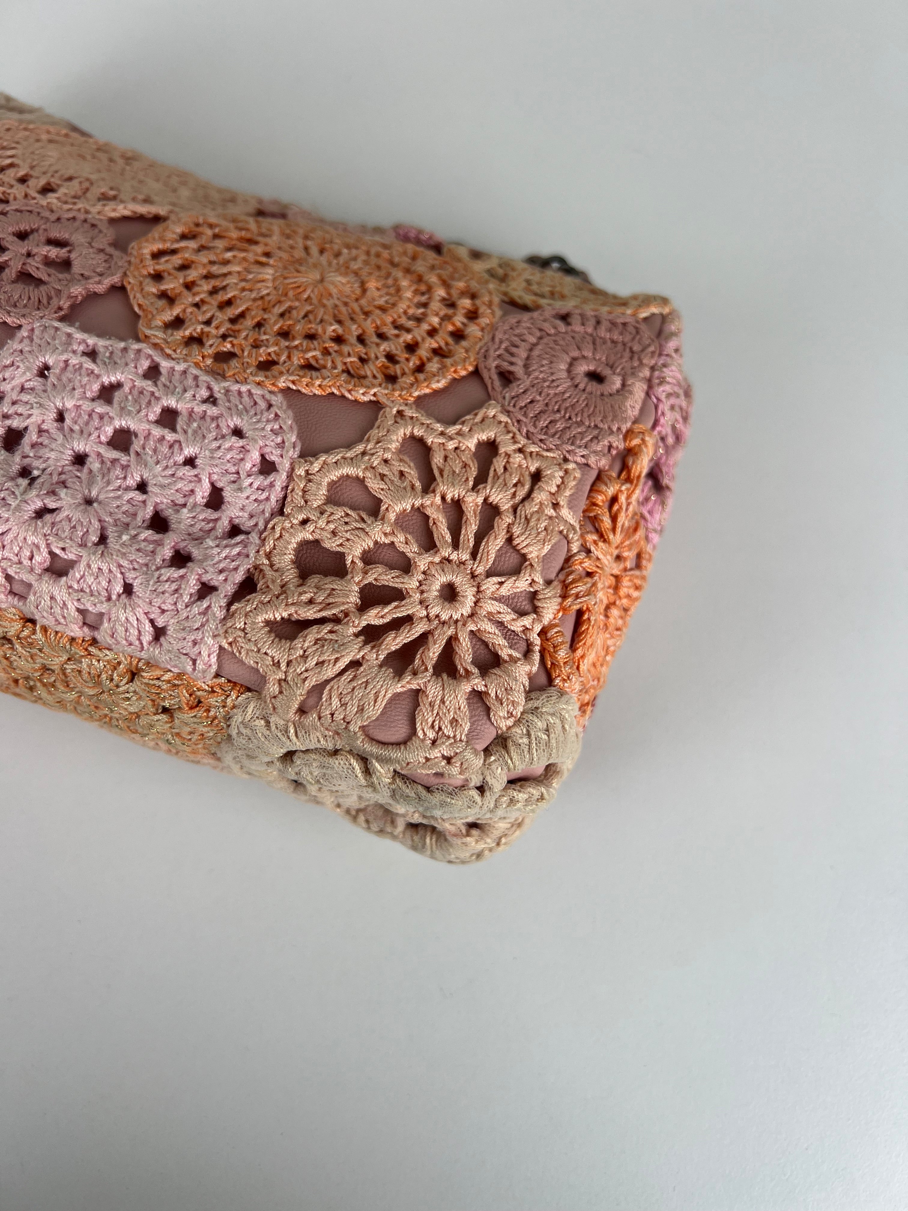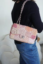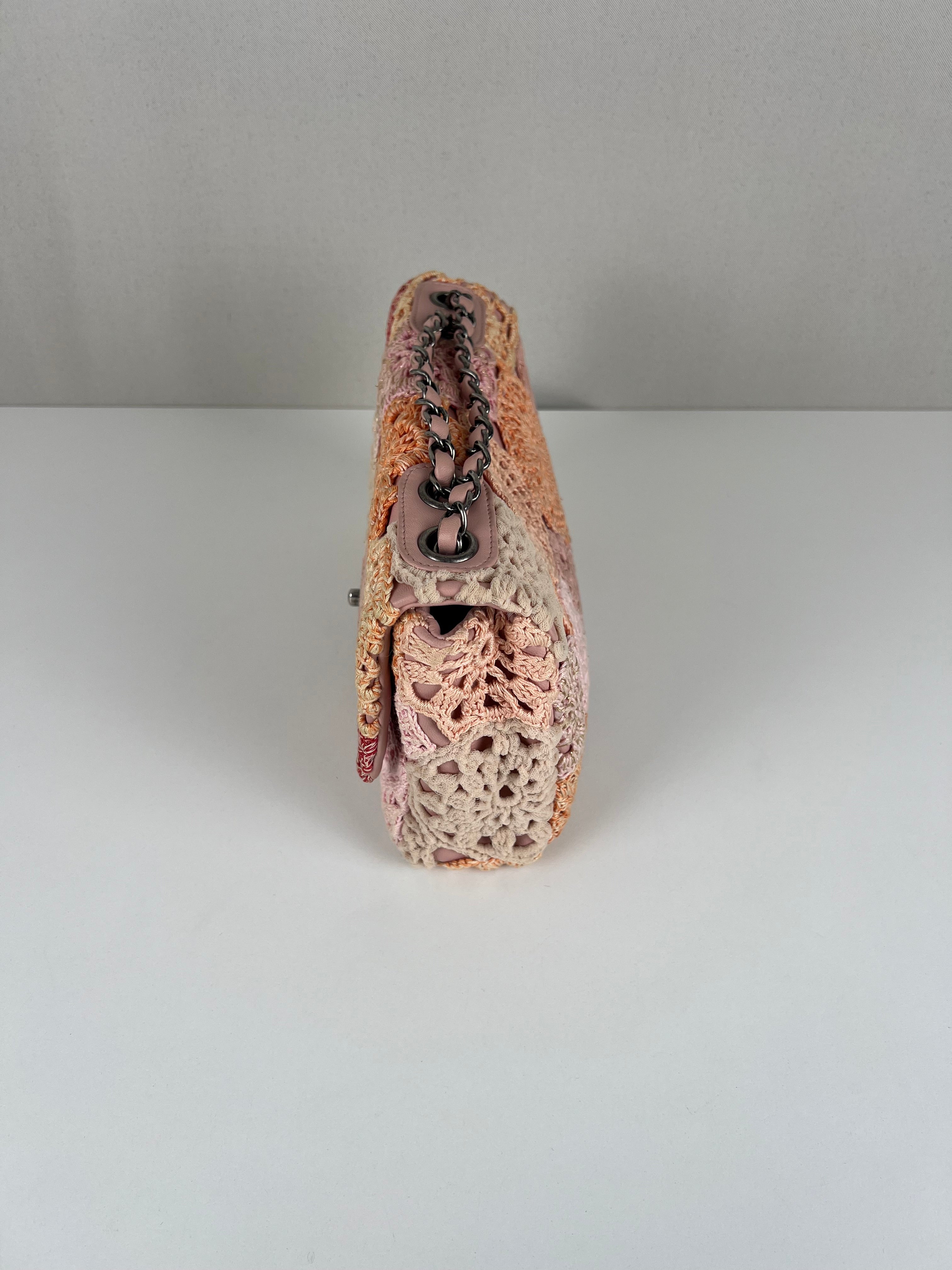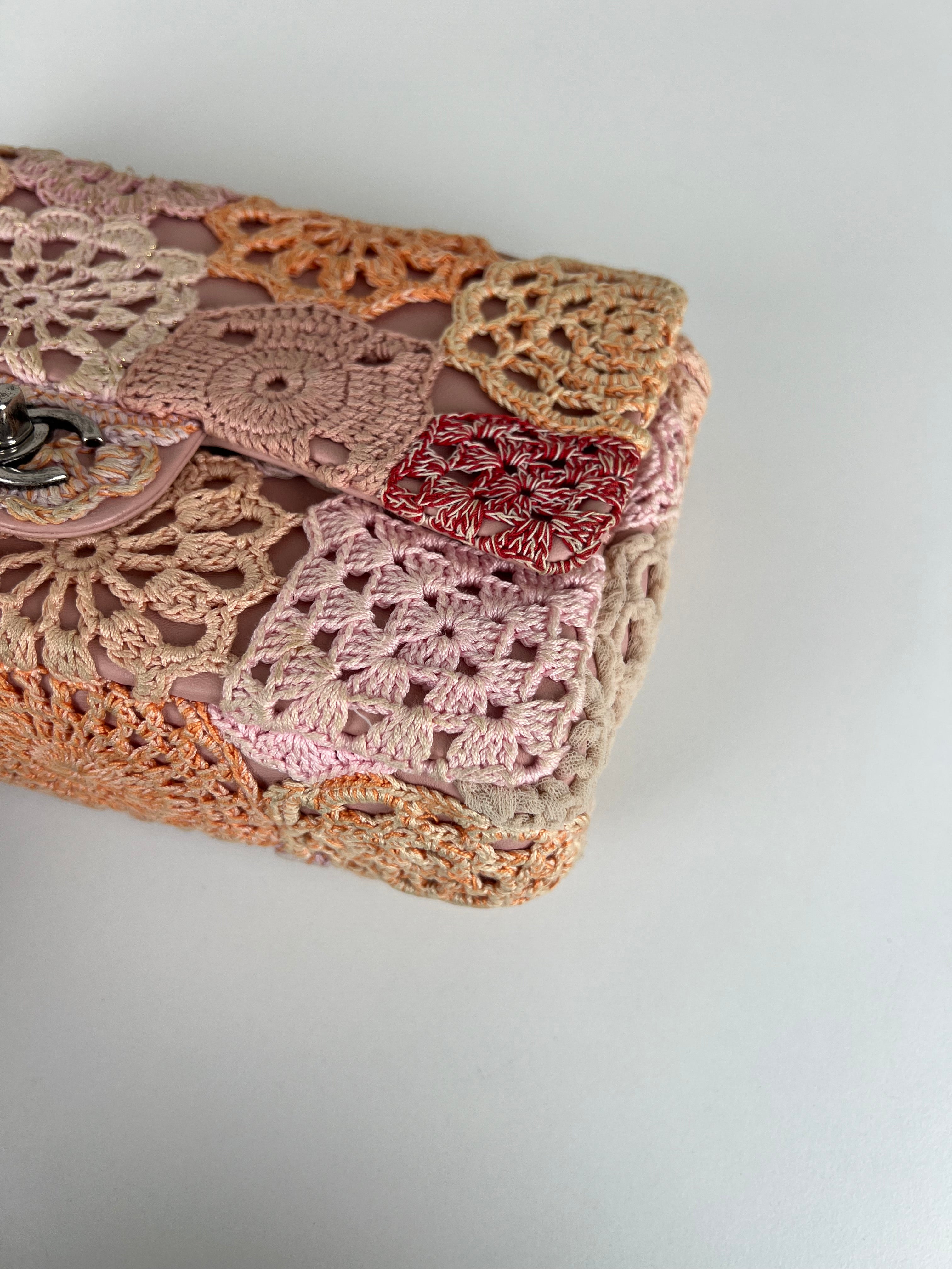 Chanel Timeless 25 édition limitée fleur en cuir et tissu crochet rose