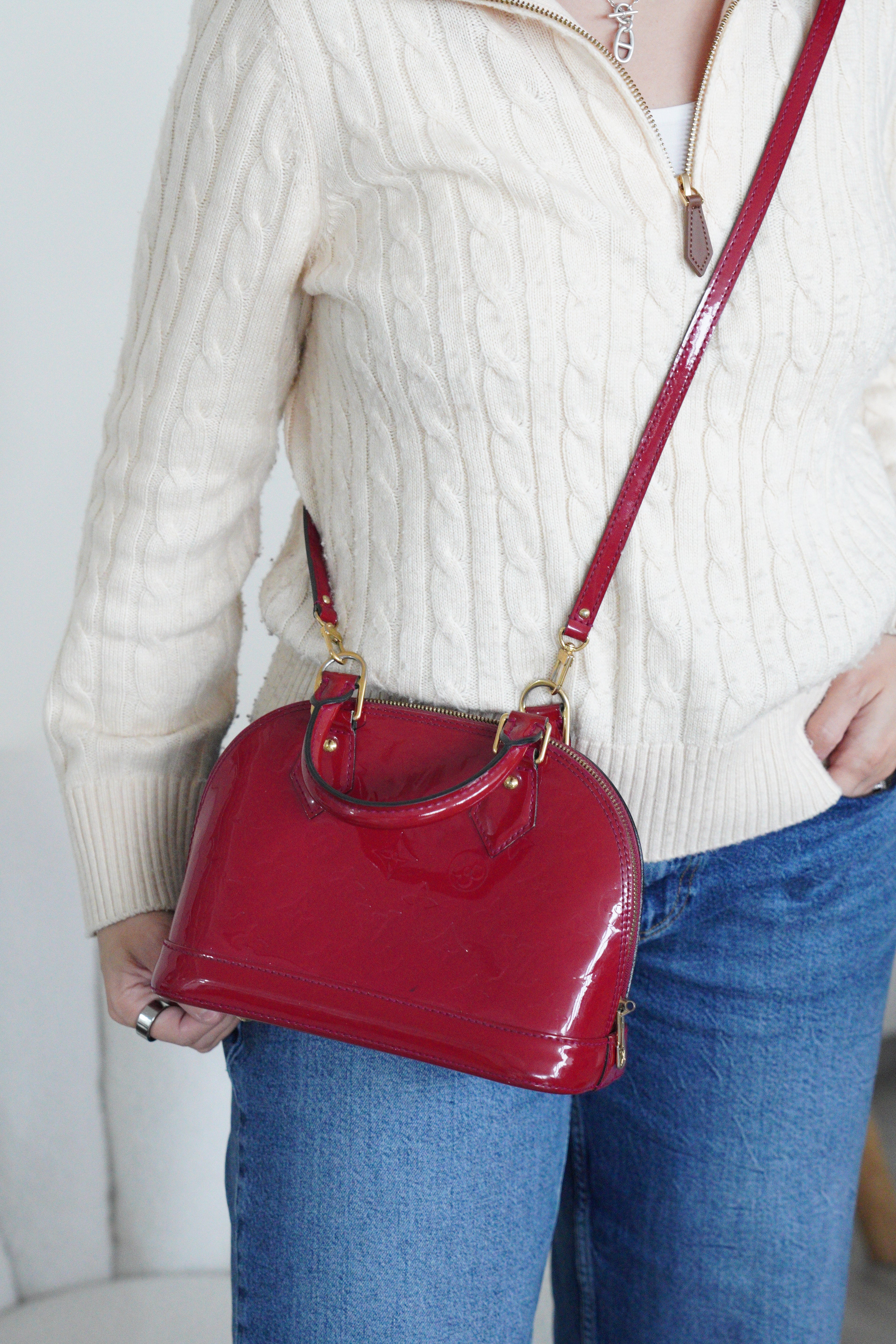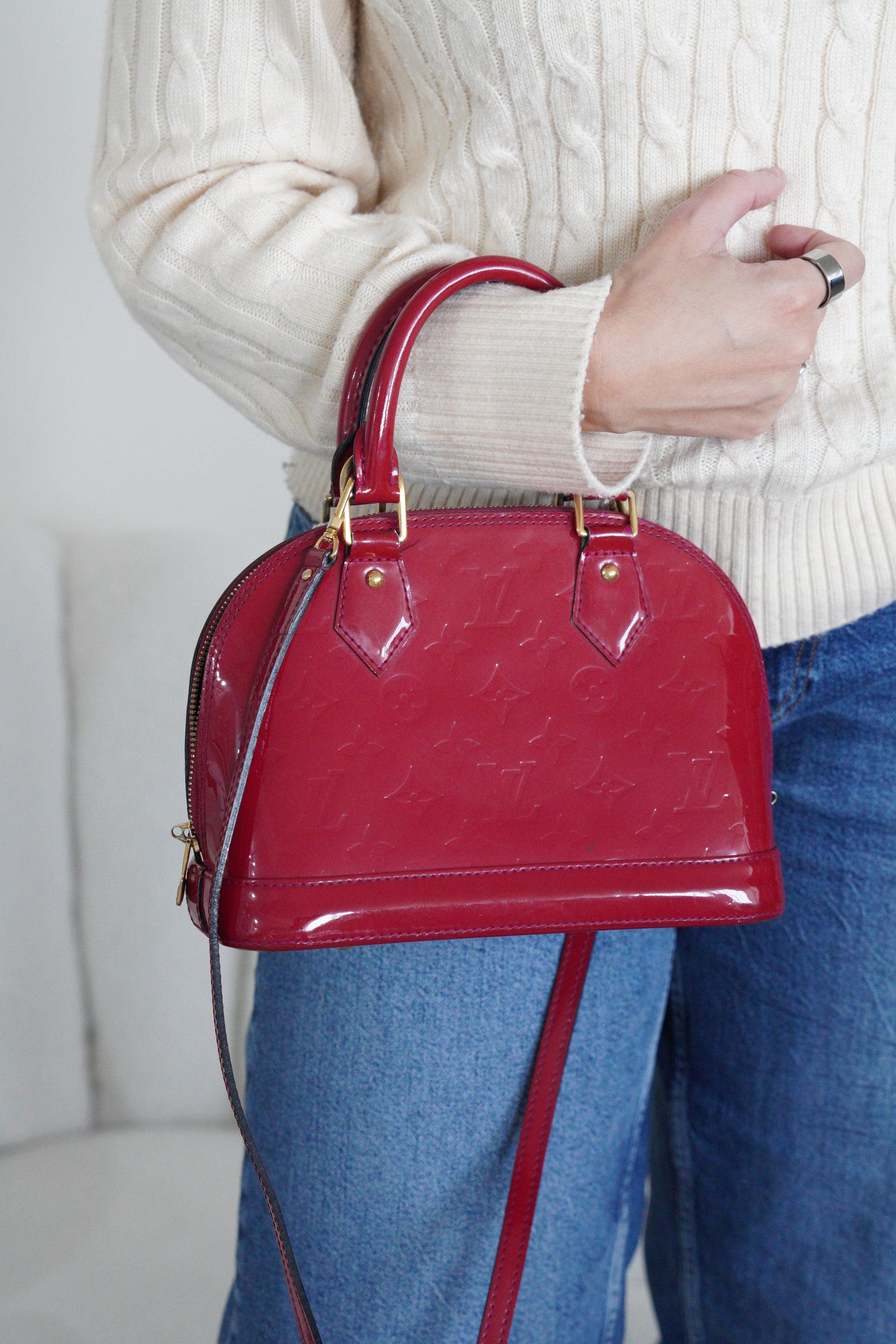Louis Vuitton Alma BB en cuir verni rouge