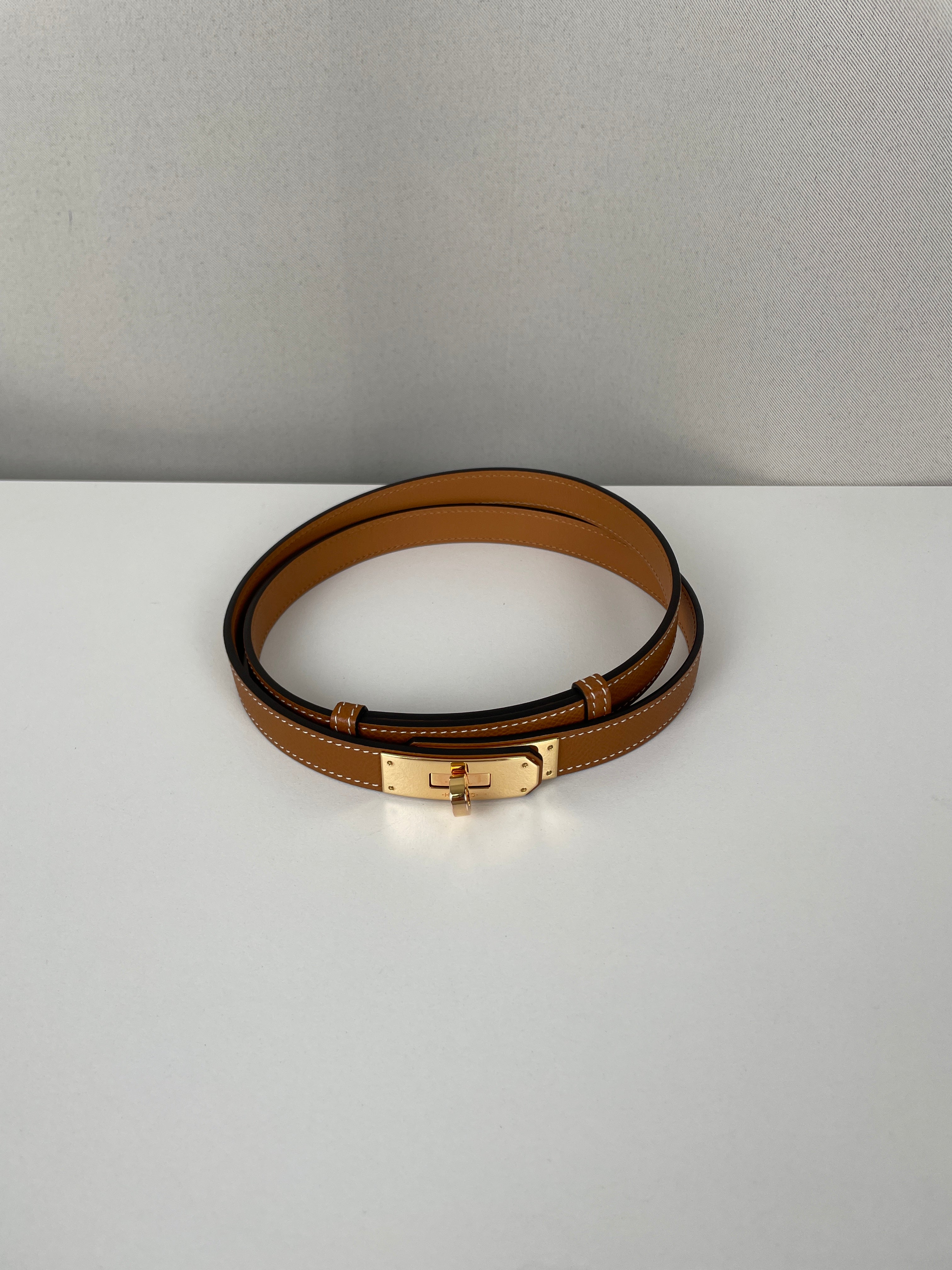 Cette ceinture Hermès Kelly est en très bon état. Le cuir est impeccable. De taille unique, elle est ajustable. La boucle présente de légères rayures dues à une utilisation minimale, mais elles sont quasiment imperceptibles. Elle est vendue avec son dustbag, deux petits dustbags et sa boîte.