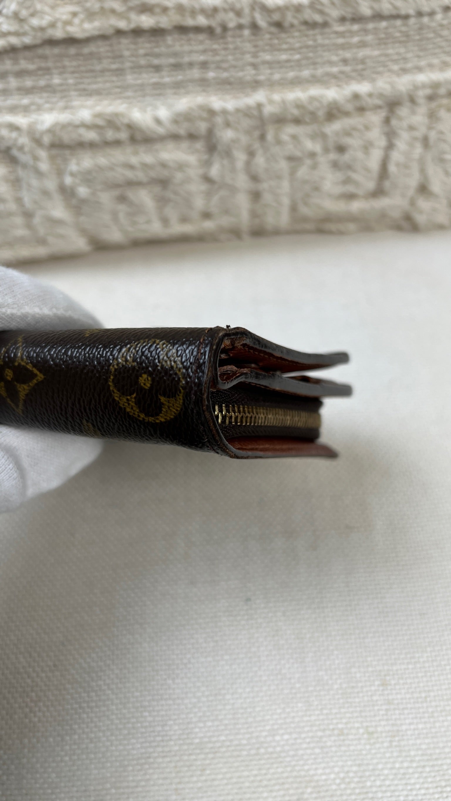 Ce portefeuille bi-fold Louis Vuitton est en bon état. La toile est en très bon état. Les coins sont en bon état, un peu frottés. La bijouterie est en bon état, un peu utilisé. L'intérieur est en bon état. Il y a une trace d'usure/détachement sur la partie des billets (voir photo)