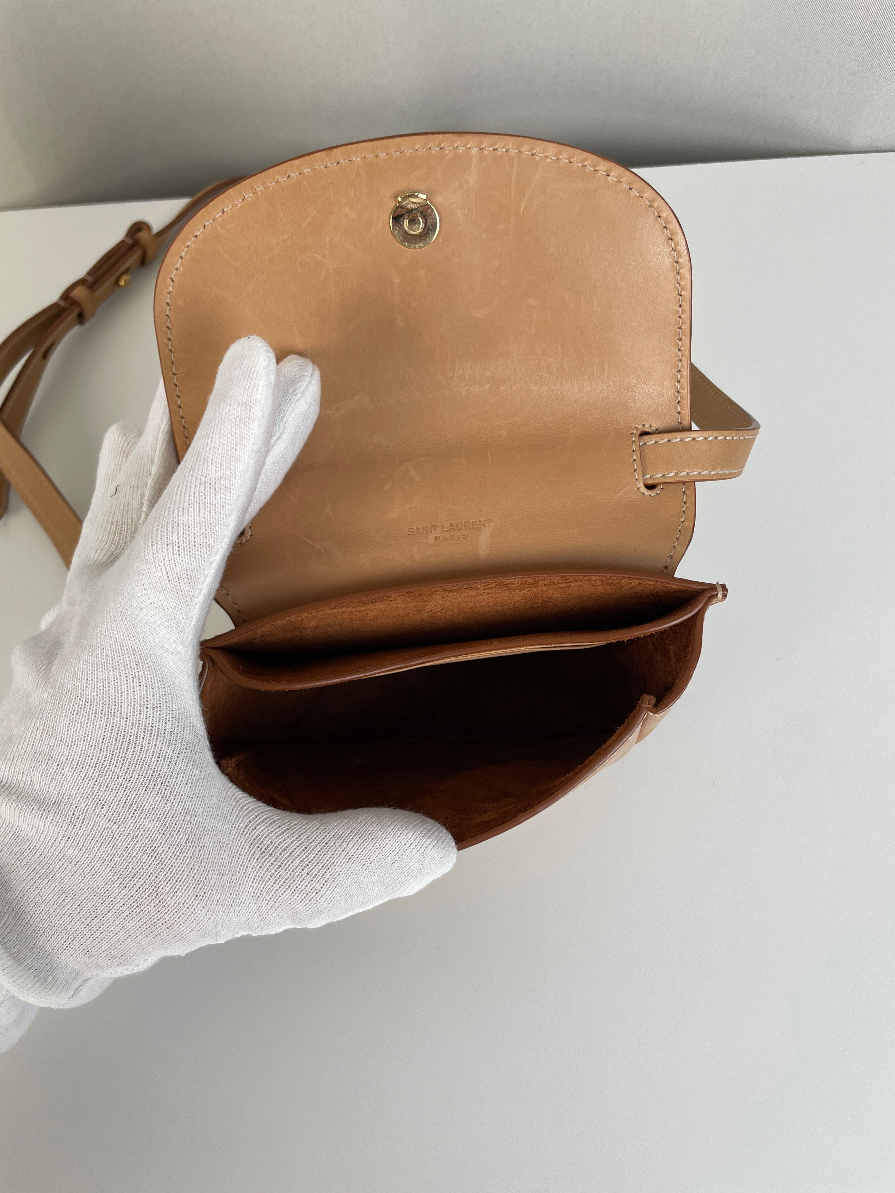 Ce sac Mini Kaia Saint Laurent est en bon état. Le cuir présente quelques traces, naturel sur ce type de cuir. Les coins sont en bon état, la bandoulière est en bon état. L'intérieur est en bon état. On voit que le sac a été utilisé.