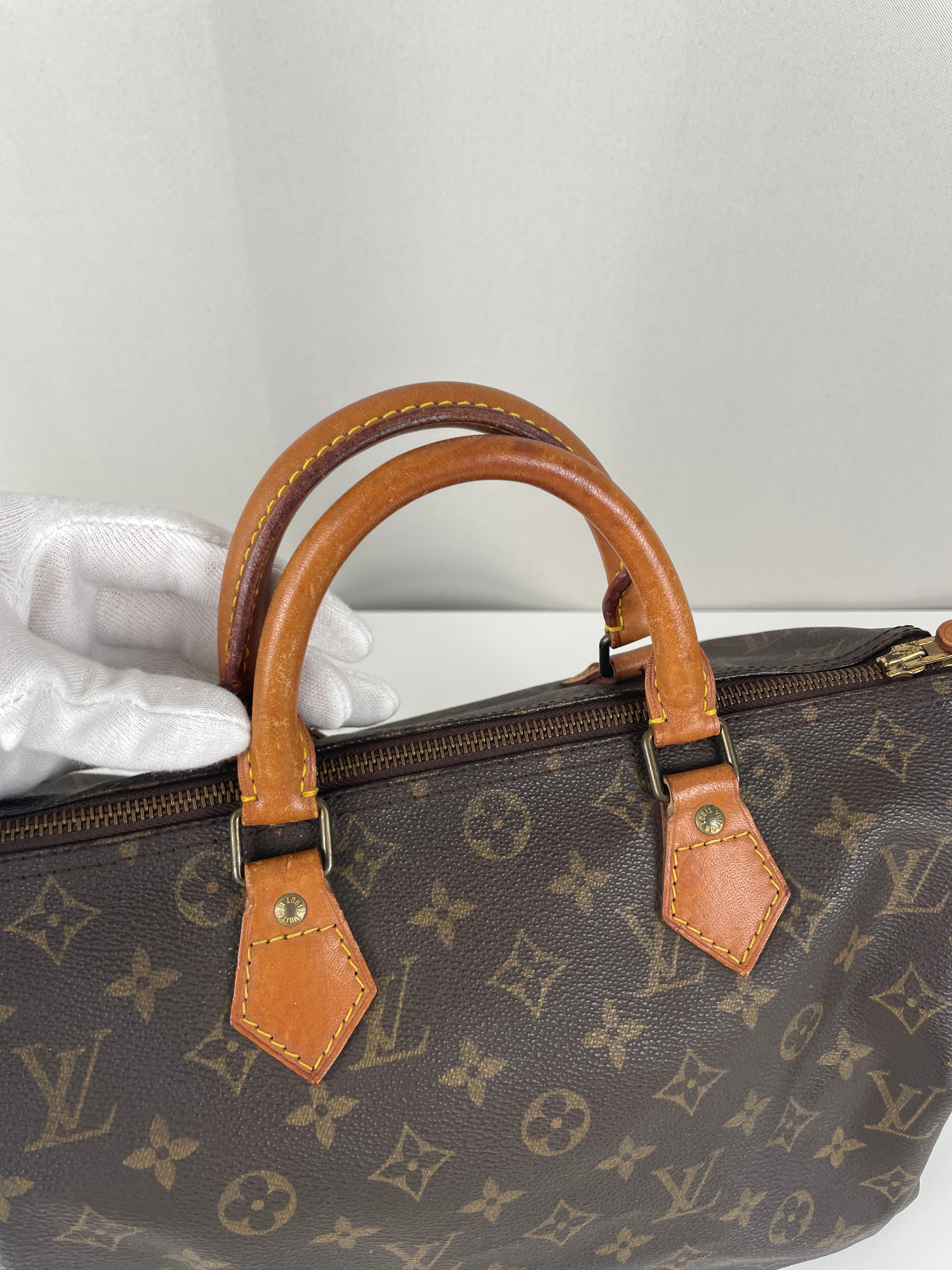 Le Speedy 30 est le sac à main le plus iconique de Louis Vuitton, créé à l'origine en 1930. Cette pièce vintage de 1987 présente plus de quatre décennies de caractère authentique et représente une véritable pièce d'histoire de la mode. La patine naturelle et l'usure délicate racontent l'histoire d'un artisanat de luxe authentique qui a résisté à l'épreuve du temps. Une pièce vintage de collection qui incarne l'héritage de Louis Vuitton et l'élégance parisienne intemporelle.