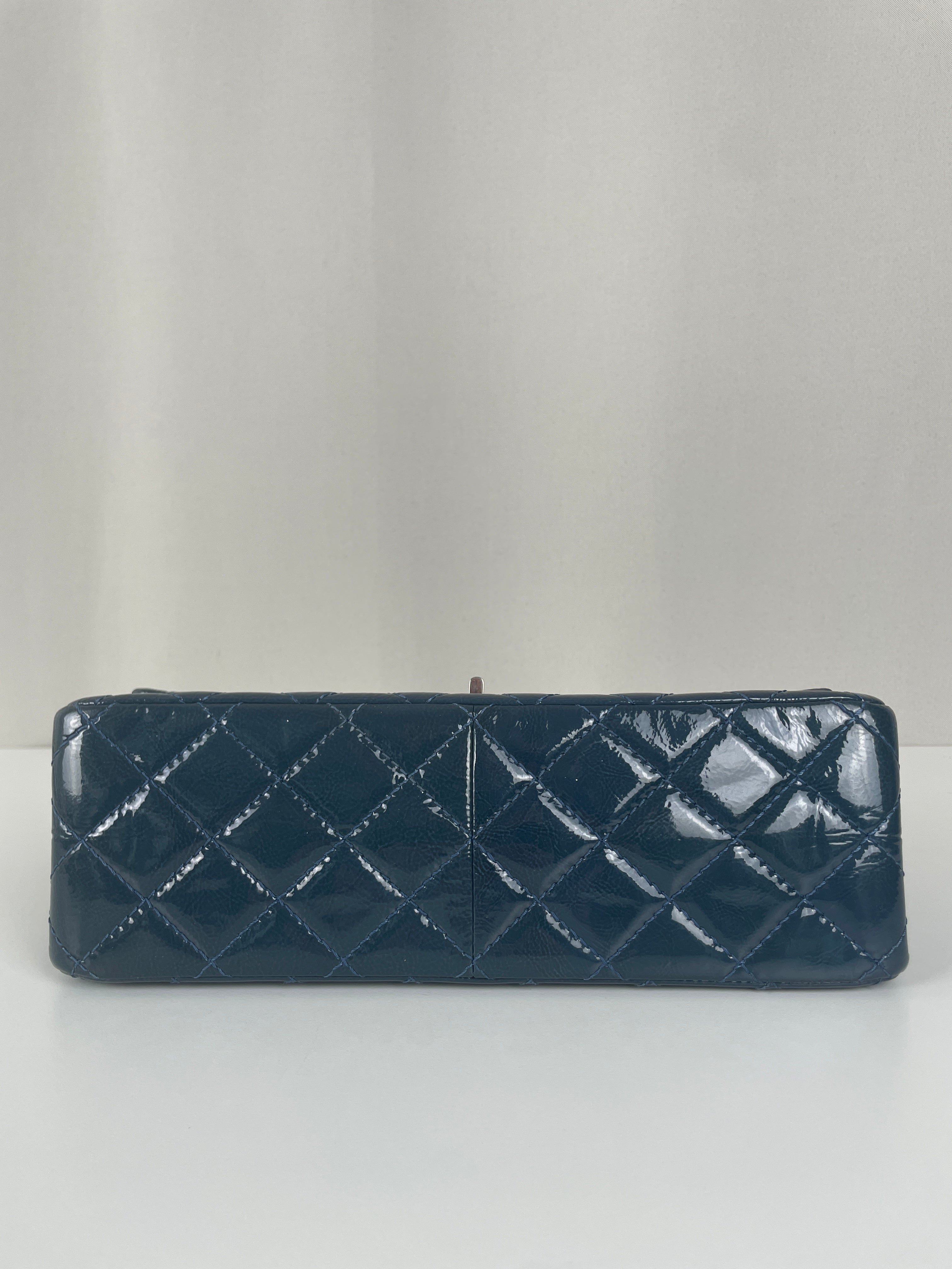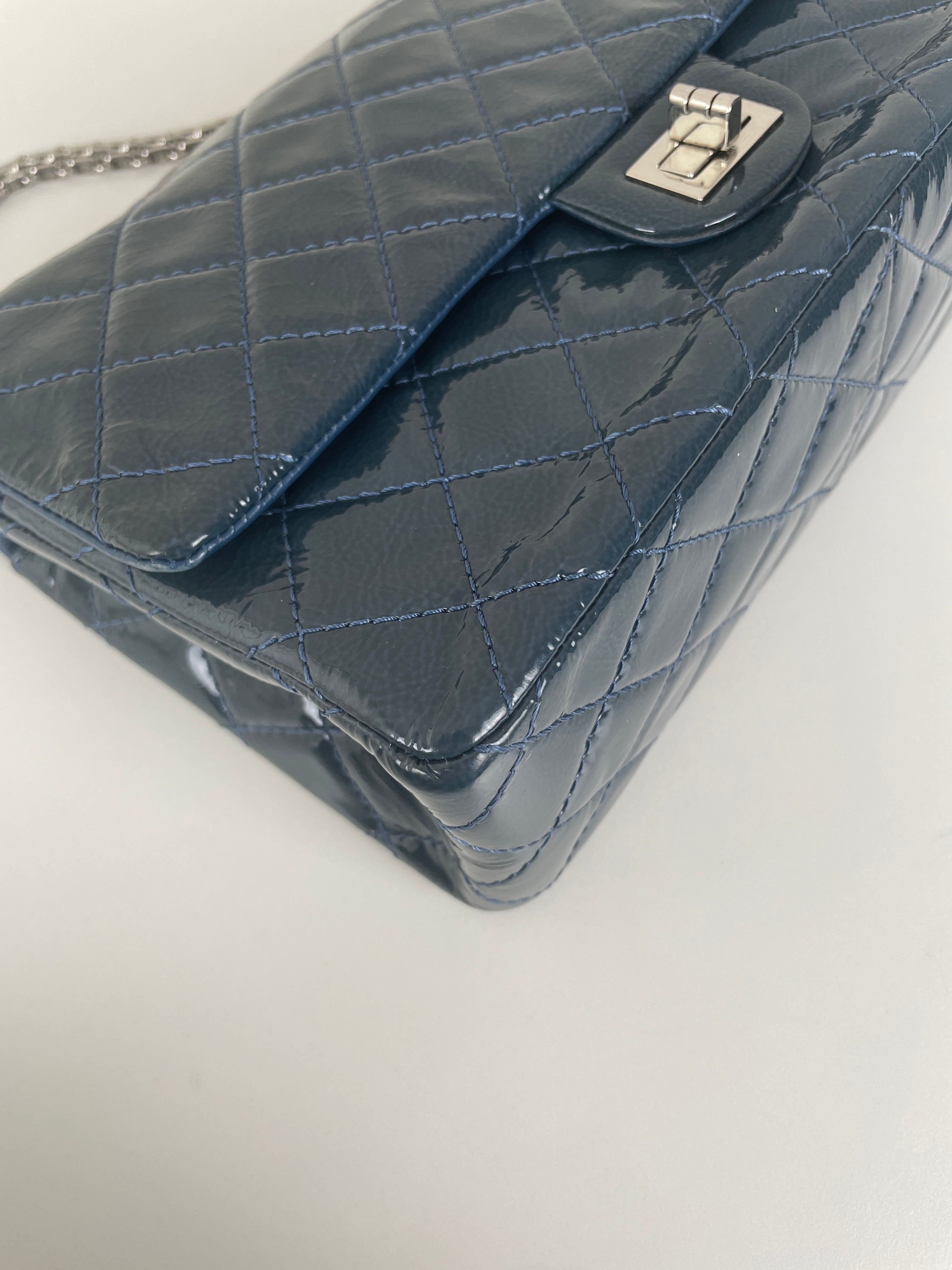 Sac Chanel Jumbo 2.55 en cuir verni bleu