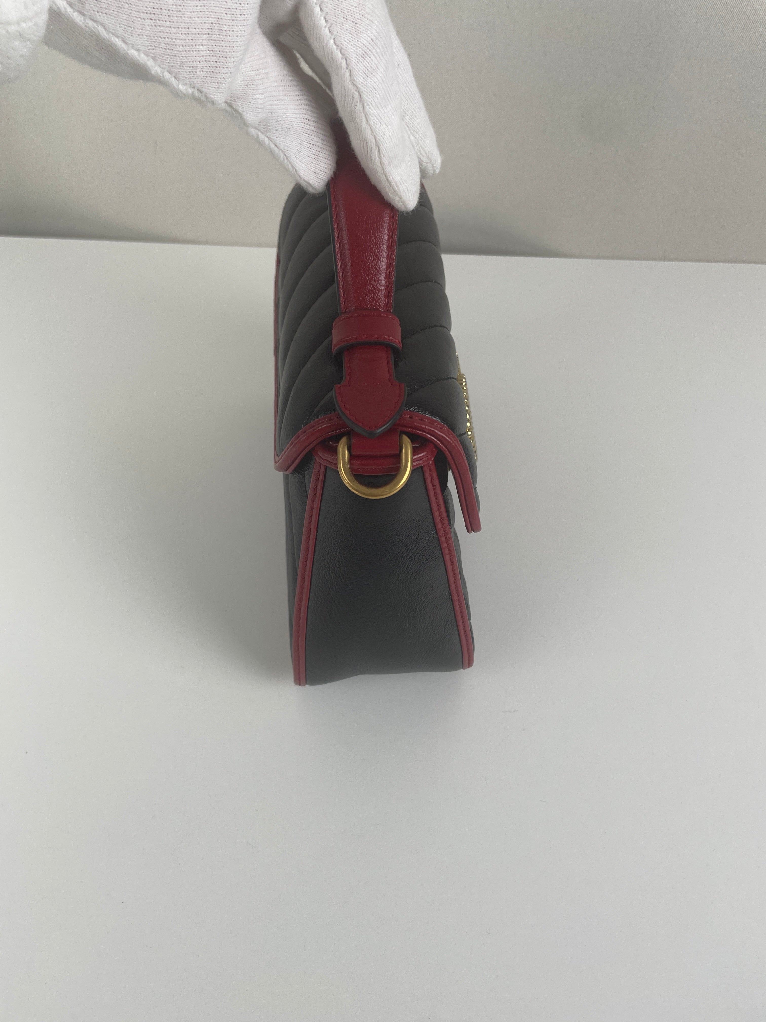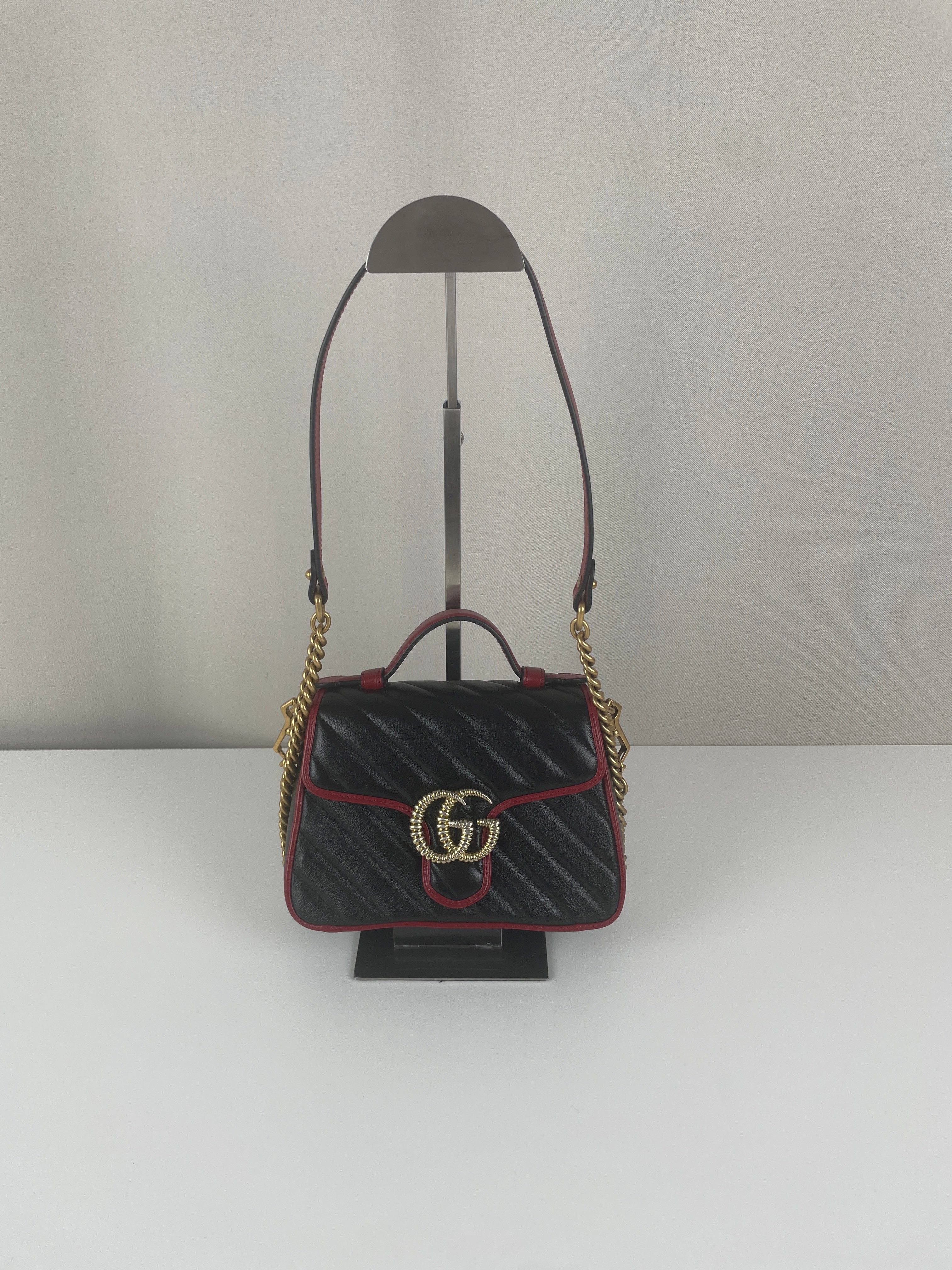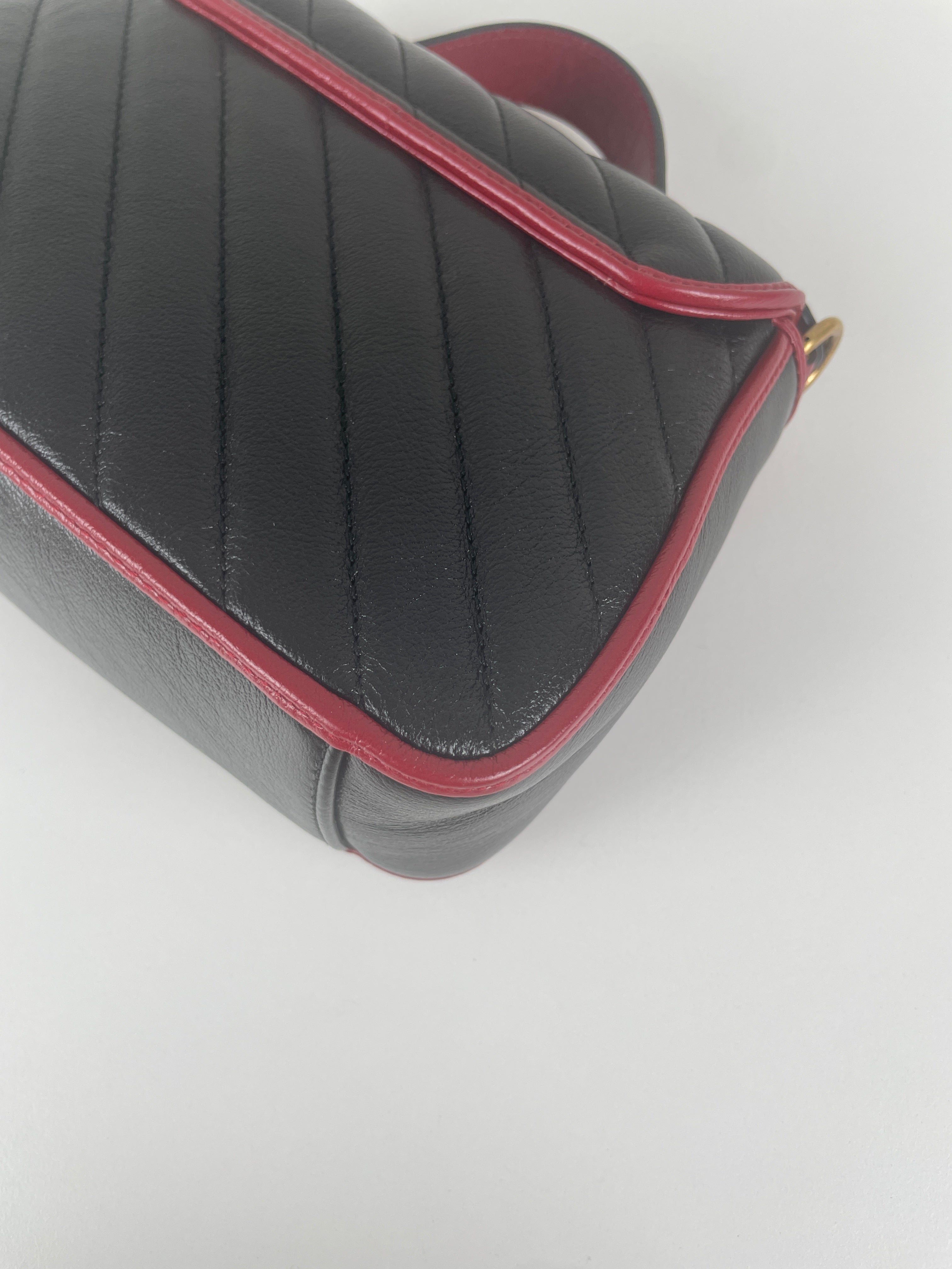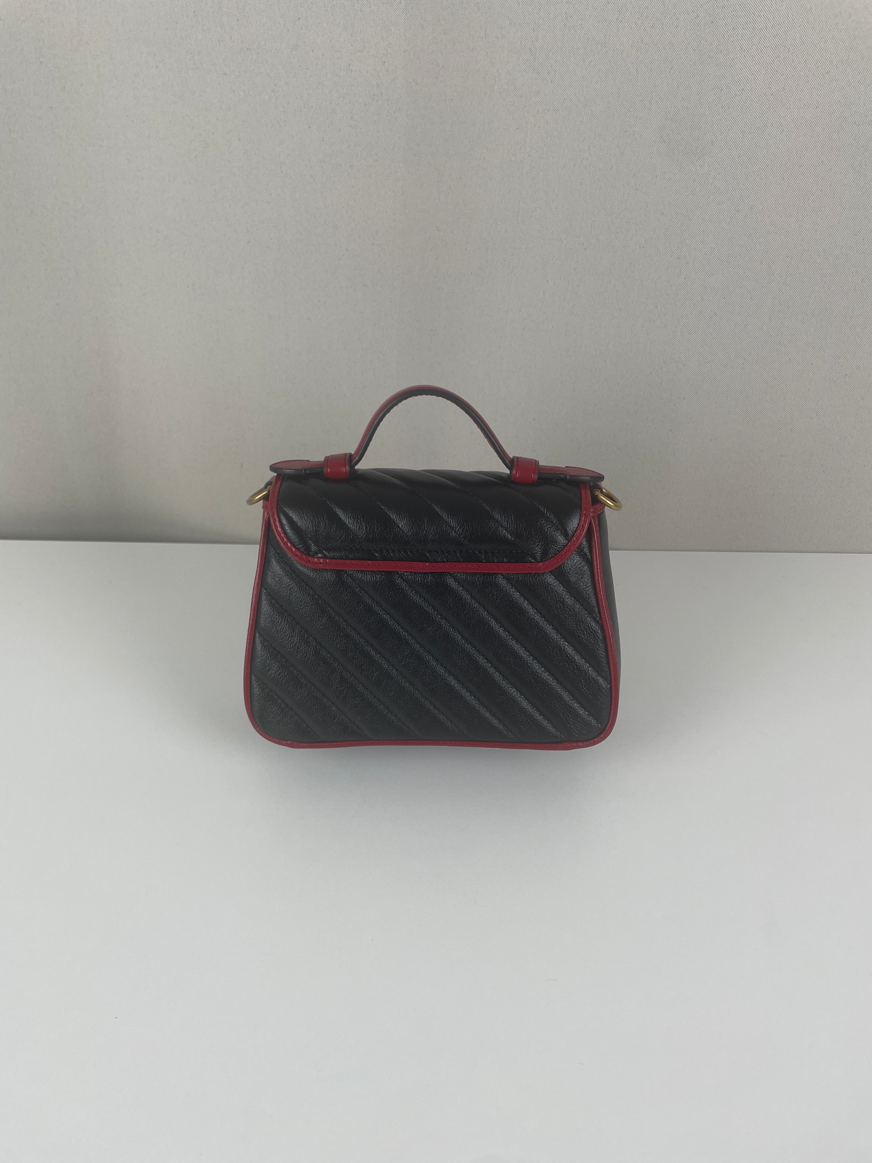 Sac Gucci GG Marmont à poignée supérieure en cuir noir et rouge