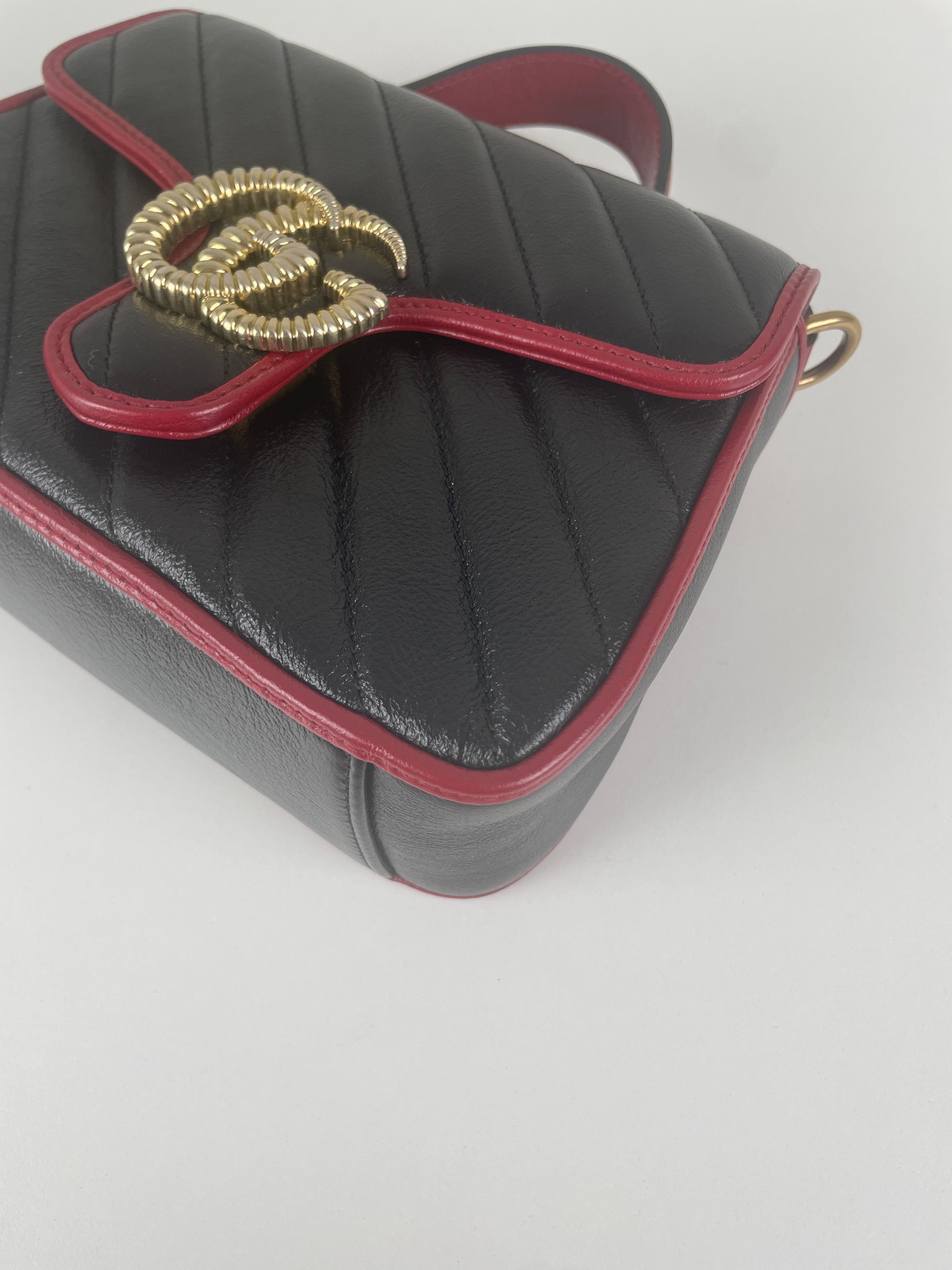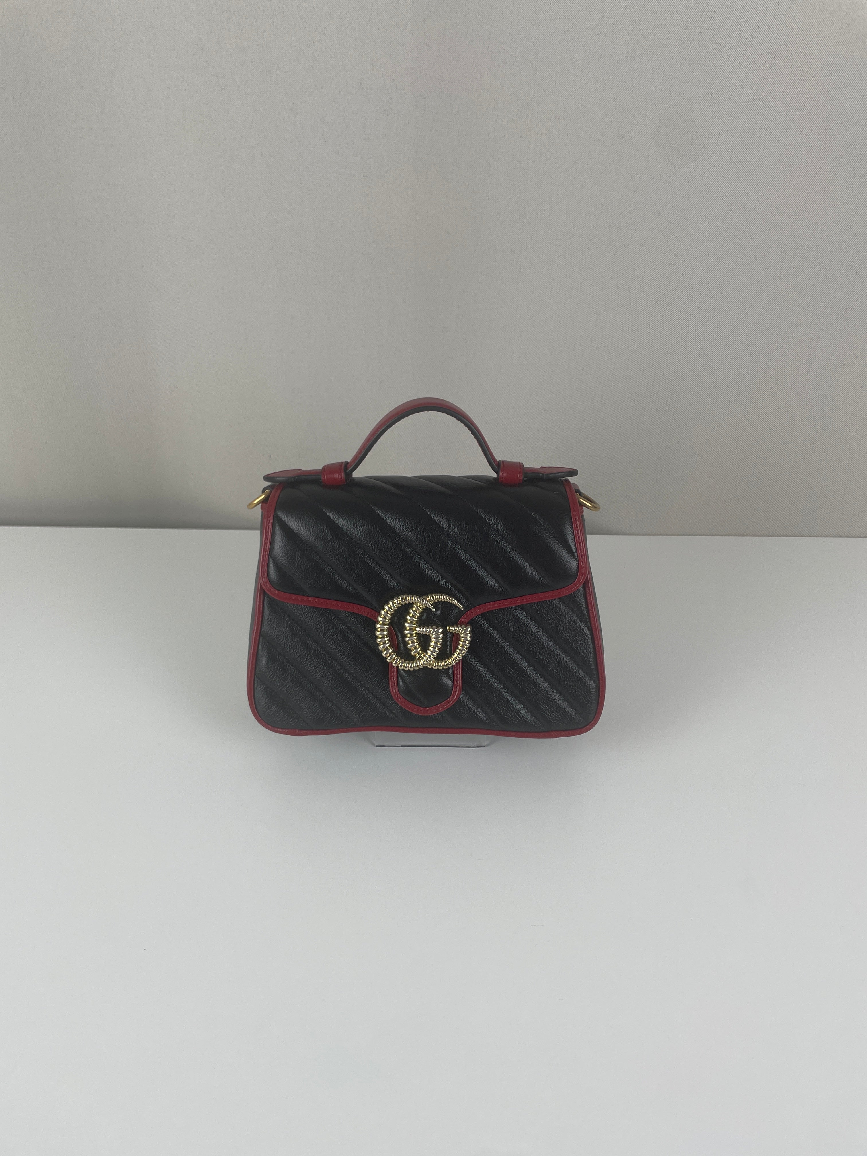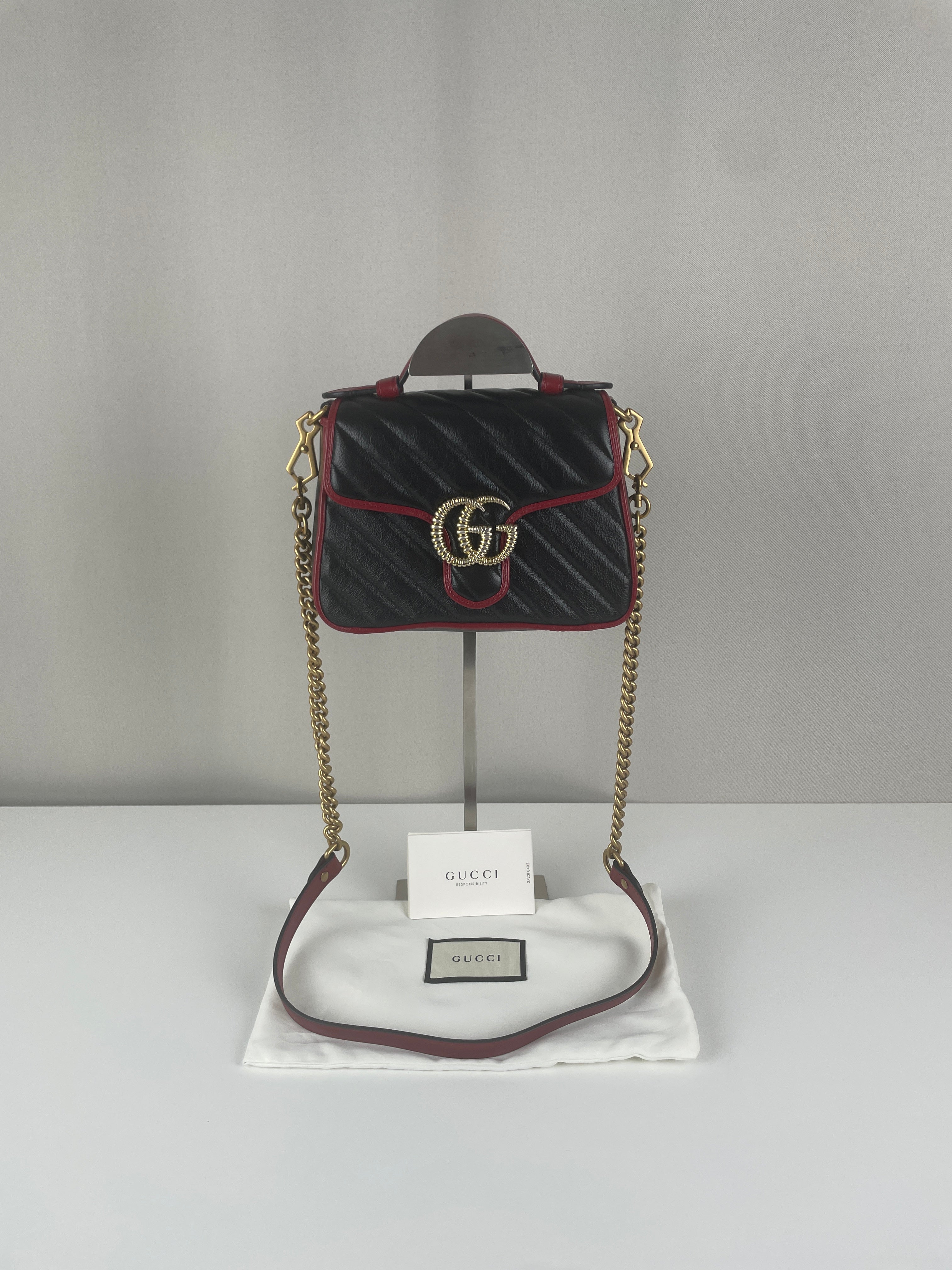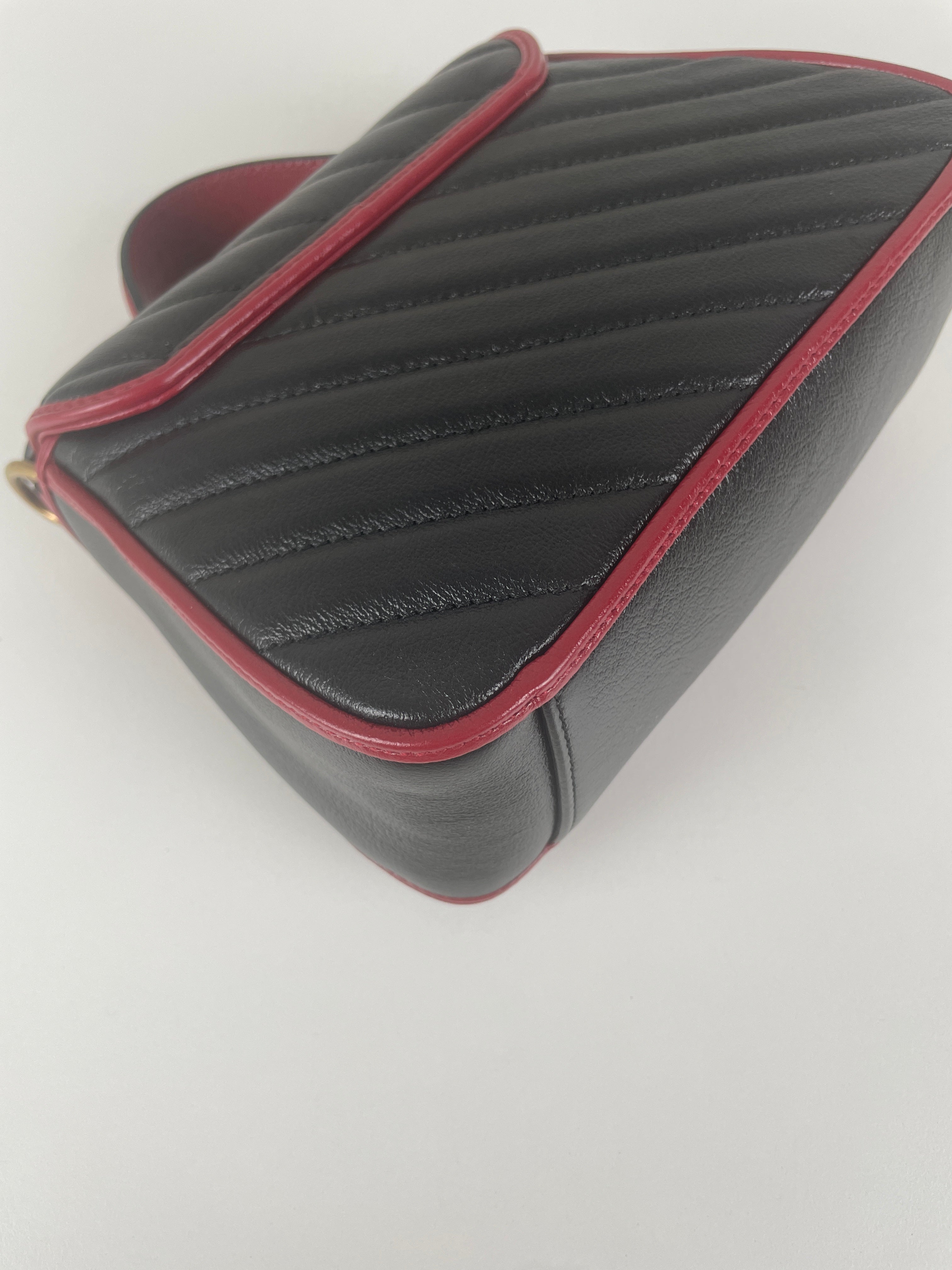 Sac Gucci GG Marmont à poignée supérieure en cuir noir et rouge