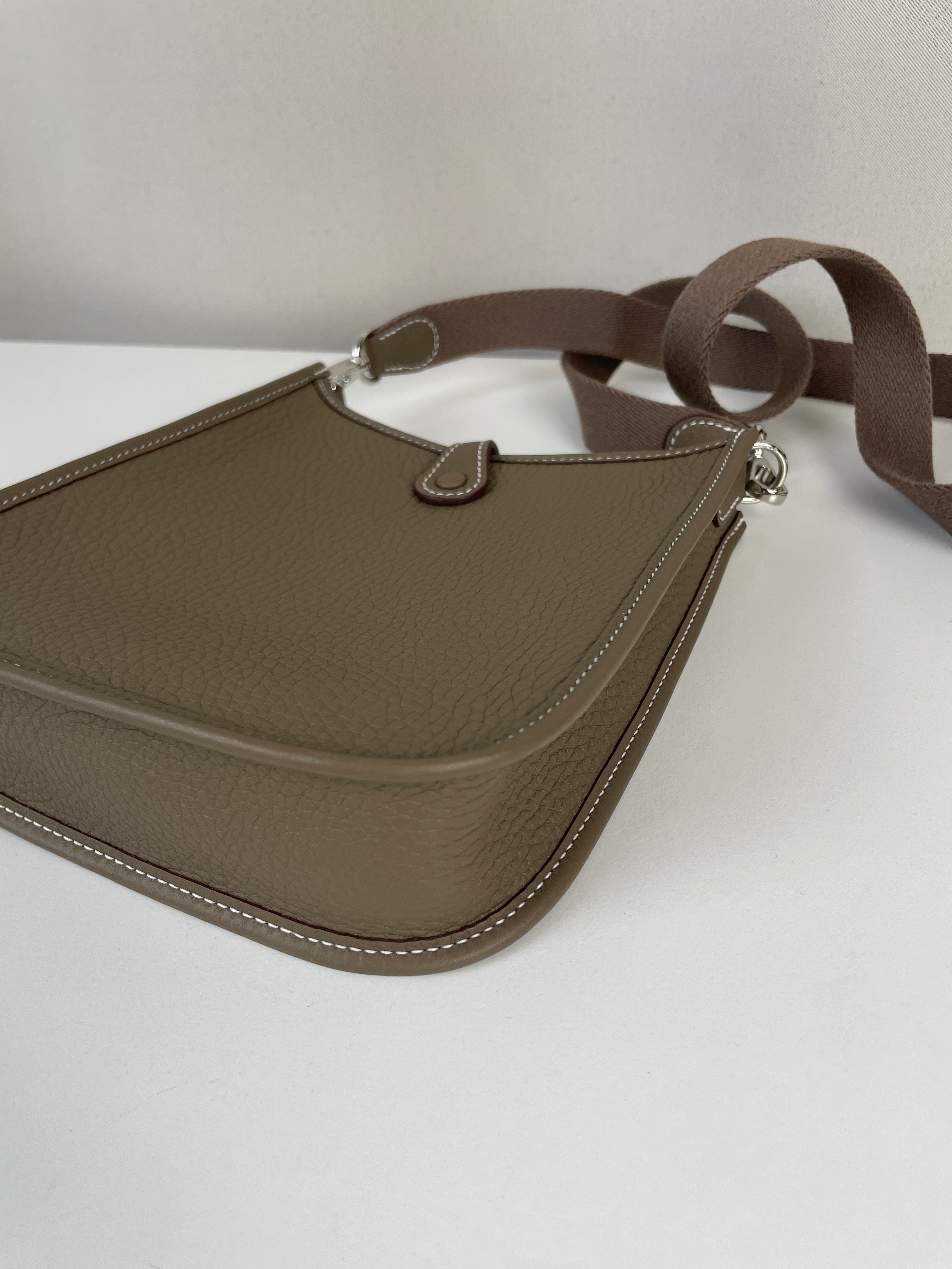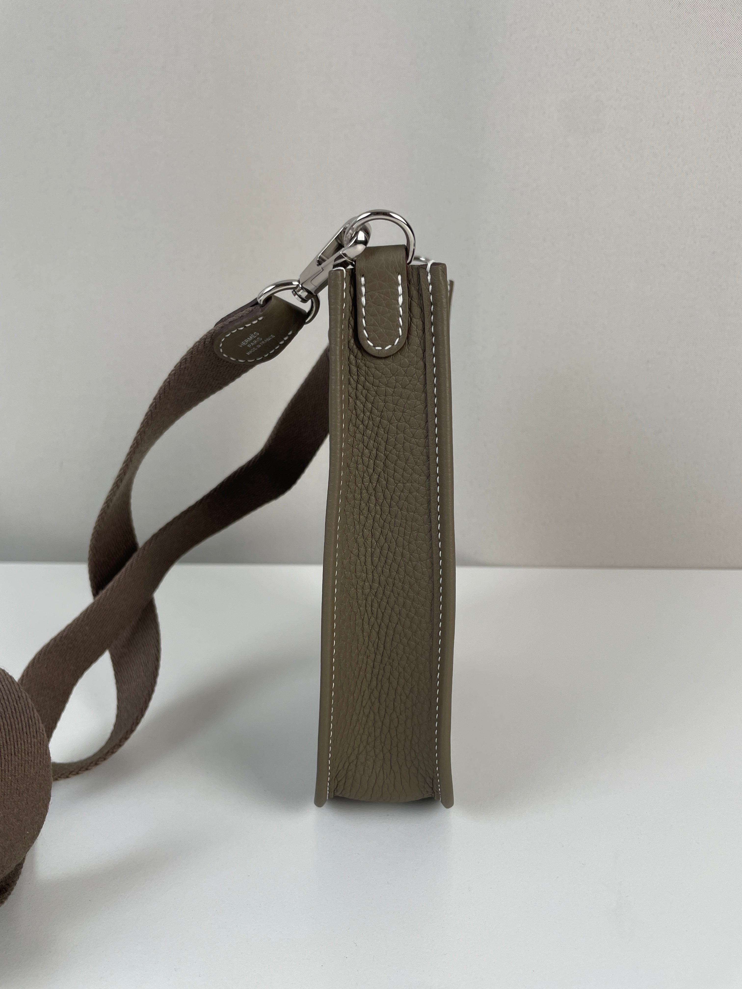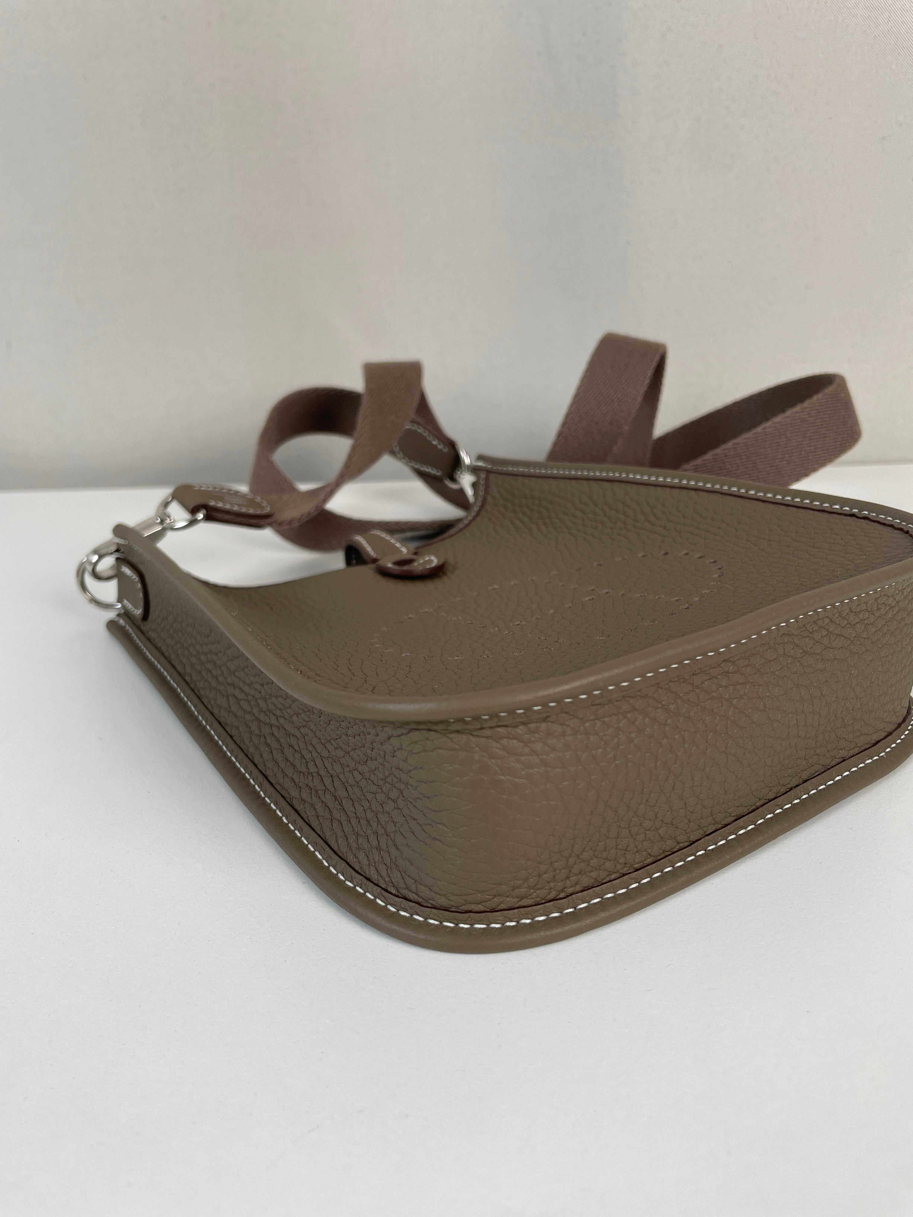 Sac Hermès Mini Evelyne TPM 16 en cuir étoupe avec finitions argentées