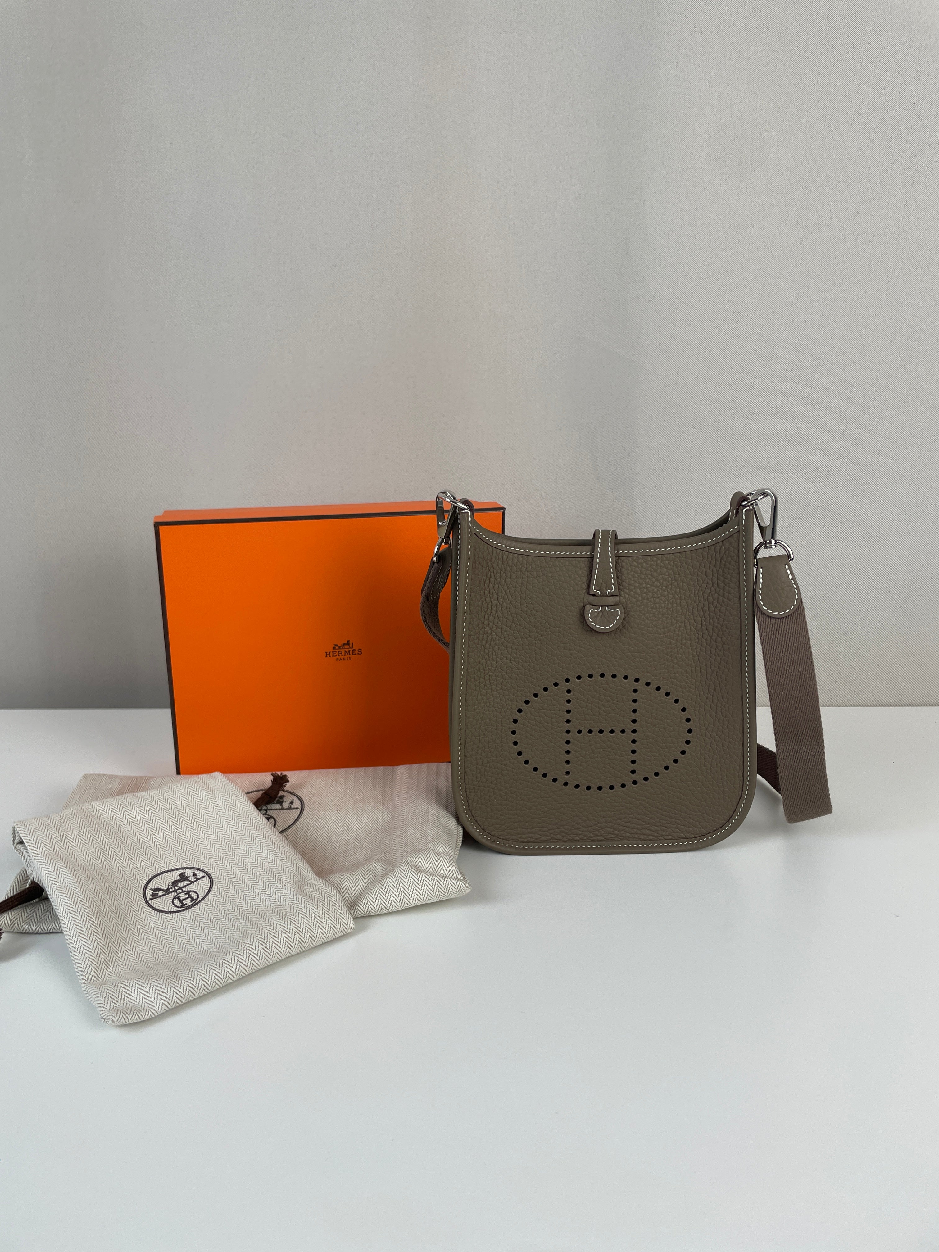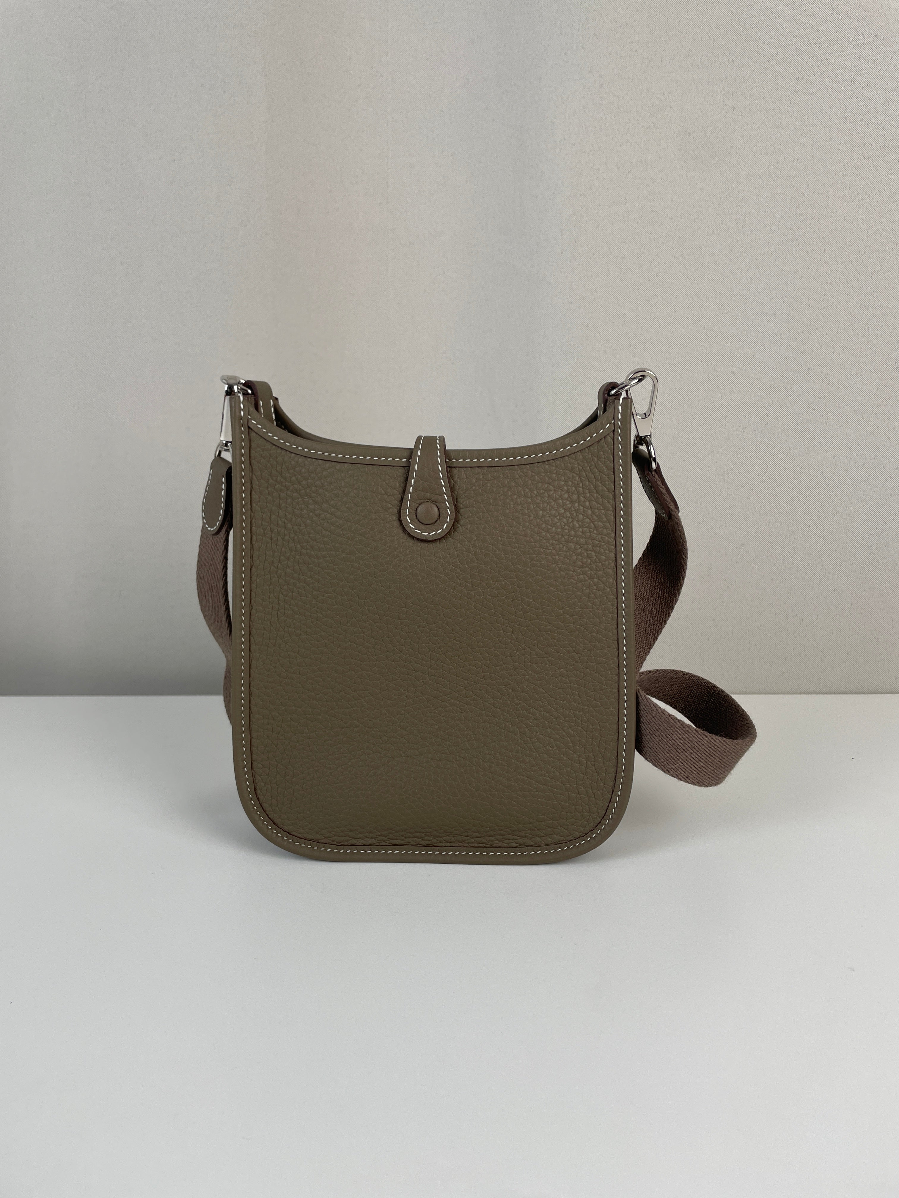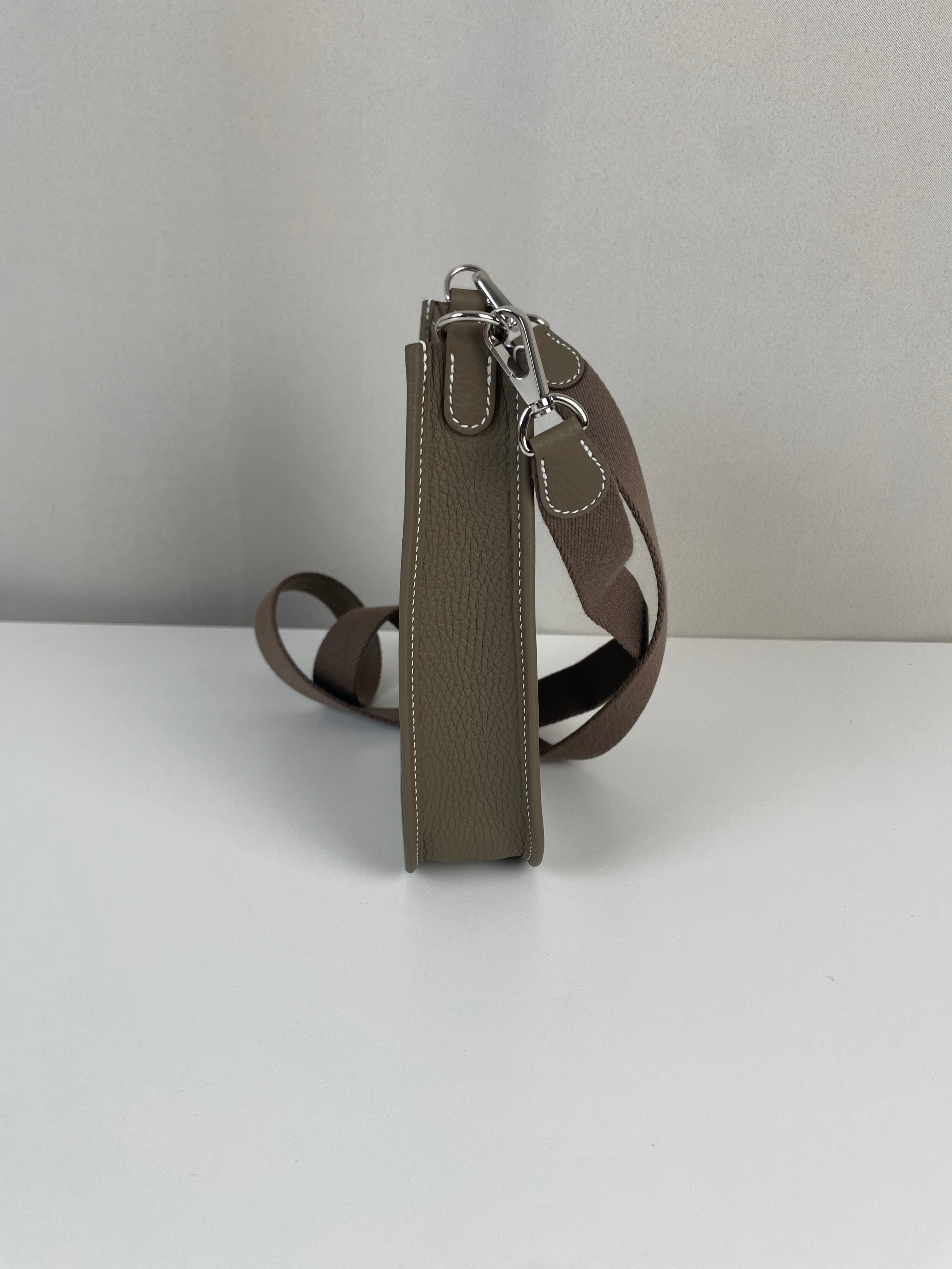 Sac Hermès Mini Evelyne TPM 16 en cuir étoupe avec finitions argentées